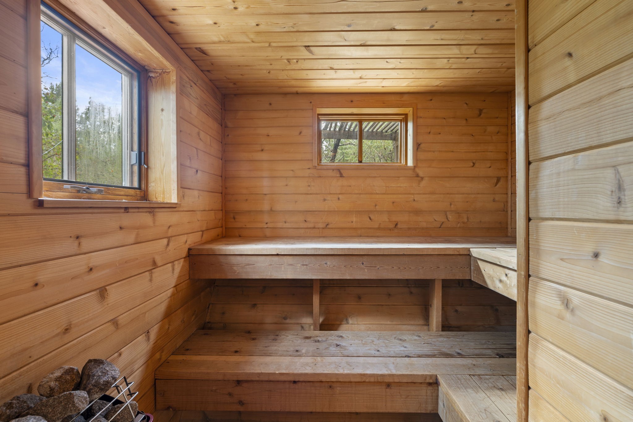 • Interior FeaturesBeamed Ceilings, Wet Bar, Interior Steps, Sauna, Wine Cellar, Central Vacuum