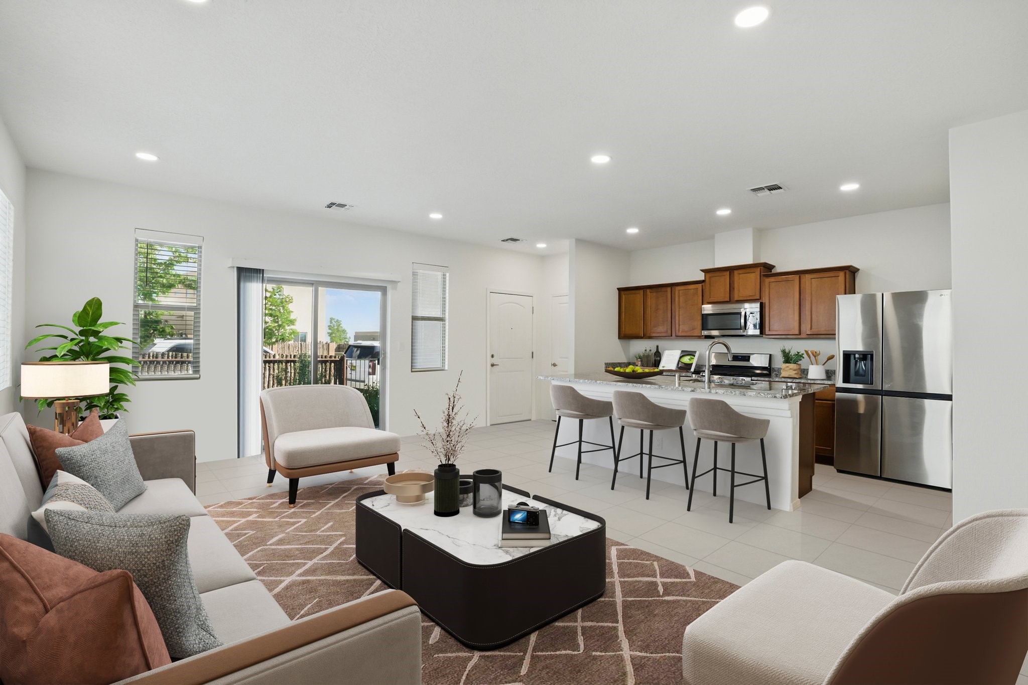 This spacious four bedroom newer townhome is located close to shopping, dining, the Country Club/golf, HWY 599 (perfect for commuters), and just minutes to the hospital! The first floor is an open floor plan-great for entertaining with a kitchen, dining area and a powder room for guests! The kitchen has beautiful granite countertops and walk-in pantry with plenty of storage. Lots of natural light in the living area and features a glass sliding door that opens to the patio. The second floor has four bedrooms, full bath powder room and conveniently located laundry room. The primary room has a walk-in closet, and a full bathroom with dual sinks! This energy efficient home has a tankless water heater, insulated windows, and a spacious two car garage with ample room for storage and mountable shelving. Beautiful views of the mountains from the second floor and lots of natural light throughout!