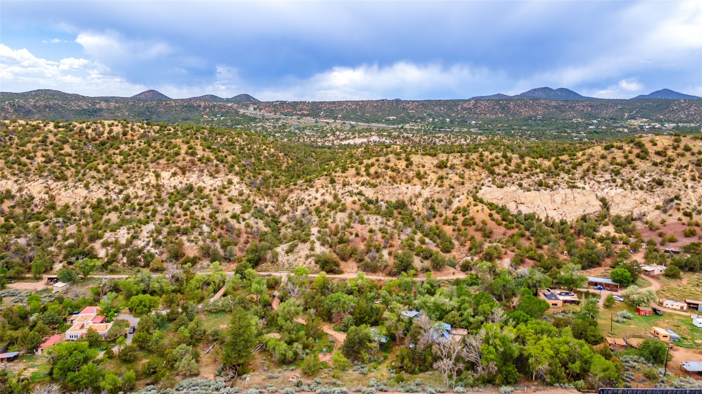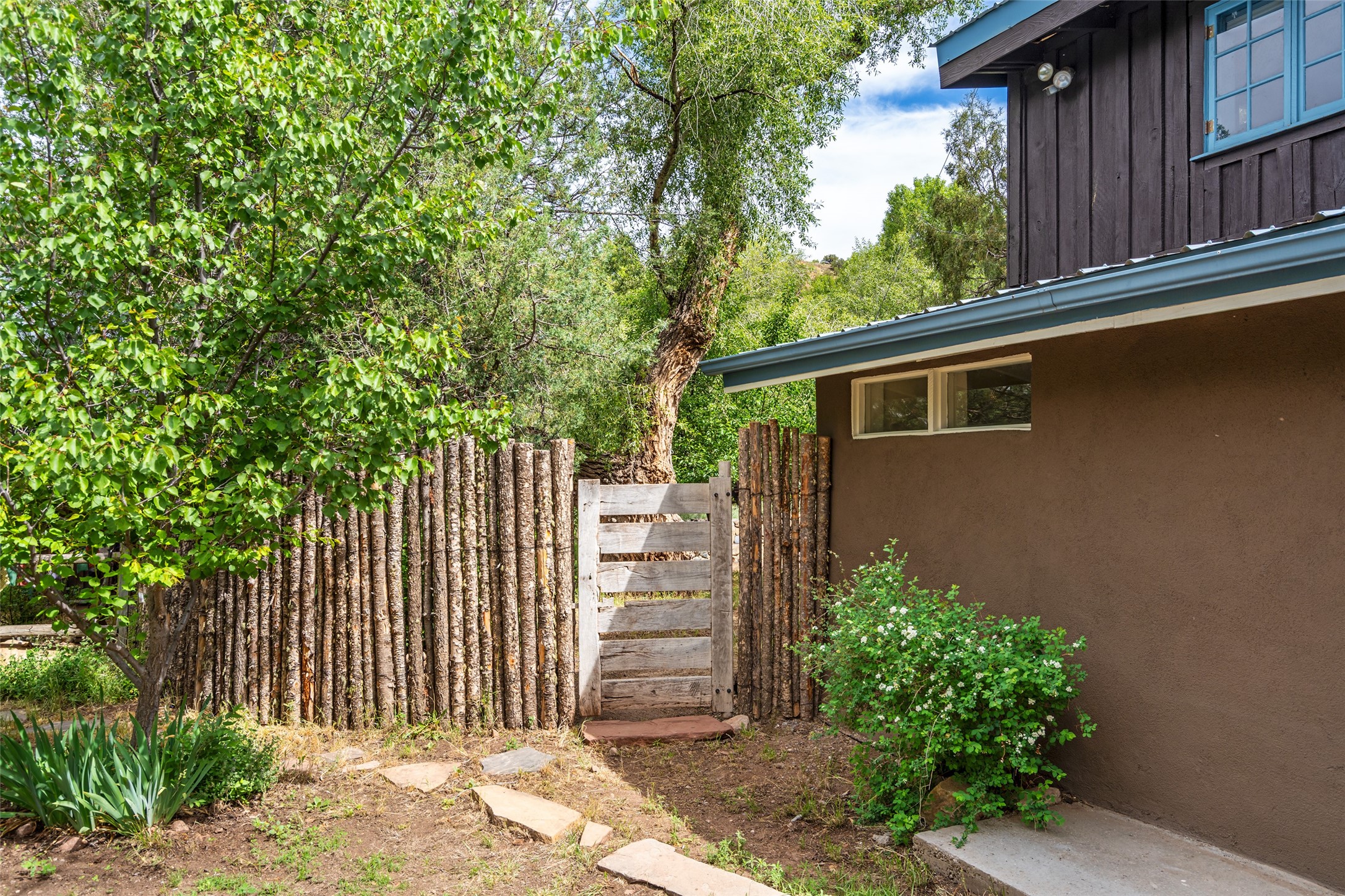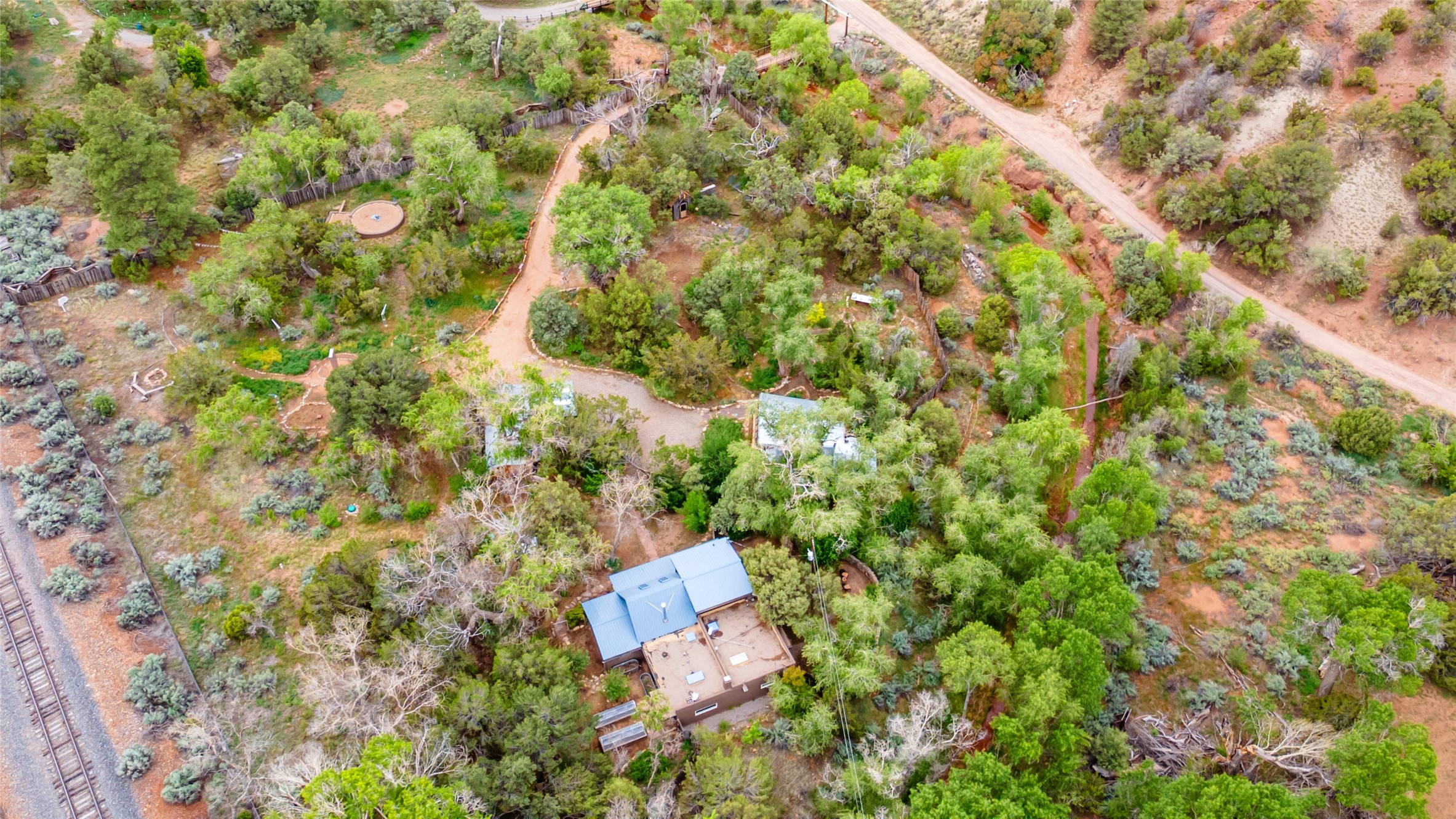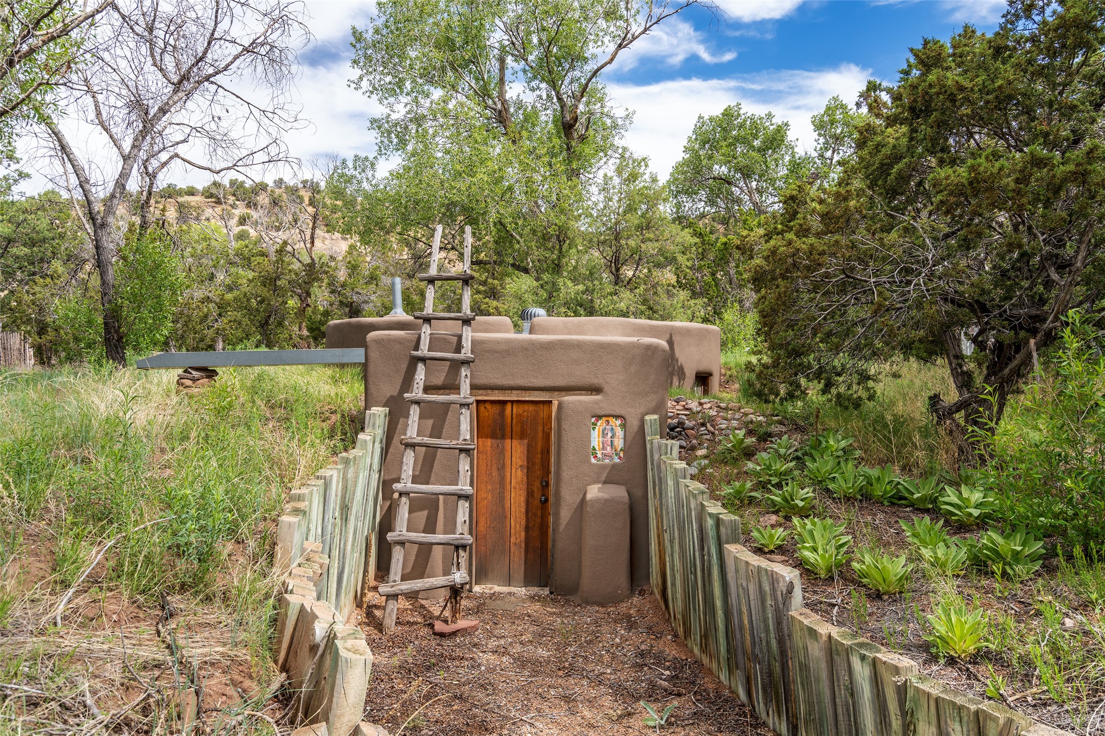 Nature-lover's paradise on 6 Acres- Tucked beneath red rock hills--Cross the bridge from Sibley Road and enter your private sanctuary nestled on six acres of lush, mature land in the serene community of Caoncito. This one-of-a-kind property features a thoughtfully updated three-bedroom, two-bathroom adobe and frame main house that blends timeless charm with modern luxury. Highlights include fully renovated luxury bathrooms and a gourmet kitchen with artisan tile, locally crafted ironwork throughout, and new sustainable wood floors. The home showcases diamond finish plaster and low-VOC finishes, ensuring both beauty and environmental consciousness. The hand-built guest house, perfect for visitors, rental income, or a creative studio, includes a cozy bedroom, bath, kitchenette, and a loft. Attached is a greenhouse for year-round gardening. Outdoors, you'll find a detached carport/shop featuring stonework sourced from the nearby Glorieta Mesa, which doubles as an open-air workspace or additional storage. A traditional underground kiva structure provides a private ceremonial space.The grounds are a horticultural haven with old-growth cottonwoods, pions, and raised garden beds. A private well adds to the property's potential for self-sufficient living. Whether you're a homesteader, gardener, artist, or seeking a peaceful retreat, this property offers the perfect setting.Set in a classic rural NM neighborhood, the house sits on three acres fenced in with coyote fencing, providing safety and privacy. An additional three acres remain wild, with a neighborhood path leading you to public hiking trails and sunset views. Located just 25 minutes from downtown Santa Fe, this tranquil retreat offers the best of both worlds: a private haven with access to the vibrant city. With its artisanal remodel and high desert landscape, this property is an extraordinary opportunity for those seeking comfort, luxury, and self-sufficient living.