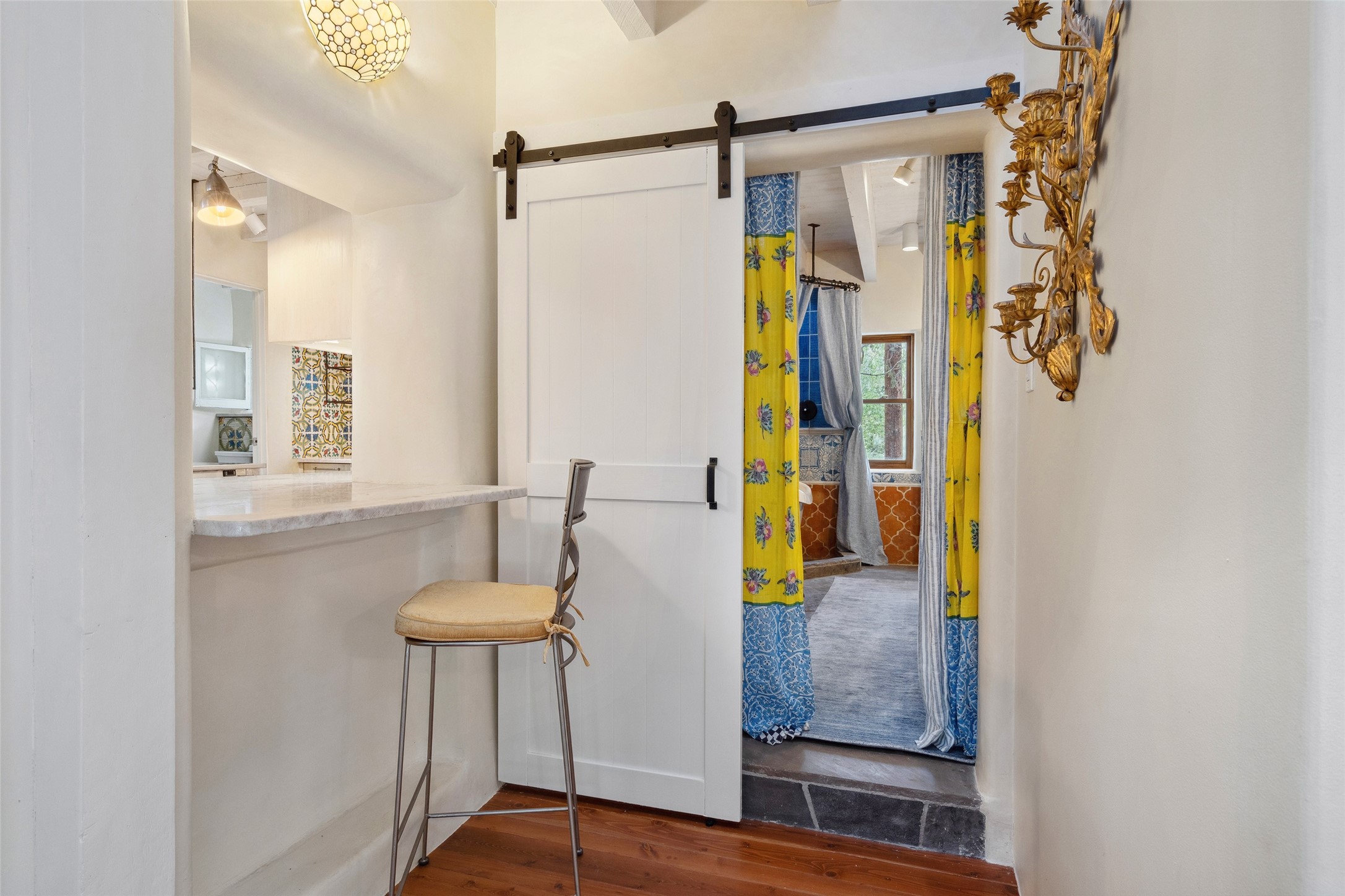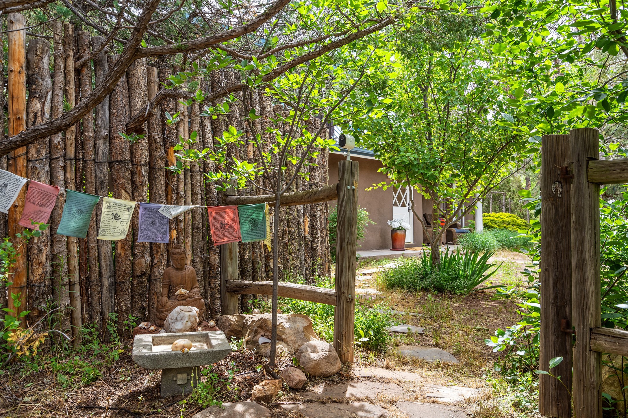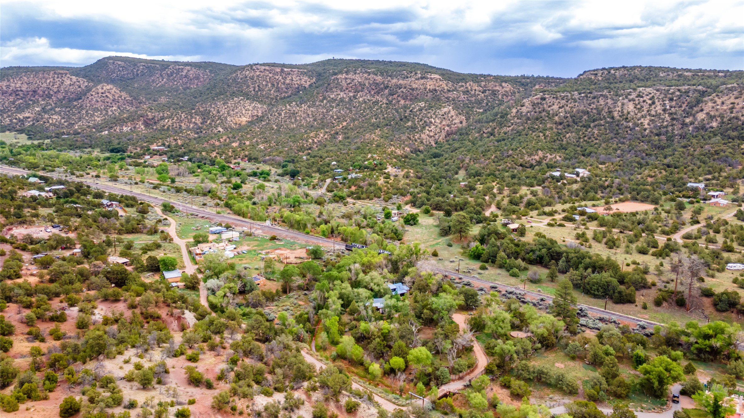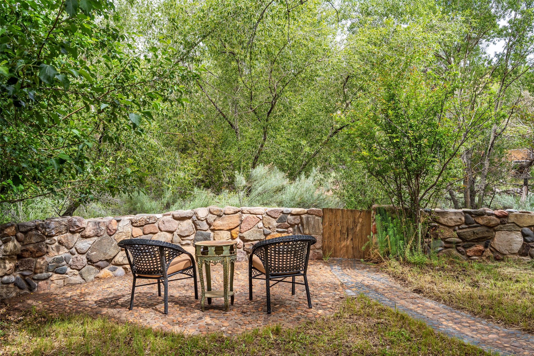 Nature-lover's paradise on 6 Acres- Tucked beneath red rock hills--Cross the bridge from Sibley Road and enter your private sanctuary nestled on six acres of lush, mature land in the serene community of Caoncito. This one-of-a-kind property features a thoughtfully updated three-bedroom, two-bathroom adobe and frame main house that blends timeless charm with modern luxury. Highlights include fully renovated luxury bathrooms and a gourmet kitchen with artisan tile, locally crafted ironwork throughout, and new sustainable wood floors. The home showcases diamond finish plaster and low-VOC finishes, ensuring both beauty and environmental consciousness. The hand-built guest house, perfect for visitors, rental income, or a creative studio, includes a cozy bedroom, bath, kitchenette, and a loft. Attached is a greenhouse for year-round gardening. Outdoors, you'll find a detached carport/shop featuring stonework sourced from the nearby Glorieta Mesa, which doubles as an open-air workspace or additional storage. A traditional underground kiva structure provides a private ceremonial space.The grounds are a horticultural haven with old-growth cottonwoods, pions, and raised garden beds. A private well adds to the property's potential for self-sufficient living. Whether you're a homesteader, gardener, artist, or seeking a peaceful retreat, this property offers the perfect setting.Set in a classic rural NM neighborhood, the house sits on three acres fenced in with coyote fencing, providing safety and privacy. An additional three acres remain wild, with a neighborhood path leading you to public hiking trails and sunset views. Located just 25 minutes from downtown Santa Fe, this tranquil retreat offers the best of both worlds: a private haven with access to the vibrant city. With its artisanal remodel and high desert landscape, this property is an extraordinary opportunity for those seeking comfort, luxury, and self-sufficient living.