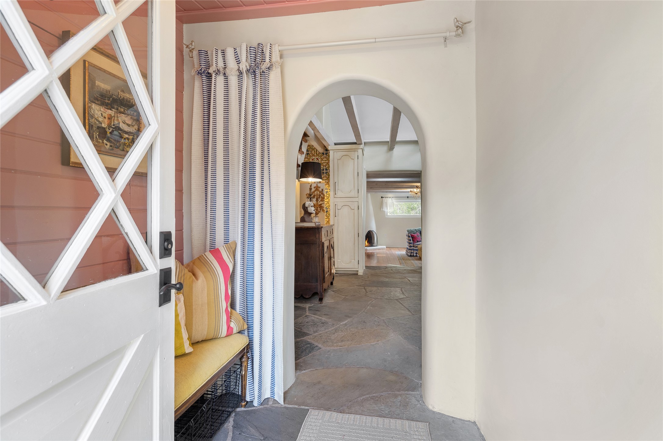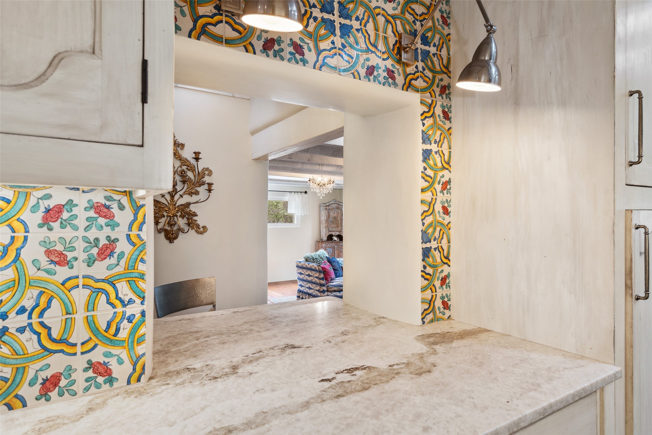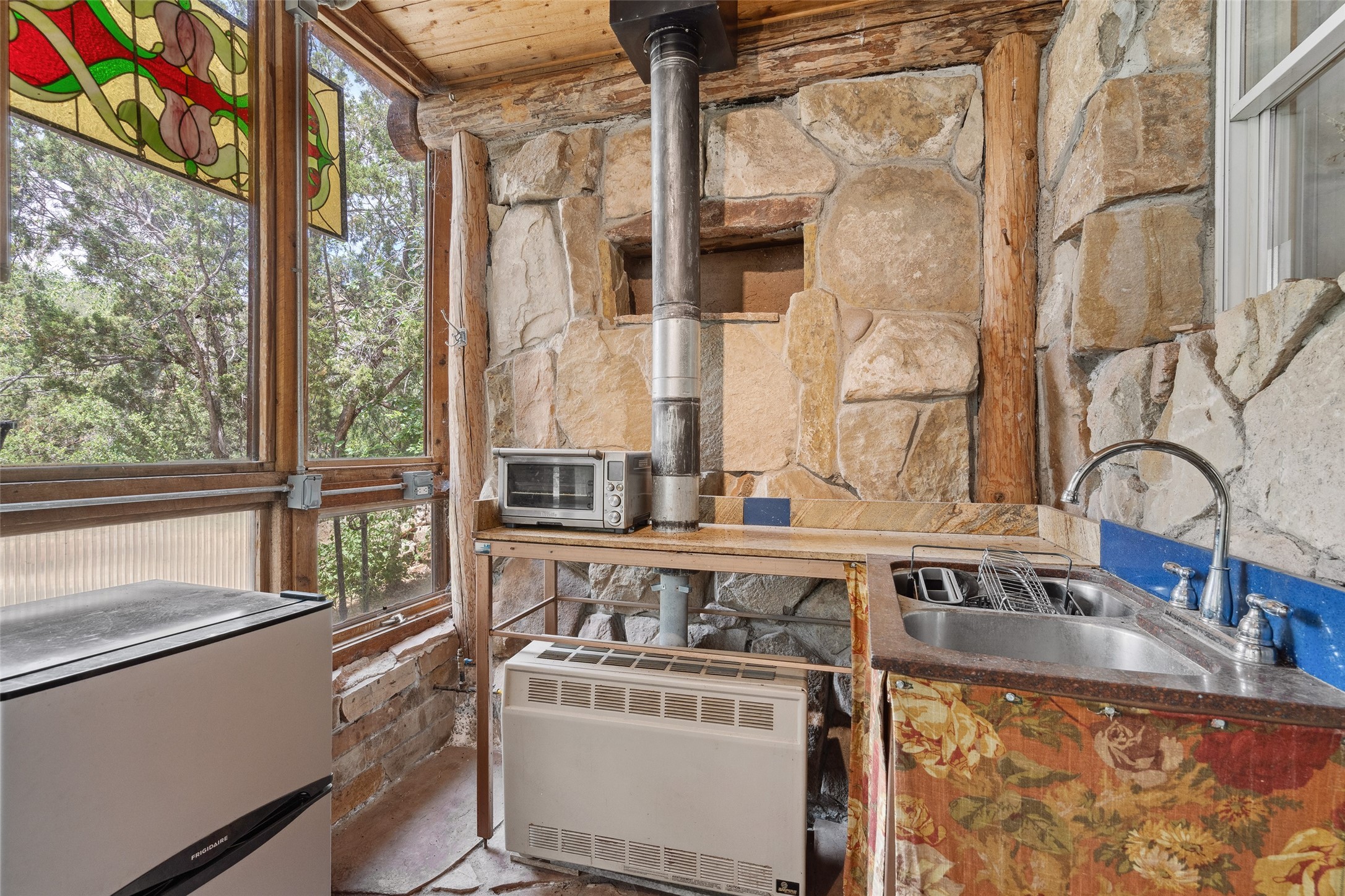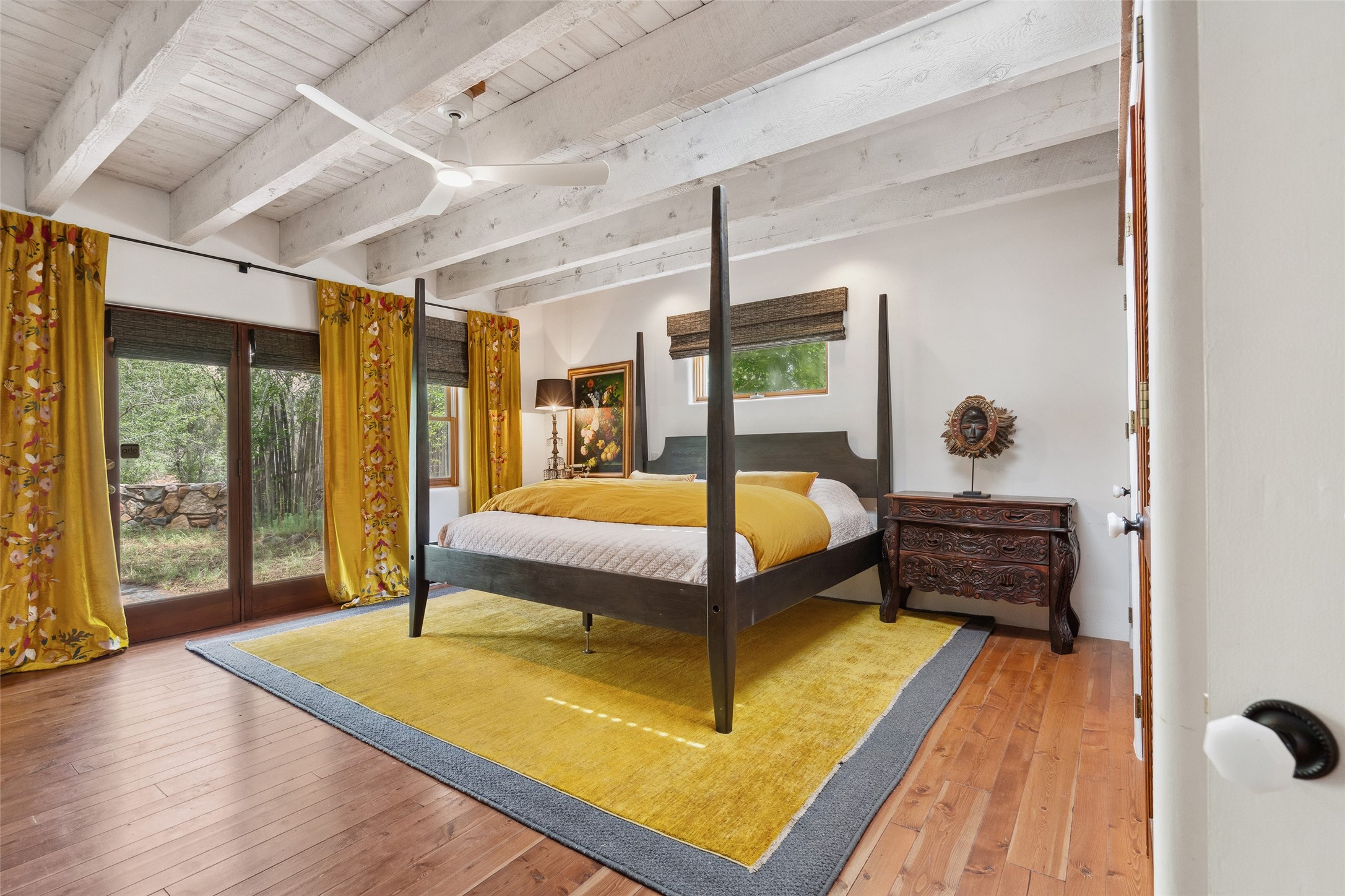 Nature-lover's paradise on 6 Acres- Tucked beneath red rock hills--Cross the bridge from Sibley Road and enter your private sanctuary nestled on six acres of lush, mature land in the serene community of Caoncito. This one-of-a-kind property features a thoughtfully updated three-bedroom, two-bathroom adobe and frame main house that blends timeless charm with modern luxury. Highlights include fully renovated luxury bathrooms and a gourmet kitchen with artisan tile, locally crafted ironwork throughout, and new sustainable wood floors. The home showcases diamond finish plaster and low-VOC finishes, ensuring both beauty and environmental consciousness. The hand-built guest house, perfect for visitors, rental income, or a creative studio, includes a cozy bedroom, bath, kitchenette, and a loft. Attached is a greenhouse for year-round gardening. Outdoors, you'll find a detached carport/shop featuring stonework sourced from the nearby Glorieta Mesa, which doubles as an open-air workspace or additional storage. A traditional underground kiva structure provides a private ceremonial space.The grounds are a horticultural haven with old-growth cottonwoods, pions, and raised garden beds. A private well adds to the property's potential for self-sufficient living. Whether you're a homesteader, gardener, artist, or seeking a peaceful retreat, this property offers the perfect setting.Set in a classic rural NM neighborhood, the house sits on three acres fenced in with coyote fencing, providing safety and privacy. An additional three acres remain wild, with a neighborhood path leading you to public hiking trails and sunset views. Located just 25 minutes from downtown Santa Fe, this tranquil retreat offers the best of both worlds: a private haven with access to the vibrant city. With its artisanal remodel and high desert landscape, this property is an extraordinary opportunity for those seeking comfort, luxury, and self-sufficient living.