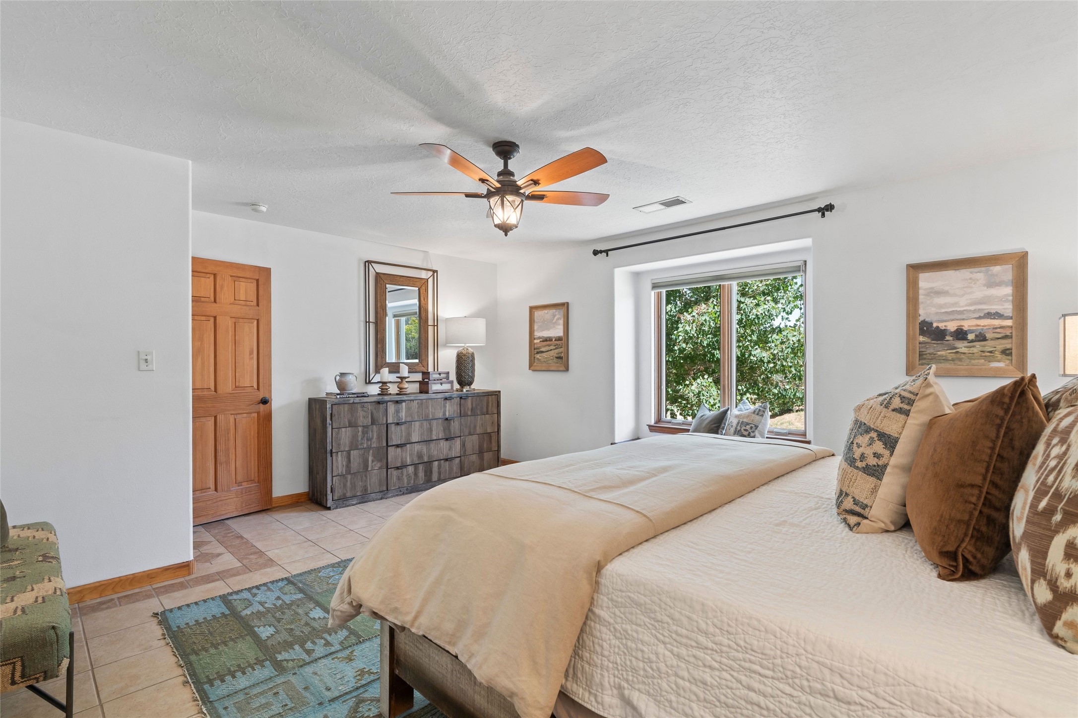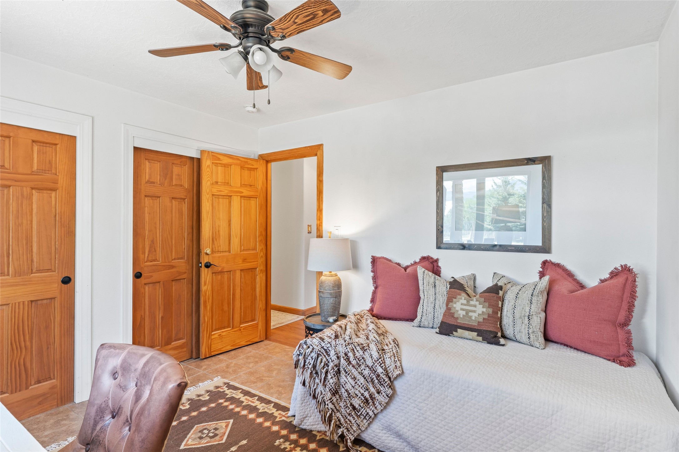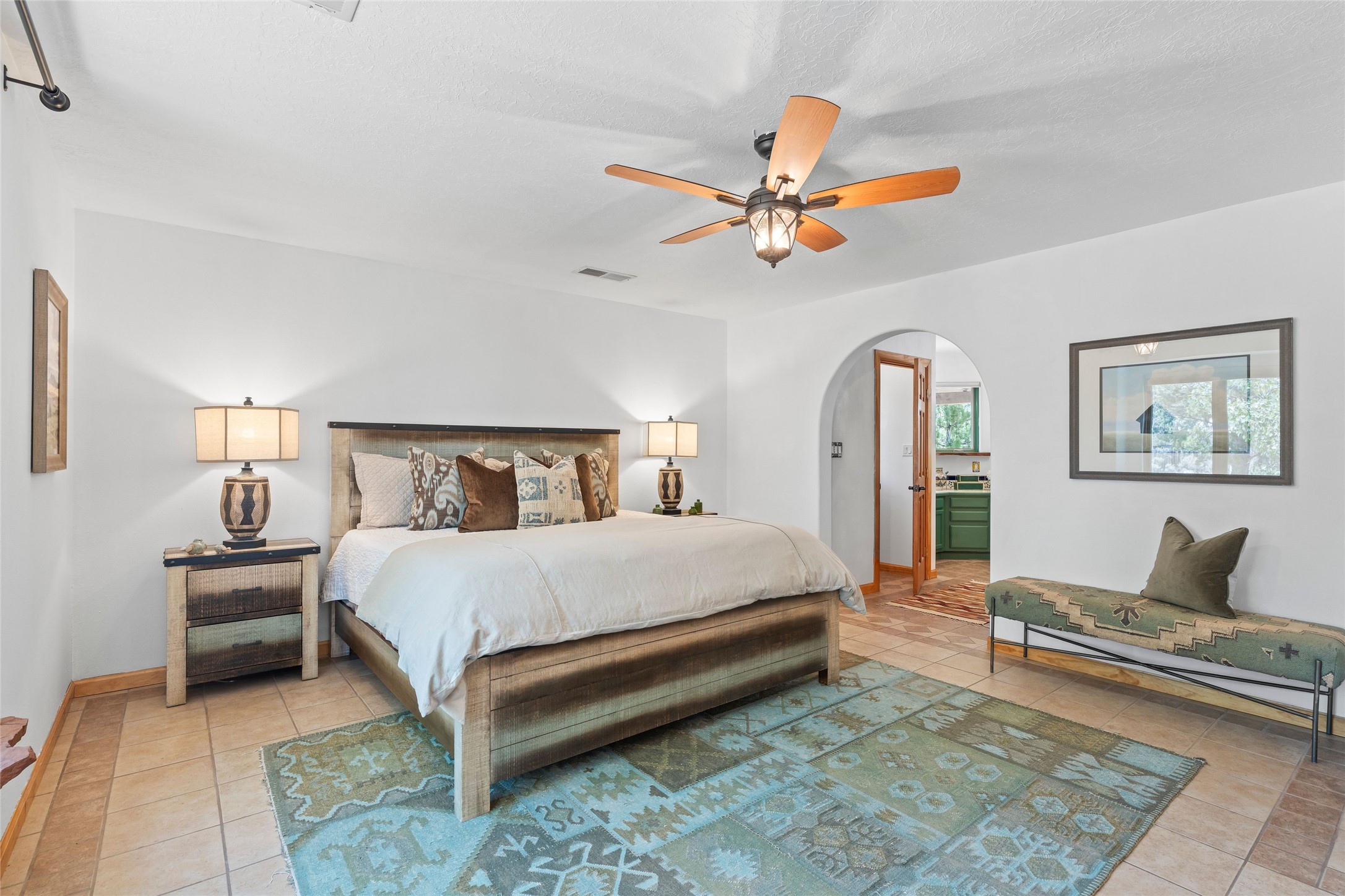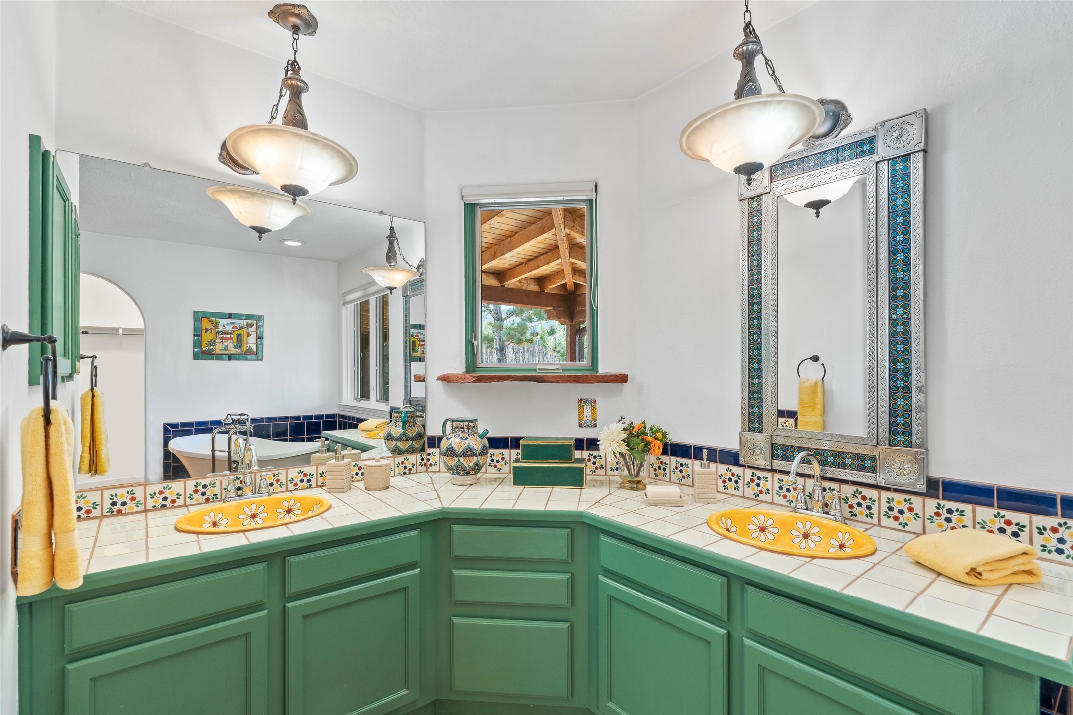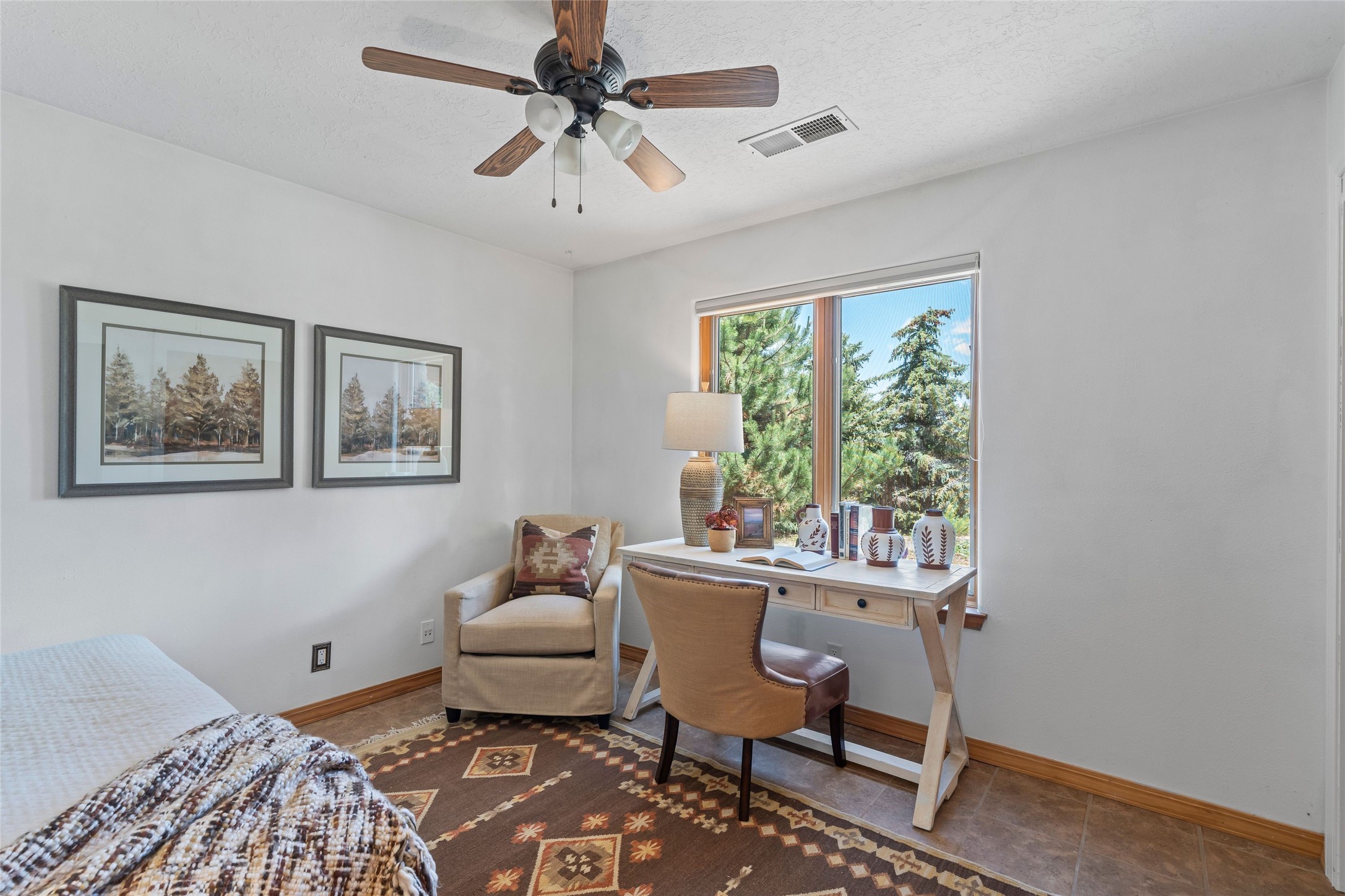 Here's the beautiful setting and property you've been looking for in Taos! An acre with great views and lots of big trees affords wonderful outdoor living, and there's a fabulous huge portal wrapping around the home. The residence is full of charm, light and bright with a very comfortable open floor plan, and the colorfully updated kitchen and bathrooms are quite appealing. The portal offers plenty of space for seating and dining, and it includes your own home spa with a new hot tub and large Finnleo sauna. The bonus is an outbuilding with a big six-car carport, plus two nice workshops, and a small storage/studio area. About three quarters of the lot is enclosed with coyote fencing and an electronically-controlled gate. The property is just a short distance to lots of hiking, biking, or horseback riding trails in the national forest. It's a convenient location close-in, yet with a lovely rural feeling, and the views of Taos Mountain and the Sangre de Cristo foothills are gorgeous!