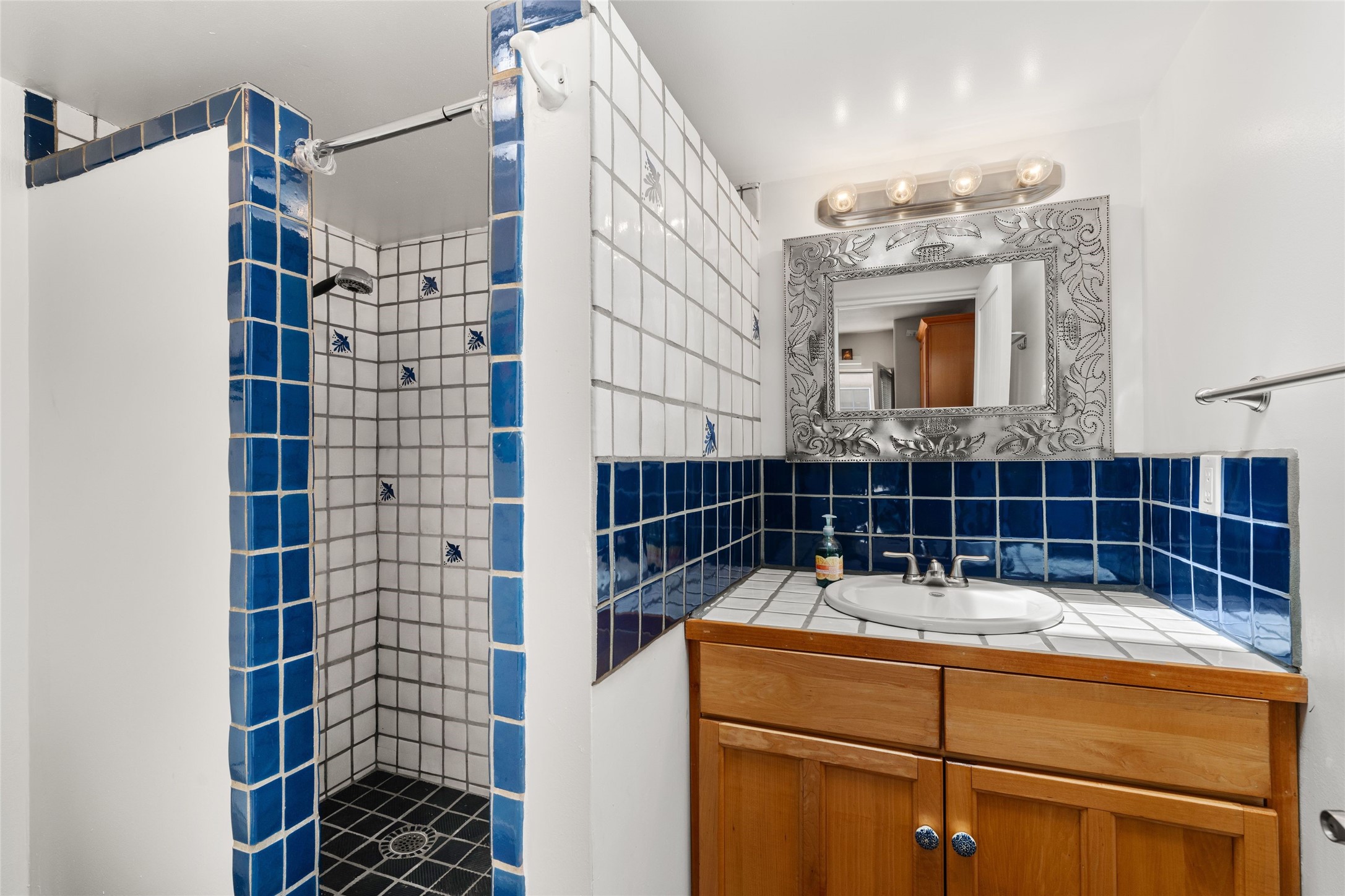 Perfect downtown pied--terre located in the heart of Santa Fe's South Capitol neighborhood. This residence combines classic architecture with modern amenities, creating an inviting atmosphere in a sought-after area. With 1,273 square feet, the main house features a thoughtfully designed layout that includes two spacious bedrooms and two bathrooms. The separate dining room offers an ideal space for gatherings, while the primary suite is a true highlight, complete with its own fireplace and French doors that open to a picturesque courtyard. Culinary enthusiasts will appreciate the well-appointed kitchen, which features a Wolf range and a built-in refrigerator. The charm extends beyond the main house with a detached guesthouse, offering 390 square feet of additional living space. This cozy retreat includes a kitchenette and a full bath, perfect for hosting visitors or enjoying personal time. Outside, the private courtyard showcases lush landscaping, featuring fruit trees that invites relaxation. It serves as a serene escape, ideal for unwinding amidst nature's beauty. An extra bonus is a basement with a washer/dryer and additional storage space. Off street parking for one car. Conveniently positioned in Santa Fe's Historic District, this property is just a stone's throw away from notable attractions, including the Roundhouse, Whole Foods, the Railyard, the Farmers Market, and the lively Santa Fe Plaza.