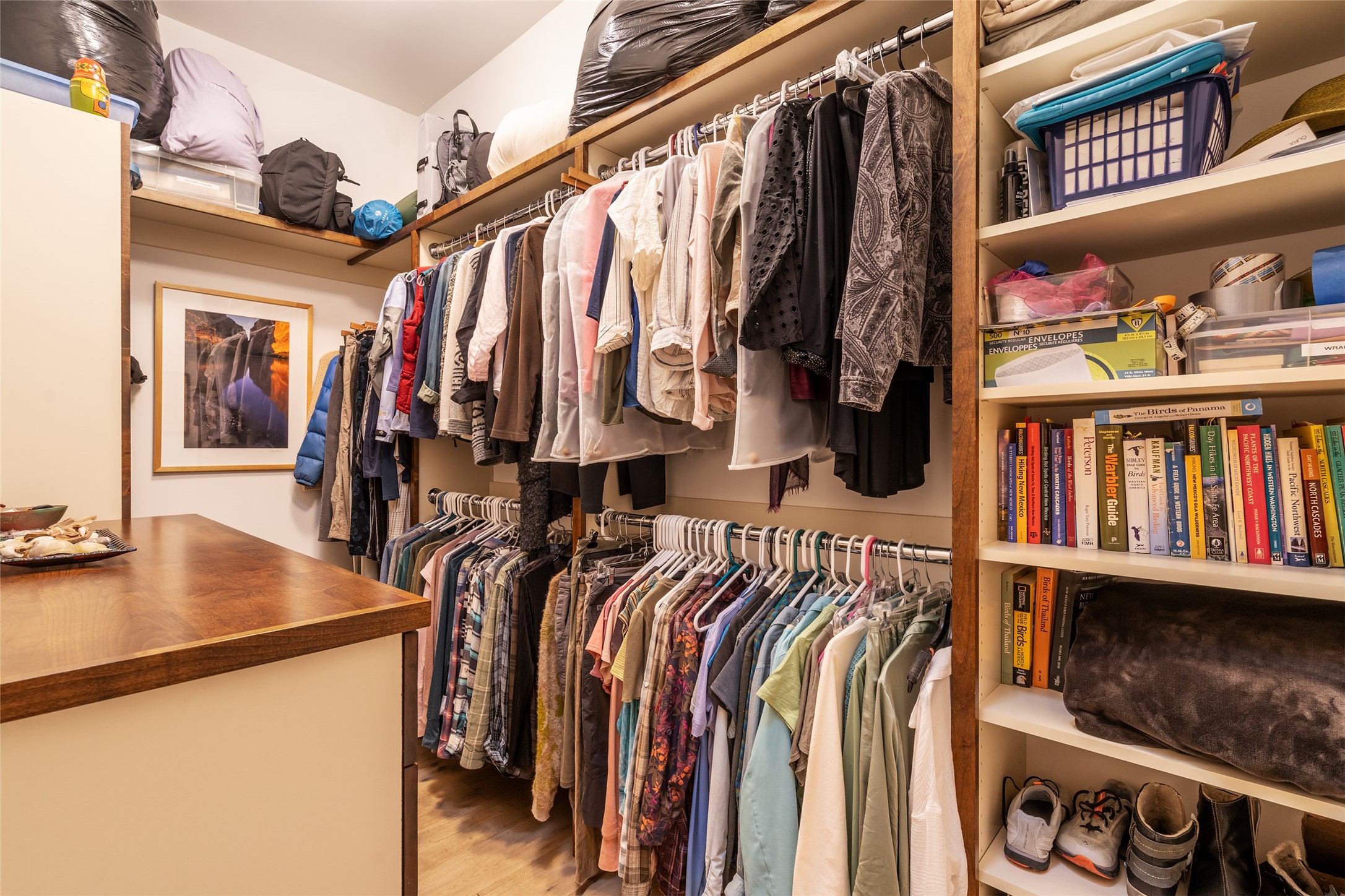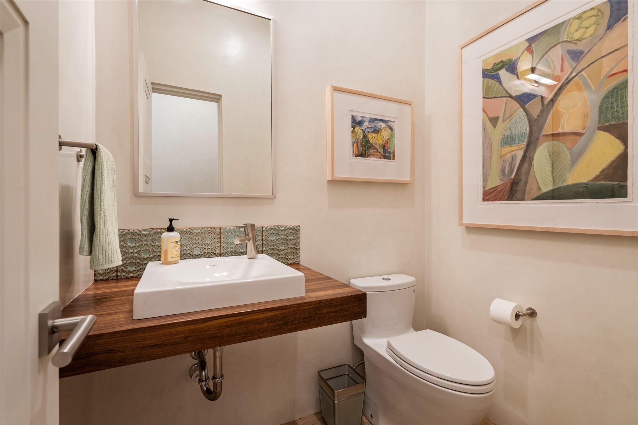Simply Sublime in the Santa Fe Foothills! Located just moments from both Canyon Road and the historic Santa Fe Plaza, this stunning contemporary residence is the perfect blend of sophisticated elegance and functional livability. Nestled in the picturesque foothills within a charmingly small, gated community, the home offers sweeping views of the Sangre de Cristo Mountains through expansive French doors that flood the interior with natural light. Beautifully designed with a modern sensibility, the open-concept floor plan showcases wide-plank French Oak flooring, smooth hand-troweled plaster walls, and impeccable attention to detail throughout. The chef's kitchen is a true showstopper, featuring Calcutta marble countertops, custom Walnut cabinetry, and premium appliances including a new 36-inch Fisher & Paykel induction range.The spacious primary suite is a serene retreat with direct access to a private rear courtyard surrounded by lush, tranquil landscaping--ideal for morning coffee or evening reflection. The spa-like primary bath includes dual sinks set into bespoke wood countertops, a luxurious soaking tub, and a generous walk-in shower. The ensuite guest bedroom also opens to its own private outdoor seating area, offering a peaceful escape for visitors. Additional features include a new, 2023 TPO roof, whole-house LED lighting, electronic water softener, refrigerated air conditioning, powder room for guests, and an attached two-car garage. Every element of this home has been thoughtfully curated--creating a truly exceptional contemporary sanctuary in one of Santa Fe's most coveted locations.