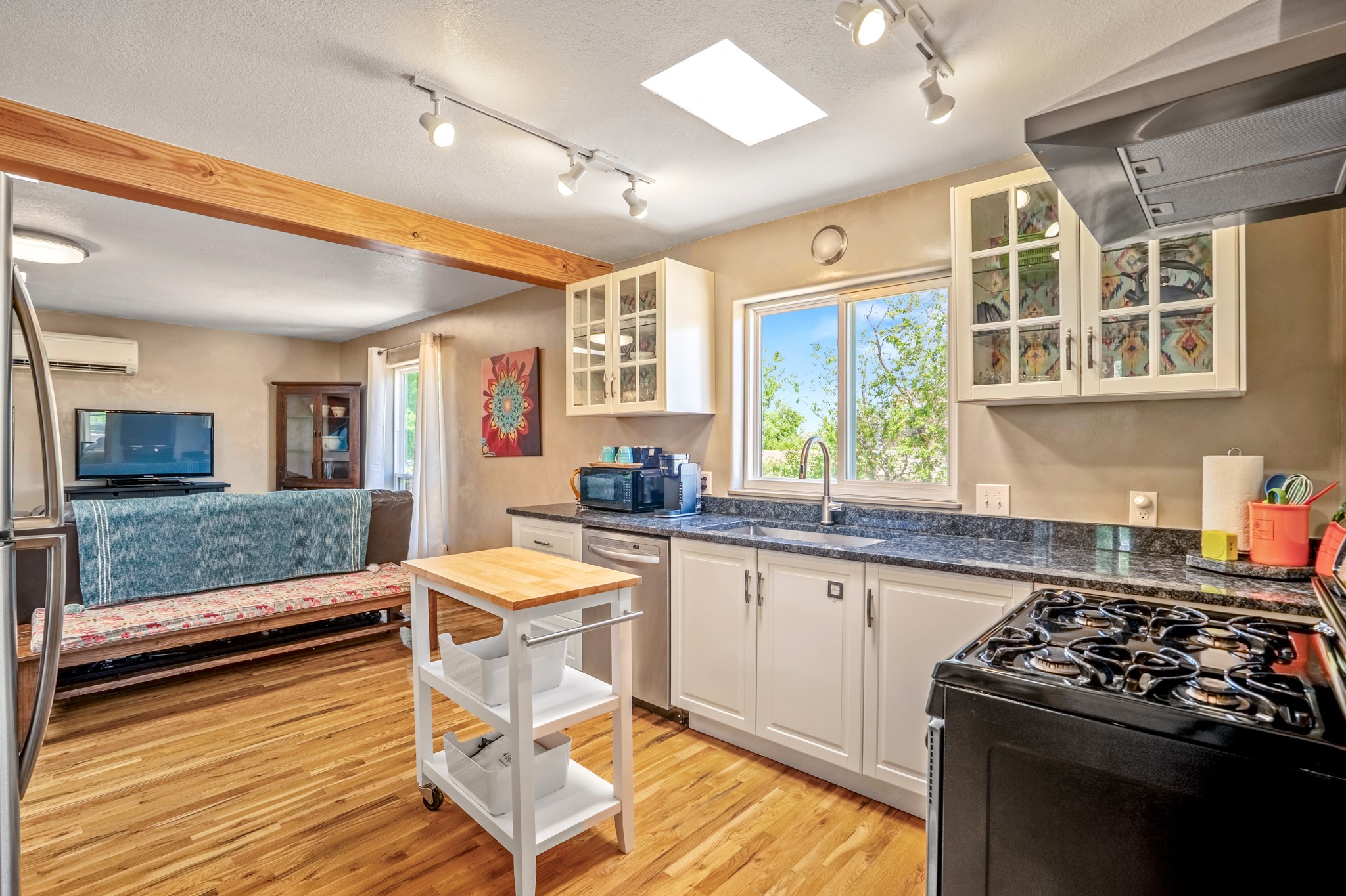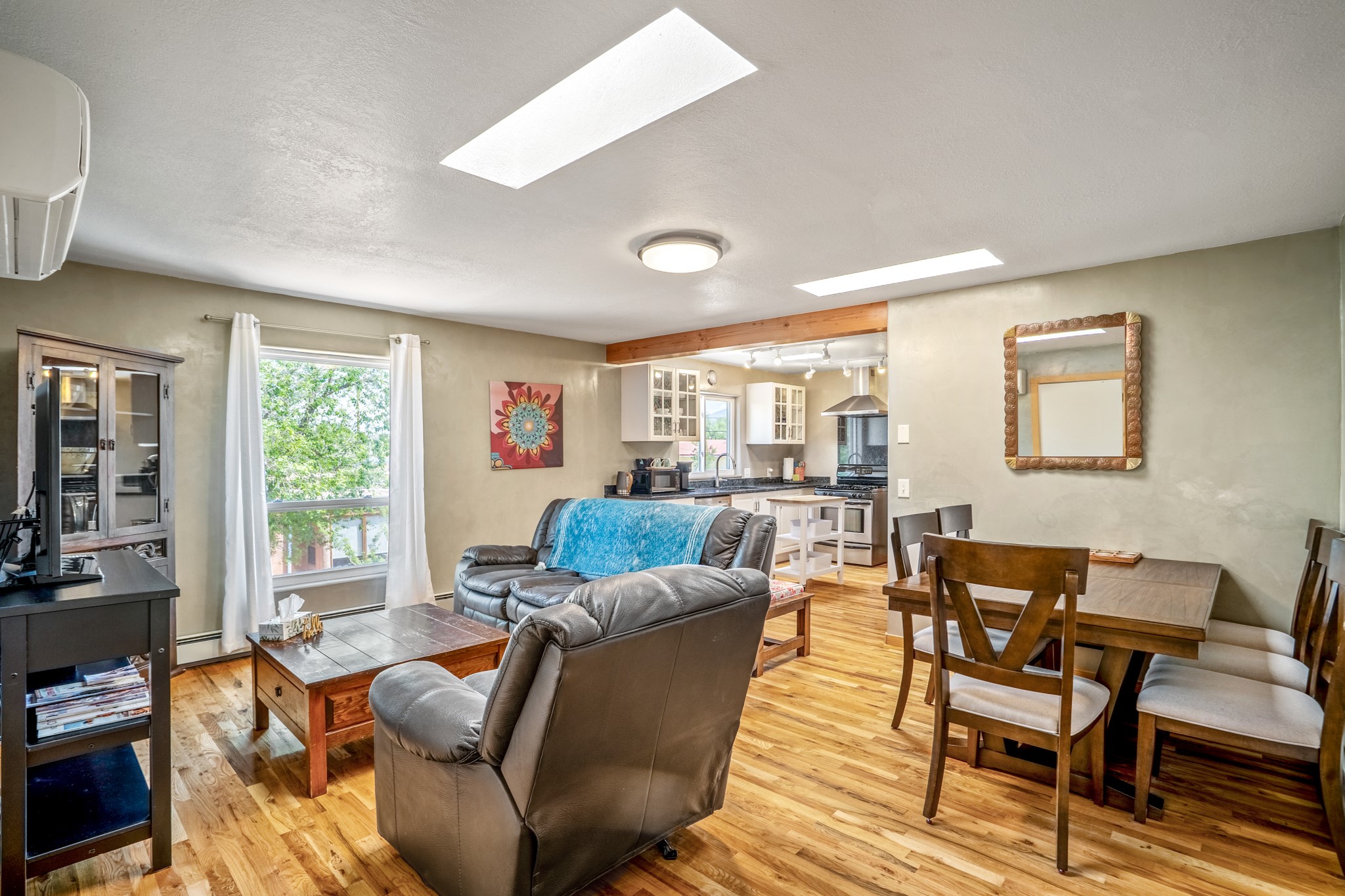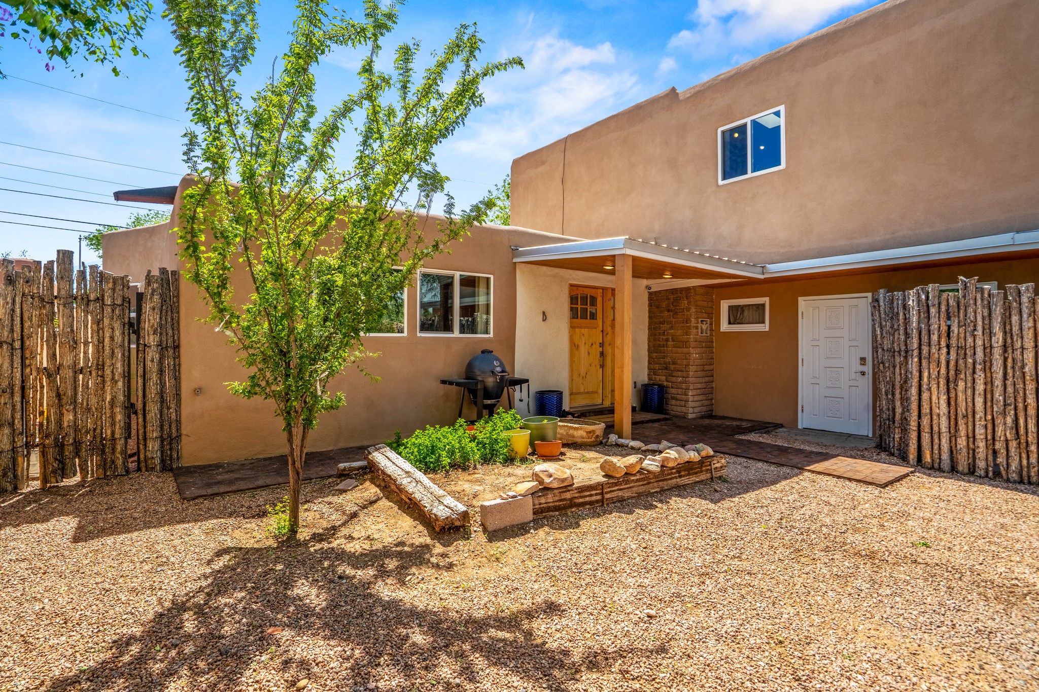 Versatile Income Property Just One Block from the Railyard District! Just steps from the vibrant Santa Fe Railyard, this thoughtfully renovated compound offers flexibility, privacy, and excellent income potential. The single-level 3-bedroom, 2-bathroom main residence spans 1,487 sq. ft., with an open-concept kitchen/living/ dining area featuring beautiful Venetian plaster walls, butcher block countertops, and direct access to a private back courtyard. The primary suite includes a spacious walk-in closet and its own secluded patio. Comfort is ensured year-round with in-floor radiant heating and central A/C. Set to the side for maximum privacy, the 1,192 sq. ft. guest house offers 3 bedrooms, 2 bathrooms, a full kitchen, its own laundry, and a serene courtyard shaded by tall trees--an ideal retreat for guests or a proven income-producing rental. Separating the two dwellings is a 300 sq. ft. workshop/storage room that adds even more functionality to the property.This is a rare opportunity to live just one block from the Railyard--with space to live, host, create, or invest.