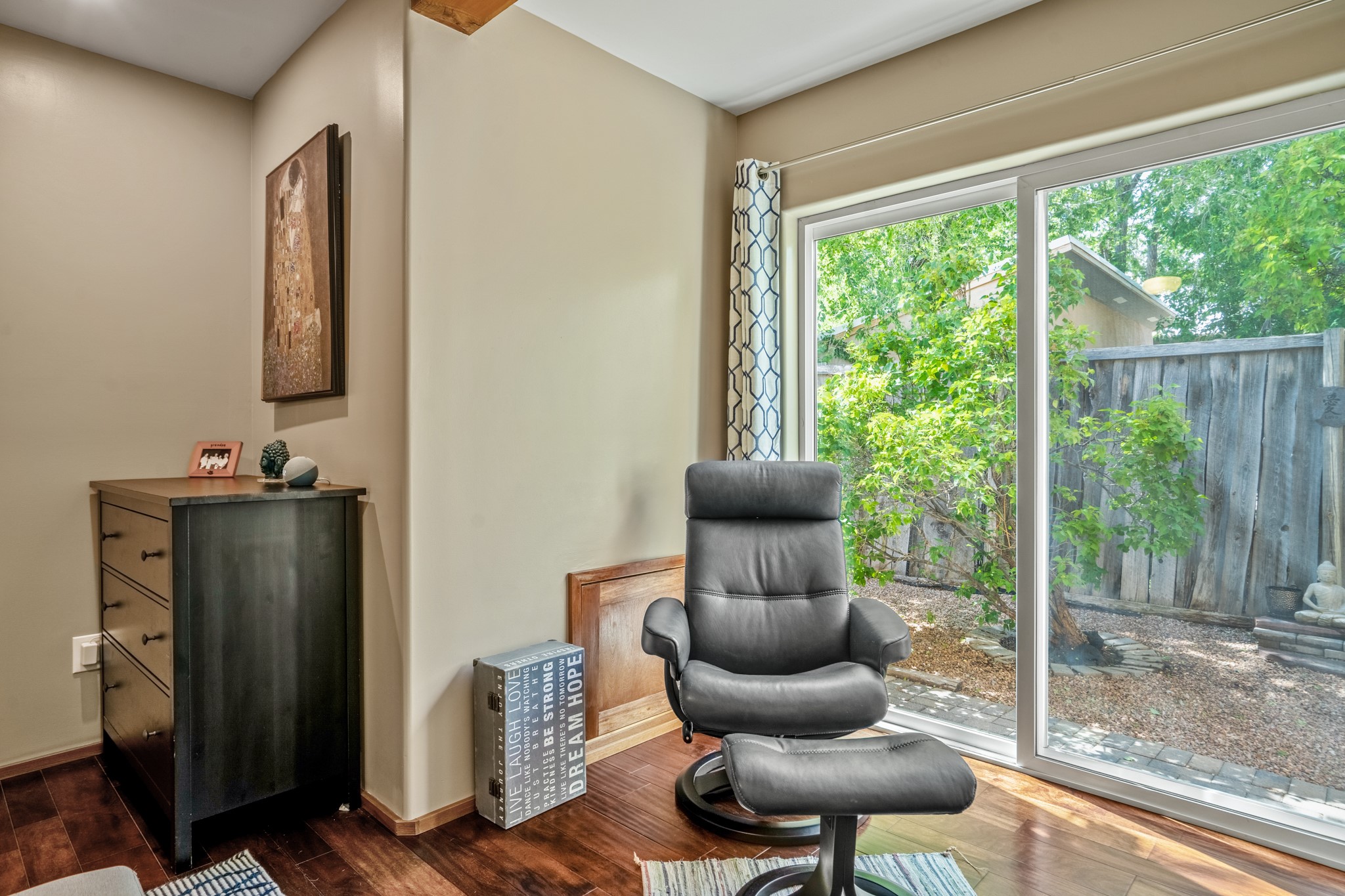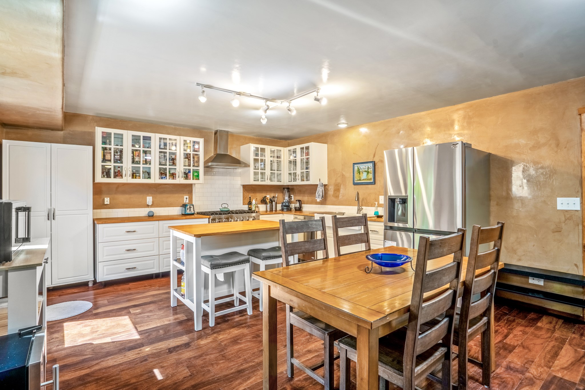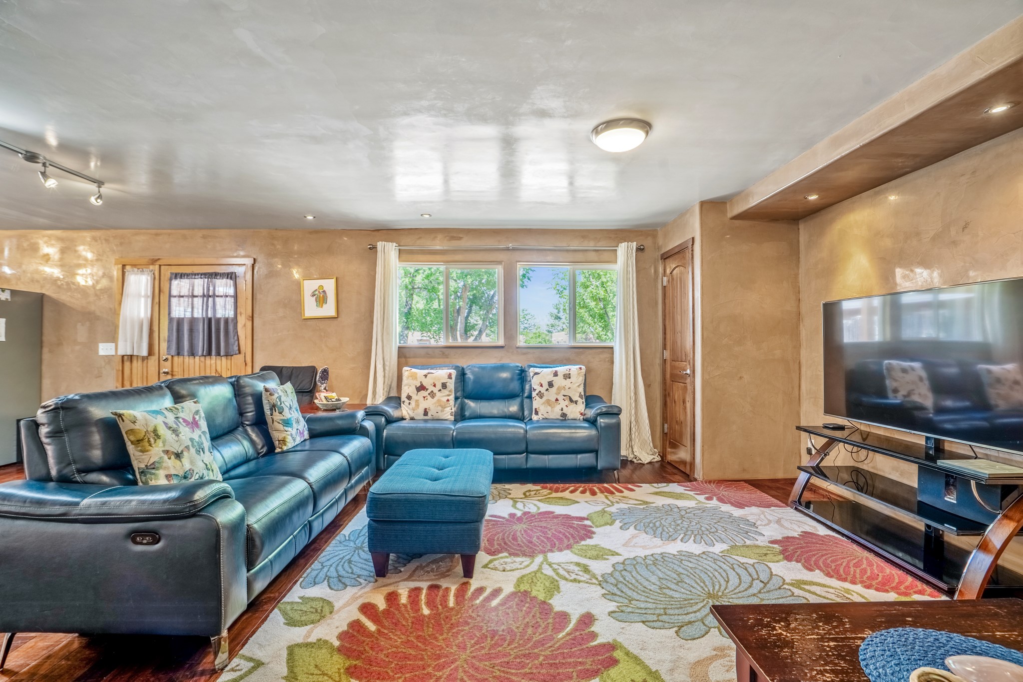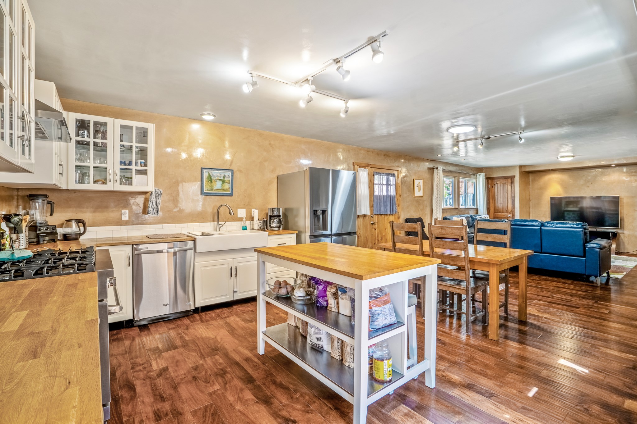 Versatile Income Property Just One Block from the Railyard District! Just steps from the vibrant Santa Fe Railyard, this thoughtfully renovated compound offers flexibility, privacy, and excellent income potential. The single-level 3-bedroom, 2-bathroom main residence spans 1,487 sq. ft., with an open-concept kitchen/living/ dining area featuring beautiful Venetian plaster walls, butcher block countertops, and direct access to a private back courtyard. The primary suite includes a spacious walk-in closet and its own secluded patio. Comfort is ensured year-round with in-floor radiant heating and central A/C. Set to the side for maximum privacy, the 1,192 sq. ft. guest house offers 3 bedrooms, 2 bathrooms, a full kitchen, its own laundry, and a serene courtyard shaded by tall trees--an ideal retreat for guests or a proven income-producing rental. Separating the two dwellings is a 300 sq. ft. workshop/storage room that adds even more functionality to the property.This is a rare opportunity to live just one block from the Railyard--with space to live, host, create, or invest.