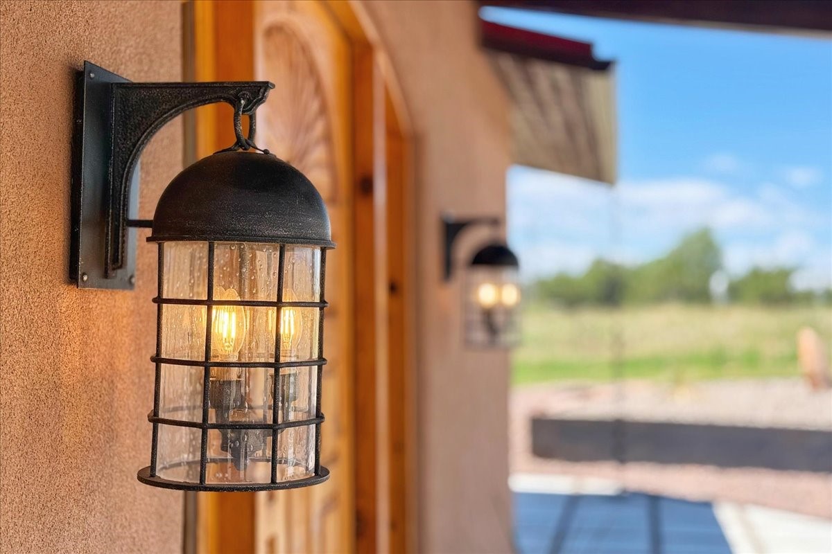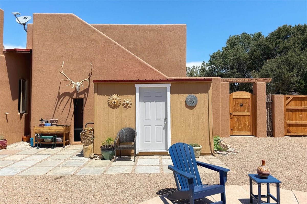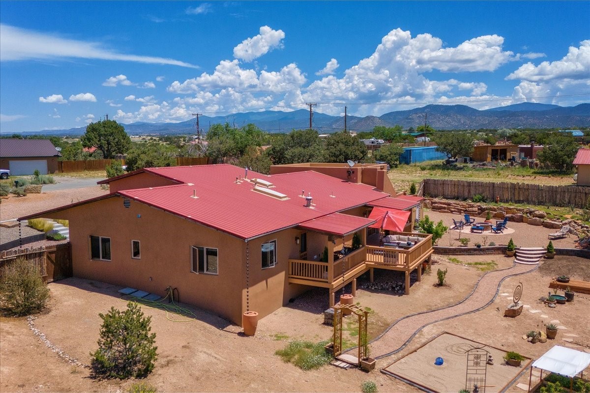 Discover this stunning updated home in the heart of Santa Fe on 1.4 acres of privacy, with Santa Fe touches and no HOA. This exquisite home boasts of natural light and plaster walls, 14' Ft. Ceilings, custom paint throughout, natural stone flooring in living room and kitchen, beautiful kitchen has granite counter tops, 6-burner Jenn Air range, brand newSmart-Double oven, Dual pane windows, updated flooring in every bedroom, all bedrooms have private suites, updated fixtures, two of three tubs are jetted, it's time to relax when you walk into your large primary suite, two separate walk-in closets, Kiva fireplace, each side of the bathroom has custom vessel sinks, separate shower, double doors that will lead you onto the brand new deck, radiant floor heating throughout including heating the garage for those cold nights, 6-zone heating zone, indoor laundry room, tankless water heater, New RO system, New water softener, New stucco 2024 with transferable warranty, propanol roof, stairs that lead you onto the TPO roof above the garage walk on up the stairs enjoy a 360 degree view of Sangre Cristo Mountains, walking and biking trails, new coyote fence and landscaping, new gas fire pit for those cozy nights, new concrete front patio, new screen doors, private well, new well pump, this home offers both luxury and convenience, 10 minutes from the plaza and major shopping. See attached list of upgrades. This home is turnkey and complete. Schedule your private tour today!