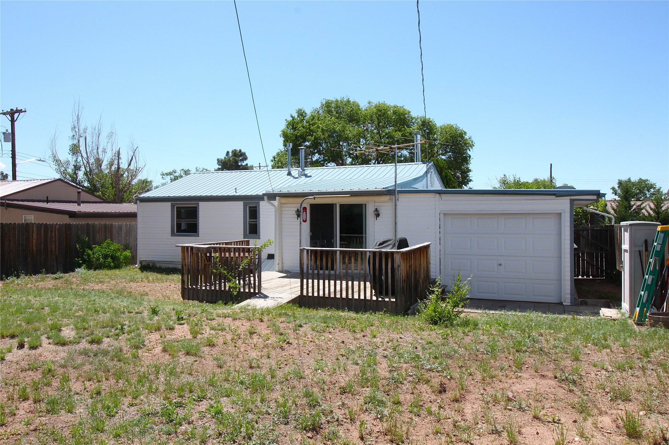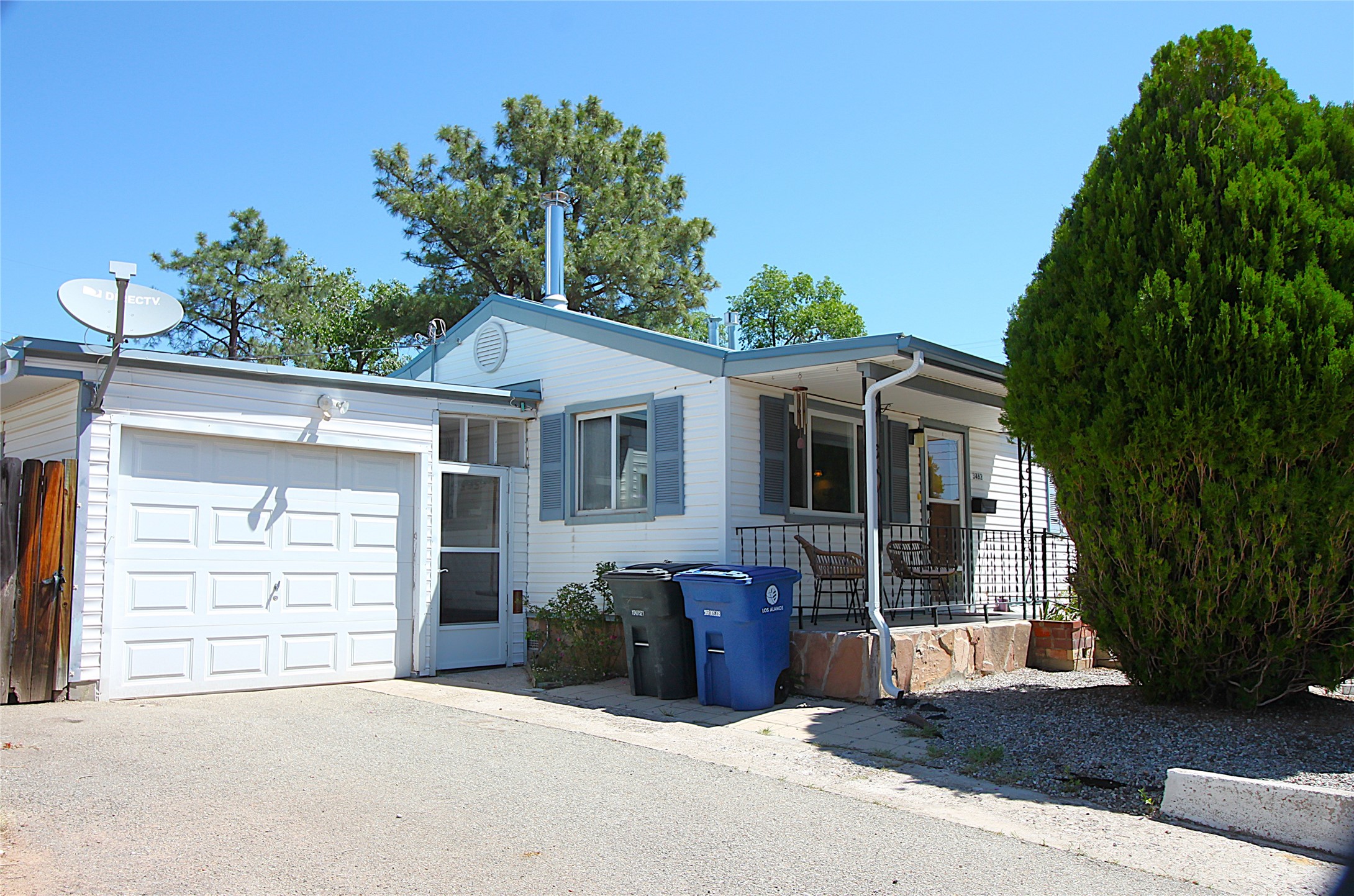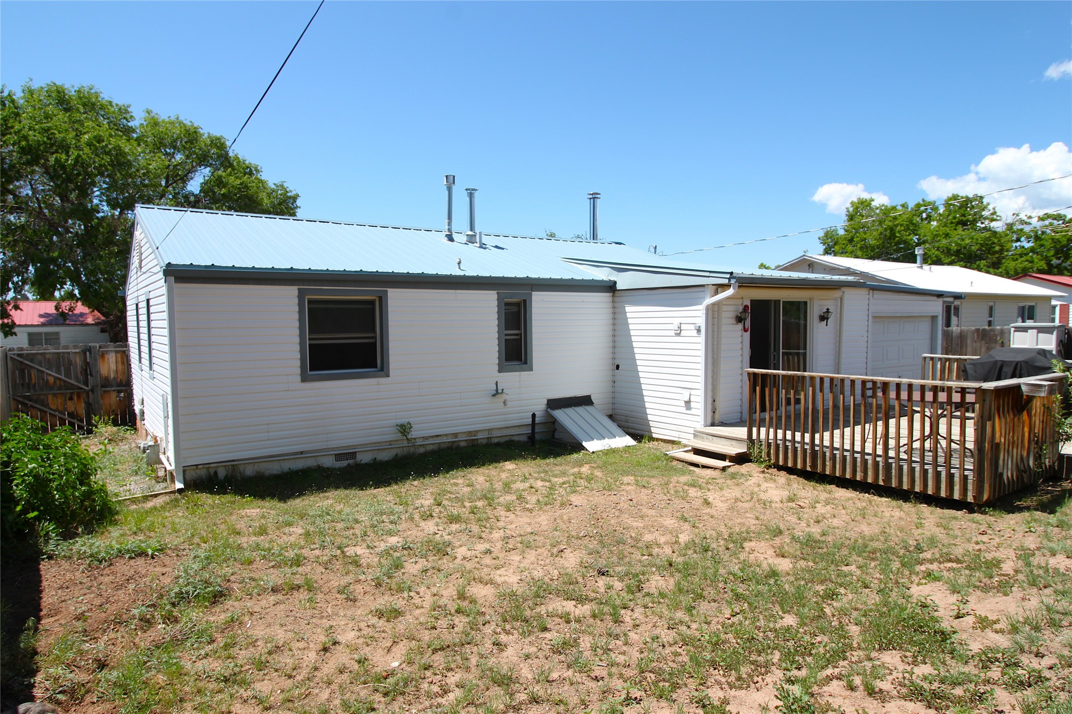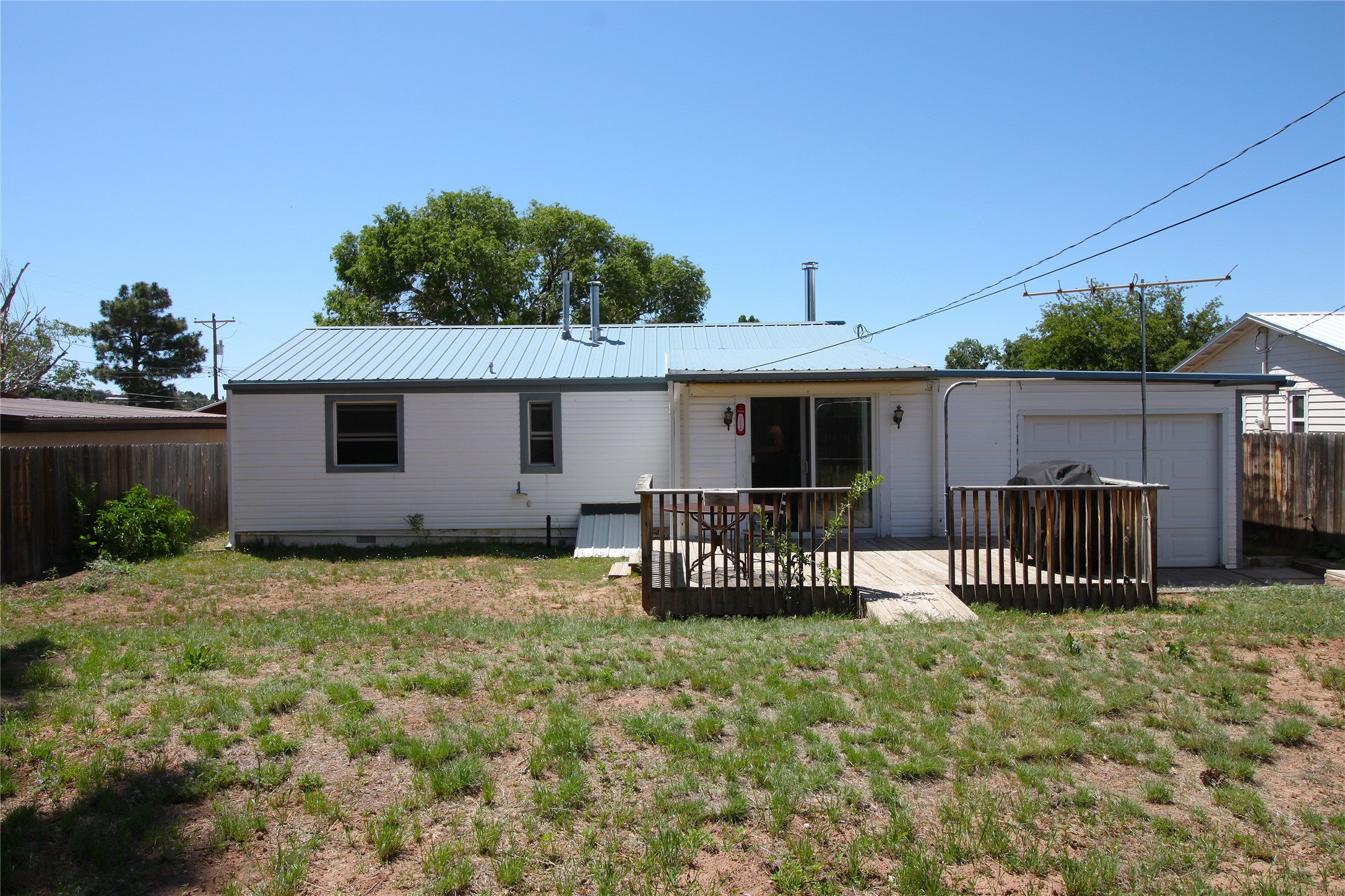Thoughtfully updated 2-bedroom, 1-bath home, with attached garage, ideally located just minutes from Los Alamos High School, downtown, and LANL. The warm and inviting living area features a wood-burning catalytic stove, wall-mounted heating unit, double-pane windows, and a ceiling fan for year-round comfort. The expanded kitchen offers ample cabinet and counter space, a generous pantry, and a dedicated area for a washer and dryer. Enjoy easy access to the attached garage or go through the sliding glass door to a spacious back deck--perfect for relaxing or entertaining. The deck features mountain views and a retractable awning, extending your living space on sunny days. The fenced backyard provides plenty of room for pets, gardening, or play, and includes a storage shed for added convenience. The bathroom has been tastefully updated, and newer interior doors throughout the home give it a fresh, modern feel. The attached garage includes front and rear garage doors for easy backyard access, and an extra driveway on the side of the home provides additional parking. This home offers comfort, convenience, and modern updates--all in an excellent location. Schedule your showing today!