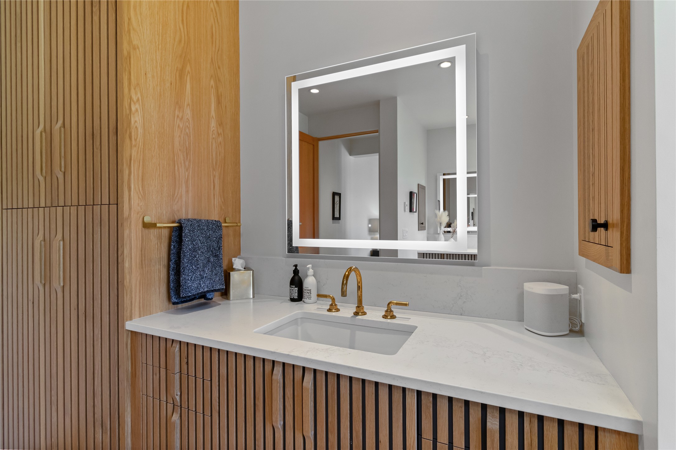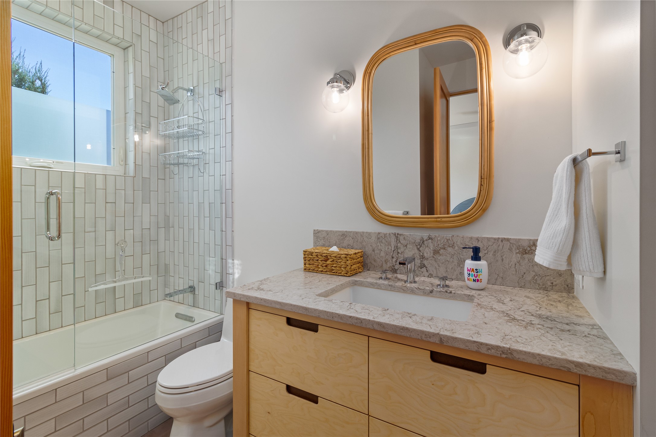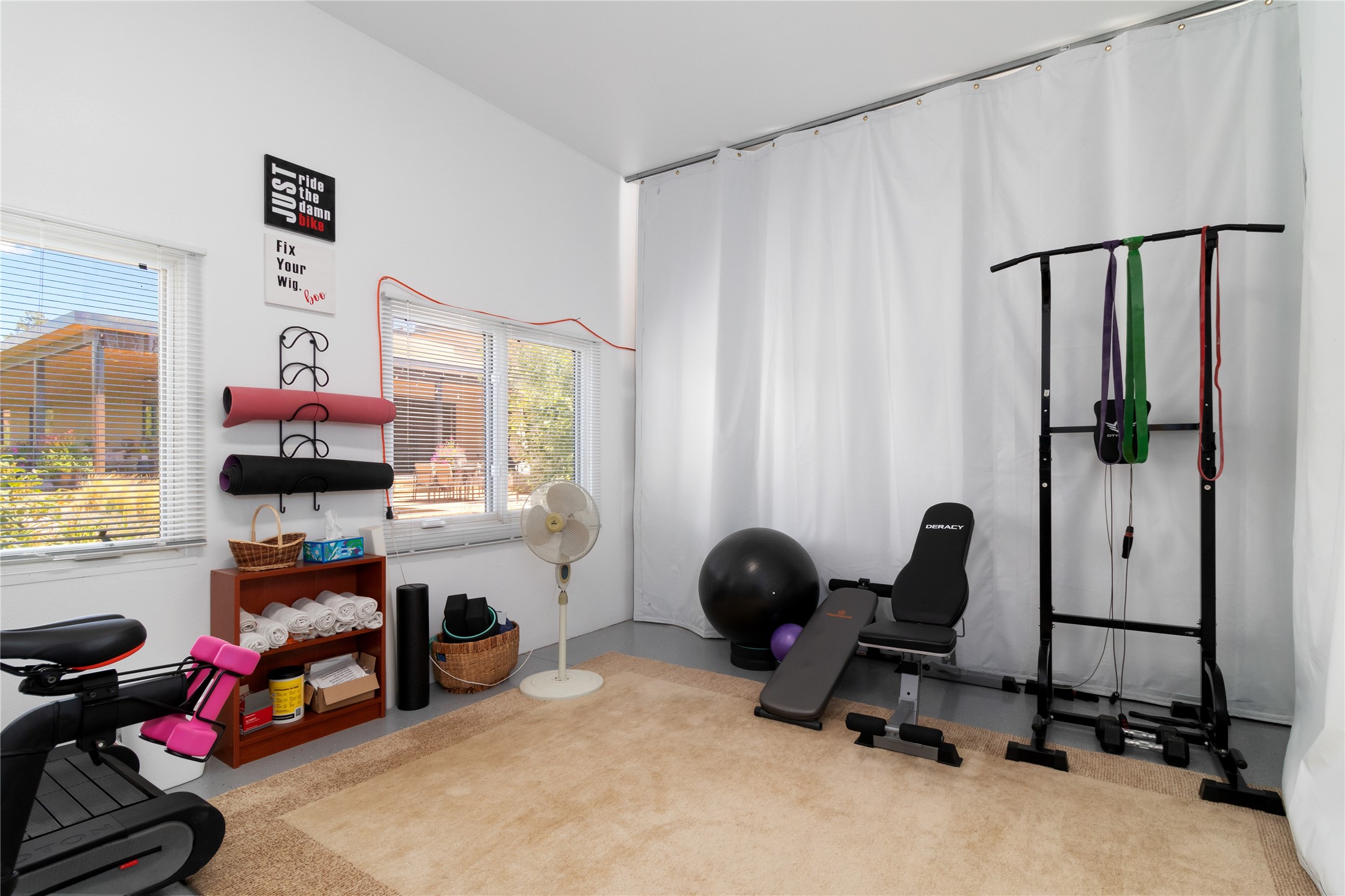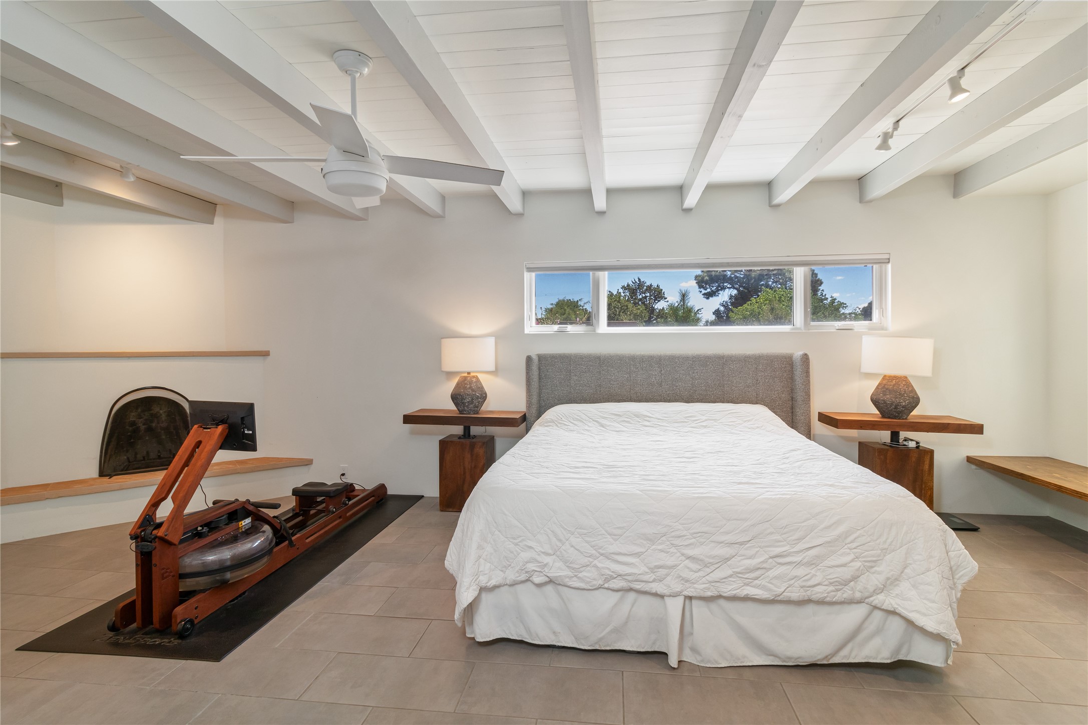 This exquisite 1-acre gated compound that's centrally located & just 2 miles from the historic Santa Fe Plaza features a masterfully designed main residence, spacious guest home, and 6 garage bays for collectors or creatives. The main home offers ~3,875 sq. ft. of refined living with Venetian plaster walls in public areas, custom cabinetry throughout, and 8-ft interior doors. The living and dining rooms feature an impressive dual aspect Ortal fireplace. Soaring ceilings and a wet bar with beverage drawers complete the living room, which opens to a ~1,700 sq. ft. covered patio. Multi-slide door systems open to this impressive patio, that includes built-in Bromic heaters and a 42 inch Wolf grill. The chef's kitchen is anchored by a Lacanche 7-burner stove, pot filler, Sub-Zero refrigerator and freezer, Wolf steam oven, Cove dishwasher and hot/cold tap. The butler's pantry has an abundance of storage, undermount lighting and Red/White EuroCave wine refrigerators. A serene primary suite includes a steam shower, soaking tub, room sized walk-in closet with island, and patio access. Smart touches include Sonos surround system, California Closets, electric patio shades, and a whole-house water filtration system. The guest house (~1,460 sq. ft.) offers generous privacy with a large living area, bedroom, and its own designer fireplace. An attached garage/storage wing (~1,853 sq. ft.) includes a standard 2-car bay plus an oversized 2+ bay garage with 10'x12' doors--ideal for small RVs, boats, or a home gym/studio. Both main and guest garages include EV hookup capabilities. Outdoors, enjoy lush landscaping by McCumber Fine Gardens, fruit trees, raised garden beds, a custom firepit and water feature, and ample space for entertaining--easily accommodating up to 100 guests. Additional highlights include steel electric gates, frosted glass garage doors, radiant heat in main home, and the most luxurious laundry/craft room you will find. This gated retreat is a one-of-a-kind compound.