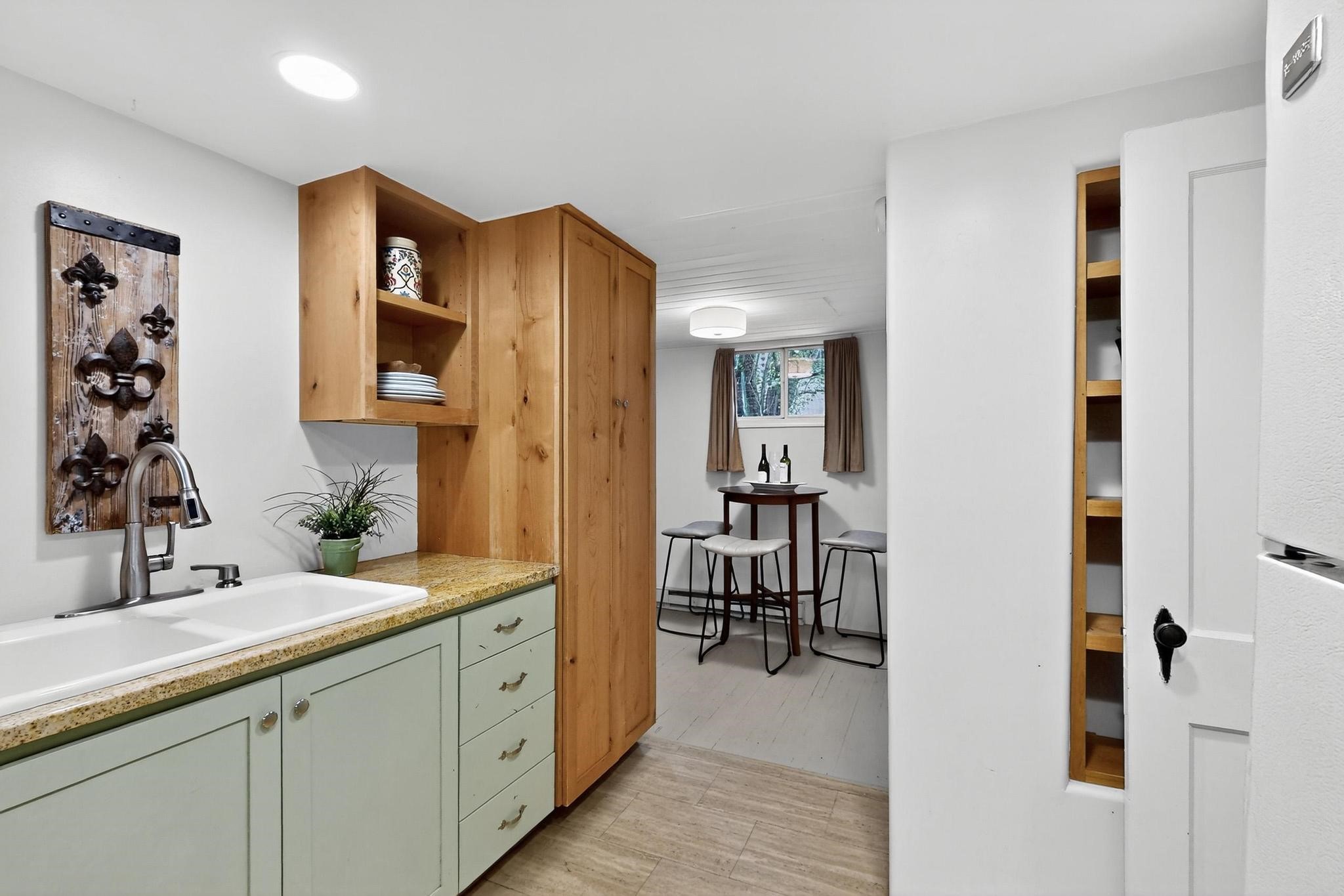 Bright Beautiful Condo with Casita in desirable South Capital in a beautiful small compound with mature trees and close proximity to the Plaza. This former residence was built in 1940 and has been converted into condos consisting of five units. These two units offer so many possibilities, live in one and rent the other, use one as for guests when they visit, or to have a parent close by. A very good price when divided by two units in the desirable South Capital. The main Condo 1A, 1 Bd, 1 bath, welcomes you as you enter through the french doors into a bright large living room with tall windows, wood floors, hand-hewn beams and a grand fireplace. The adorable kitchen has a country copper sink, granite countertop, lively deep red lower cabinets and light wood upper cabinets. Casita 1B, 1 bd, 1 bath has painted wood floors, an impressive fireplace, charming kitchen, and separate entrance. Each unit has its own private courtyard, they are the only ones in the compound that have this feature. This rare opportunity should not be missed. HOA fees include all utilities for both units, Electric, gas, water, maintenance, landscaping and insurance, the amount varies based on usage etc and is billed every 6 months.