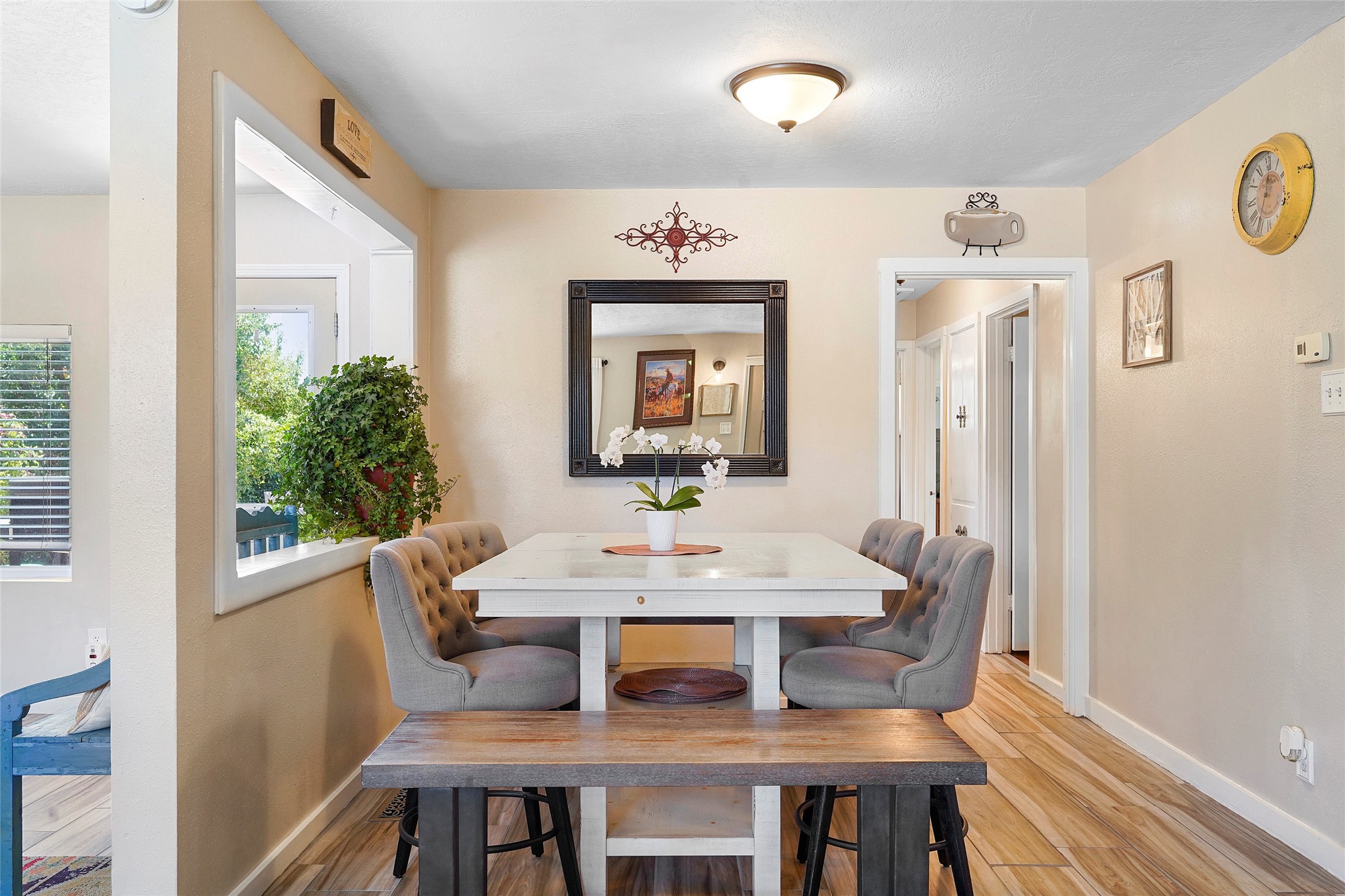 Come be blown away by the upkeep and charm of this beautiful Eastern Area Single Family home in downtown Los Alamos! New flooring throughout, the owners have meticulously maintained and updated this home. 3 bedrooms, 2 bathrooms, 1082 Pinon Loop also has 2 bonus rooms! One is right off the kitchen - the closed-in carport that is freshly tiled! It has 2 doors that lead to the exterior of the home. There's a large pantry with built in shelving, and a separate laundry room! The other bonus room is located off one of the guest bedrooms. It can be used as an office, a playroom, a library - whatever you'd like! Both bathrooms have been updated with tasteful finishes and beautiful tile work. The primary bedroom has plenty of room for all your furniture with a double closet spanning the width of the bedroom. And don't miss all of the plants in the front of the home as well as off the stamped concrete patio. You don't want to miss this house! Schedule a showing today!
