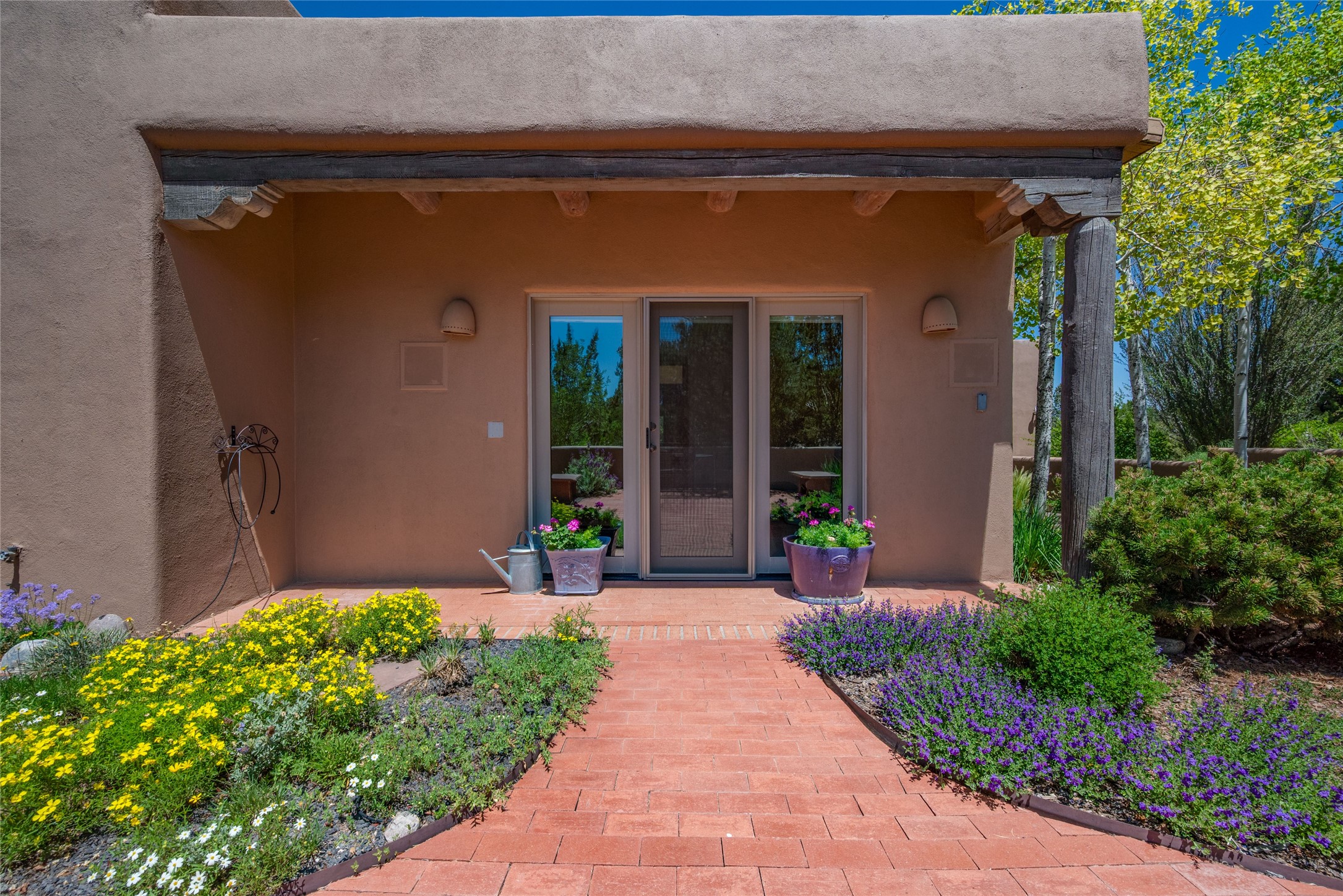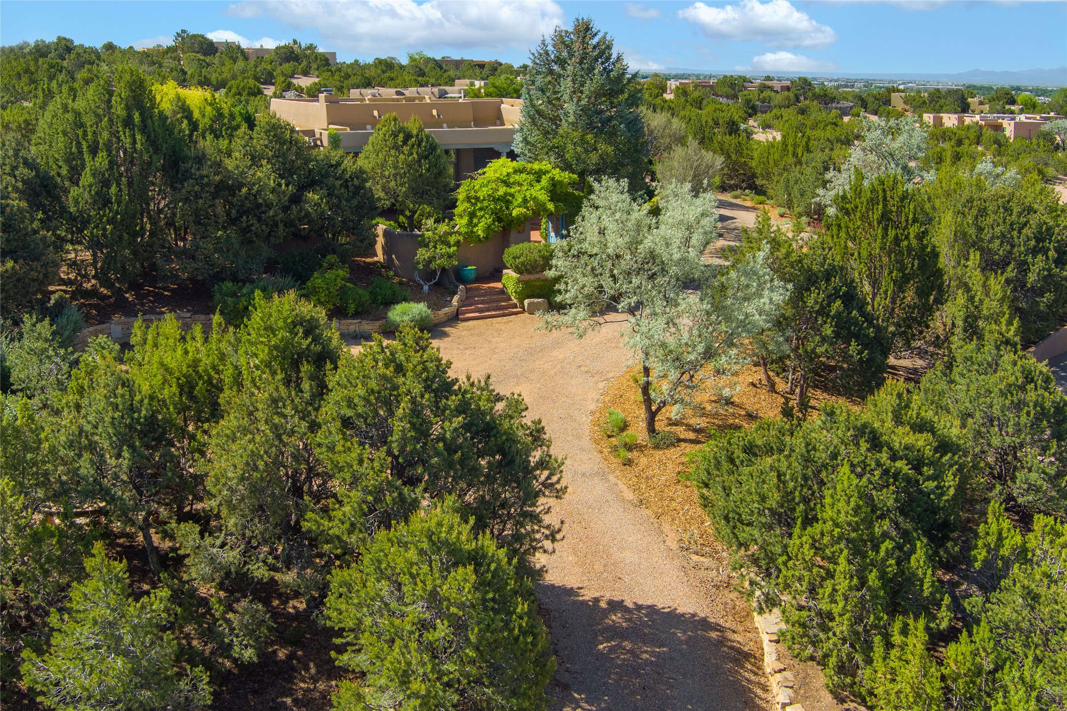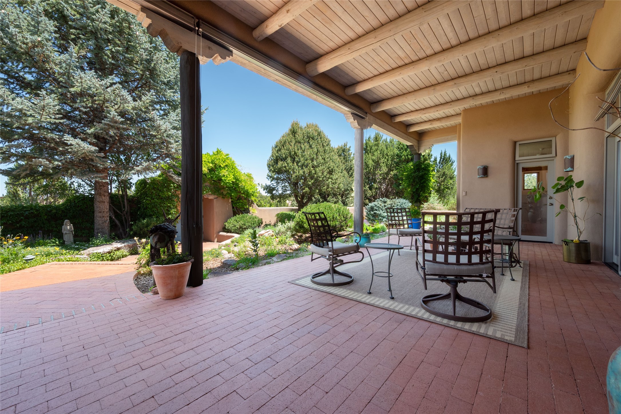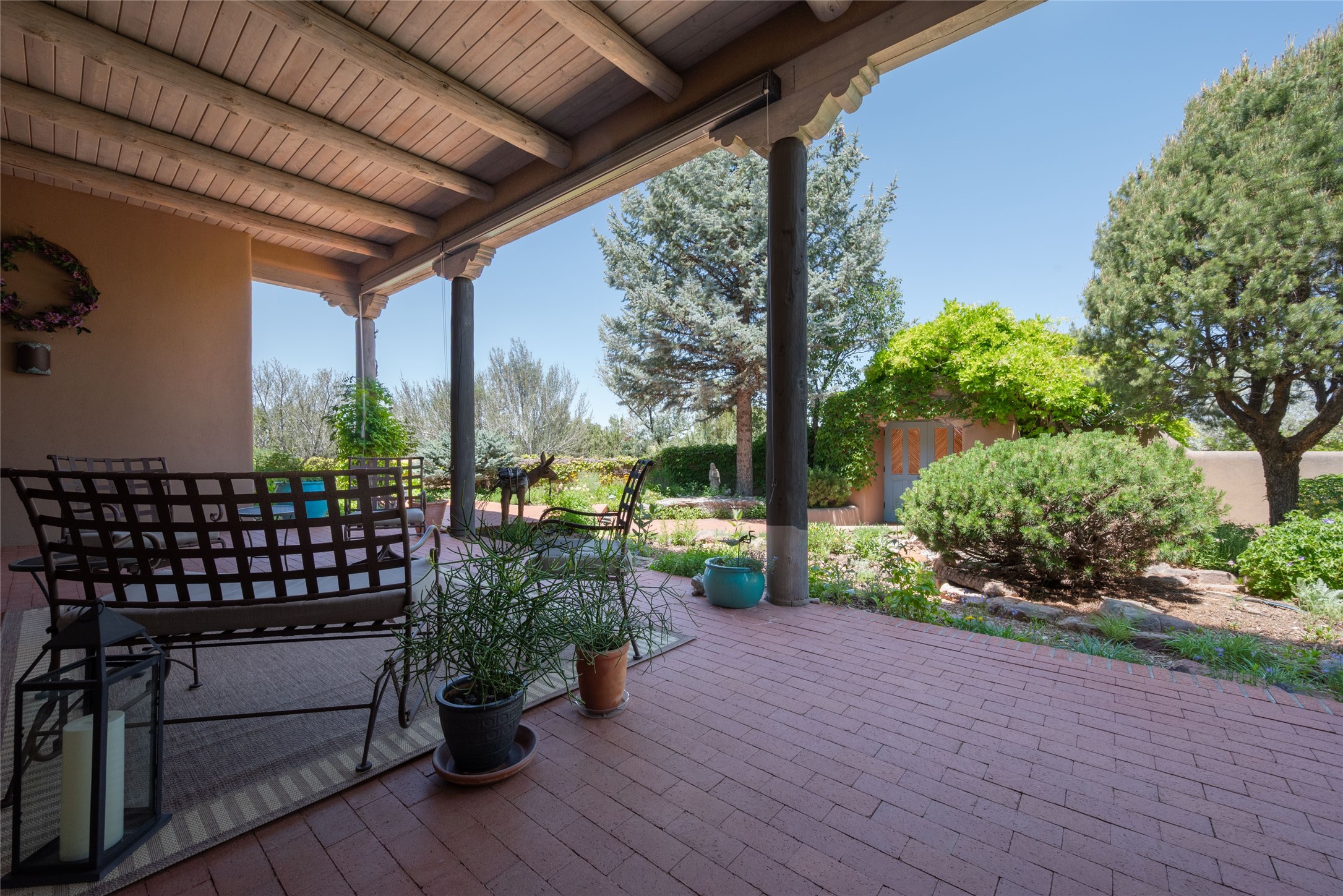 Nestled in a private & beautifully landscaped setting, this 3-bedroom, 2.5-bath custom home offers 3,500 square feet of thoughtfully designed living space. Built with both comfort & style in mind, the residence is set within a master gardener's haven--lushly planted & fully irrigated to maintain the vibrant landscape.You'll appreciate the sense of seclusion & tranquility. This home is essentially single-level, with just 3- interior steps leading to the kitchen & dining area. Inside, Southwest-inspired design elements abound--arched passages & classic kiva fireplaces add character & charm. 9-exterior doors invite natural light & seamless indoor-outdoor living, while Hurd windows frame picturesque garden views from nearly every room.Designed for both everyday living & entertaining, the home features multiple outdoor portals--ideal for gatherings in any season. One portal includes a built-in kiva fireplace & offers a built-in BBQ station--perfect for alfresco dining & sunset cocktails.The spacious kitchen opens to the dining area & includes ample cabinetry, & easy access to outdoor entertaining spaces. A wet bar enhances the flow for hosting, & a dedicated yoga room--complete with direct patio access--invites wellness & retreat.The primary suite & secondary bedrooms offer comfort & privacy, while the two-car garage provides not only vehicle storage but also direct access to mechanicals and additional storage space--ideal for tools, or seasonal items. The home also boasts a fantastic laundry room, built-in cabinetry & counters--yet another area where storage is well-considered.Homeowners enjoy the added benefit of an HOA that includes septic system inspections & scheduled cleanouts.Elegant yet functional, private yet accessible--this timeless home blends Southwestern charm with custom quality, all wrapped in an oasis-like landscape cultivated with care. A rare find for discerning buyers who appreciate craftsmanship, thoughtful details, and the art of outdoor living.