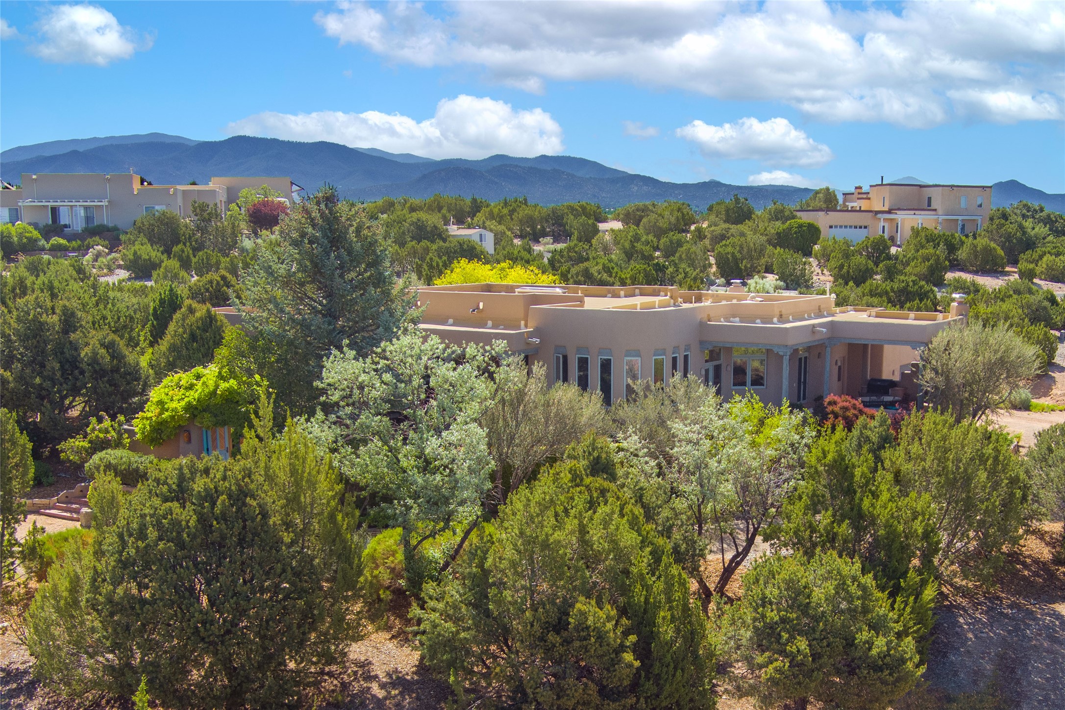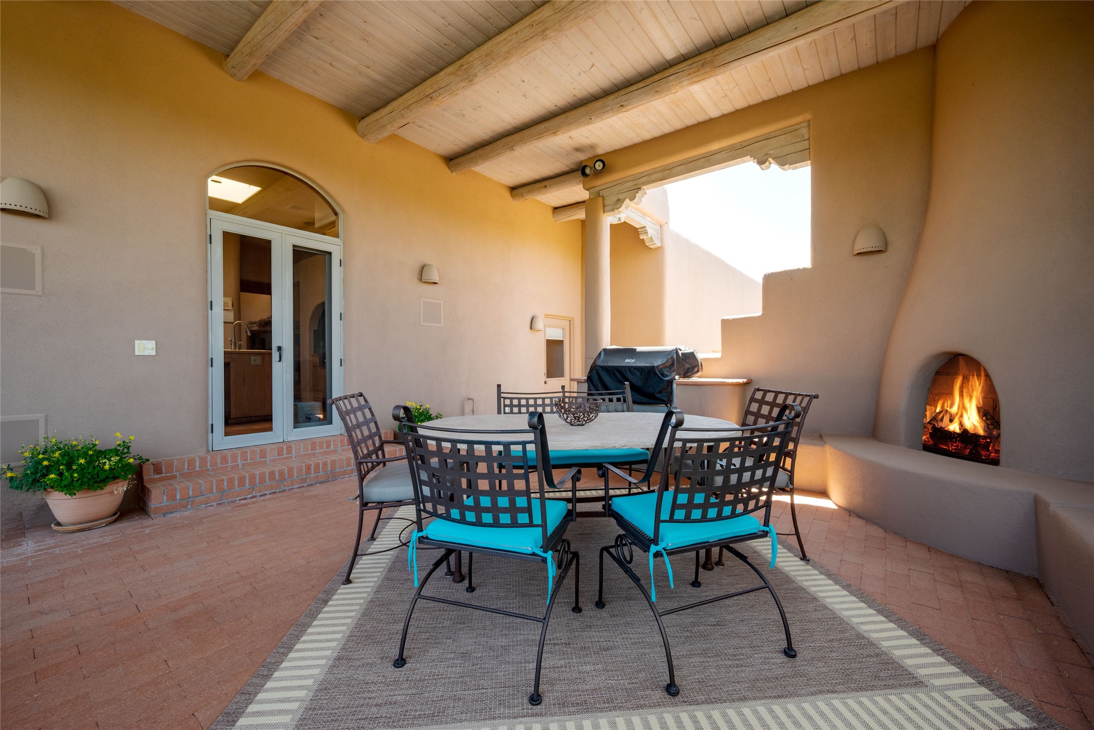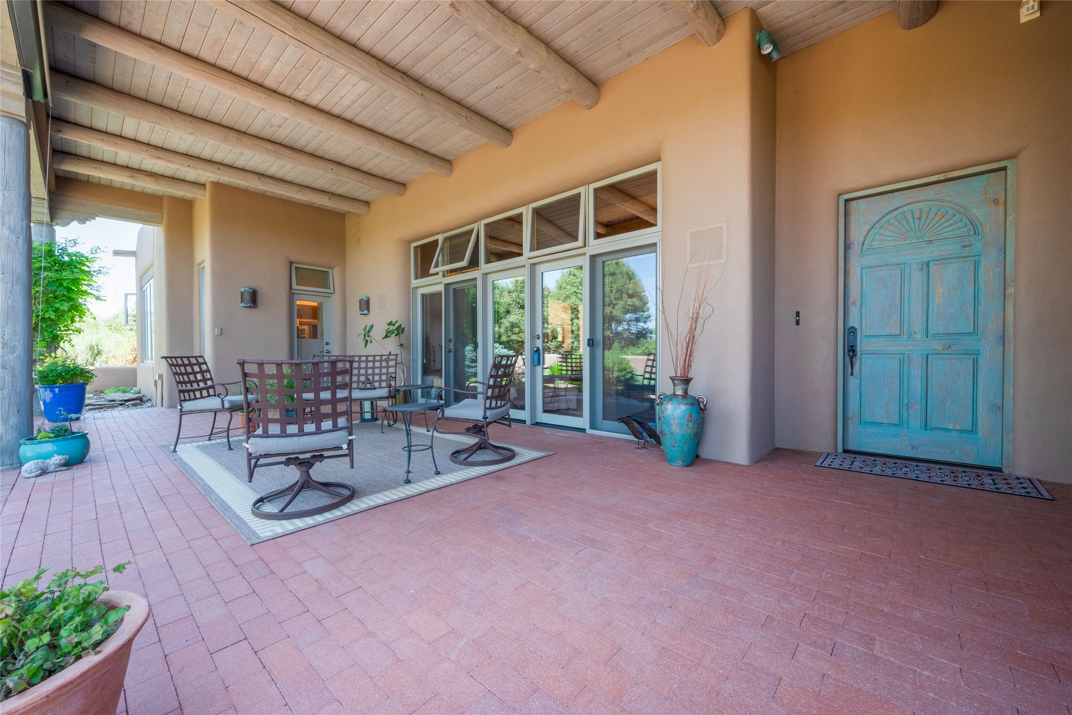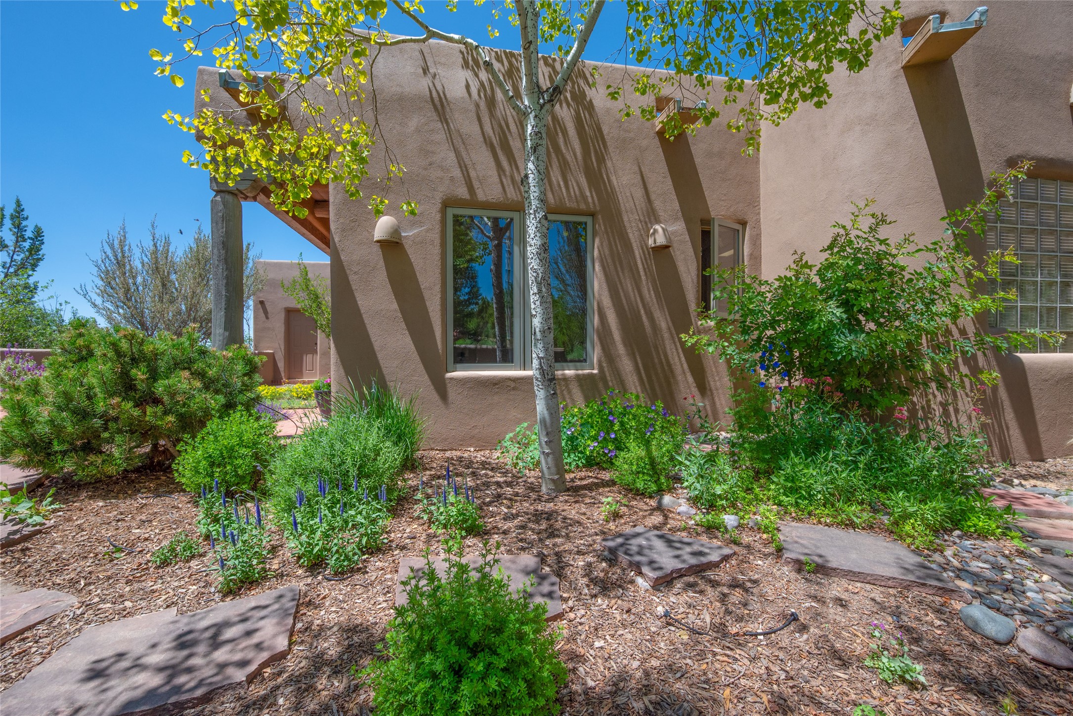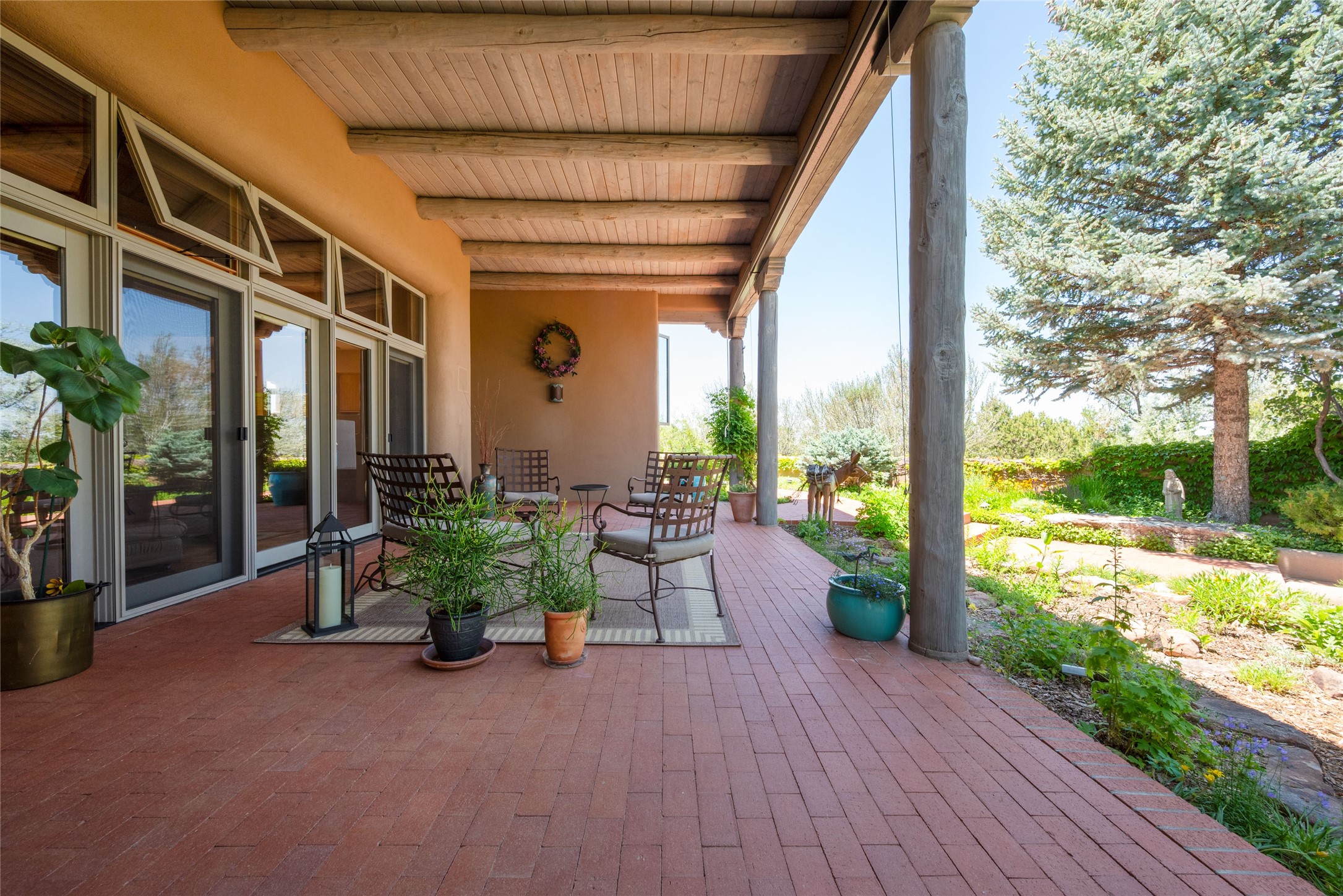 Nestled in a private & beautifully landscaped setting, this 3-bedroom, 2.5-bath custom home offers 3,500 square feet of thoughtfully designed living space. Built with both comfort & style in mind, the residence is set within a master gardener's haven--lushly planted & fully irrigated to maintain the vibrant landscape.You'll appreciate the sense of seclusion & tranquility. This home is essentially single-level, with just 3- interior steps leading to the kitchen & dining area. Inside, Southwest-inspired design elements abound--arched passages & classic kiva fireplaces add character & charm. 9-exterior doors invite natural light & seamless indoor-outdoor living, while Hurd windows frame picturesque garden views from nearly every room.Designed for both everyday living & entertaining, the home features multiple outdoor portals--ideal for gatherings in any season. One portal includes a built-in kiva fireplace & offers a built-in BBQ station--perfect for alfresco dining & sunset cocktails.The spacious kitchen opens to the dining area & includes ample cabinetry, & easy access to outdoor entertaining spaces. A wet bar enhances the flow for hosting, & a dedicated yoga room--complete with direct patio access--invites wellness & retreat.The primary suite & secondary bedrooms offer comfort & privacy, while the two-car garage provides not only vehicle storage but also direct access to mechanicals and additional storage space--ideal for tools, or seasonal items. The home also boasts a fantastic laundry room, built-in cabinetry & counters--yet another area where storage is well-considered.Homeowners enjoy the added benefit of an HOA that includes septic system inspections & scheduled cleanouts.Elegant yet functional, private yet accessible--this timeless home blends Southwestern charm with custom quality, all wrapped in an oasis-like landscape cultivated with care. A rare find for discerning buyers who appreciate craftsmanship, thoughtful details, and the art of outdoor living.