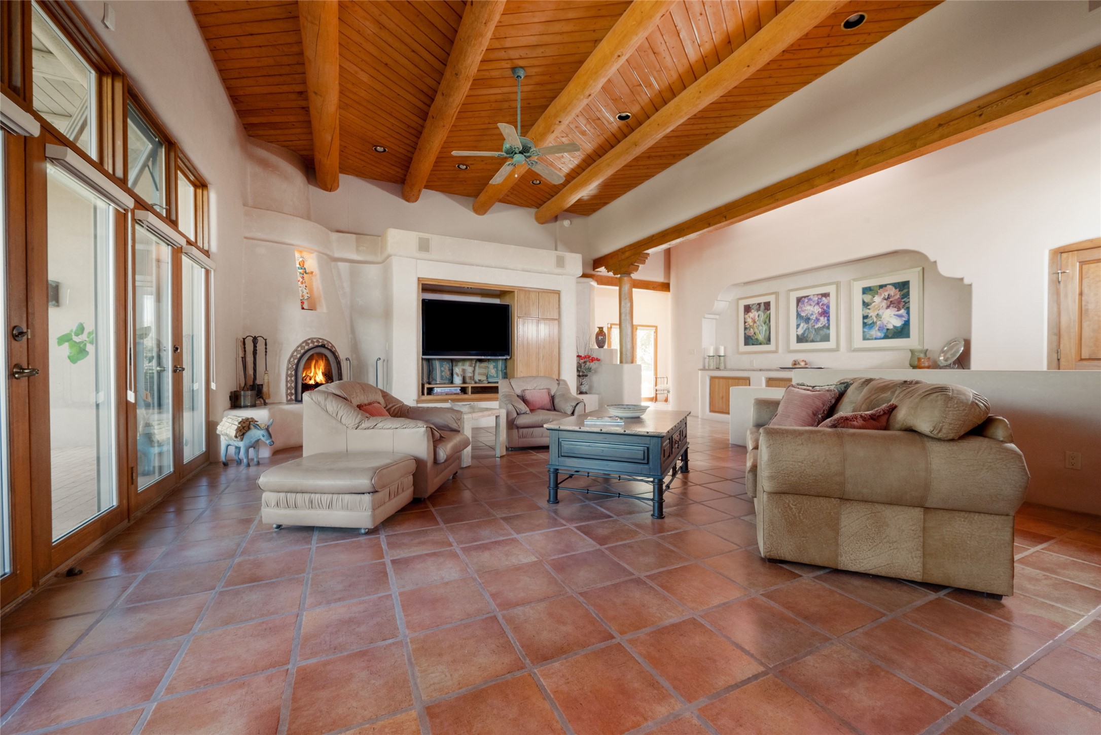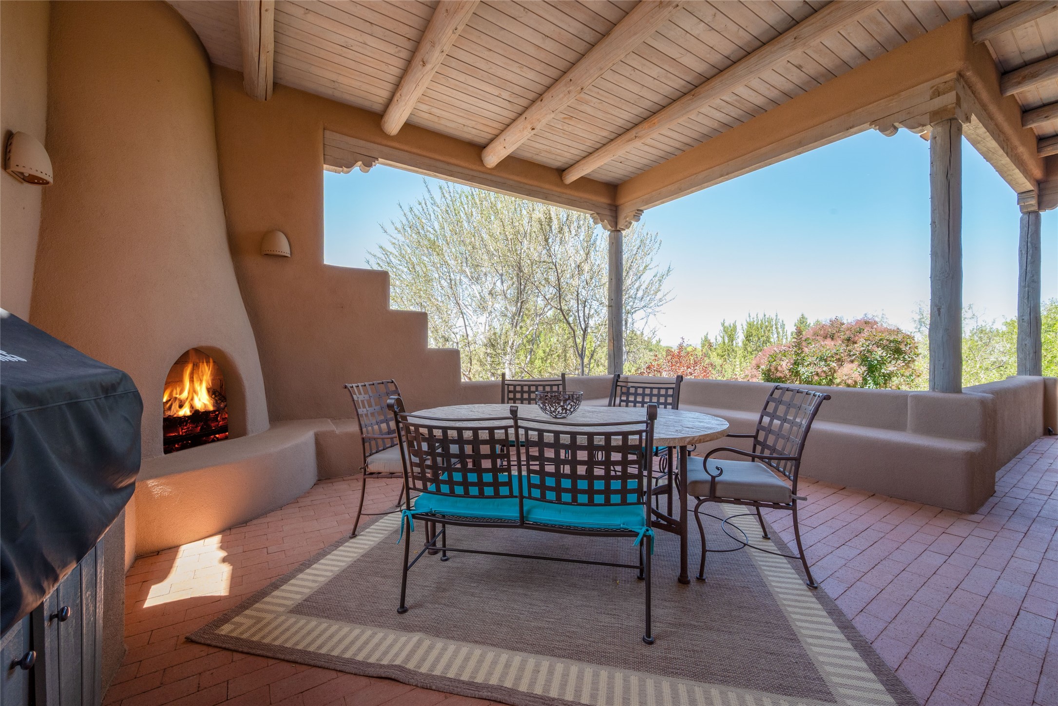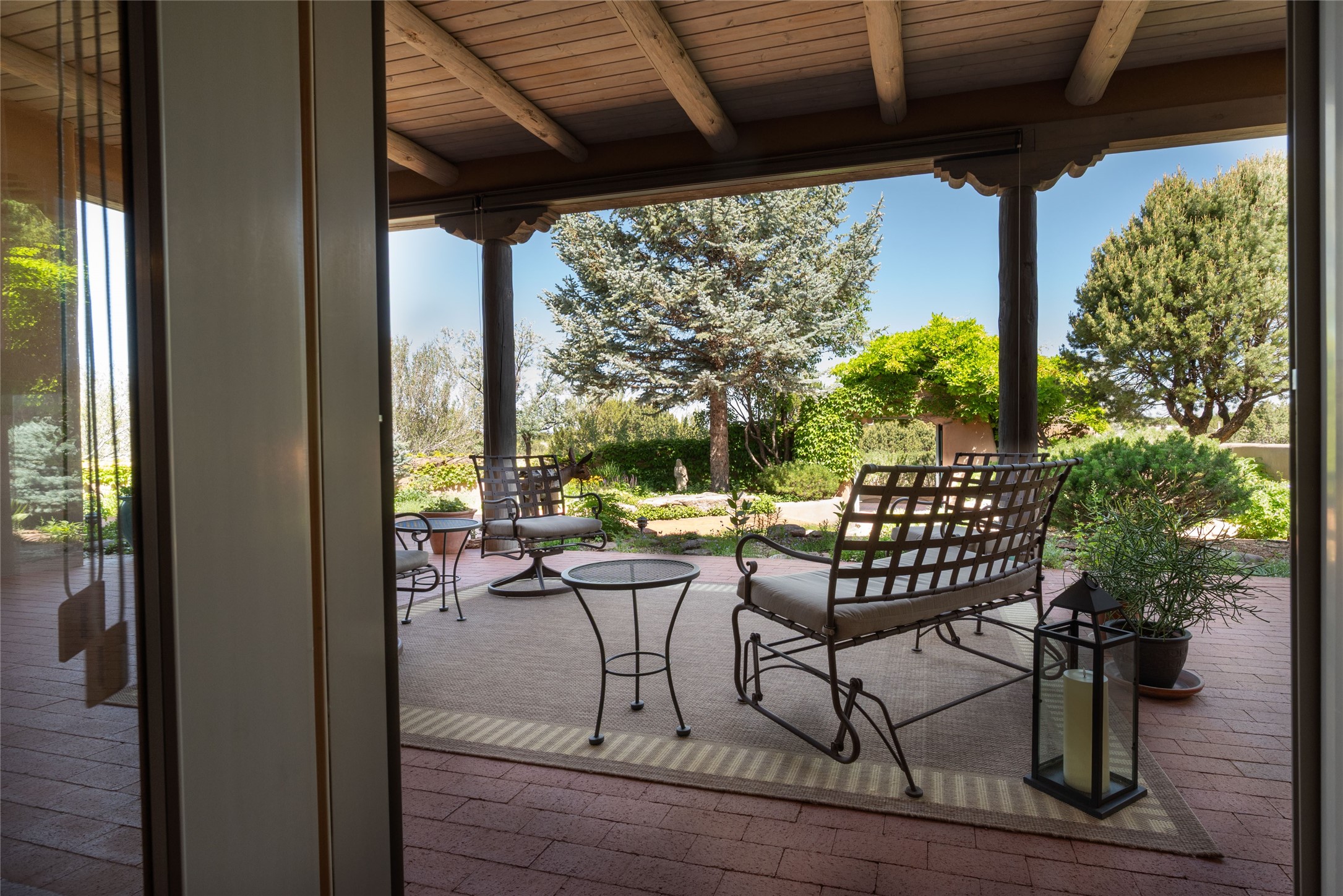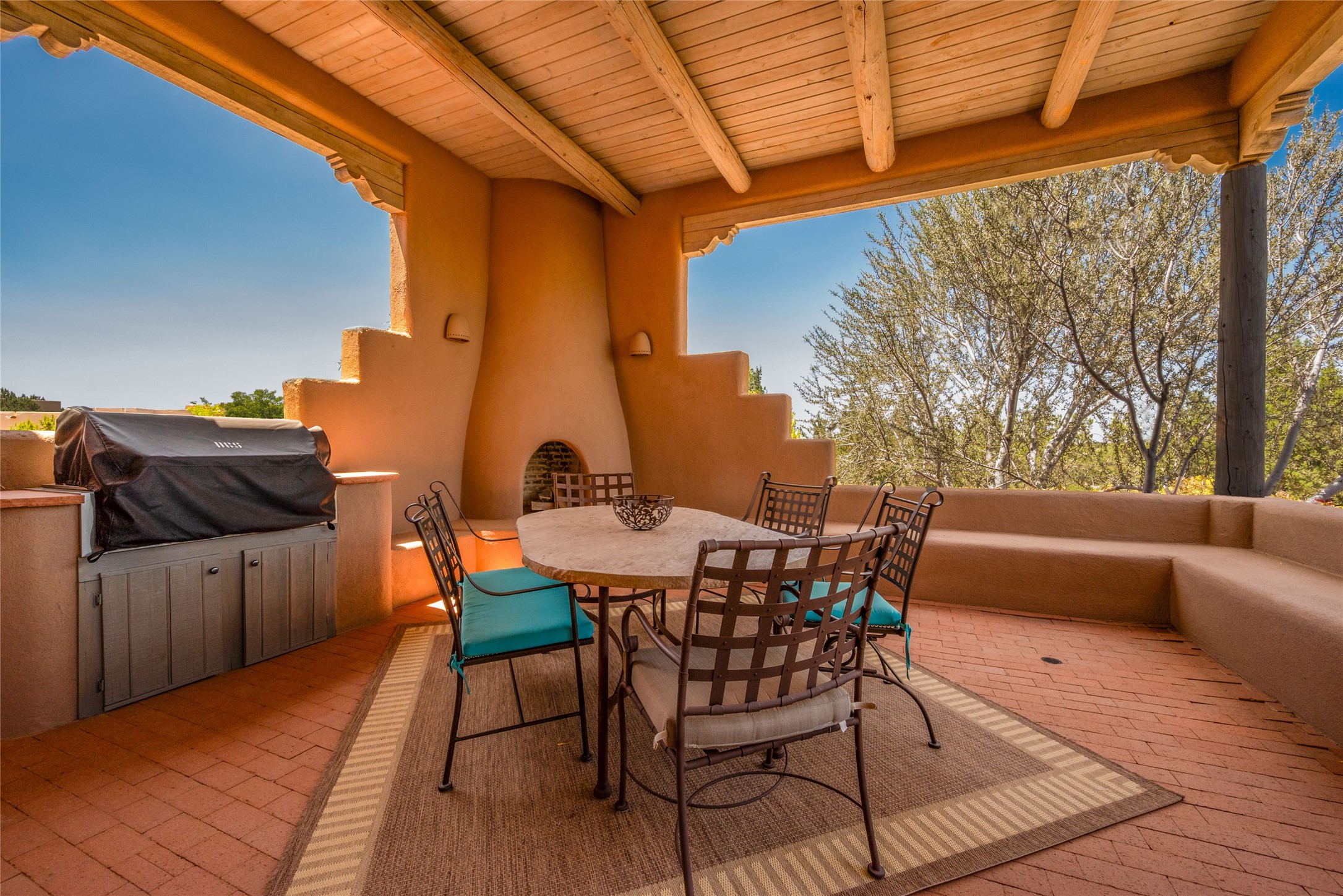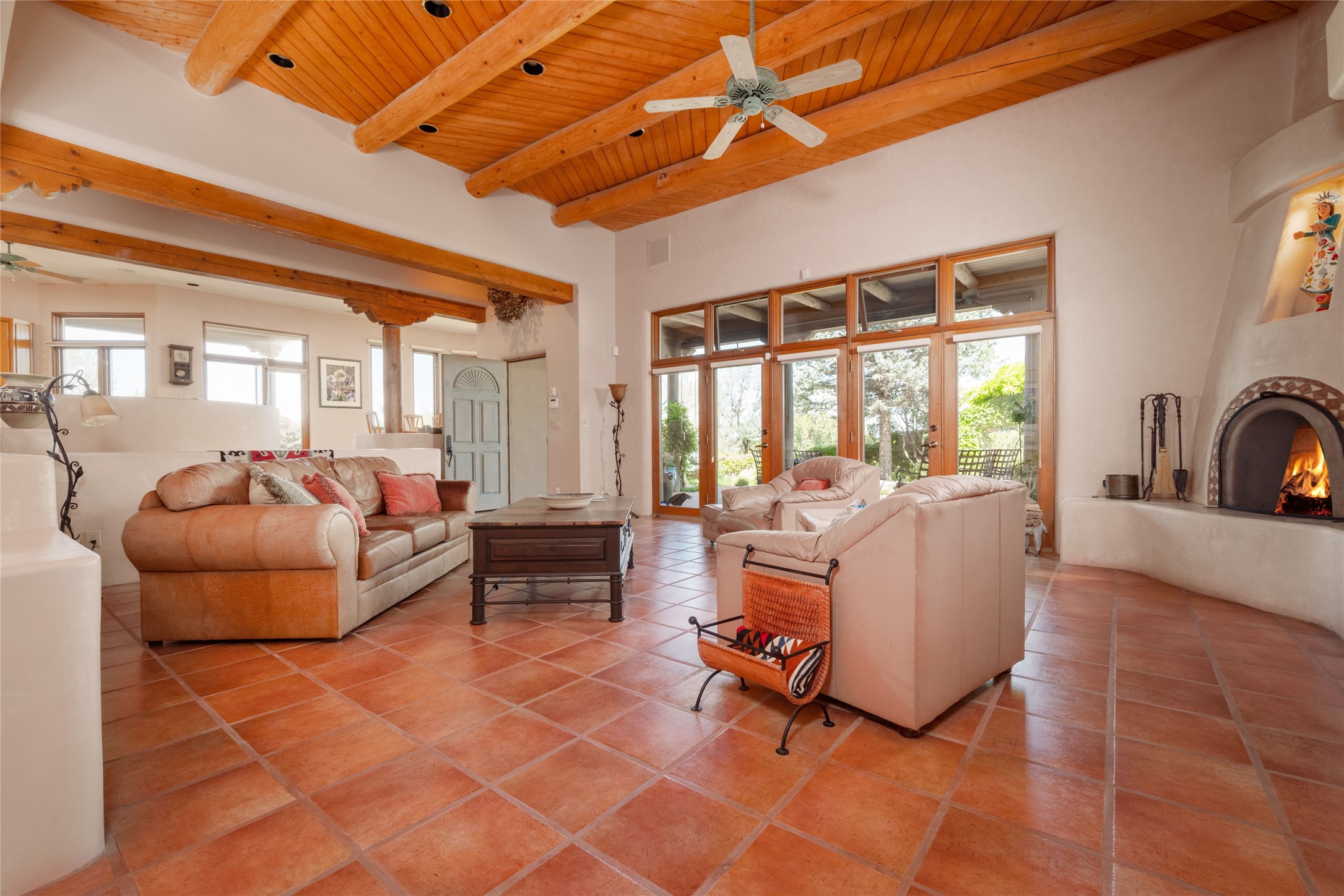 Nestled in a private & beautifully landscaped setting, this 3-bedroom, 2.5-bath custom home offers 3,500 square feet of thoughtfully designed living space. Built with both comfort & style in mind, the residence is set within a master gardener's haven--lushly planted & fully irrigated to maintain the vibrant landscape.You'll appreciate the sense of seclusion & tranquility. This home is essentially single-level, with just 3- interior steps leading to the kitchen & dining area. Inside, Southwest-inspired design elements abound--arched passages & classic kiva fireplaces add character & charm. 9-exterior doors invite natural light & seamless indoor-outdoor living, while Hurd windows frame picturesque garden views from nearly every room.Designed for both everyday living & entertaining, the home features multiple outdoor portals--ideal for gatherings in any season. One portal includes a built-in kiva fireplace & offers a built-in BBQ station--perfect for alfresco dining & sunset cocktails.The spacious kitchen opens to the dining area & includes ample cabinetry, & easy access to outdoor entertaining spaces. A wet bar enhances the flow for hosting, & a dedicated yoga room--complete with direct patio access--invites wellness & retreat.The primary suite & secondary bedrooms offer comfort & privacy, while the two-car garage provides not only vehicle storage but also direct access to mechanicals and additional storage space--ideal for tools, or seasonal items. The home also boasts a fantastic laundry room, built-in cabinetry & counters--yet another area where storage is well-considered.Homeowners enjoy the added benefit of an HOA that includes septic system inspections & scheduled cleanouts.Elegant yet functional, private yet accessible--this timeless home blends Southwestern charm with custom quality, all wrapped in an oasis-like landscape cultivated with care. A rare find for discerning buyers who appreciate craftsmanship, thoughtful details, and the art of outdoor living.