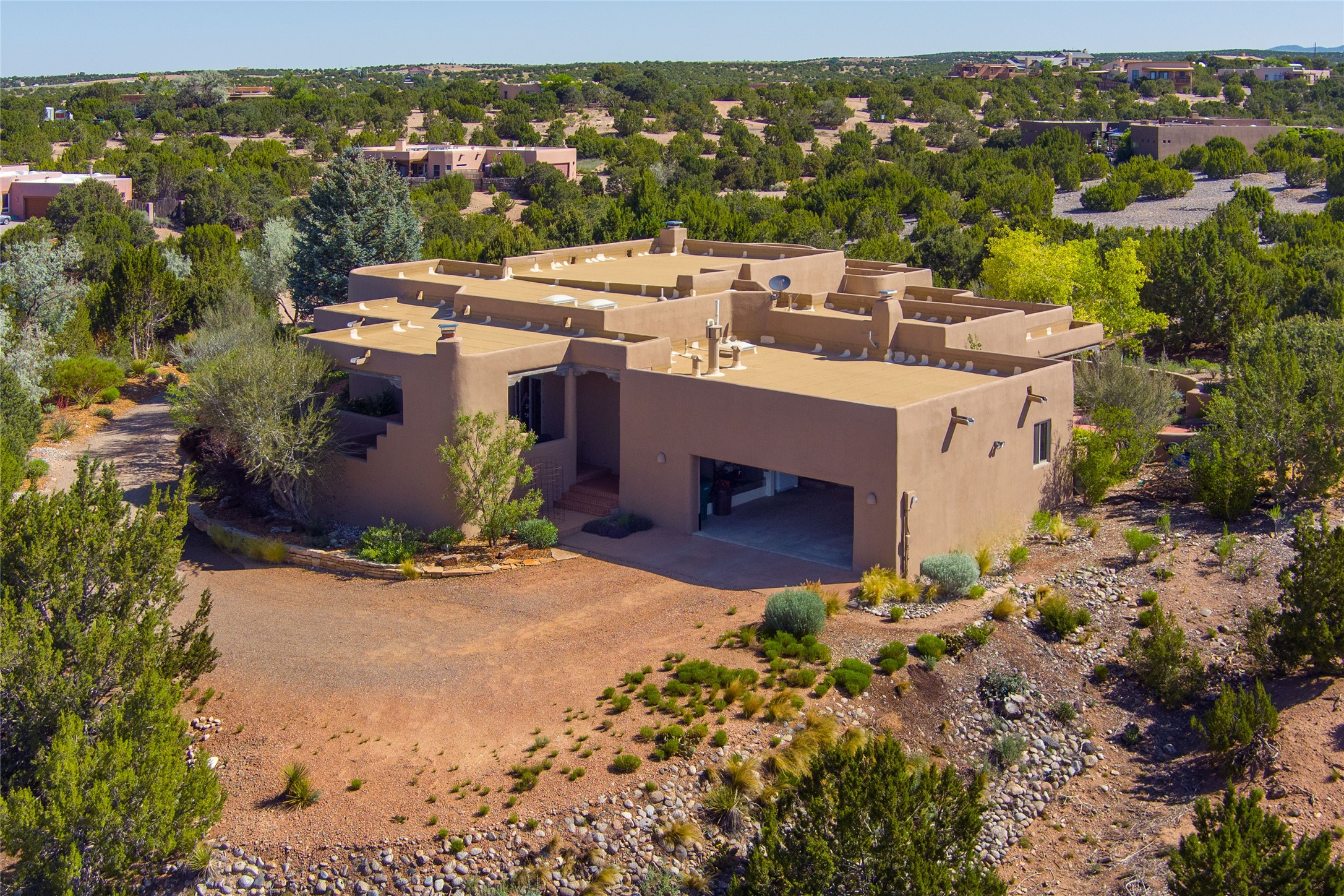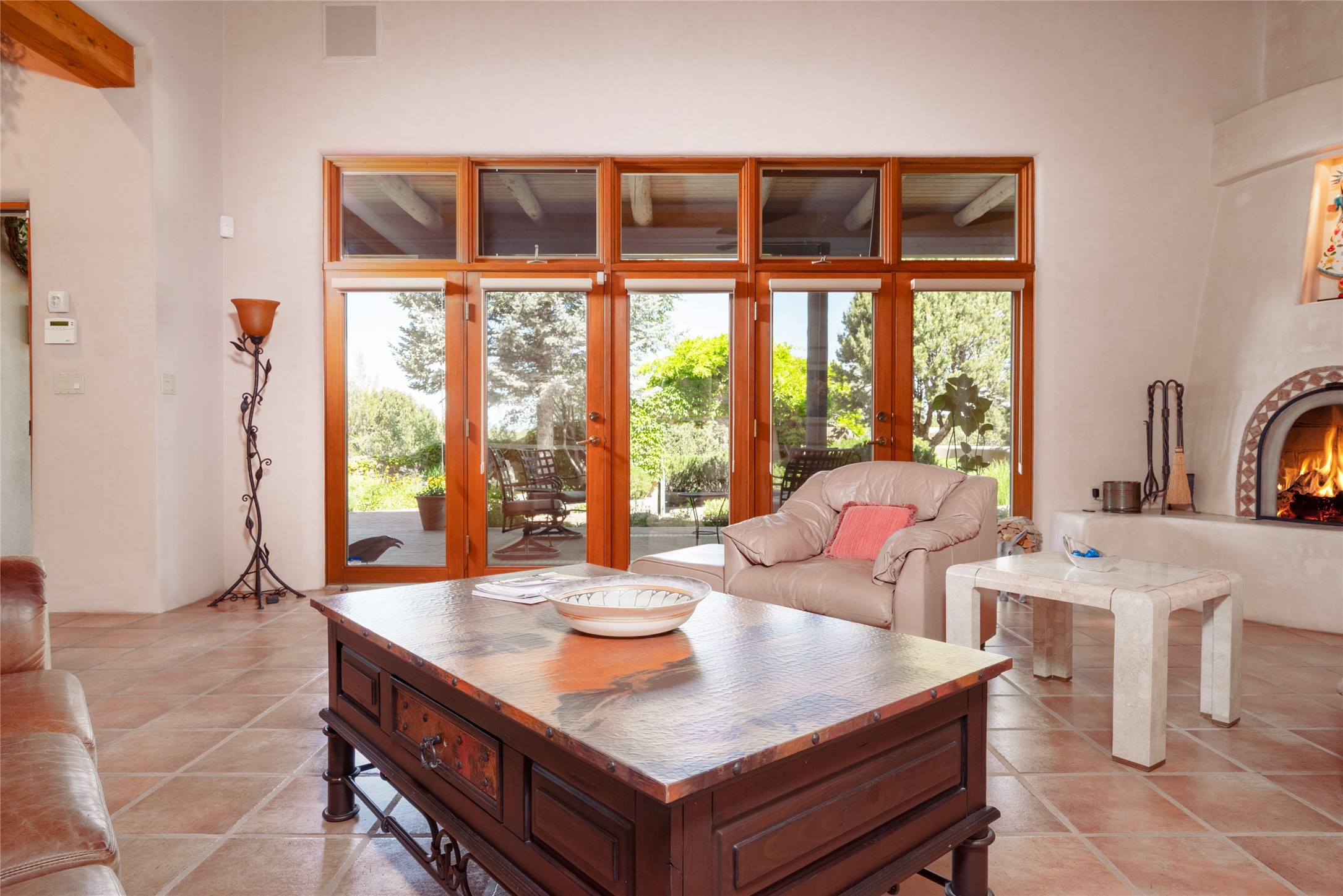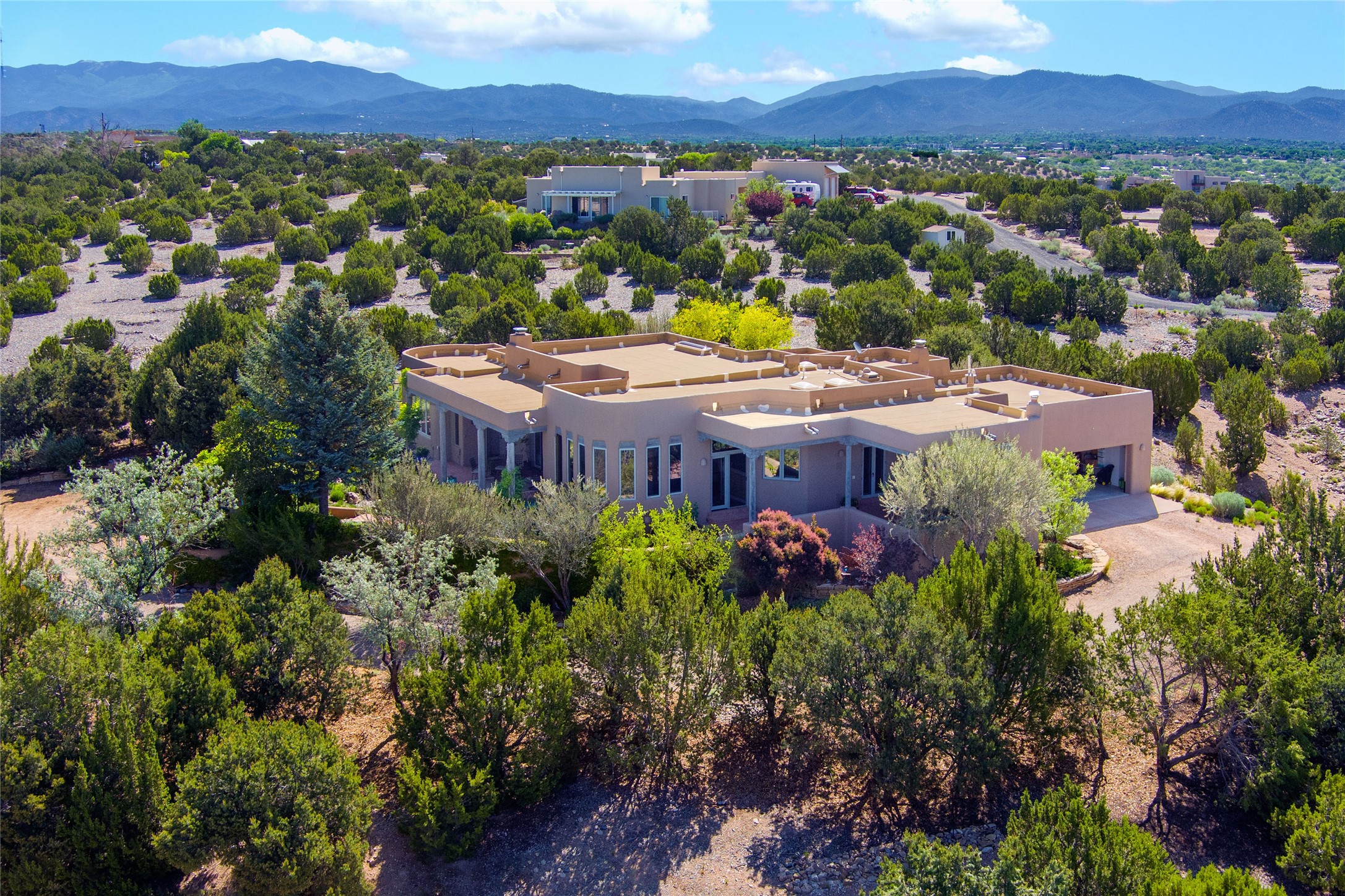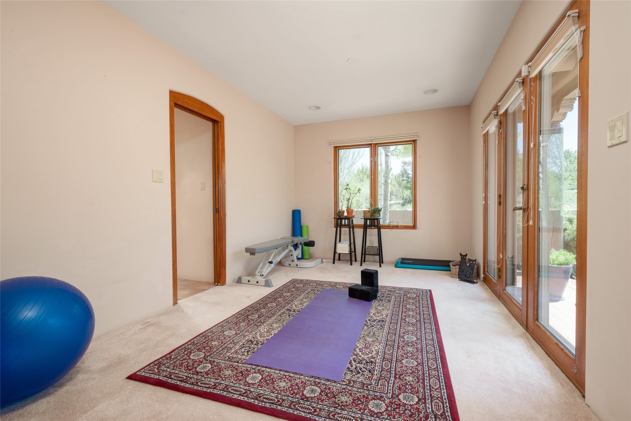 Nestled in a private & beautifully landscaped setting, this 3-bedroom, 2.5-bath custom home offers 3,500 square feet of thoughtfully designed living space. Built with both comfort & style in mind, the residence is set within a master gardener's haven--lushly planted & fully irrigated to maintain the vibrant landscape.You'll appreciate the sense of seclusion & tranquility. This home is essentially single-level, with just 3- interior steps leading to the kitchen & dining area. Inside, Southwest-inspired design elements abound--arched passages & classic kiva fireplaces add character & charm. 9-exterior doors invite natural light & seamless indoor-outdoor living, while Hurd windows frame picturesque garden views from nearly every room.Designed for both everyday living & entertaining, the home features multiple outdoor portals--ideal for gatherings in any season. One portal includes a built-in kiva fireplace & offers a built-in BBQ station--perfect for alfresco dining & sunset cocktails.The spacious kitchen opens to the dining area & includes ample cabinetry, & easy access to outdoor entertaining spaces. A wet bar enhances the flow for hosting, & a dedicated yoga room--complete with direct patio access--invites wellness & retreat.The primary suite & secondary bedrooms offer comfort & privacy, while the two-car garage provides not only vehicle storage but also direct access to mechanicals and additional storage space--ideal for tools, or seasonal items. The home also boasts a fantastic laundry room, built-in cabinetry & counters--yet another area where storage is well-considered.Homeowners enjoy the added benefit of an HOA that includes septic system inspections & scheduled cleanouts.Elegant yet functional, private yet accessible--this timeless home blends Southwestern charm with custom quality, all wrapped in an oasis-like landscape cultivated with care. A rare find for discerning buyers who appreciate craftsmanship, thoughtful details, and the art of outdoor living.