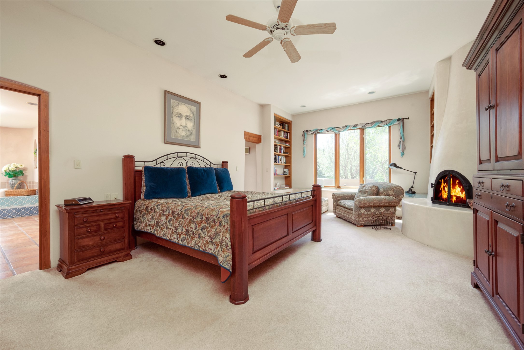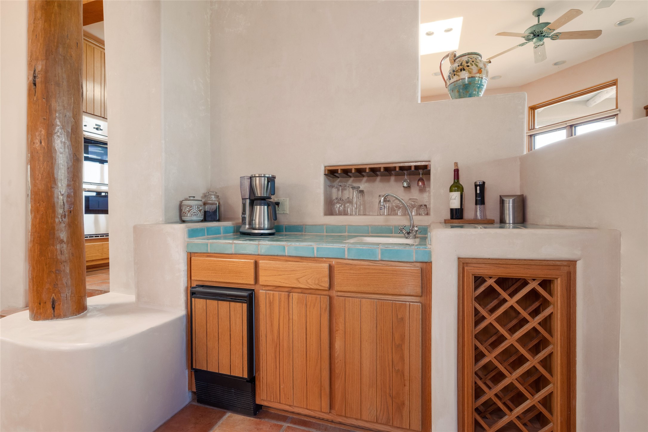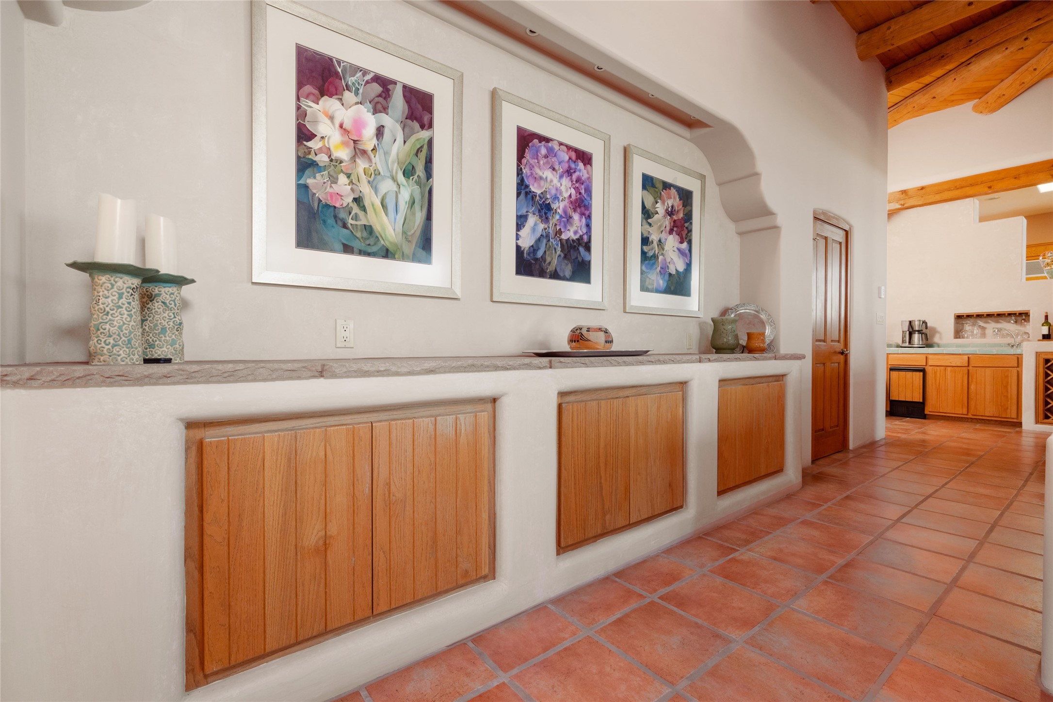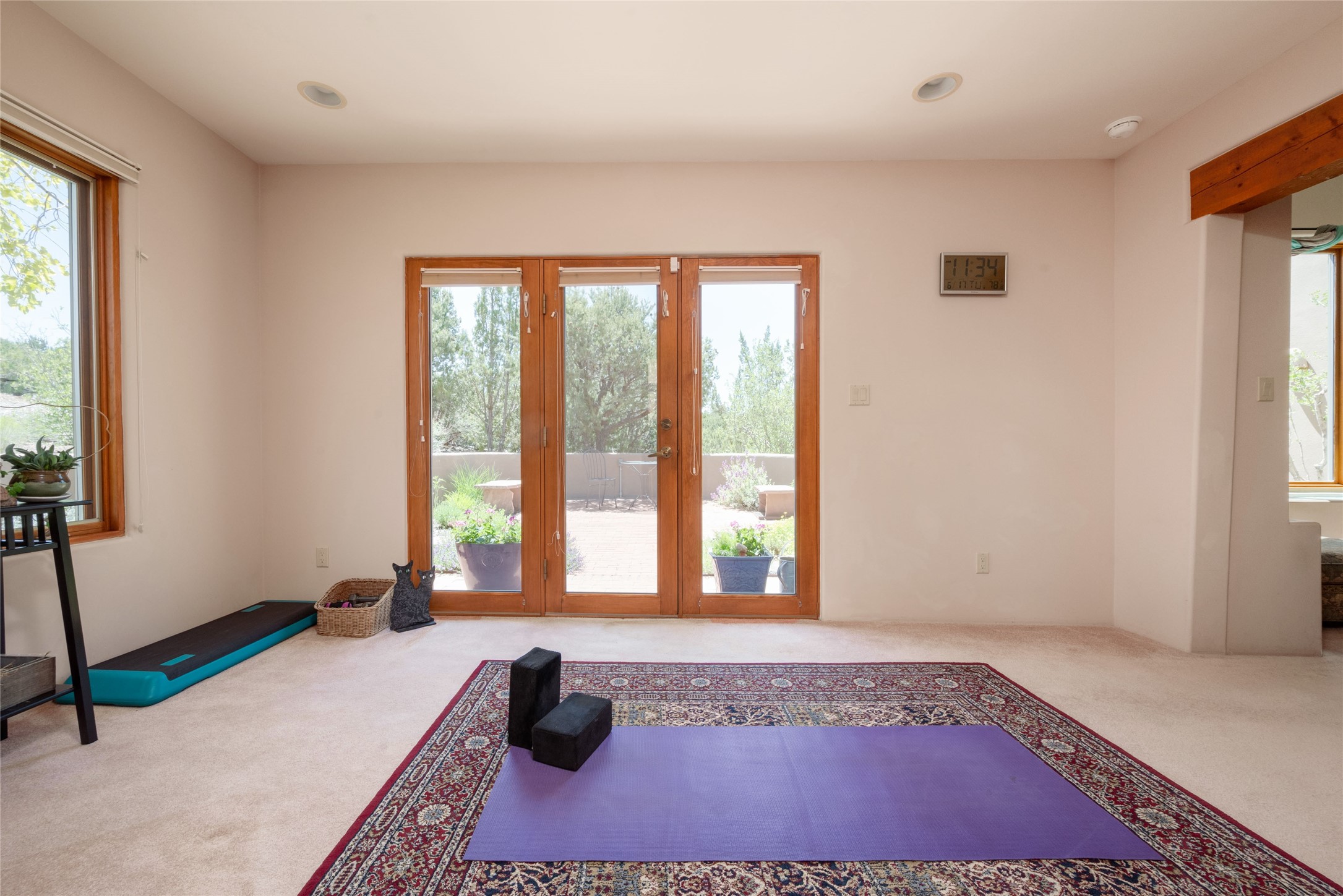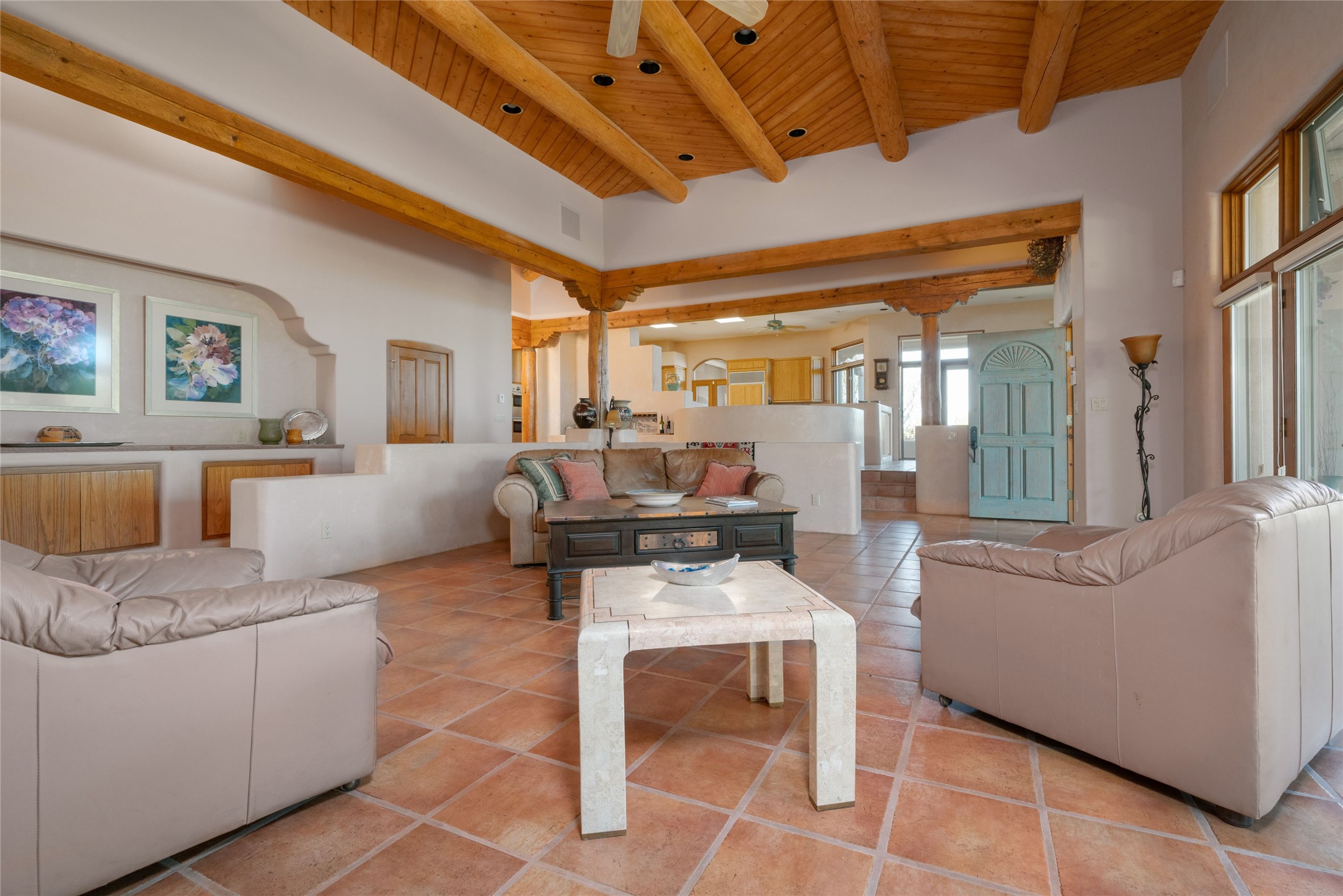 Nestled in a private & beautifully landscaped setting, this 3-bedroom, 2.5-bath custom home offers 3,500 square feet of thoughtfully designed living space. Built with both comfort & style in mind, the residence is set within a master gardener's haven--lushly planted & fully irrigated to maintain the vibrant landscape.You'll appreciate the sense of seclusion & tranquility. This home is essentially single-level, with just 3- interior steps leading to the kitchen & dining area. Inside, Southwest-inspired design elements abound--arched passages & classic kiva fireplaces add character & charm. 9-exterior doors invite natural light & seamless indoor-outdoor living, while Hurd windows frame picturesque garden views from nearly every room.Designed for both everyday living & entertaining, the home features multiple outdoor portals--ideal for gatherings in any season. One portal includes a built-in kiva fireplace & offers a built-in BBQ station--perfect for alfresco dining & sunset cocktails.The spacious kitchen opens to the dining area & includes ample cabinetry, & easy access to outdoor entertaining spaces. A wet bar enhances the flow for hosting, & a dedicated yoga room--complete with direct patio access--invites wellness & retreat.The primary suite & secondary bedrooms offer comfort & privacy, while the two-car garage provides not only vehicle storage but also direct access to mechanicals and additional storage space--ideal for tools, or seasonal items. The home also boasts a fantastic laundry room, built-in cabinetry & counters--yet another area where storage is well-considered.Homeowners enjoy the added benefit of an HOA that includes septic system inspections & scheduled cleanouts.Elegant yet functional, private yet accessible--this timeless home blends Southwestern charm with custom quality, all wrapped in an oasis-like landscape cultivated with care. A rare find for discerning buyers who appreciate craftsmanship, thoughtful details, and the art of outdoor living.