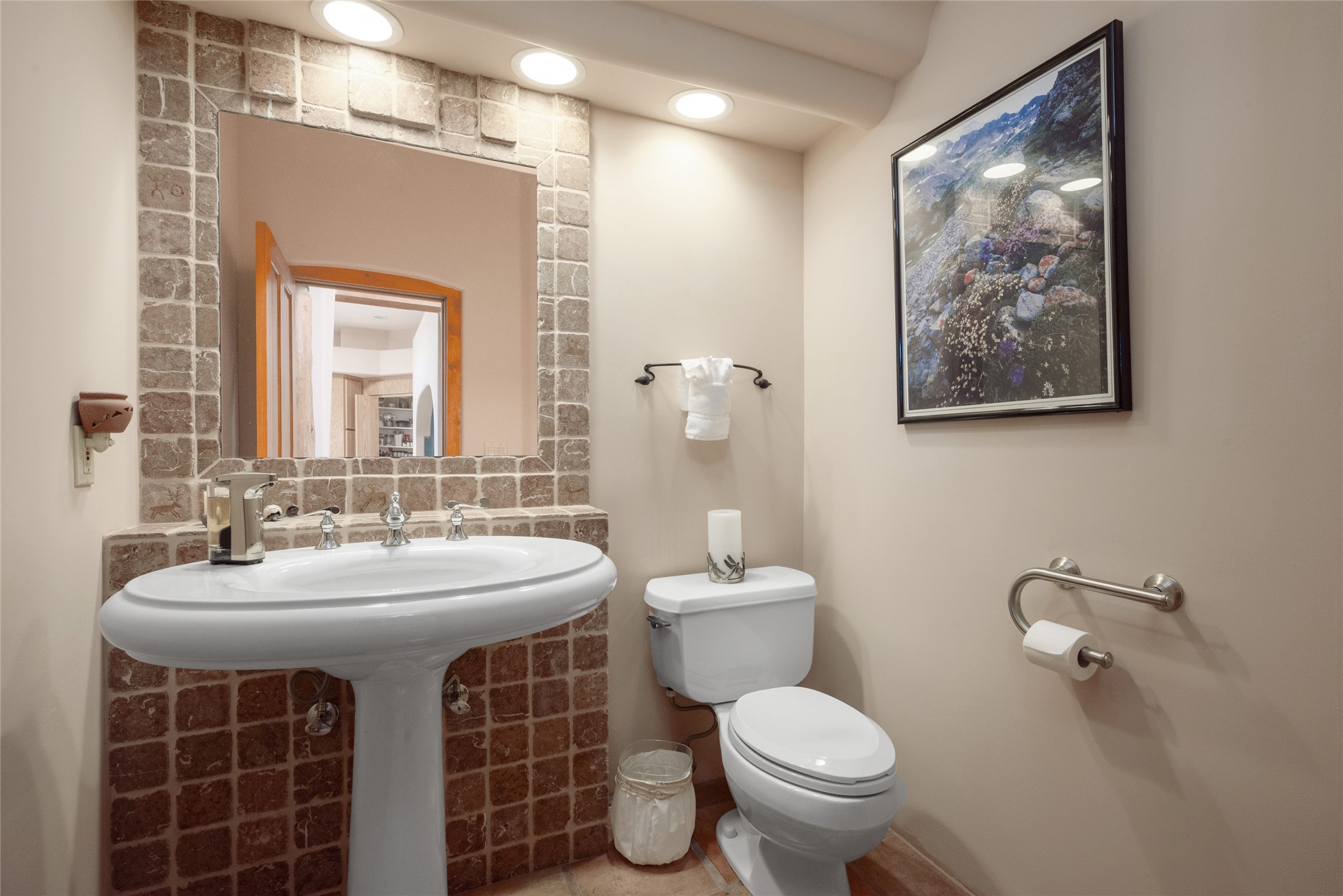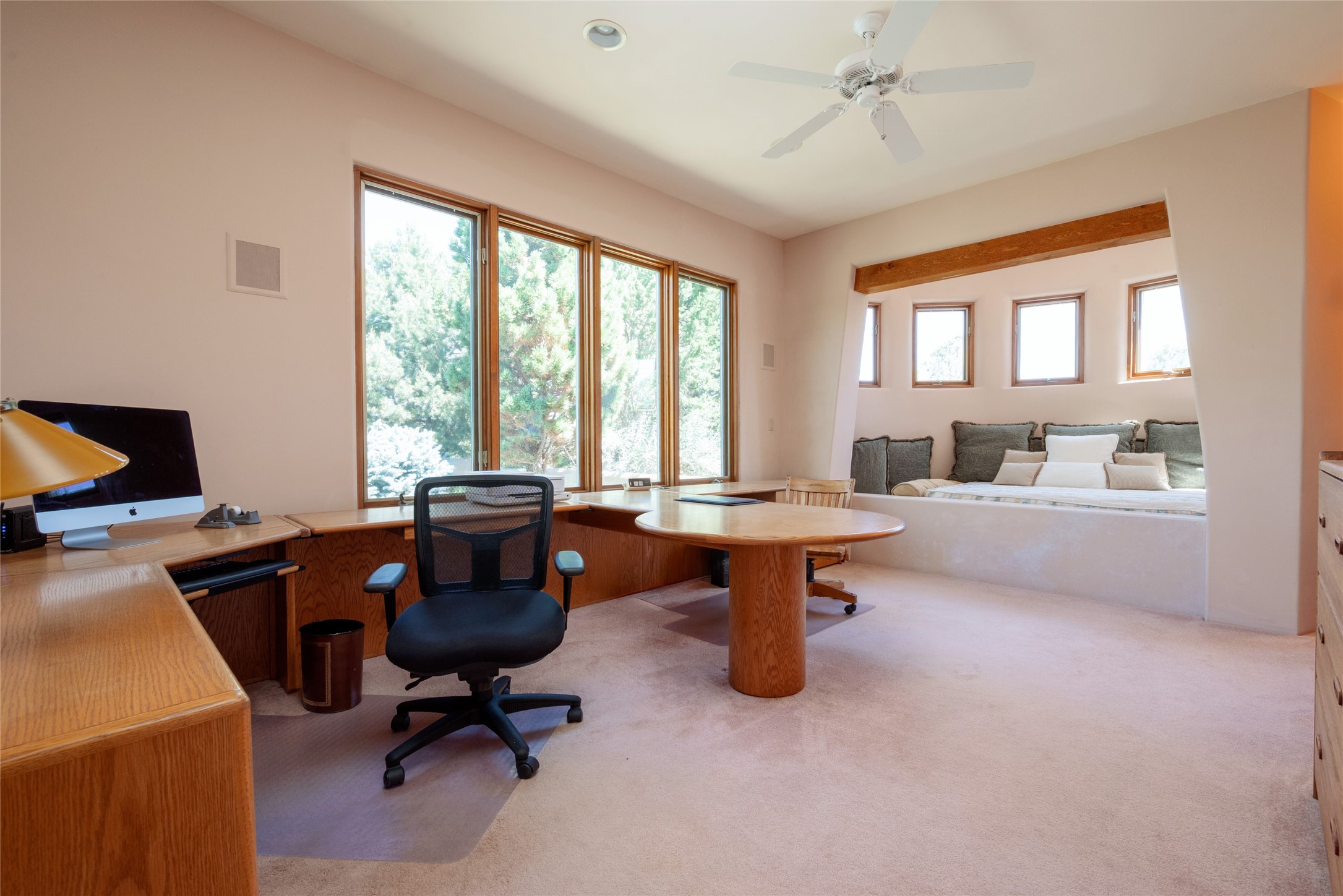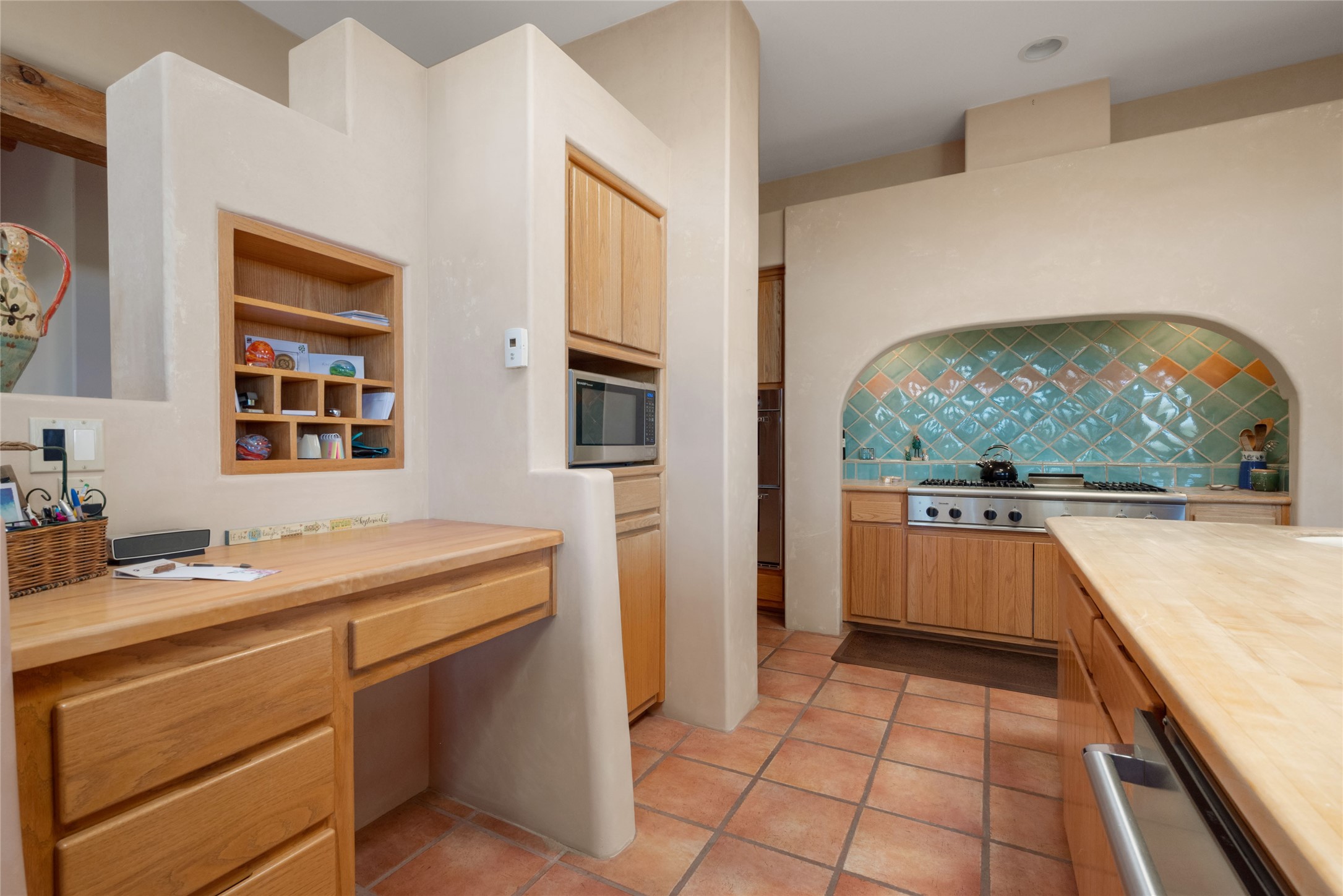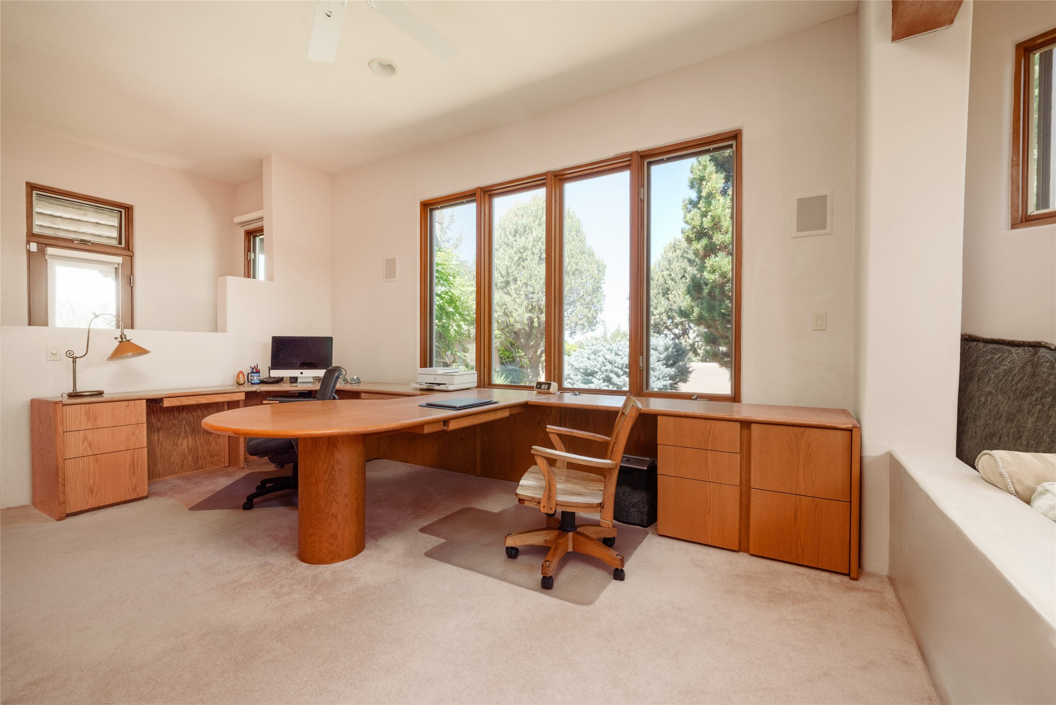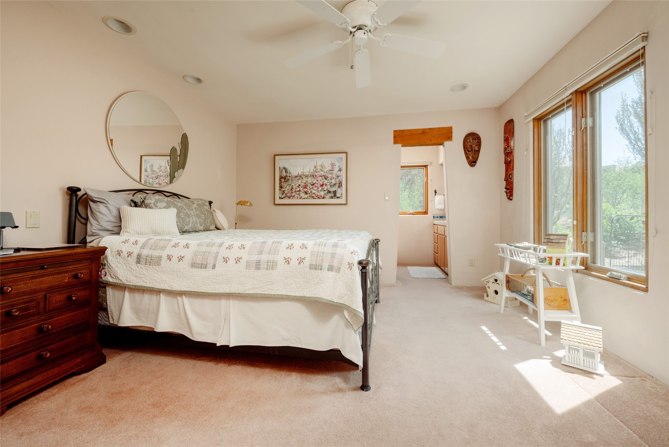 Nestled in a private & beautifully landscaped setting, this 3-bedroom, 2.5-bath custom home offers 3,500 square feet of thoughtfully designed living space. Built with both comfort & style in mind, the residence is set within a master gardener's haven--lushly planted & fully irrigated to maintain the vibrant landscape.You'll appreciate the sense of seclusion & tranquility. This home is essentially single-level, with just 3- interior steps leading to the kitchen & dining area. Inside, Southwest-inspired design elements abound--arched passages & classic kiva fireplaces add character & charm. 9-exterior doors invite natural light & seamless indoor-outdoor living, while Hurd windows frame picturesque garden views from nearly every room.Designed for both everyday living & entertaining, the home features multiple outdoor portals--ideal for gatherings in any season. One portal includes a built-in kiva fireplace & offers a built-in BBQ station--perfect for alfresco dining & sunset cocktails.The spacious kitchen opens to the dining area & includes ample cabinetry, & easy access to outdoor entertaining spaces. A wet bar enhances the flow for hosting, & a dedicated yoga room--complete with direct patio access--invites wellness & retreat.The primary suite & secondary bedrooms offer comfort & privacy, while the two-car garage provides not only vehicle storage but also direct access to mechanicals and additional storage space--ideal for tools, or seasonal items. The home also boasts a fantastic laundry room, built-in cabinetry & counters--yet another area where storage is well-considered.Homeowners enjoy the added benefit of an HOA that includes septic system inspections & scheduled cleanouts.Elegant yet functional, private yet accessible--this timeless home blends Southwestern charm with custom quality, all wrapped in an oasis-like landscape cultivated with care. A rare find for discerning buyers who appreciate craftsmanship, thoughtful details, and the art of outdoor living.