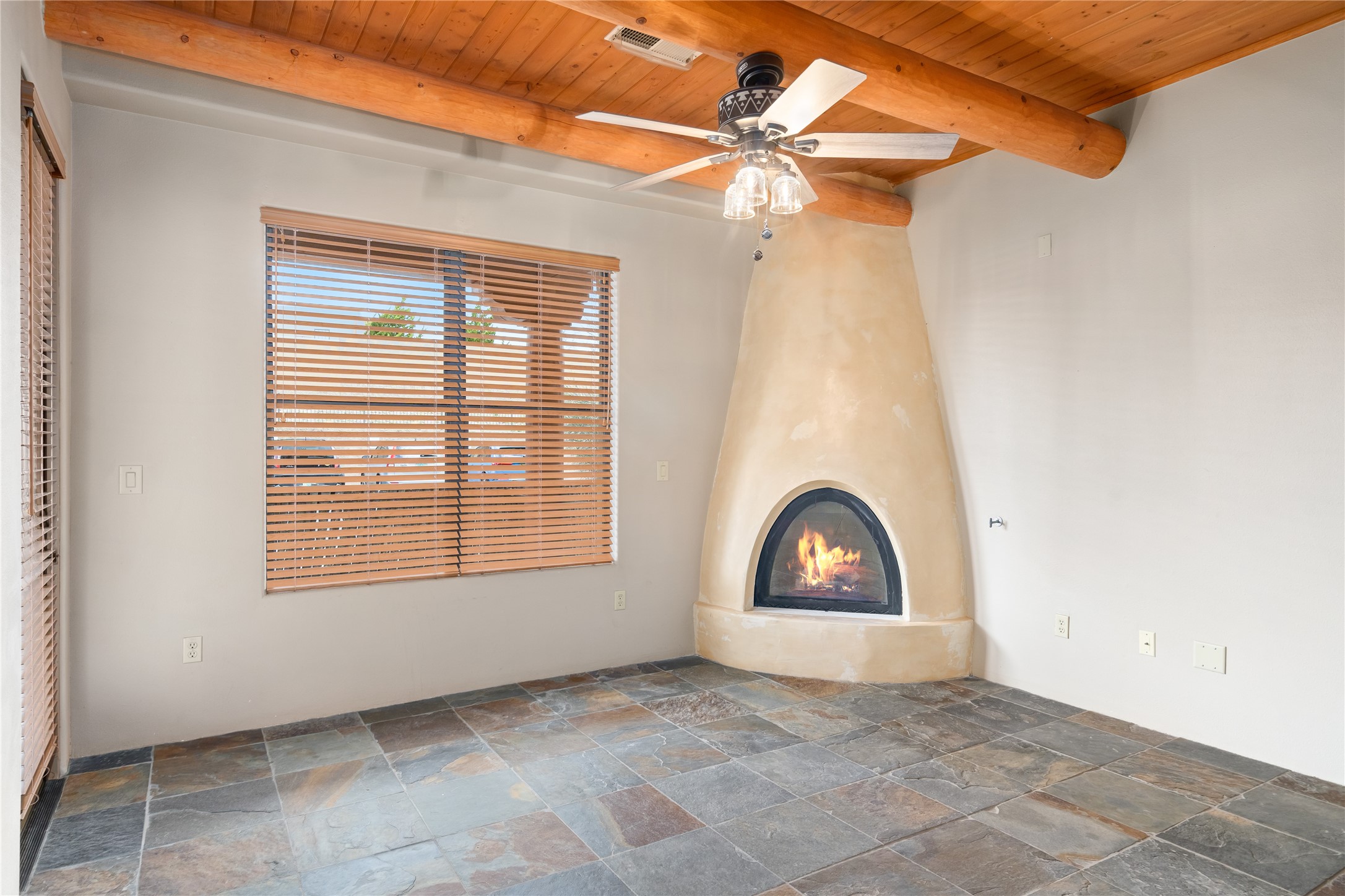 Welcome to 1405 Vegas Verdes #136, a beautifully maintained 1-bedroom, 1.5-bath condo located in the gated community of The Alameda. This ground-floor unit offers the perfect blend of Southwest character and everyday functionality, with features like wood vigas, a cozy corner fireplace, and a spacious open layout that flows from the kitchen to the living area. Step through the glass door to your private patio an ideal space for relaxing, dining al fresco, or unloading groceries. This unit has a storage unit as well, providing ample space for your vehicle, bikes, or extra belongings. Inside, you'll find a well-appointed kitchen with granite countertops and stainless steel appliances, a comfortable primary suite with full bath, and a separate powder room for guests. Additional conveniences include an in-unit washer and dryer, central air, and plenty of natural light throughout. Residents of The Alameda enjoy resort-style amenities including a swimming pool, fitness center, clubhouse, beautifully landscaped grounds, and secure gated access. Located near Santa Fe Place Mall, grocery stores, restaurants, and with easy access to Hwy 599, this condo offers low-maintenance living in one of Santa Fe's most desirable communities. Whether you're looking for a full-time residence, a lock-and-leave home, or a smart investment, this one has it all.