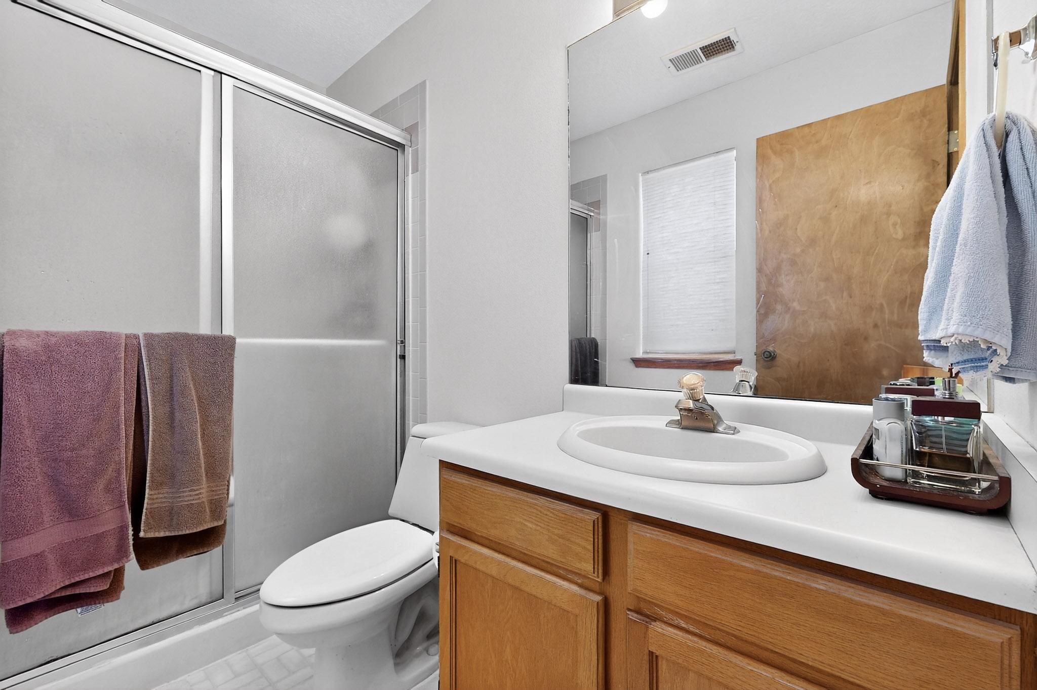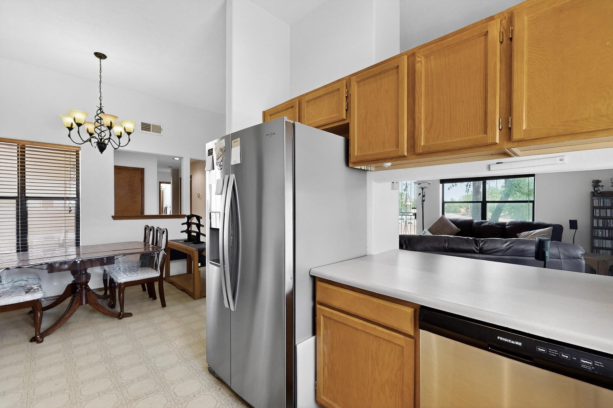 Beautiful home in gated community! This charming home is in the highly desirable Vista Primera subdivision. It features 3 spacious bedrooms, 2 baths, and sits on an expansive enclosed lot (approximately 1/3-acre) that provides privacy and convenience.The large backyard provides ample space for outdoor enjoyment, with the option to raise the enclosing wall for added privacy. Inside, you'll find a two-car insulated garage with a generous workspace and built-in cabinets. The home has a central forced-air furnace, a heat/cooling Pioneer mini-split system, and a natural gas fireplace--ensuring year-round comfort. Lovingly maintained with only two owners, this home has been gently used-- with most of its years being used only as a second home. The property also benefits from the community's private park and protective covenants, safeguarding your investment.Conveniently located with quick access to I-25 and downtown Santa Fe via Veterans Memorial Highway (State Road 599), the property is less than a mile from the newly expanded Santa Fe Airport and close to the Santa Fe Country Club, featuring a swimming pool, and a golf course. Competitively priced and ready for your personal touches. Schedule a viewing today!