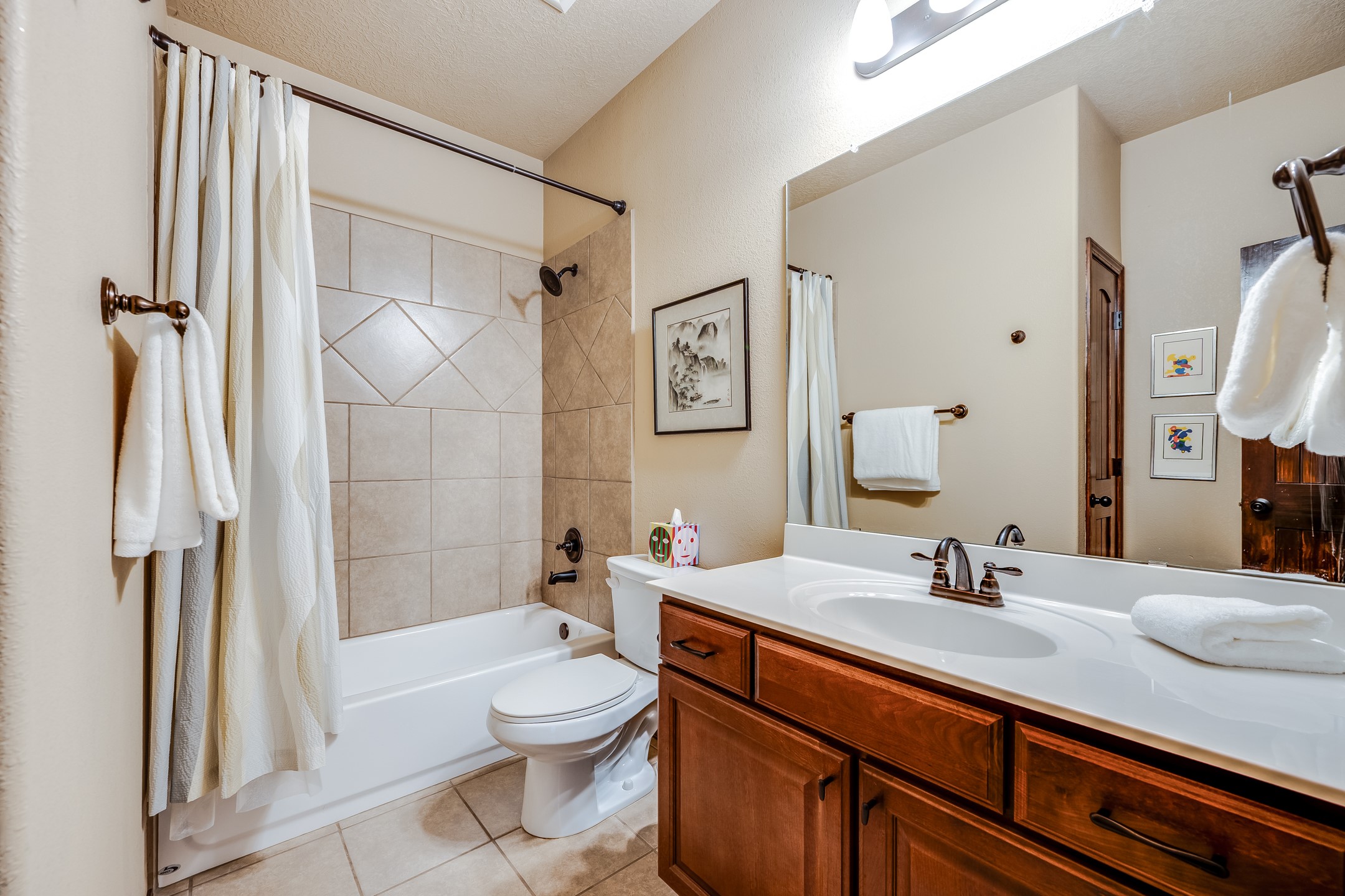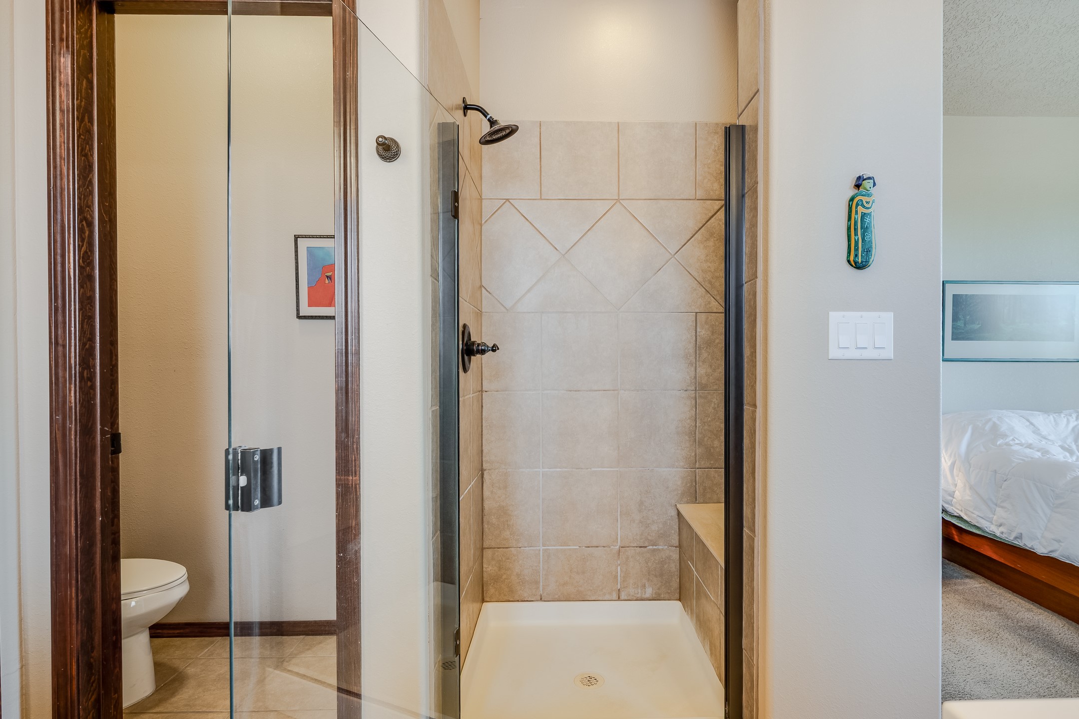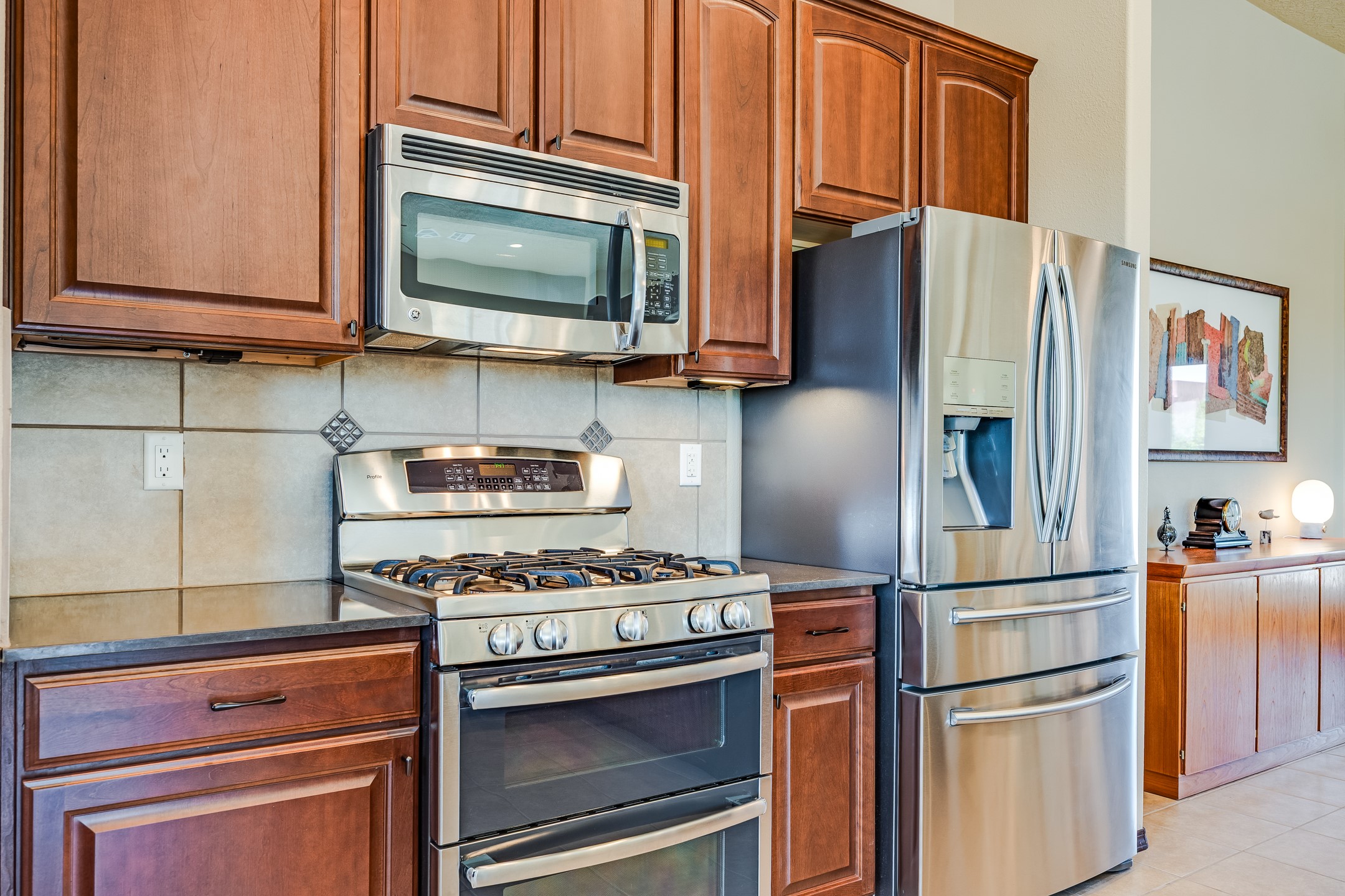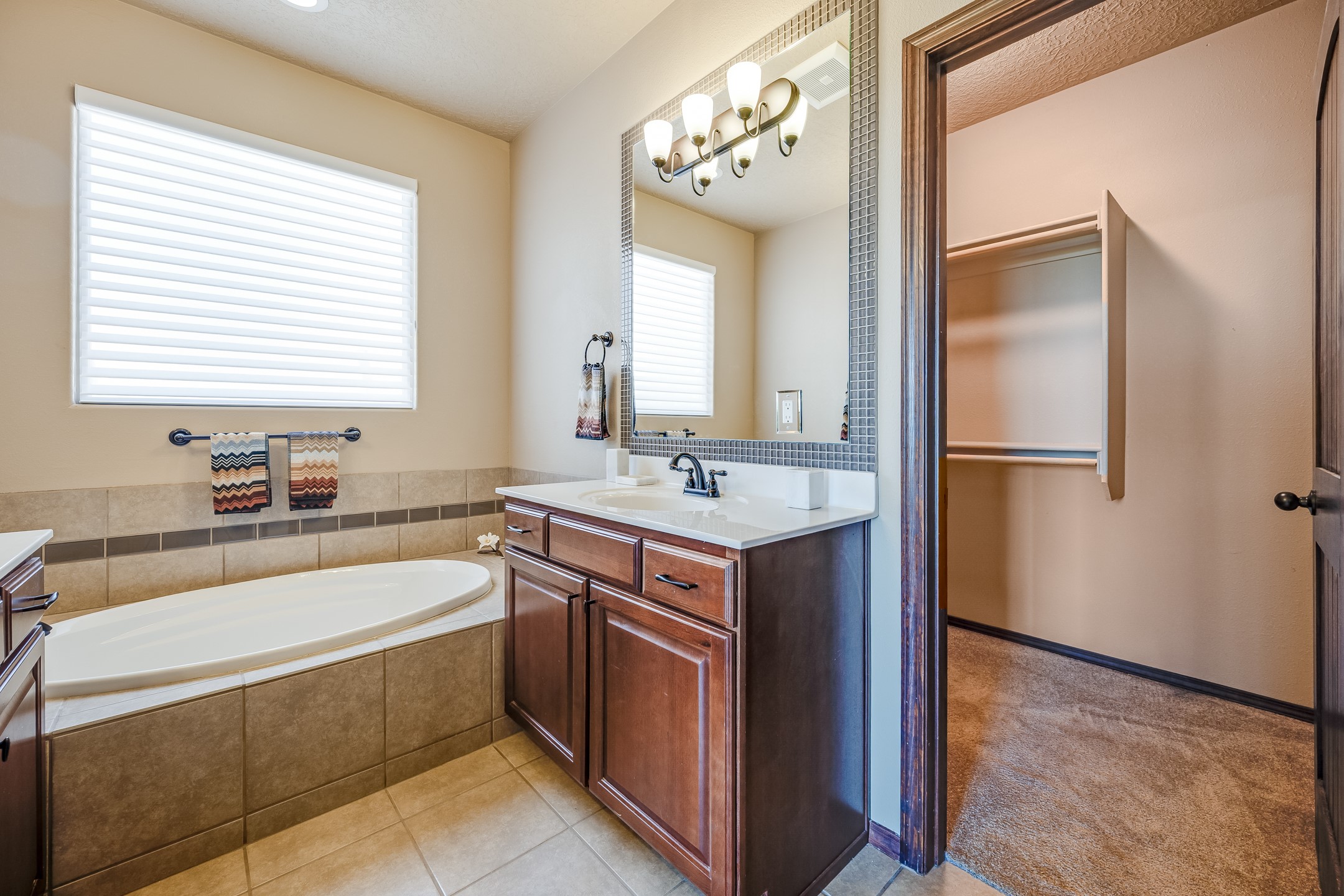 This thoughtfully designed three-bedroom, two-bathroom home offers space, comfort, and elegance in a peaceful neighborhood that is both easy to live in and commute from. The single-level home spans 2,256 square feet and includes a 331-square-foot attached studio (the converted third garage bay)--ideal as a fourth bedroom, office, or creative space. A bright living room with a cozy fireplace invites relaxation, while the modern kitchen features stainless steel appliances, stone counters, and ample space for cooking and entertaining. High ceilings, recessed lighting, and tile flooring enhance the open layout. The primary bedroom is complemented by an en-suite bathroom with double vanities, soaking tub with separate shower, and a generous walk-in closet. Two additional bedrooms provide flexibility for family or remote work. Located in the back of the development with views of green space and close to walking trails, your private outdoor space will feel limitless. Mature landscaping, the covered back portal and large side pergola combine to offer space for gatherings, gardening, or quiet moments. Other features include an attached 2-car garage, central AC and heat, and a roof with transferable warranty. Located near the Dinosaur Trail Trailhead and close to local supermarkets and healthcare, this home combines practical living with Santa Fe charm.