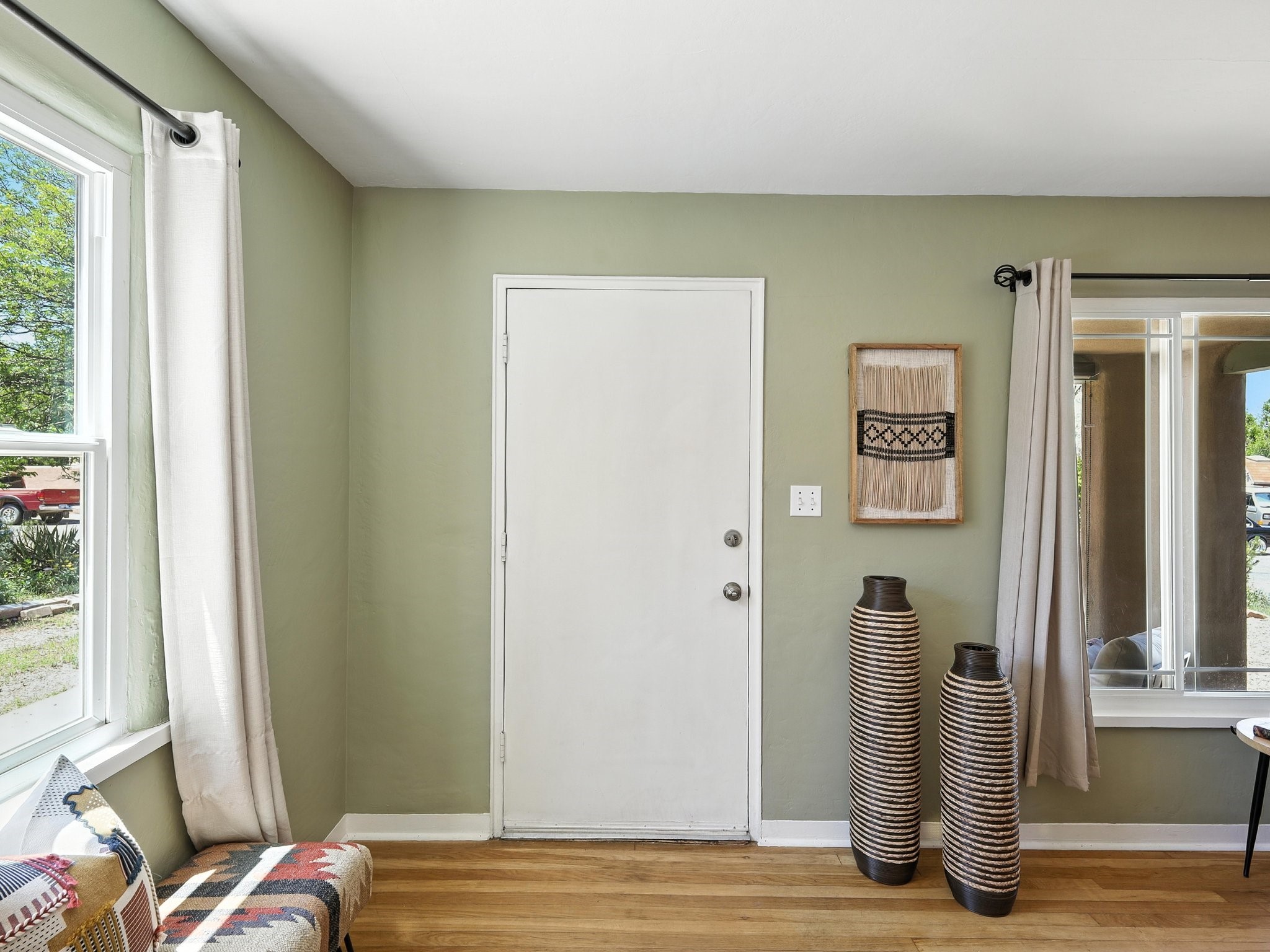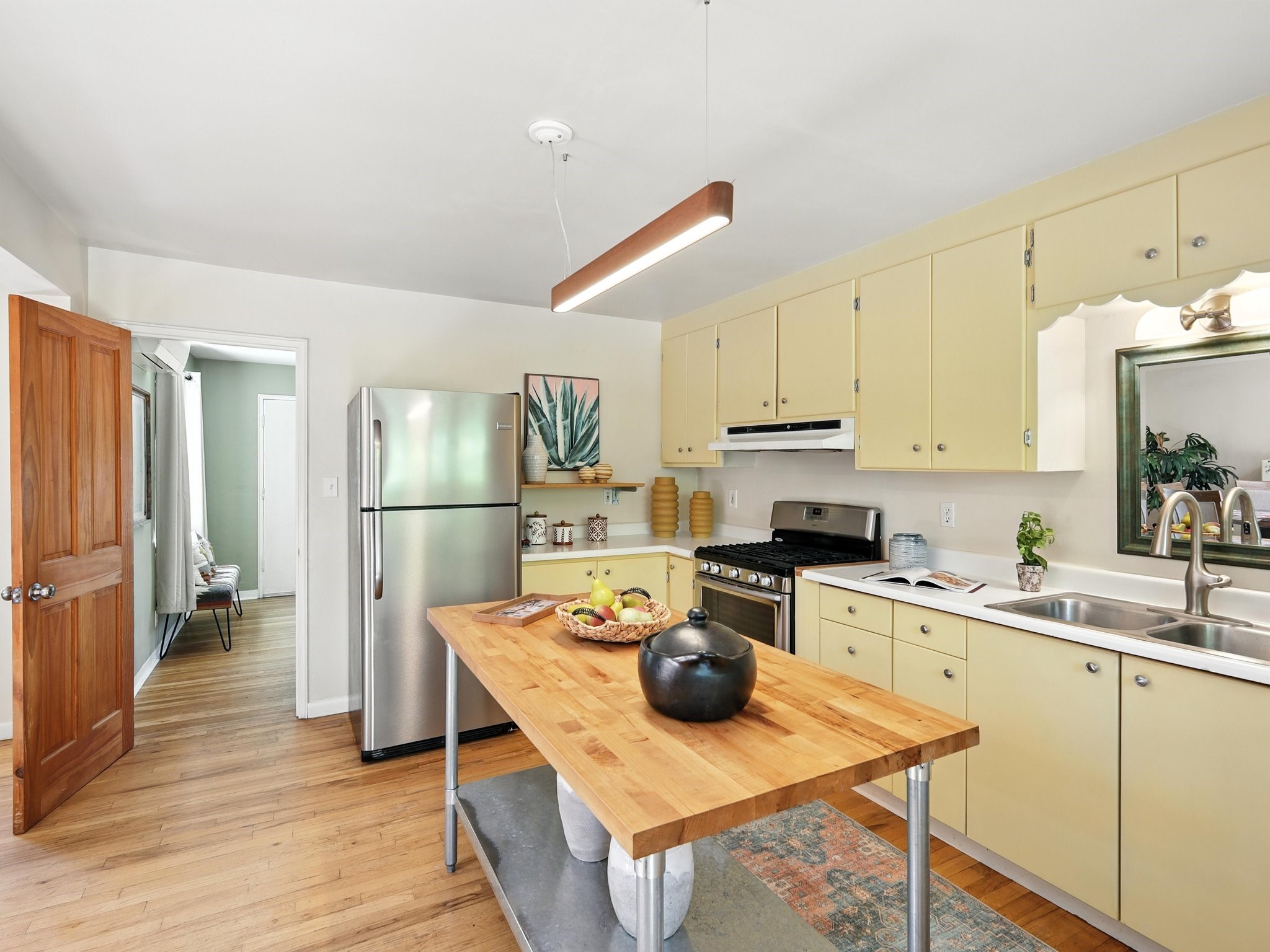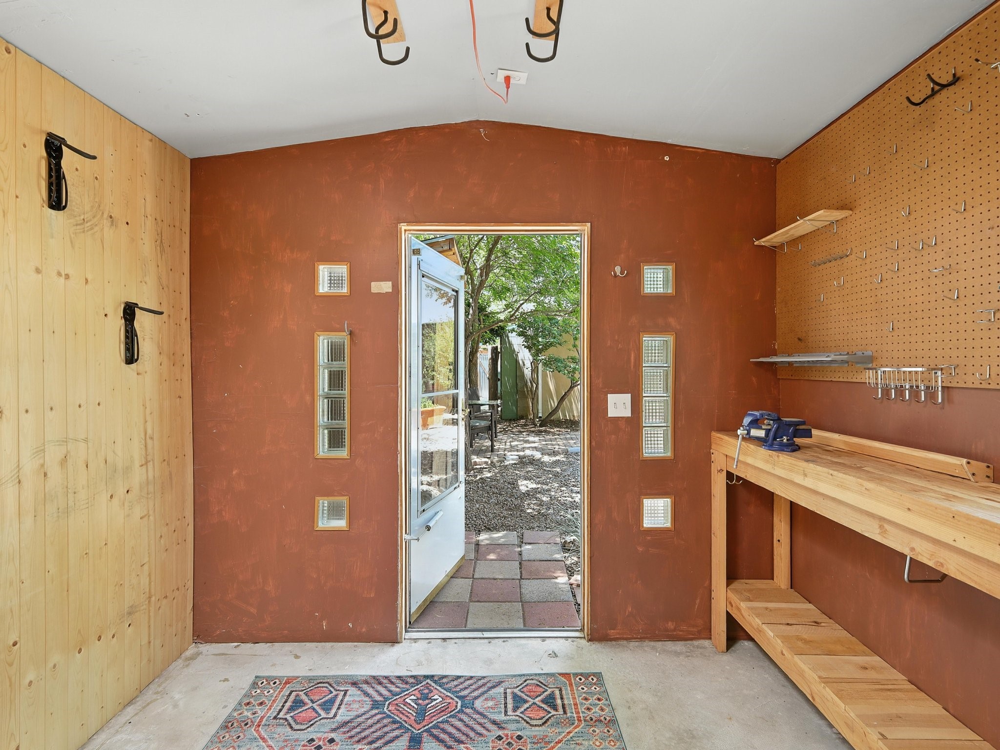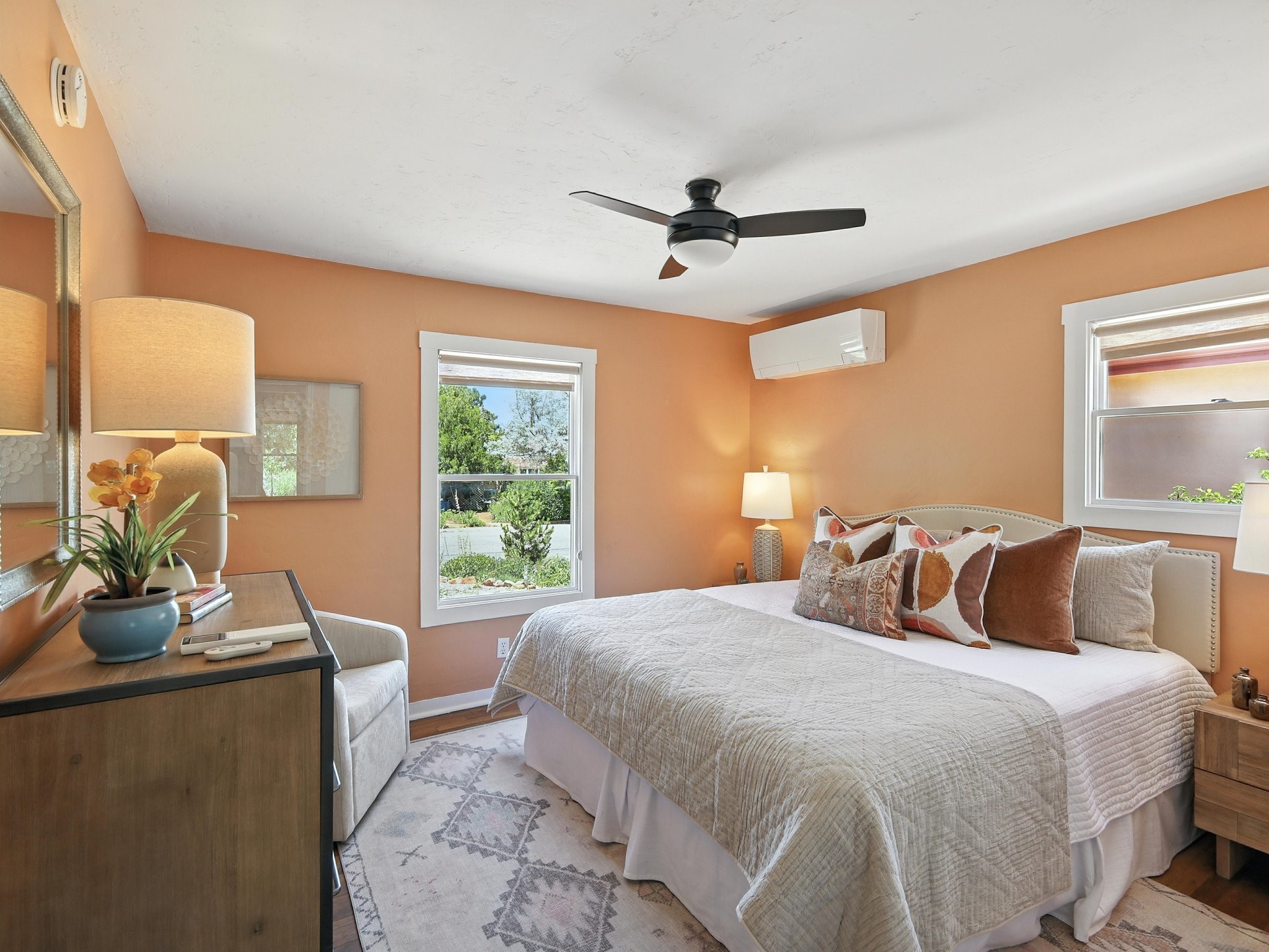 Welcome to your Urban Oasis! Beautiful and welcoming two bedroom, two bath 'Stamm-like' home with an open dining kitchen and living area. Hardwood floors throughout. Owners installed Mitsubishi Mini-Splits, a Regency Pellet Stove, Navien Tankless Water Heater and a Silicone Membrane roof (with a transferable warranty). Step out of the kitchen to a Wisteria covered pergola into a private, walled, treed, perennial, bee and butterfly filled backyard. The backyard also sports a 10x12 Studio with high speed cable internet, electricity and skylight. This home has been lovingly cared for and skillfully improved. Close to shopping and restaurants. Pre-Inspected, report available. Must see!Neither Listing Brokers nor Seller warrants the square footage of the home or lot. If the size of the home or lot is of material consideration to the Buyer, then the Buyer should have them measured. Tax Levy is from the Assessor.