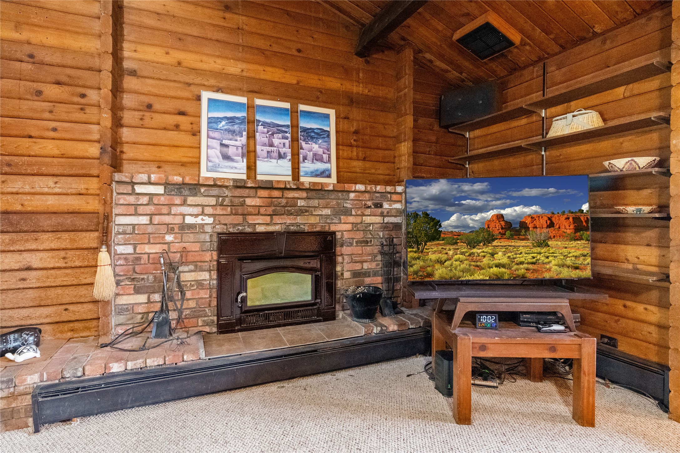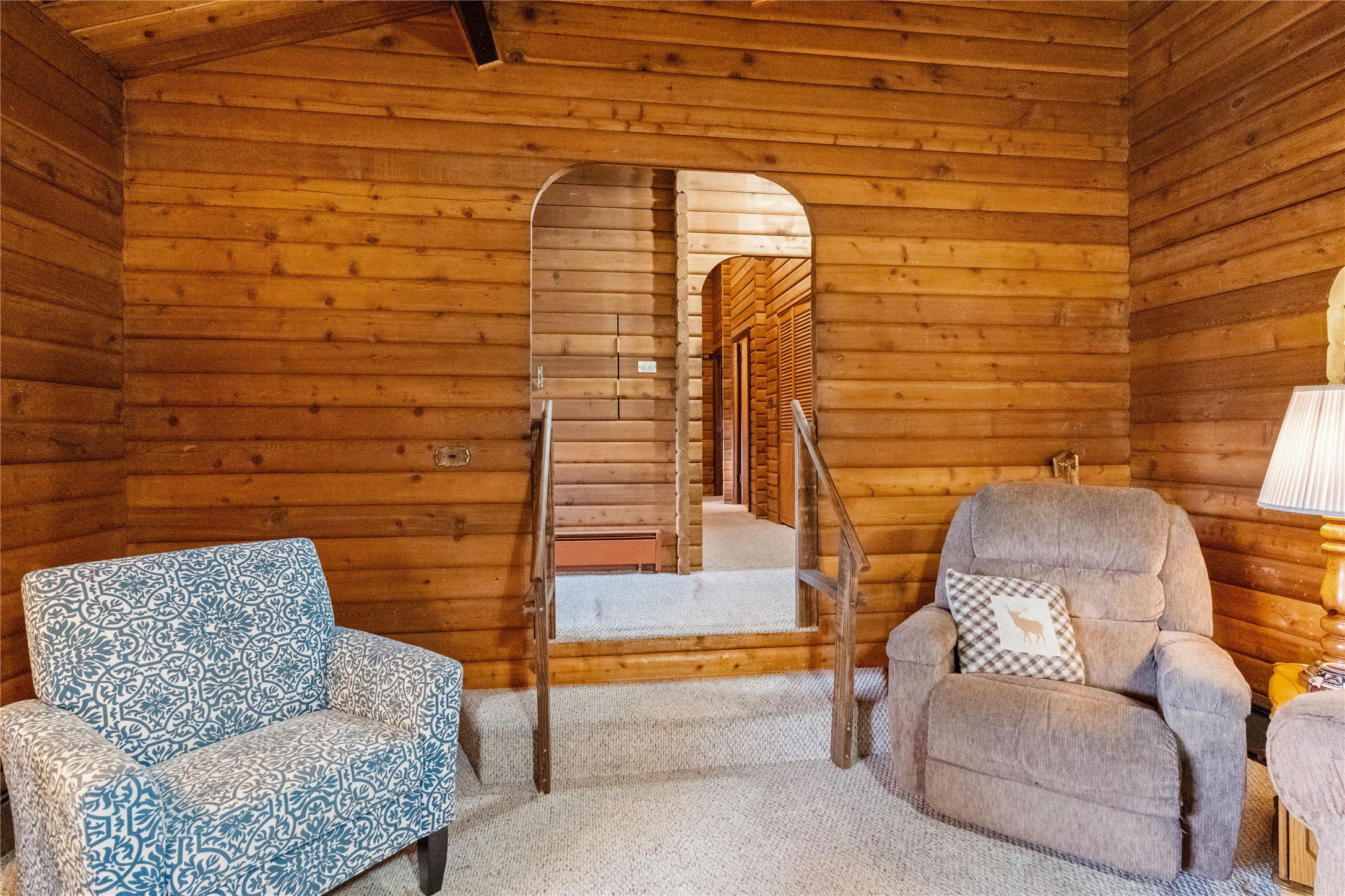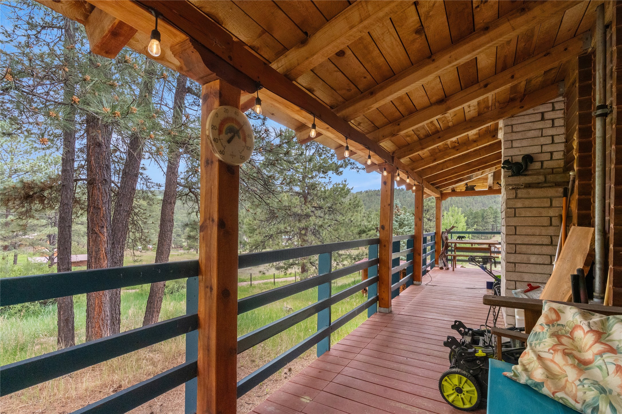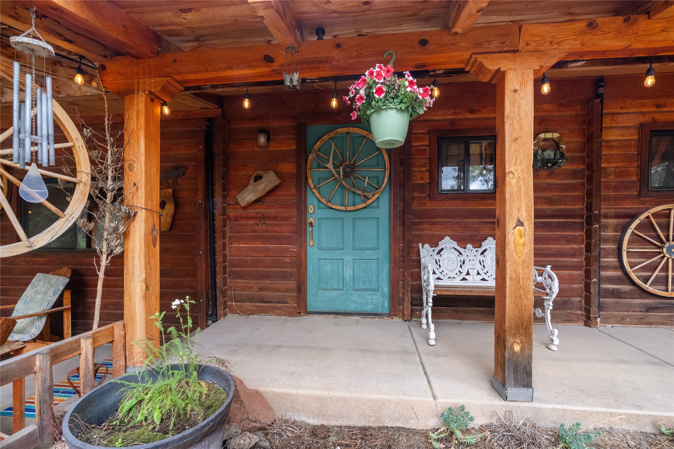 Lucky enough to live in the mountains...then you're lucky enough! This 2-bedroom, 1-bath 2,219 sq ft log cabin on 1.2 acres in La Cueva is the perfect spot! Originally a 3-bedroom, one room was opened up to expand the primary suite--but it could easily be converted back. The fabulous Panabode cabin with its interlocking log design blends modern living with traditional. From the wagon wheel-antler chandelier to the arched doorways & rustic warm interiors, the cedar tongue-&-groove cathedral wood ceiling, & the inviting rocking chair wrap-around covered porch, every detail enhances the home's irresistible charm! The spacious main bedroom is perfect to add in a cozy reading nook or office. Walk-out basement offers endless possibilities--finish it for extra bedrooms or a rec room or keep it as a workshop. You won't find a better location for a sweet weekend getaway or a full-time residence!