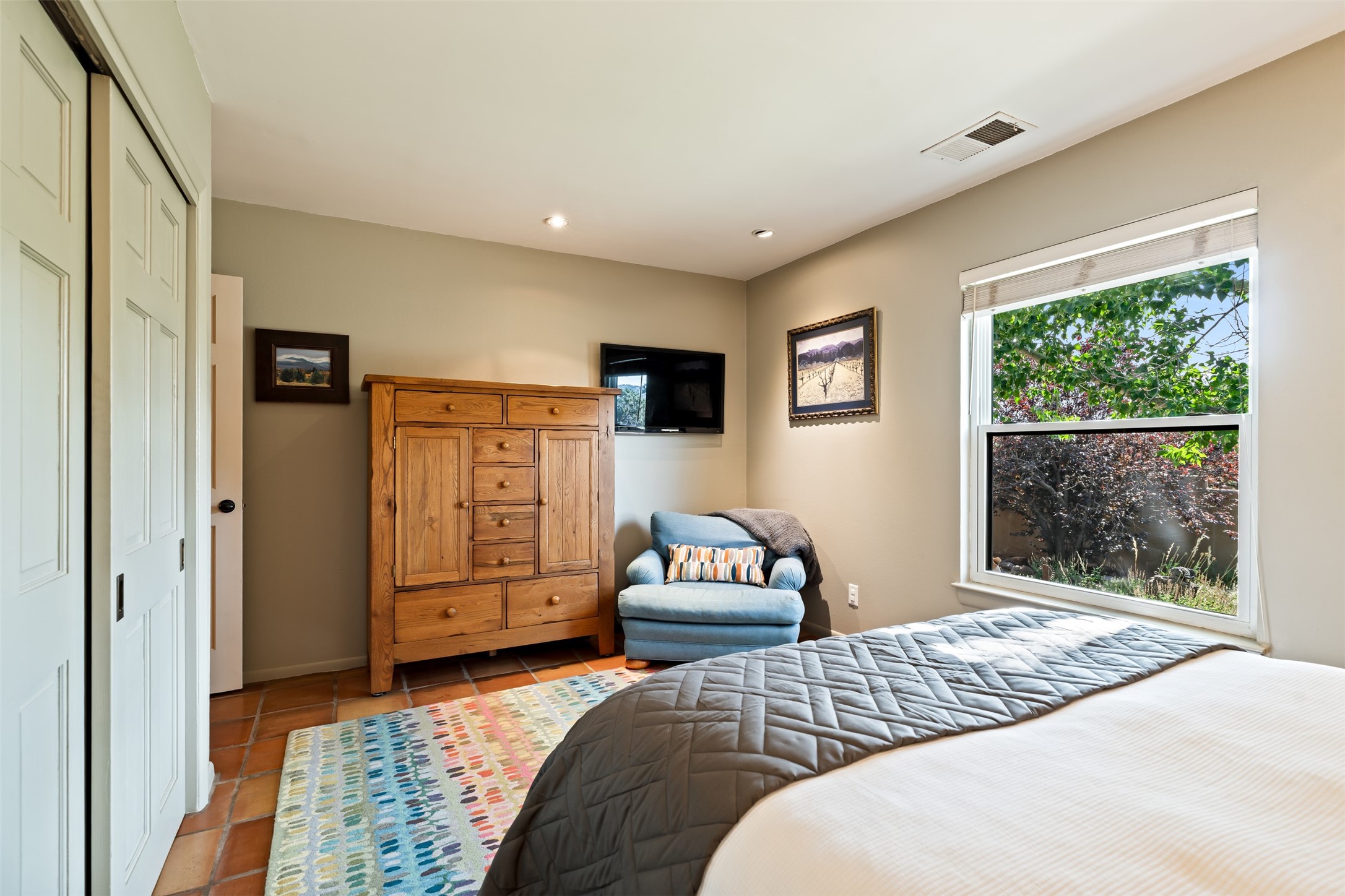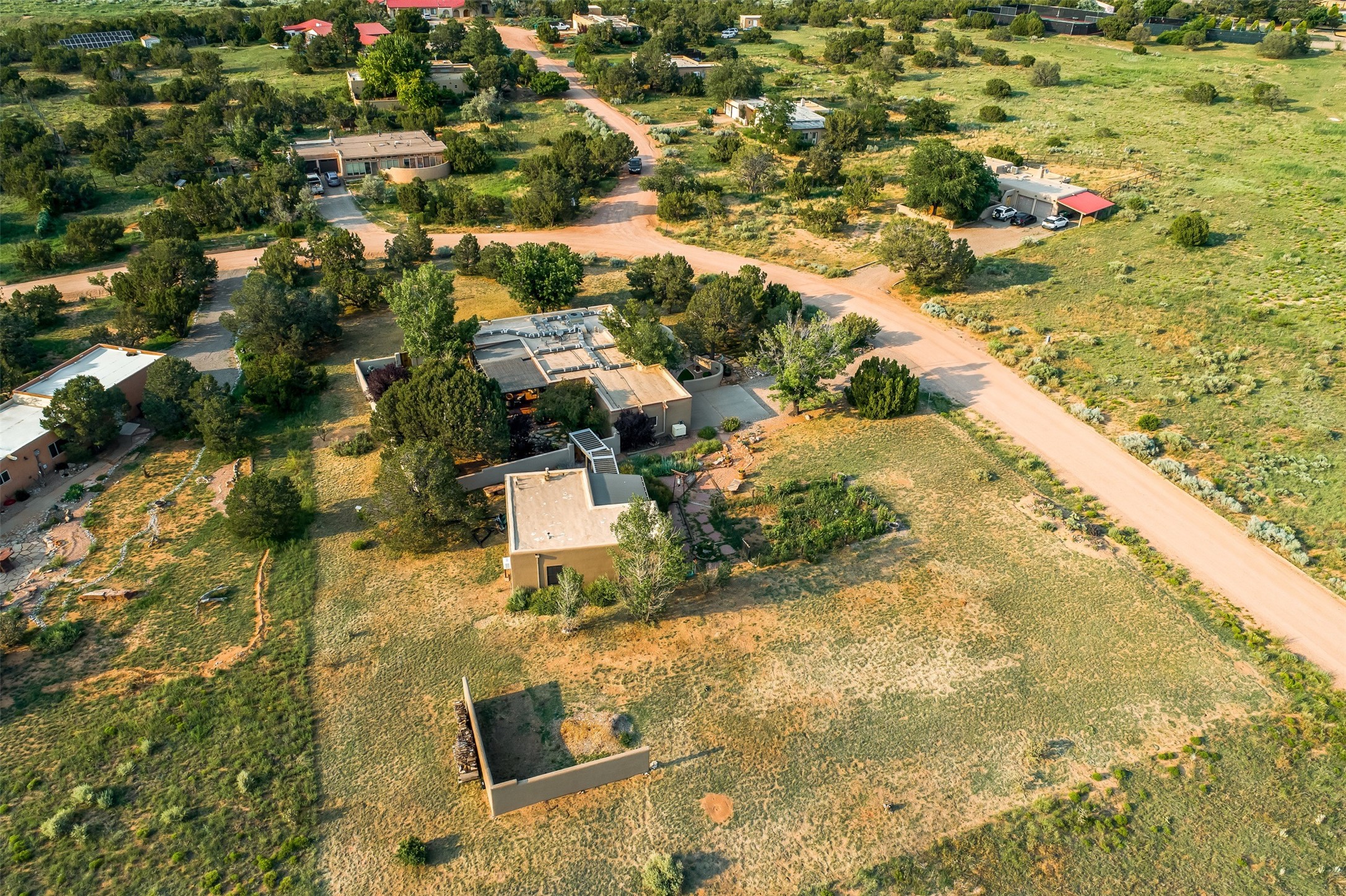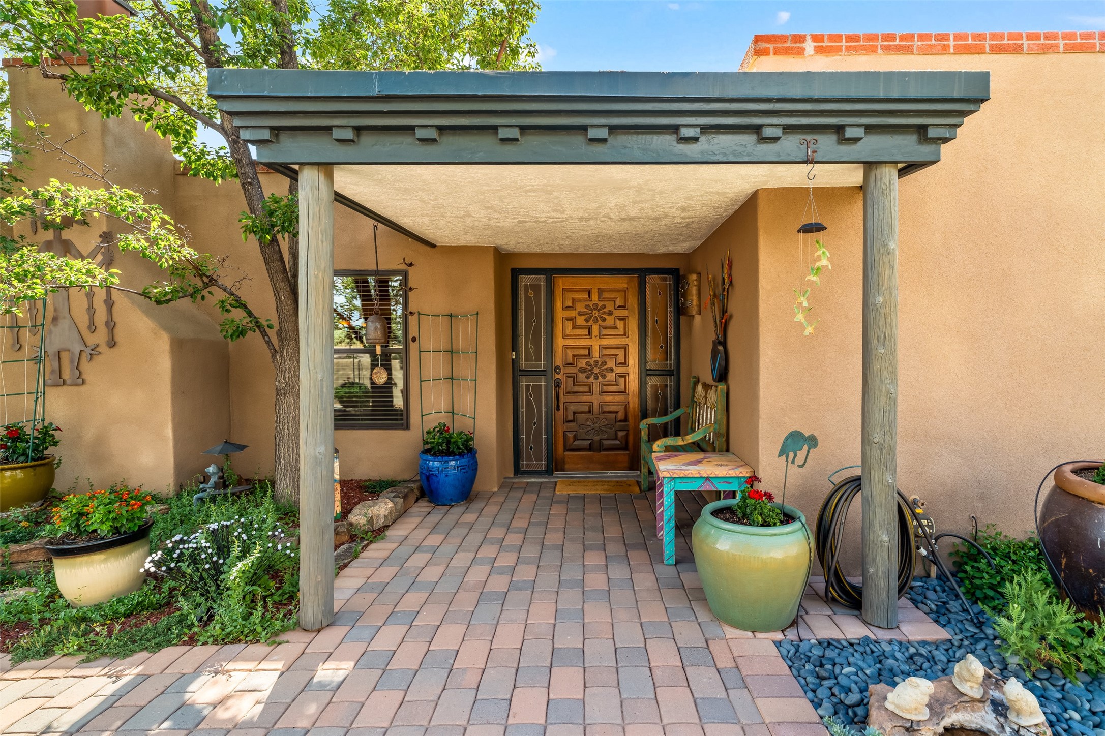 Welcome to this beautifully remodeled & meticulously maintained property featuring a 1,568-square-foot main home & a spacious 780-square-foot studio/casita. Recently re-stuccoed & there is a silicone roof upgrade with a warranty until 2027. This property offers style & peace of mind.The 3-bedroom, 2-bath main home is a delight. The kitchen is efficient--complete with stainless steel appliances, a gas stove, electric oven, pantry, and well designed pull-out drawers. Two completely updated bathrooms include luxe finishes such as Brazilian granite, a deep soaking tub with sliding glass doors, & a primary suite bath with granite counters, a generous glass-enclosed shower, & ample cabinet and closet space.Enjoy the Saltillo tile floors and the hand-troweled plaster ceilings. The living room features a cozy fireplace with an electric insert and flows into a lovely dining room with inset lighting and abundant natural light. The guest bedroom is inviting & well-appointed, while the third bedroom/office features built-in shelving for function & flexibility.Step outside to find front & back portals with handcrafted gates & light fixtures designed by artist Frank Seckler with lush landscaping--ideal for relaxing or entertaining. Don't miss the private hot tub between the main house & casita.The studio is a gem of its own--built with rastra construction, featuring radiant in-floor heat, stained concrete floors, a coved ceiling with vigas, hand-troweled plaster walls, a bathroom, & great natural light. It's equipped with its own septic, boiler, water heater, and a window A/C unit. With forced air heat & refrigerated A/C in the main house, as well as a generator which activates, should the power go out. Every detail is cared for in this truly exceptional property--beautiful, functional, & ready to enjoy. Eldorado has a Community Center, pool, tennis, pickle ball, playgrounds, miles of trails & a large nature preserveThis is an opportunity you don't want to miss!