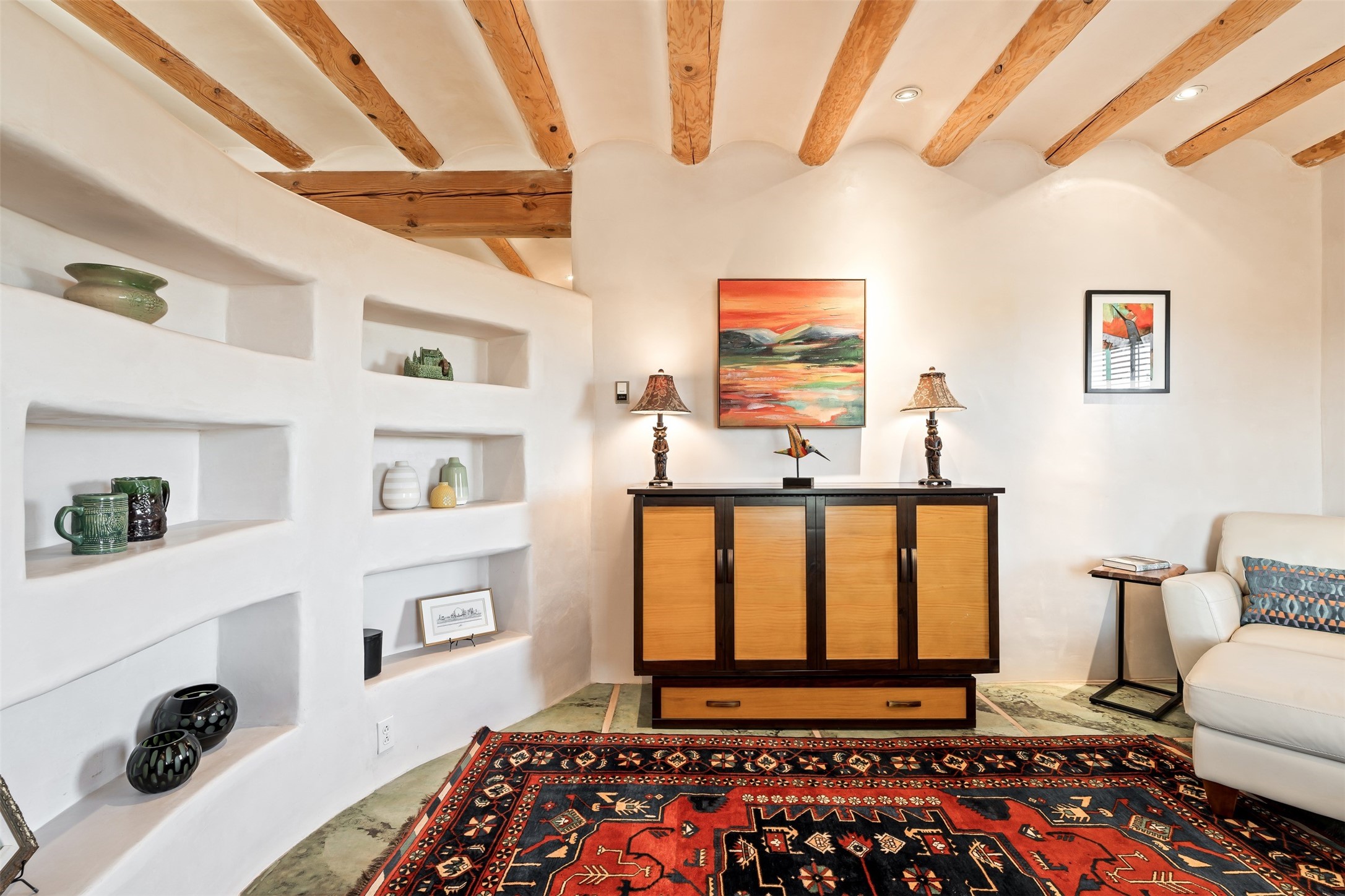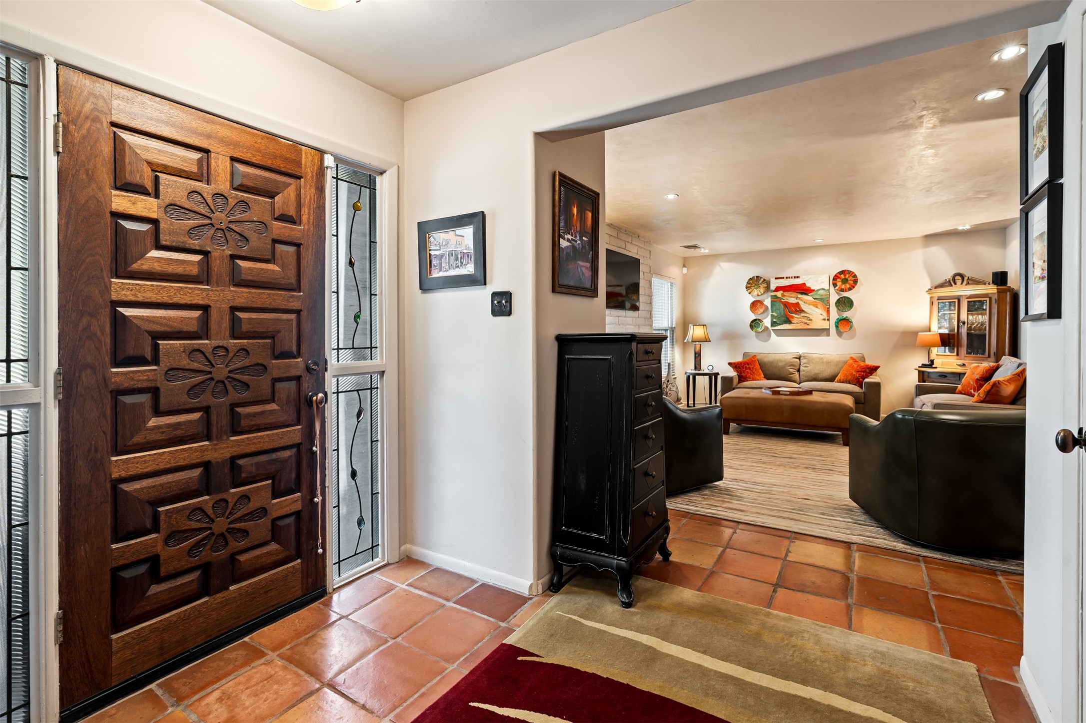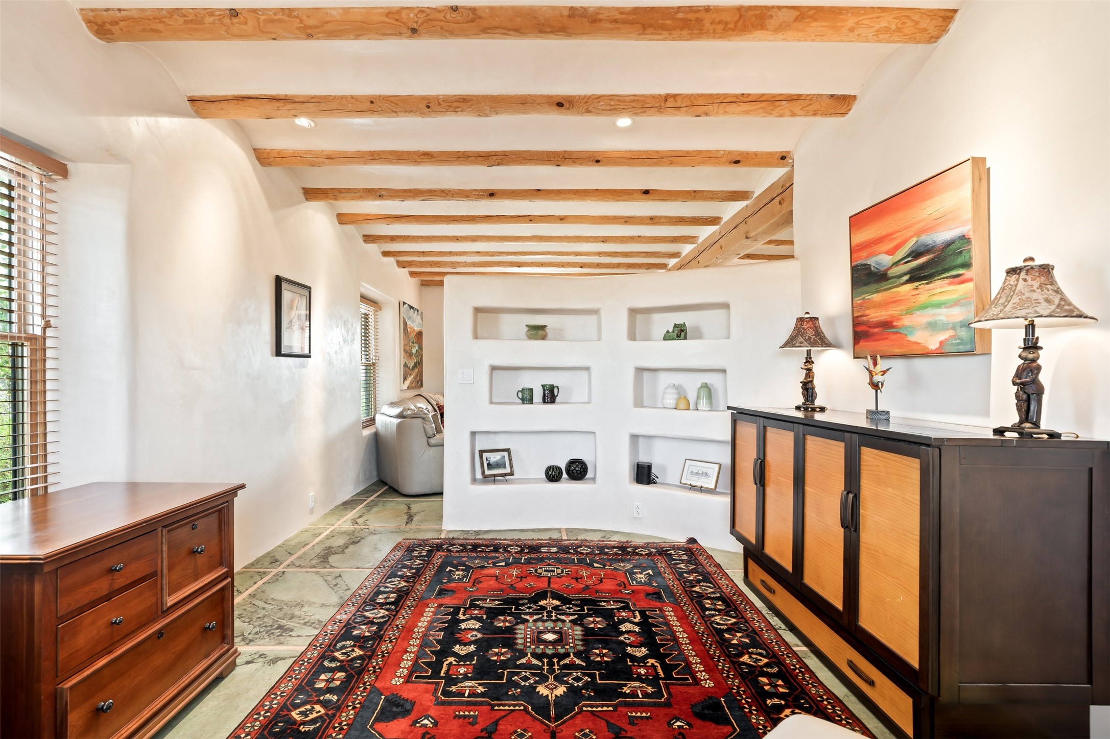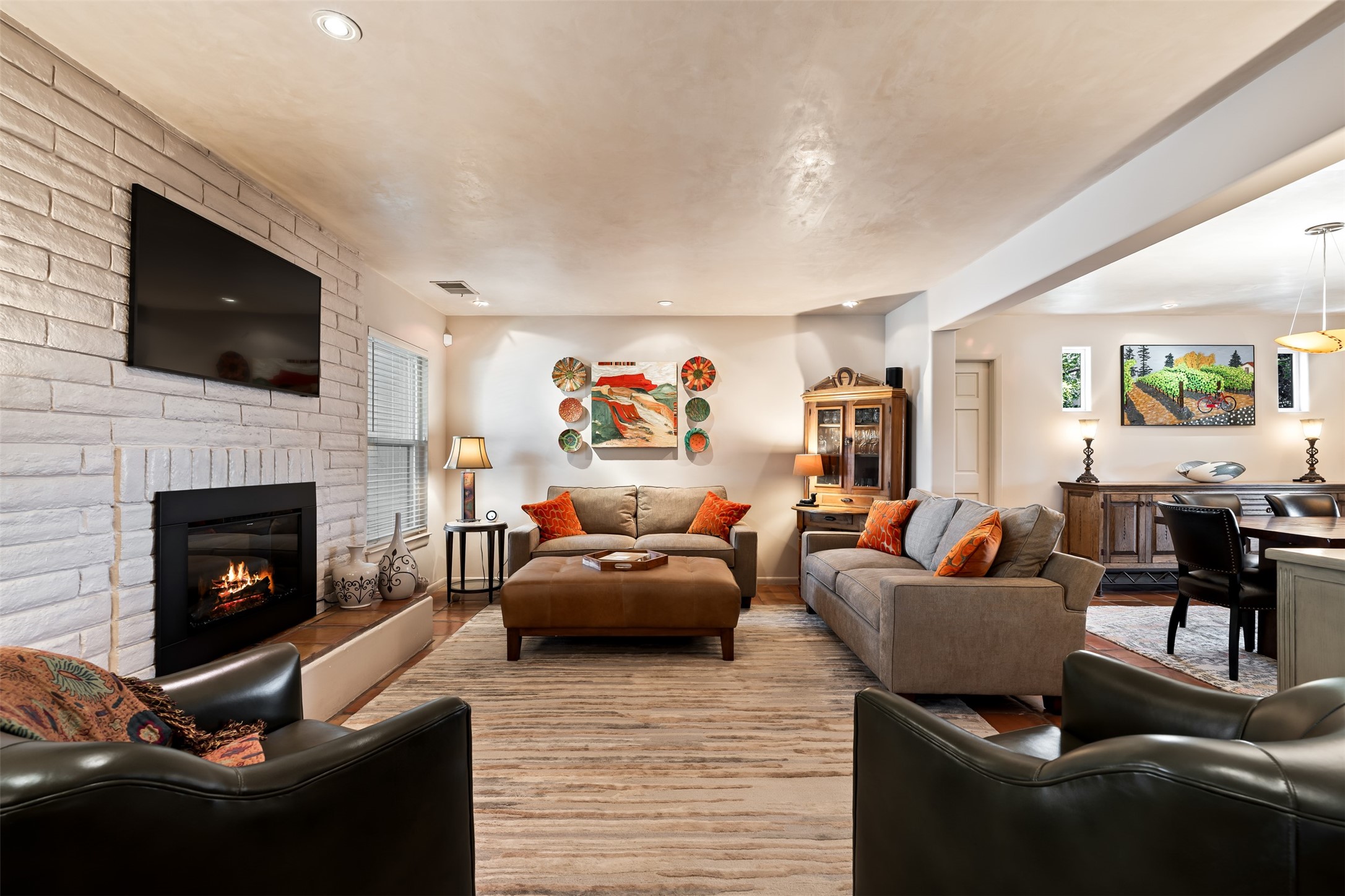 Welcome to this beautifully remodeled & meticulously maintained property featuring a 1,568-square-foot main home & a spacious 780-square-foot studio/casita. Recently re-stuccoed & there is a silicone roof upgrade with a warranty until 2027. This property offers style & peace of mind.The 3-bedroom, 2-bath main home is a delight. The kitchen is efficient--complete with stainless steel appliances, a gas stove, electric oven, pantry, and well designed pull-out drawers. Two completely updated bathrooms include luxe finishes such as Brazilian granite, a deep soaking tub with sliding glass doors, & a primary suite bath with granite counters, a generous glass-enclosed shower, & ample cabinet and closet space.Enjoy the Saltillo tile floors and the hand-troweled plaster ceilings. The living room features a cozy fireplace with an electric insert and flows into a lovely dining room with inset lighting and abundant natural light. The guest bedroom is inviting & well-appointed, while the third bedroom/office features built-in shelving for function & flexibility.Step outside to find front & back portals with handcrafted gates & light fixtures designed by artist Frank Seckler with lush landscaping--ideal for relaxing or entertaining. Don't miss the private hot tub between the main house & casita.The studio is a gem of its own--built with rastra construction, featuring radiant in-floor heat, stained concrete floors, a coved ceiling with vigas, hand-troweled plaster walls, a bathroom, & great natural light. It's equipped with its own septic, boiler, water heater, and a window A/C unit. With forced air heat & refrigerated A/C in the main house, as well as a generator which activates, should the power go out. Every detail is cared for in this truly exceptional property--beautiful, functional, & ready to enjoy. Eldorado has a Community Center, pool, tennis, pickle ball, playgrounds, miles of trails & a large nature preserveThis is an opportunity you don't want to miss!