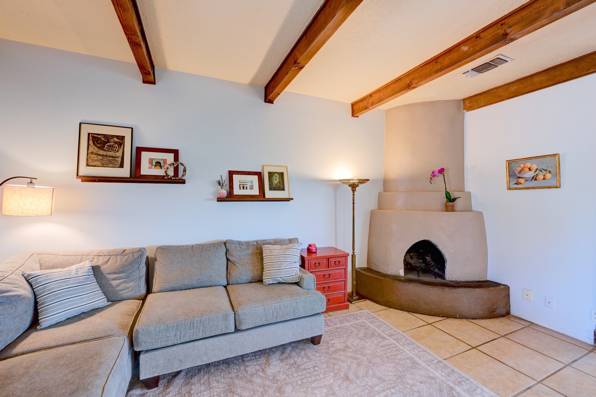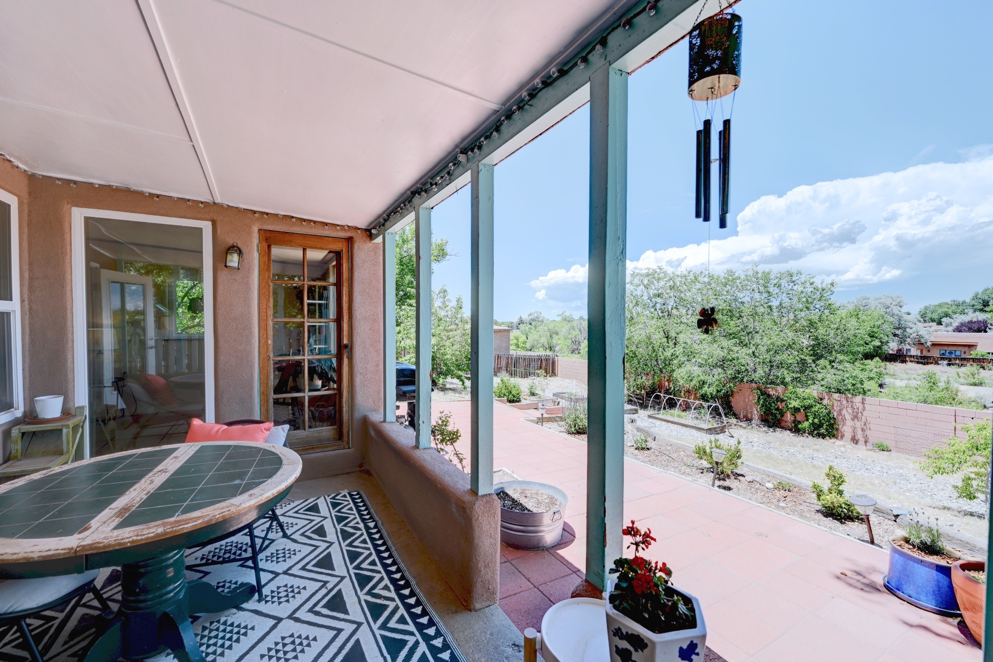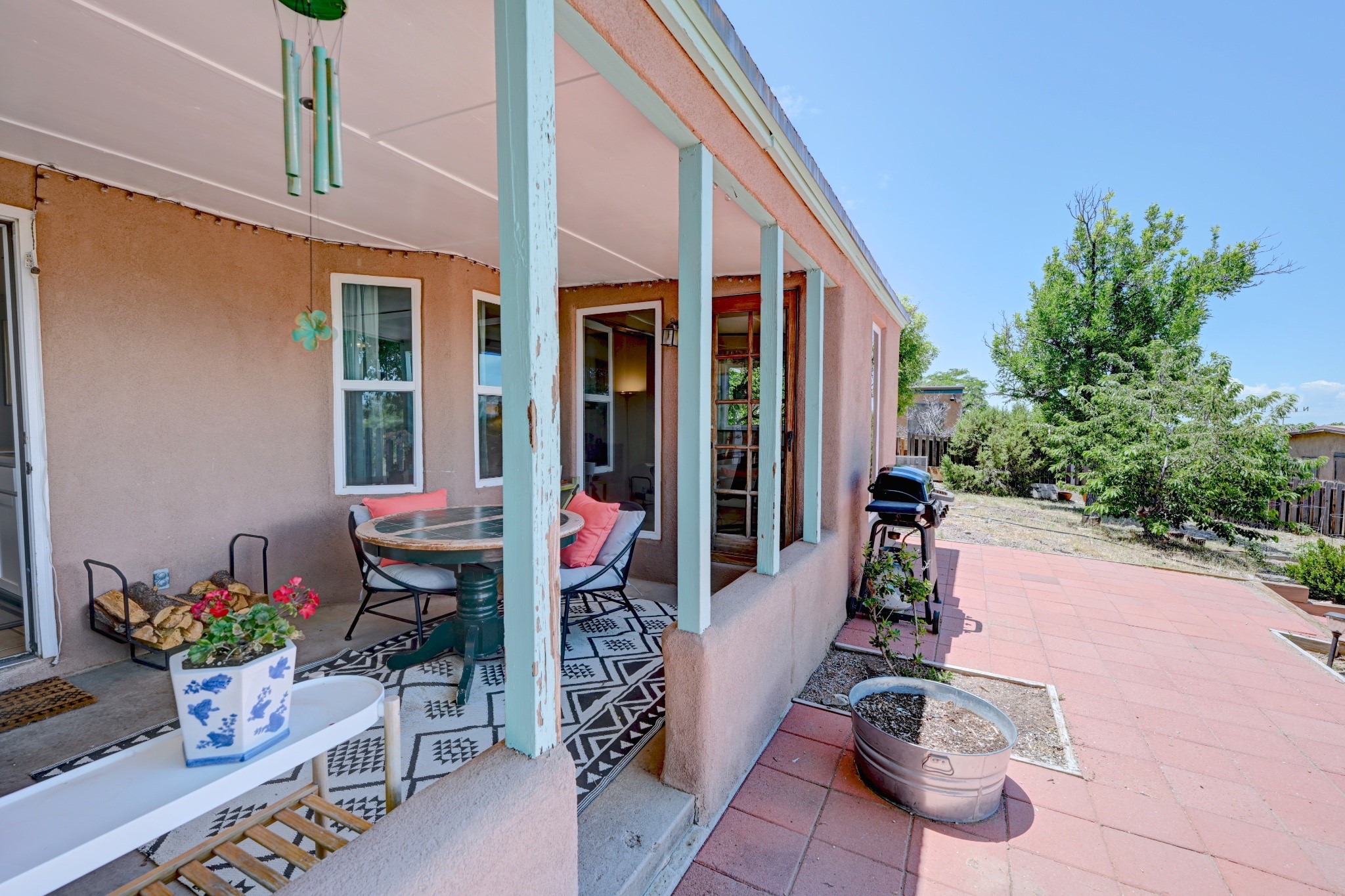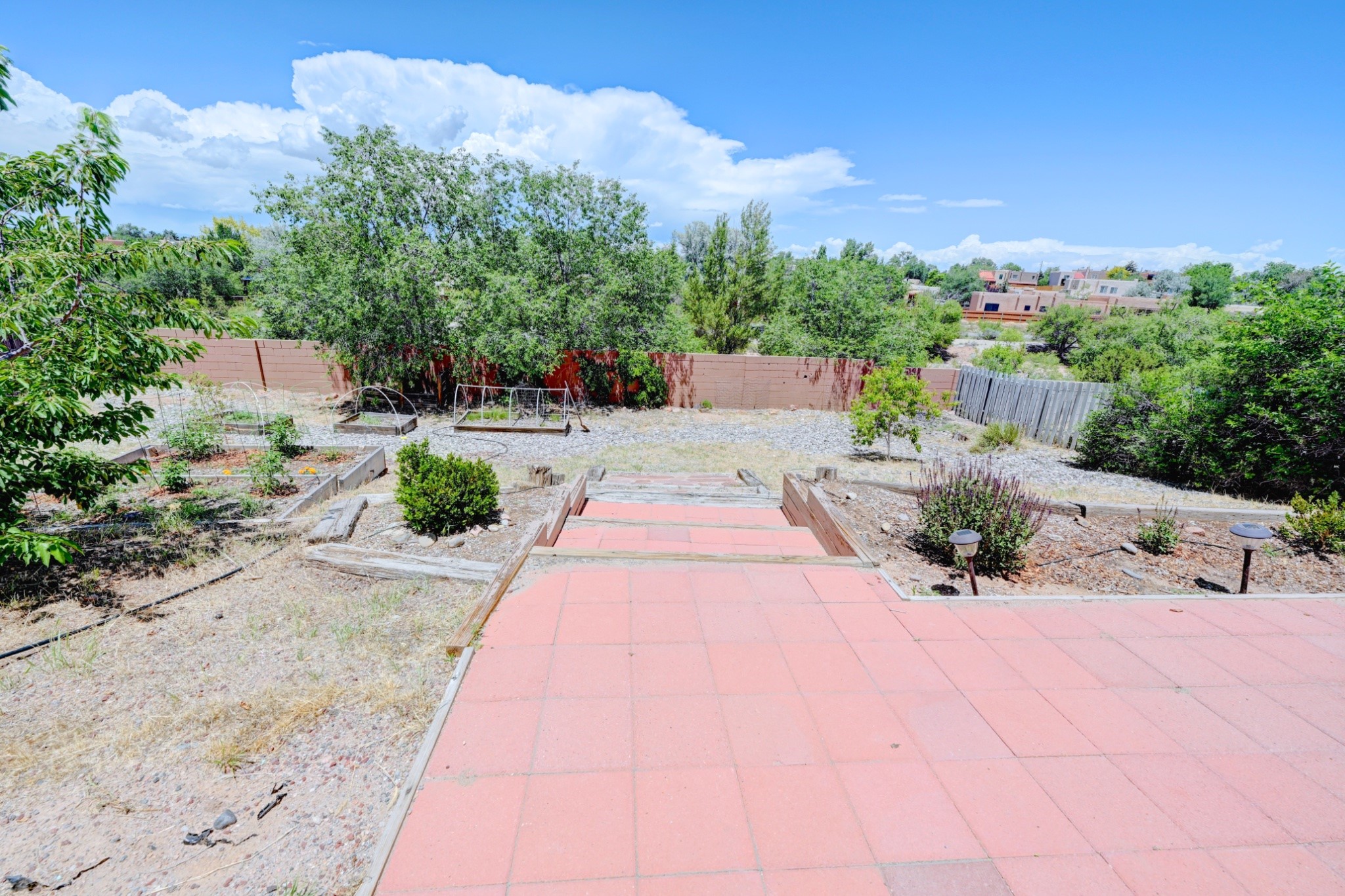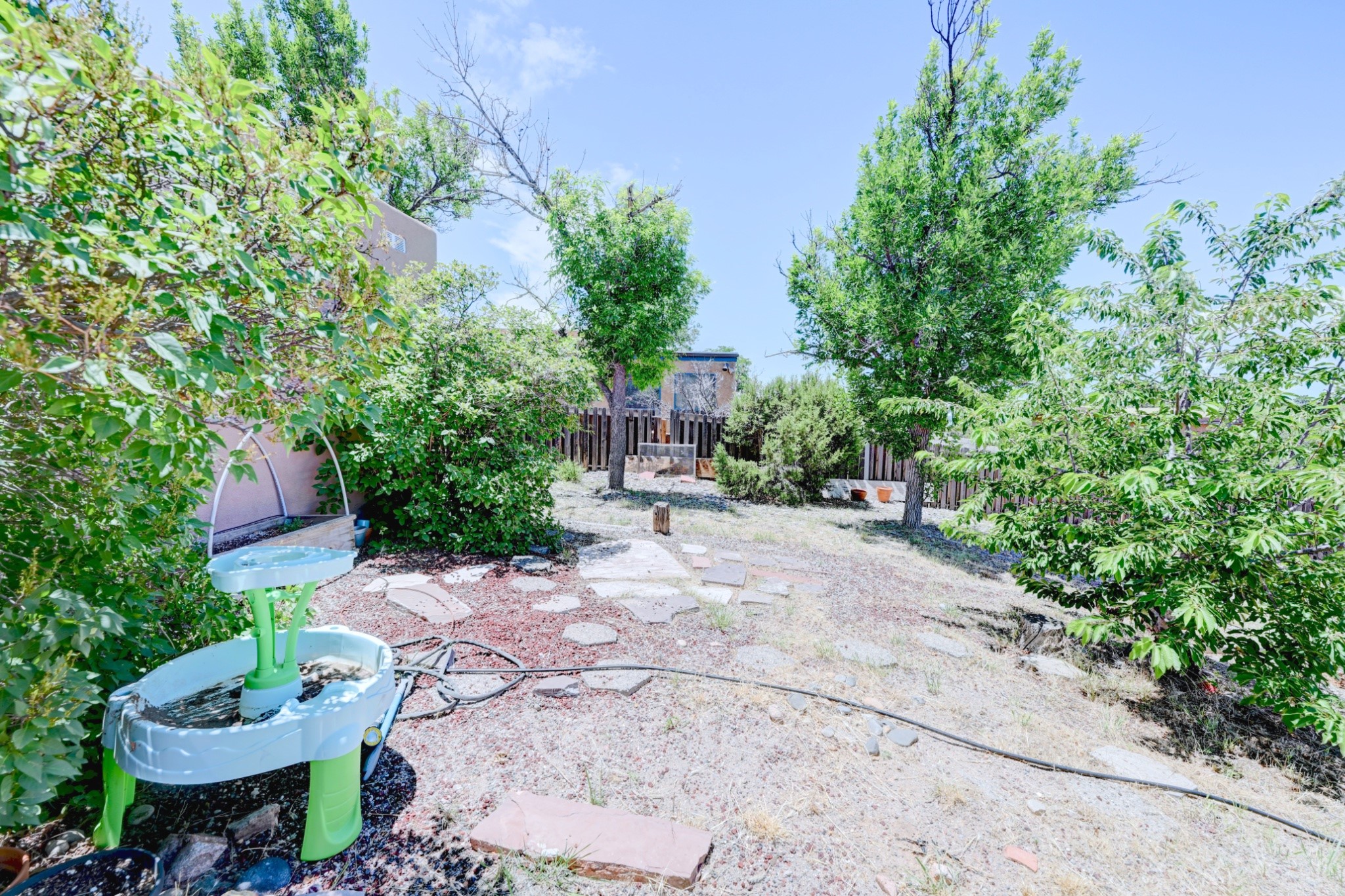 Nestled in a quiet and friendly Santa Fe neighborhood, this updated 3-bedroom, 2-bathroom home blends charm with modern convenience. With 1,154 square feet of interior space, the layout offers an easy flow between living, dining, and kitchen areas--ideal for everyday living and entertaining. A kiva fireplace adds cozy Southwestern character, perfect for curling up during those cool desert nights.Step outside and enjoy a private, spacious lot adorned with peach, pear, and cherry trees, plus perennial plants that return each year. A drip irrigation system helps keep them--and your weekends--low-maintenance. The two-car garage features newly installed doors as of 2024, pairing functionality with curb appeal.The kitchen was completely remodeled in 2020 and boasts a new refrigerator and Bosch dishwasher, while both bathrooms received full renovations in 2023. You'll also enjoy the benefits of smart climate control with a programmable thermostat, an evaporative cooler, and efficient windows installed in 2017 that help keep things comfortable year-round. Floating shelves and built-in bookshelves offer both storage and style touches throughout the home.Located just minutes from conveniences like Albertson's Supermarket and Santa Fe High School, the home's location also puts you a short trip from Dr. Martin Luther King Jr. Park--ideal for weekend strolls or playful afternoons. Commuting? Zia Road Station is nearby, making travel a breeze, whether you're heading into town or venturing further out.Thoughtfully maintained and tastefully updated, this home offers a great balance between comfort, location, and character. Whether you're planting roots or seeking a cozy retreat with fruit trees and plenty of sunshine, this property could be your perfect fit. Don't forget to check out the 3D Walkthrough and Drone Video.