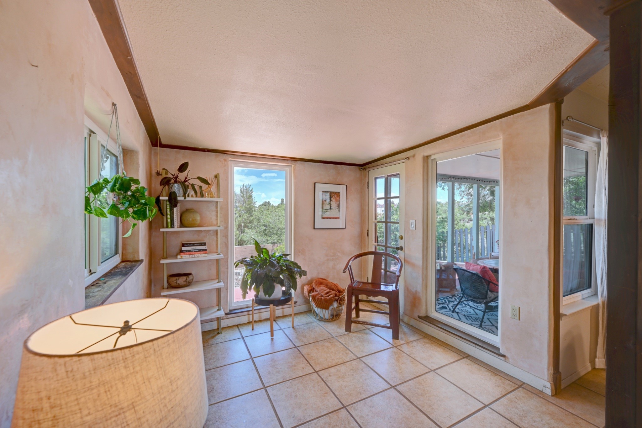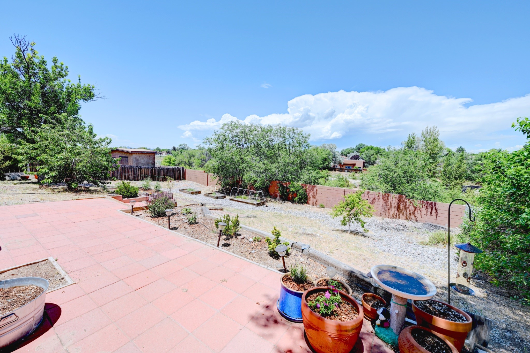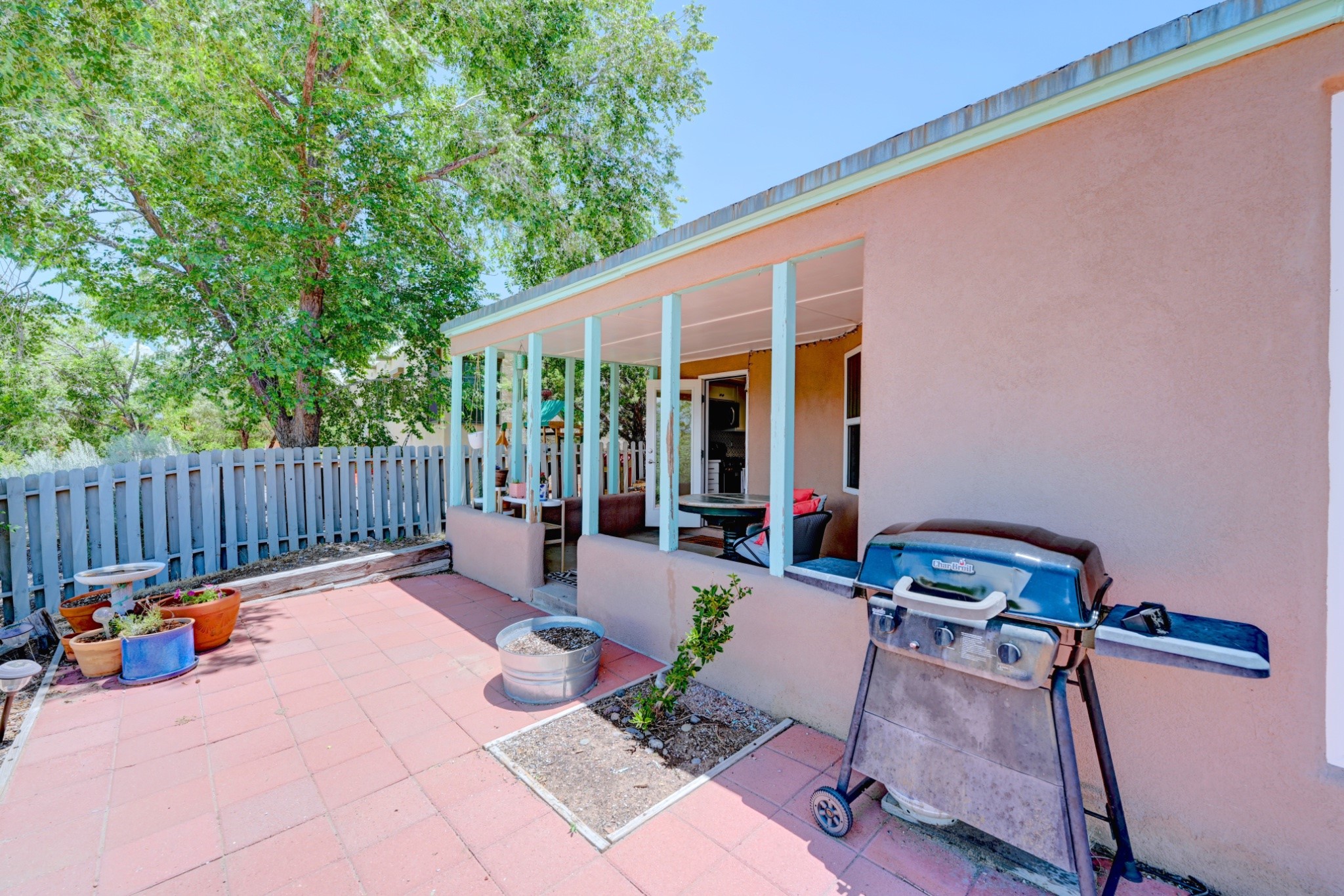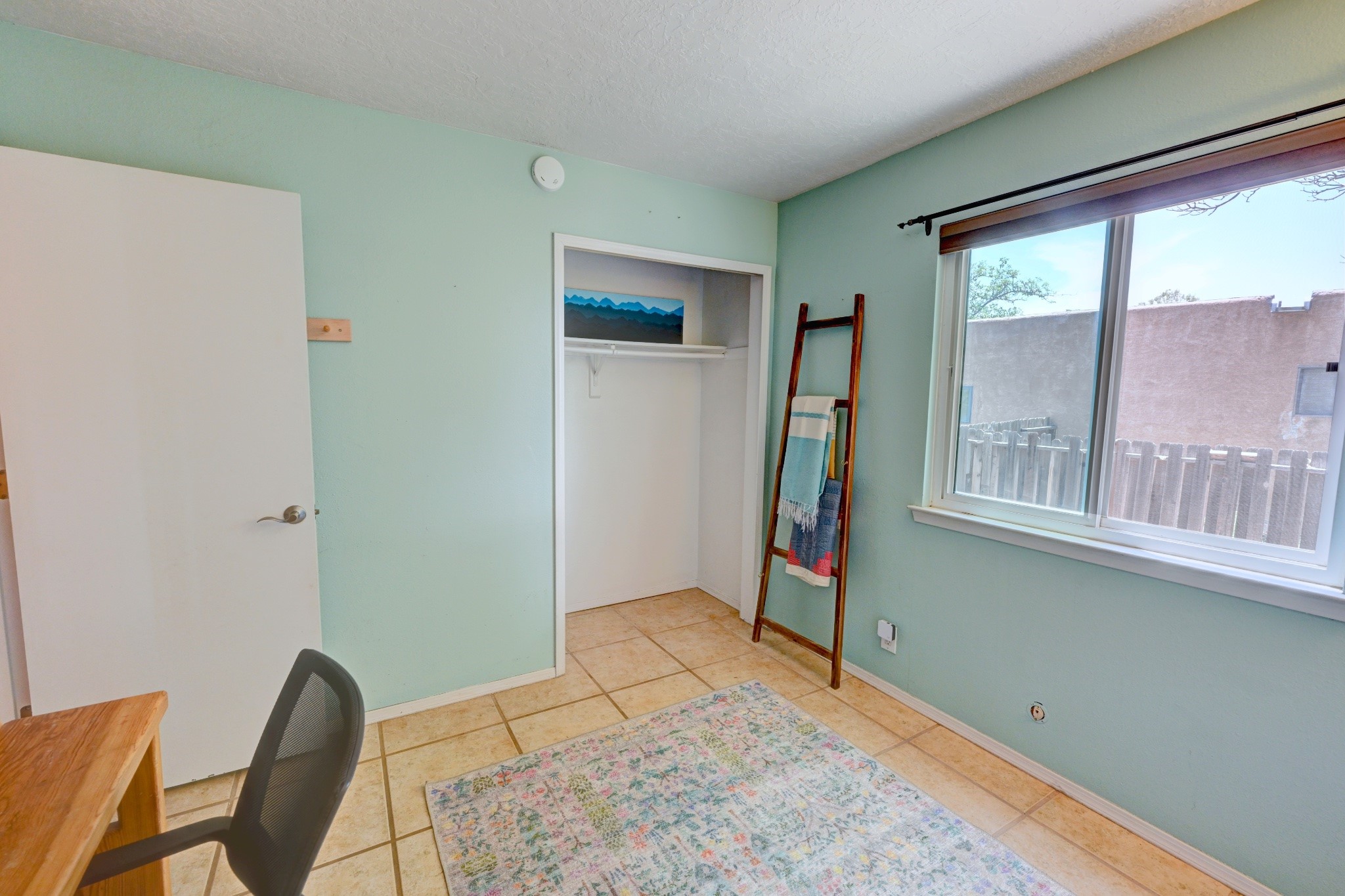 Nestled in a quiet and friendly Santa Fe neighborhood, this updated 3-bedroom, 2-bathroom home blends charm with modern convenience. With 1,154 square feet of interior space, the layout offers an easy flow between living, dining, and kitchen areas--ideal for everyday living and entertaining. A kiva fireplace adds cozy Southwestern character, perfect for curling up during those cool desert nights.Step outside and enjoy a private, spacious lot adorned with peach, pear, and cherry trees, plus perennial plants that return each year. A drip irrigation system helps keep them--and your weekends--low-maintenance. The two-car garage features newly installed doors as of 2024, pairing functionality with curb appeal.The kitchen was completely remodeled in 2020 and boasts a new refrigerator and Bosch dishwasher, while both bathrooms received full renovations in 2023. You'll also enjoy the benefits of smart climate control with a programmable thermostat, an evaporative cooler, and efficient windows installed in 2017 that help keep things comfortable year-round. Floating shelves and built-in bookshelves offer both storage and style touches throughout the home.Located just minutes from conveniences like Albertson's Supermarket and Santa Fe High School, the home's location also puts you a short trip from Dr. Martin Luther King Jr. Park--ideal for weekend strolls or playful afternoons. Commuting? Zia Road Station is nearby, making travel a breeze, whether you're heading into town or venturing further out.Thoughtfully maintained and tastefully updated, this home offers a great balance between comfort, location, and character. Whether you're planting roots or seeking a cozy retreat with fruit trees and plenty of sunshine, this property could be your perfect fit. Don't forget to check out the 3D Walkthrough and Drone Video.