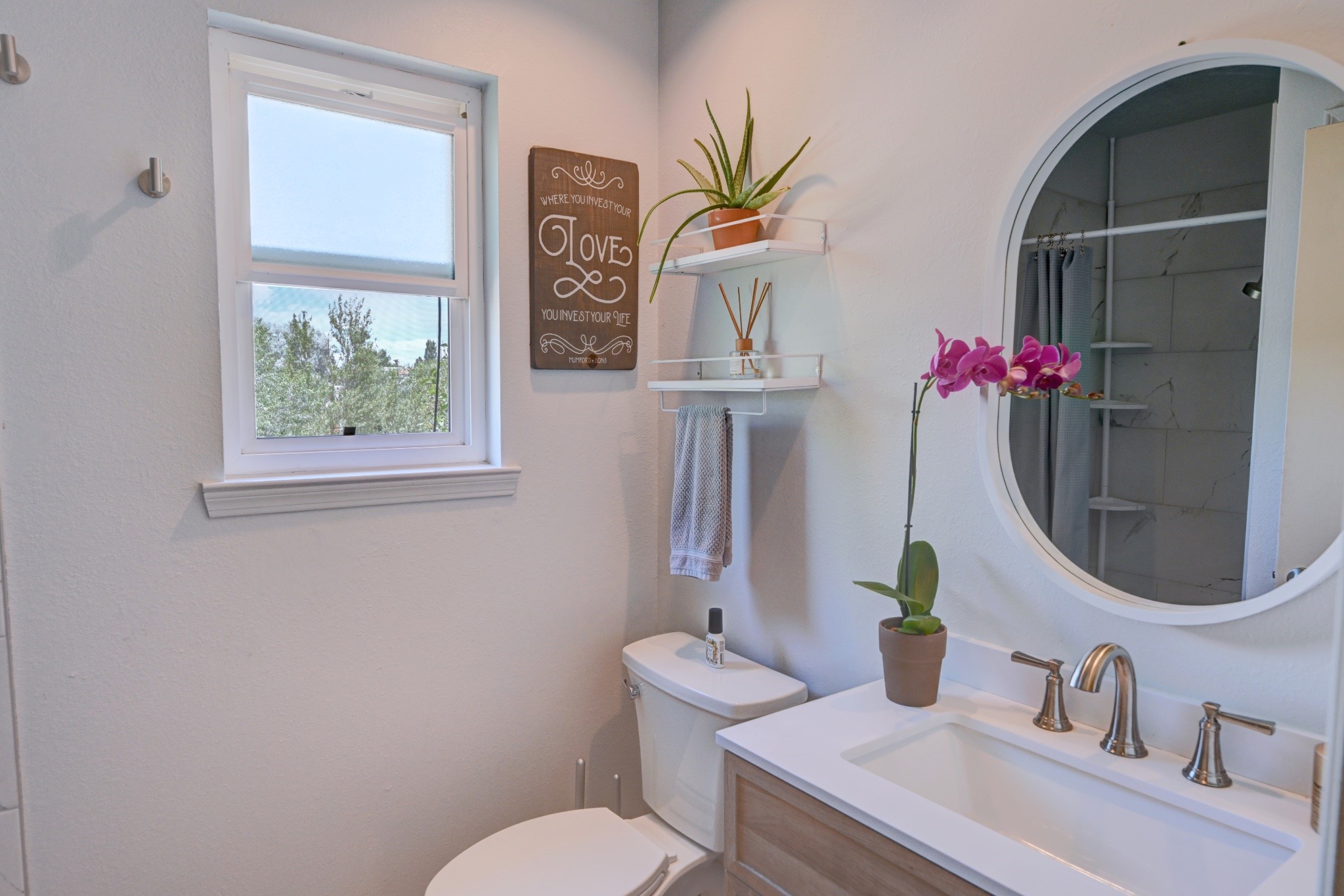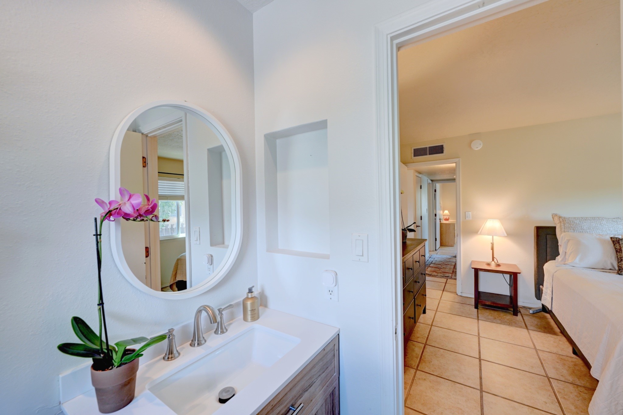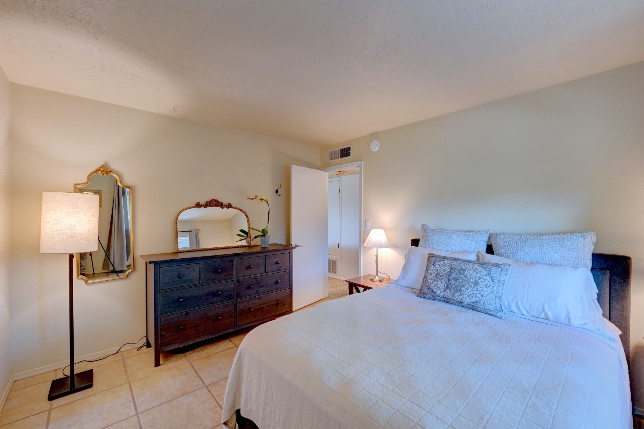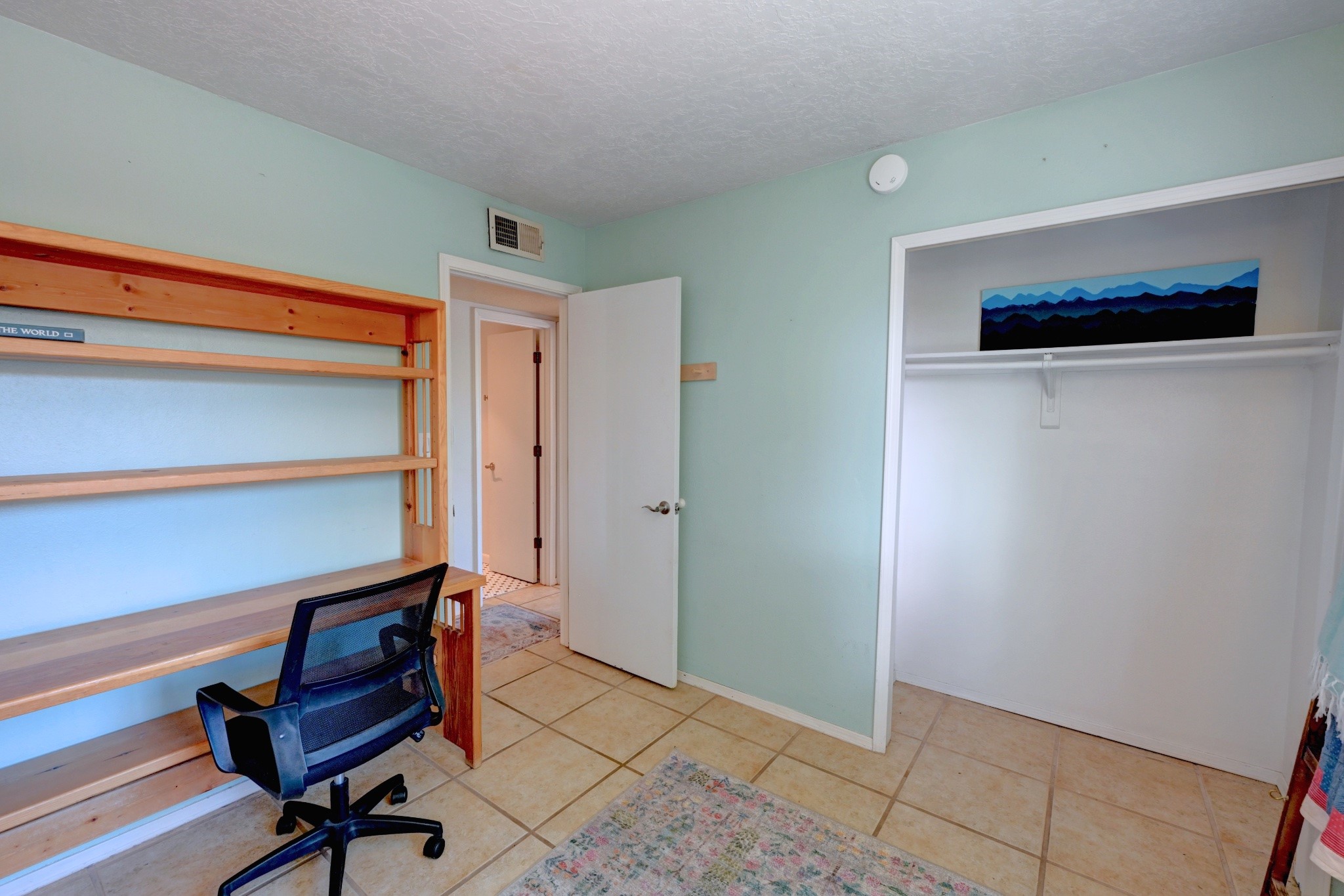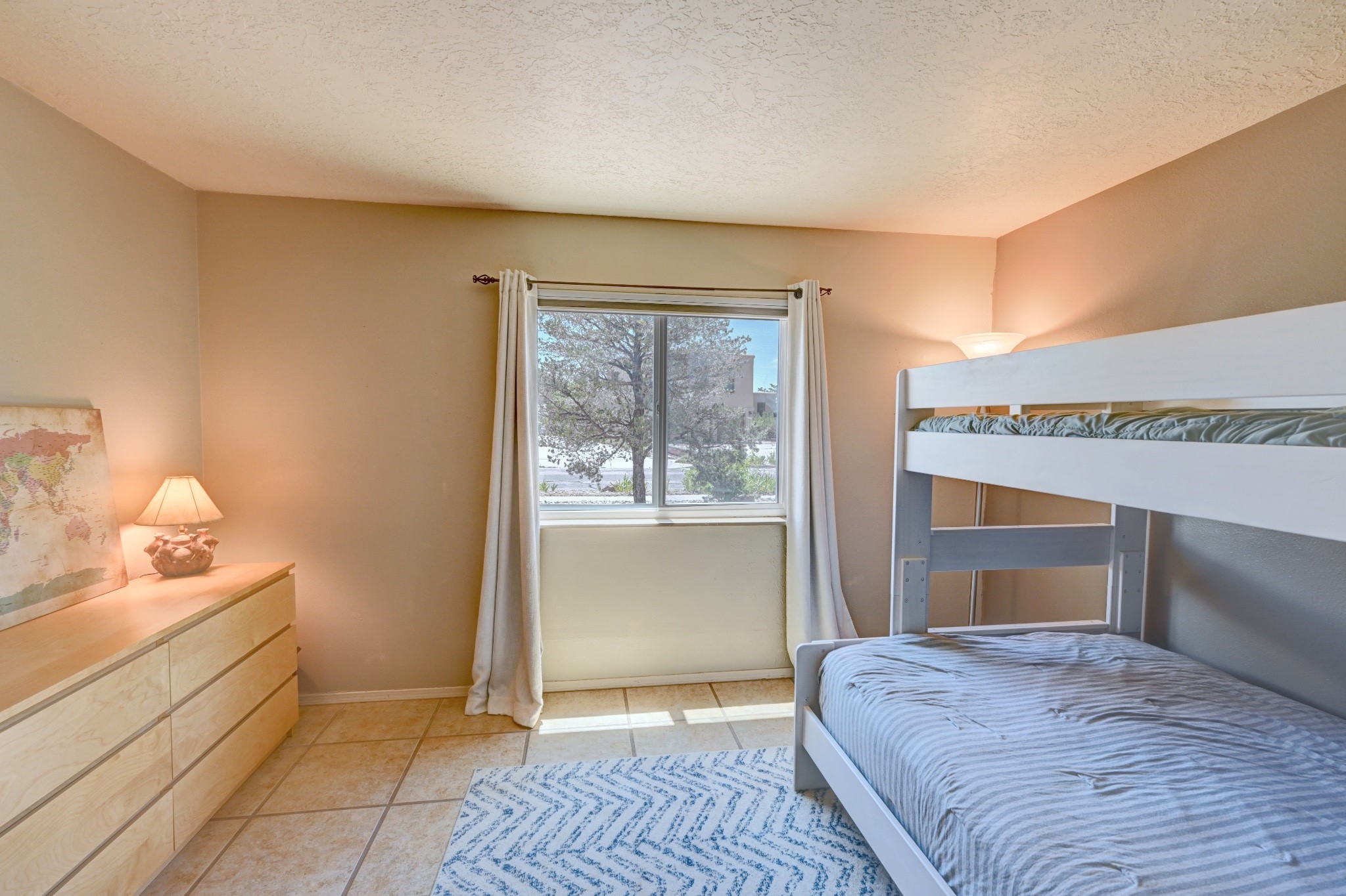Nestled in a quiet and friendly Santa Fe neighborhood, this updated 3-bedroom, 2-bathroom home blends charm with modern convenience. With 1,154 square feet of interior space, the layout offers an easy flow between living, dining, and kitchen areas--ideal for everyday living and entertaining. A kiva fireplace adds cozy Southwestern character, perfect for curling up during those cool desert nights.Step outside and enjoy a private, spacious lot adorned with peach, pear, and cherry trees, plus perennial plants that return each year. A drip irrigation system helps keep them--and your weekends--low-maintenance. The two-car garage features newly installed doors as of 2024, pairing functionality with curb appeal.The kitchen was completely remodeled in 2020 and boasts a new refrigerator and Bosch dishwasher, while both bathrooms received full renovations in 2023. You'll also enjoy the benefits of smart climate control with a programmable thermostat, an evaporative cooler, and efficient windows installed in 2017 that help keep things comfortable year-round. Floating shelves and built-in bookshelves offer both storage and style touches throughout the home.Located just minutes from conveniences like Albertson's Supermarket and Santa Fe High School, the home's location also puts you a short trip from Dr. Martin Luther King Jr. Park--ideal for weekend strolls or playful afternoons. Commuting? Zia Road Station is nearby, making travel a breeze, whether you're heading into town or venturing further out.Thoughtfully maintained and tastefully updated, this home offers a great balance between comfort, location, and character. Whether you're planting roots or seeking a cozy retreat with fruit trees and plenty of sunshine, this property could be your perfect fit. Don't forget to check out the 3D Walkthrough and Drone Video.