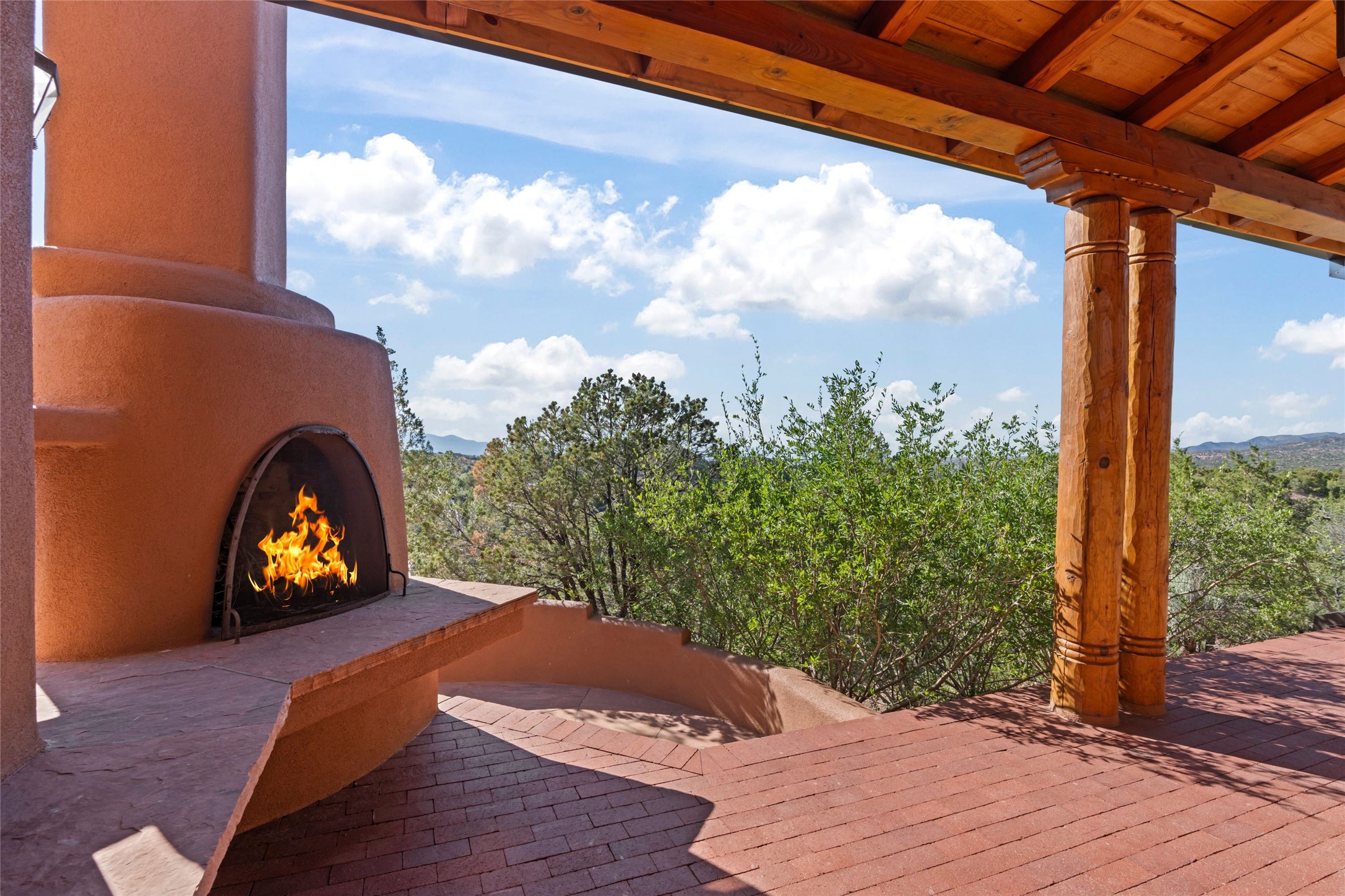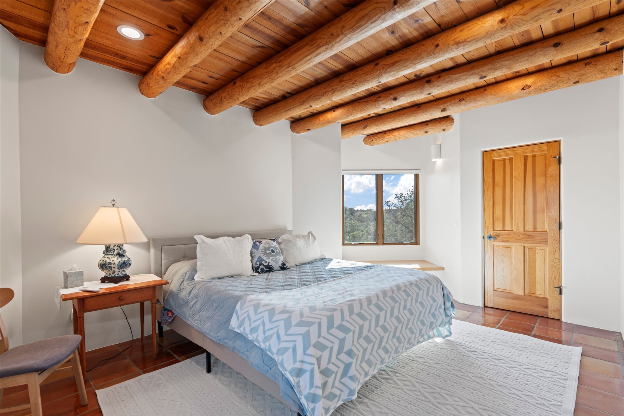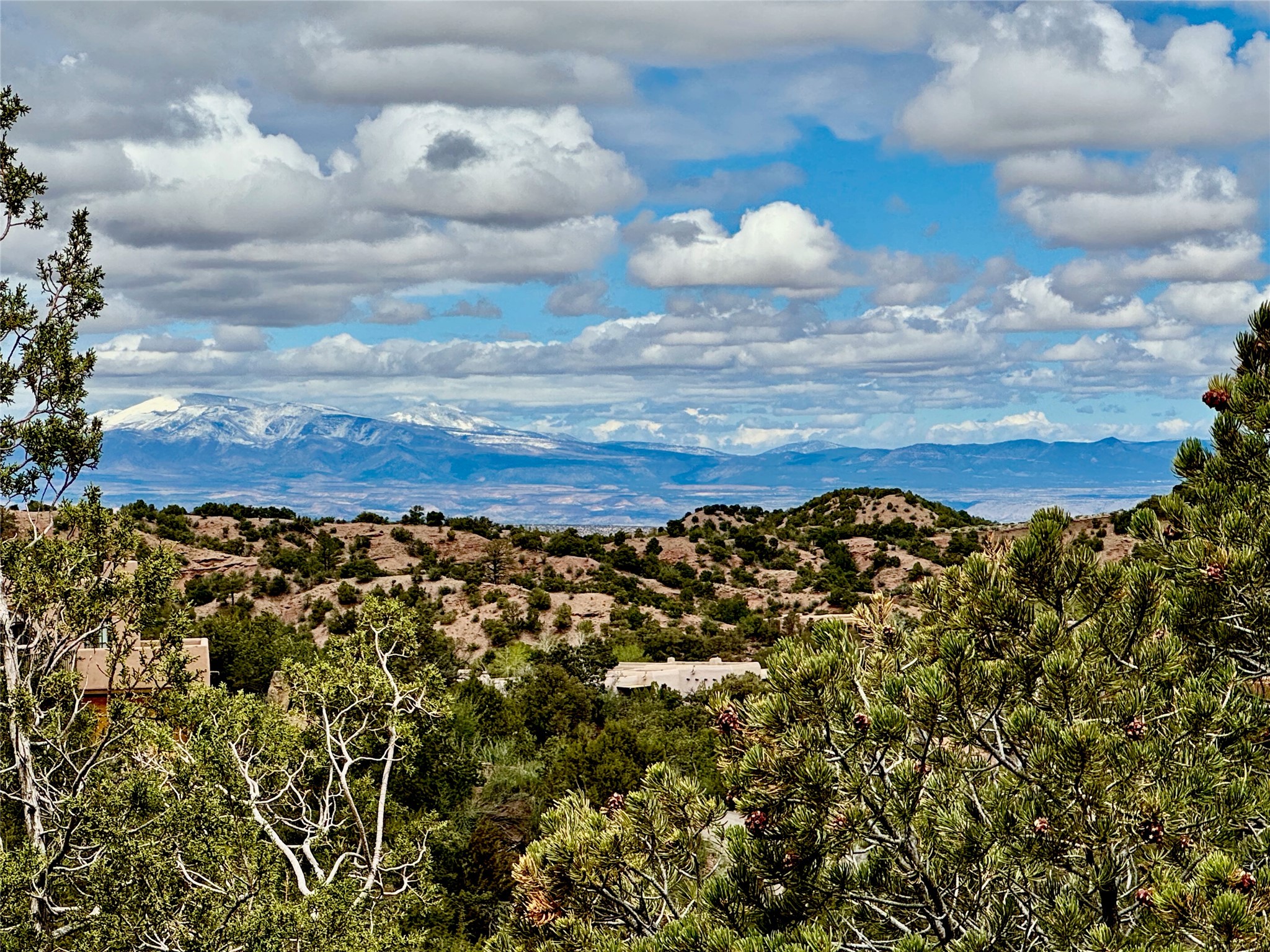 With spectacular mountain views in three directions and an enviable location just seven minutes from the Plaza, this recently remodeled home, originally constructed by noted builder Will Prull, is an exceptional estate. The 4,000-foot, 4-Bed + Office / 3.5 Bath Main House and spacious 1,700-foot 1-Bed / 2-Bath Guest House / Studio have gorgeous wood, stone, and tile finishes throughout. Nestled on a hilltop site within the exclusive Bishop Lodge Estates gated community, the property is located on 2.24 acres that overlook the storied Bishops Lodge and the National Forest. It enjoys unsurpassed, close-up views of the Sangre de Cristo mountains as well as stunning vistas of the Badlands and Jemez Mountains. It is in truly move-in condition having just undergone a comprehensive remodel in 2024-25 that includes new TPO roofs & stucco, new heating & cooling system, solar panels with battery backup, and much more. A short walk takes you to the Bishops Lodge, with numerous complimentary Club Privileges extended to the owners in this particular community. This exquisite, updated home represents a rare opportunity to live in a sought-after, gated community where properties rarely change hands. Call today to experience this extraordinary property.