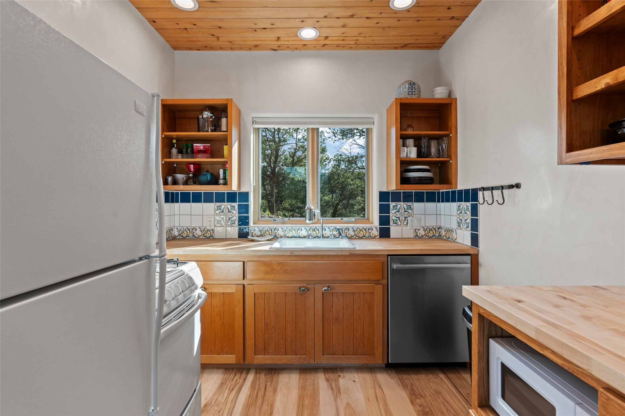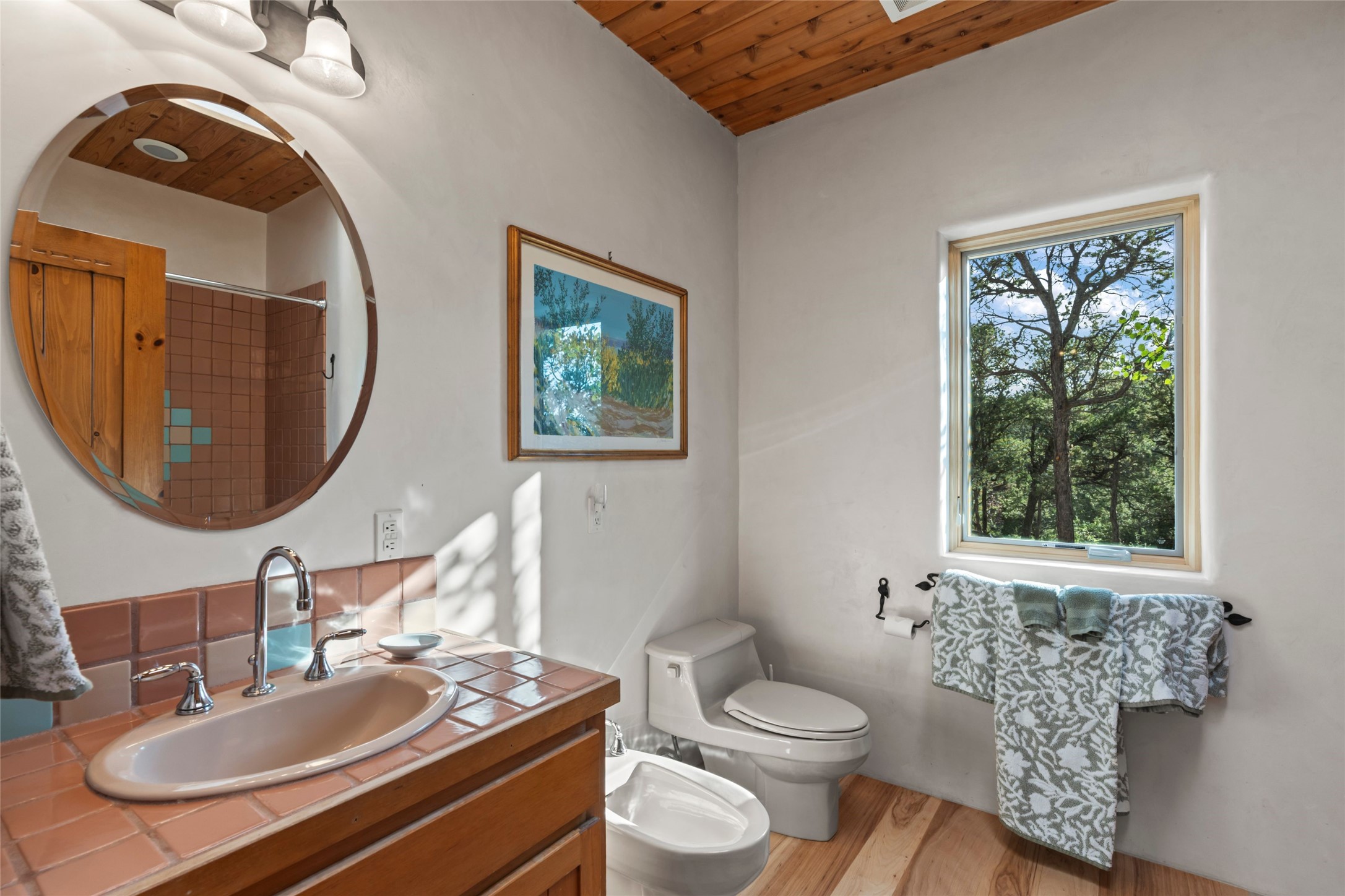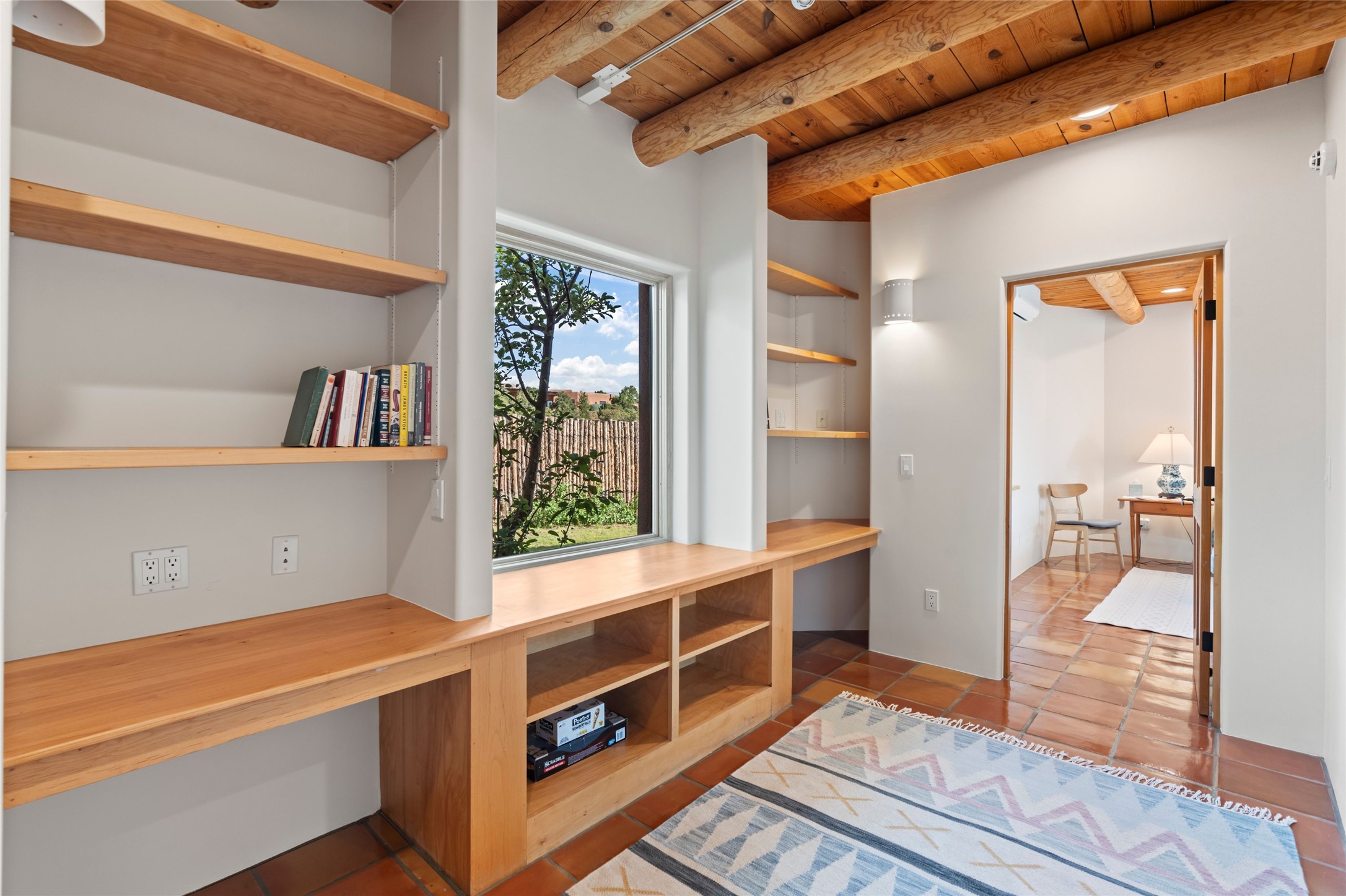 With spectacular mountain views in three directions and an enviable location just seven minutes from the Plaza, this recently remodeled home, originally constructed by noted builder Will Prull, is an exceptional estate. The 4,000-foot, 4-Bed + Office / 3.5 Bath Main House and spacious 1,700-foot 1-Bed / 2-Bath Guest House / Studio have gorgeous wood, stone, and tile finishes throughout. Nestled on a hilltop site within the exclusive Bishop Lodge Estates gated community, the property is located on 2.24 acres that overlook the storied Bishops Lodge and the National Forest. It enjoys unsurpassed, close-up views of the Sangre de Cristo mountains as well as stunning vistas of the Badlands and Jemez Mountains. It is in truly move-in condition having just undergone a comprehensive remodel in 2024-25 that includes new TPO roofs & stucco, new heating & cooling system, solar panels with battery backup, and much more. A short walk takes you to the Bishops Lodge, with numerous complimentary Club Privileges extended to the owners in this particular community. This exquisite, updated home represents a rare opportunity to live in a sought-after, gated community where properties rarely change hands. Call today to experience this extraordinary property.