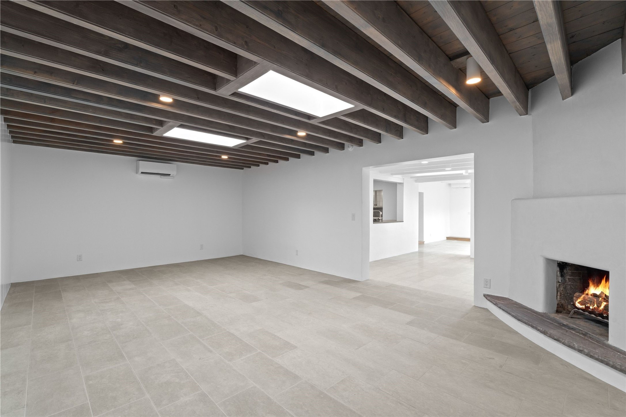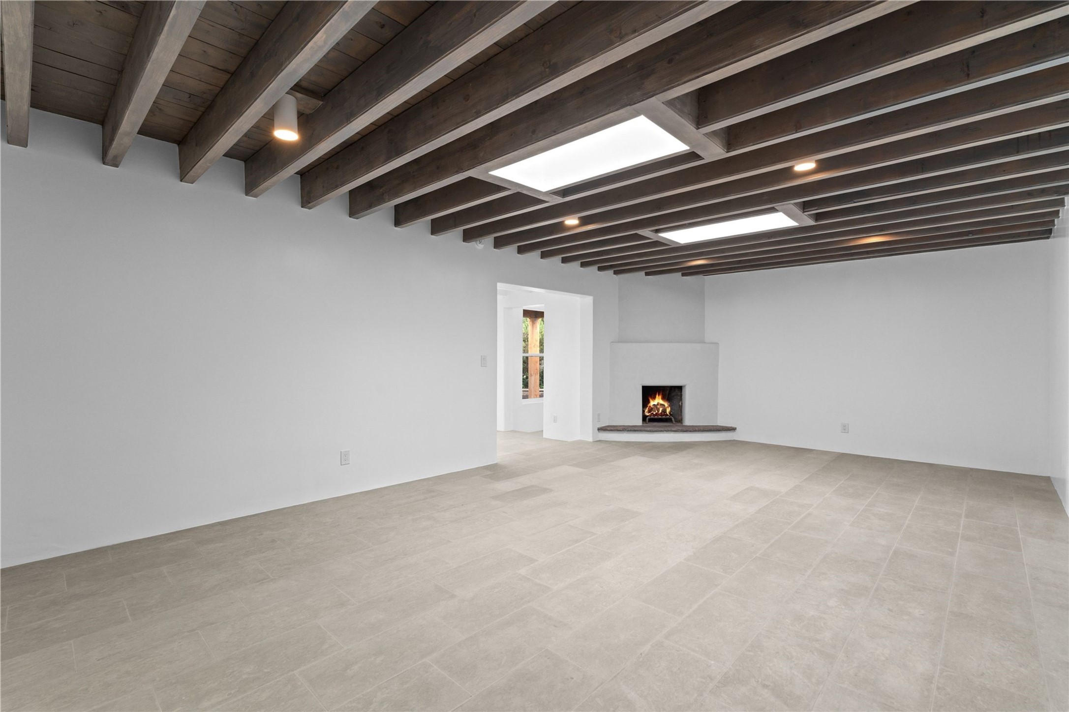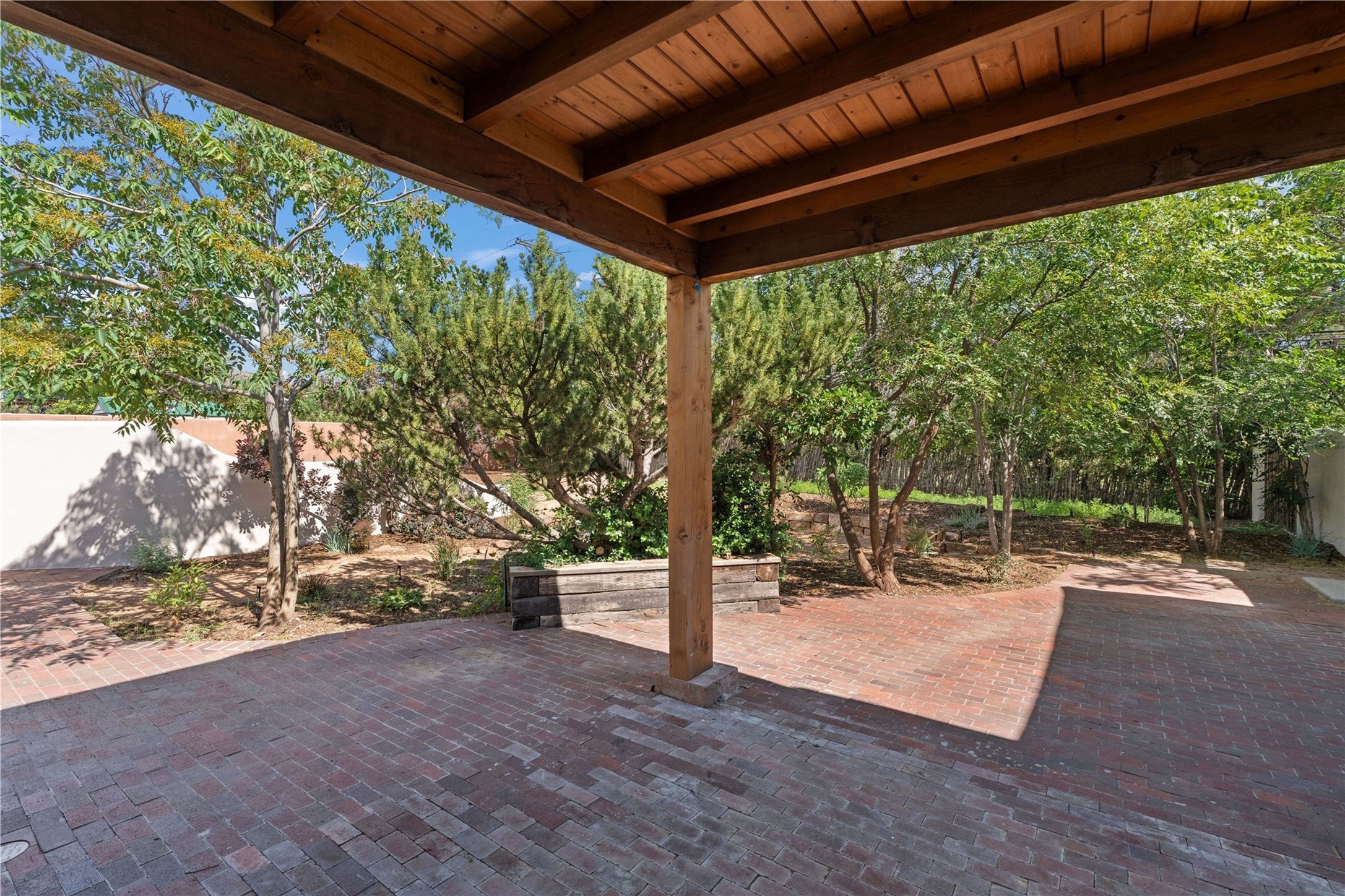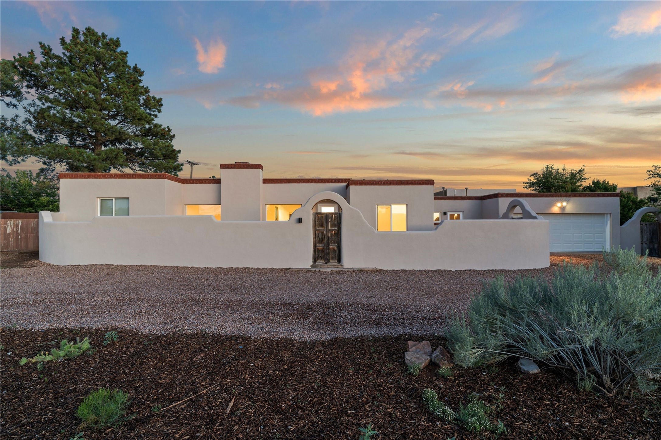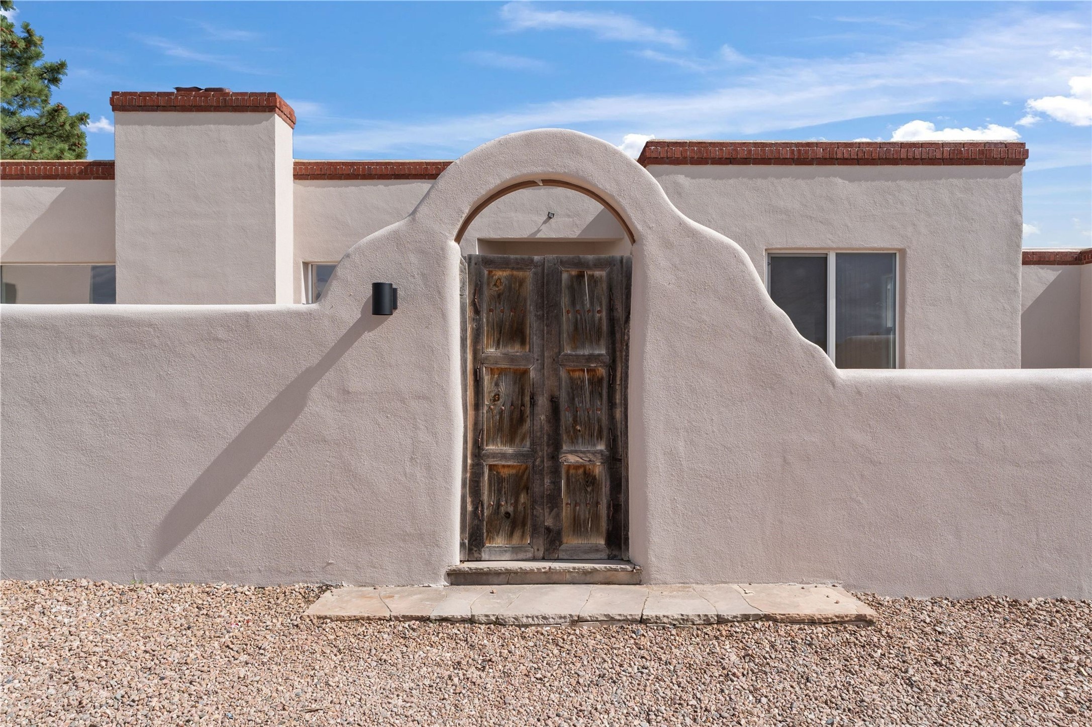 Discover a stunning 3-bedroom, 2.5-bath home paired with a charming 1-bedroom, 1-bath casita all located in the desirable San Mateo neighborhood. This residence has undergone a high-end complete renovation showcasing exquisite designer finishes throughout. Step inside to find blue Bateig honed limestone tile floors and original refinished wood floors that create a seamless flow across the spacious living areas. The gourmet kitchen features carbon grey honed granite counters, and a striking island topped with Nuage honed quartzite. Equipped with top-of-the-line appliances, including a Viking range and double oven and Forno Maderno French door refrigerator/freezer, this kitchen is designed for both functionality and style. Custom wood cabinets, a stylish bar area with a stainless-steel wine fridge and an elegant built-in wine rack complete the space. Primary bedroom includes a soaking tub, limestone shower, a freestanding double vanity, and dual custom-built closets, providing ample storage. Guest bedroom features an en-suite bath and wood burning fireplace. A third bedroom serves as versatile flex space, ideal for an office or studio. Half bath features authentic Terrazzo floor tile and custom-made concrete floating sink. New boiler, tankless water heater and 9 new ductless AC/heating units. 1/2-acre lot with a large backyard with custom fire pit, designated garden area, storage shed, mature fruit trees and a partially covered large brick patio. 2-car garage. Conveniently located close to the Santa Fe Plaza, Museum Hill, and the Railyard.