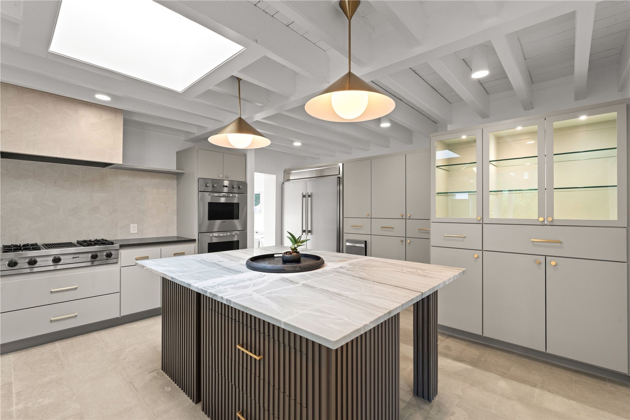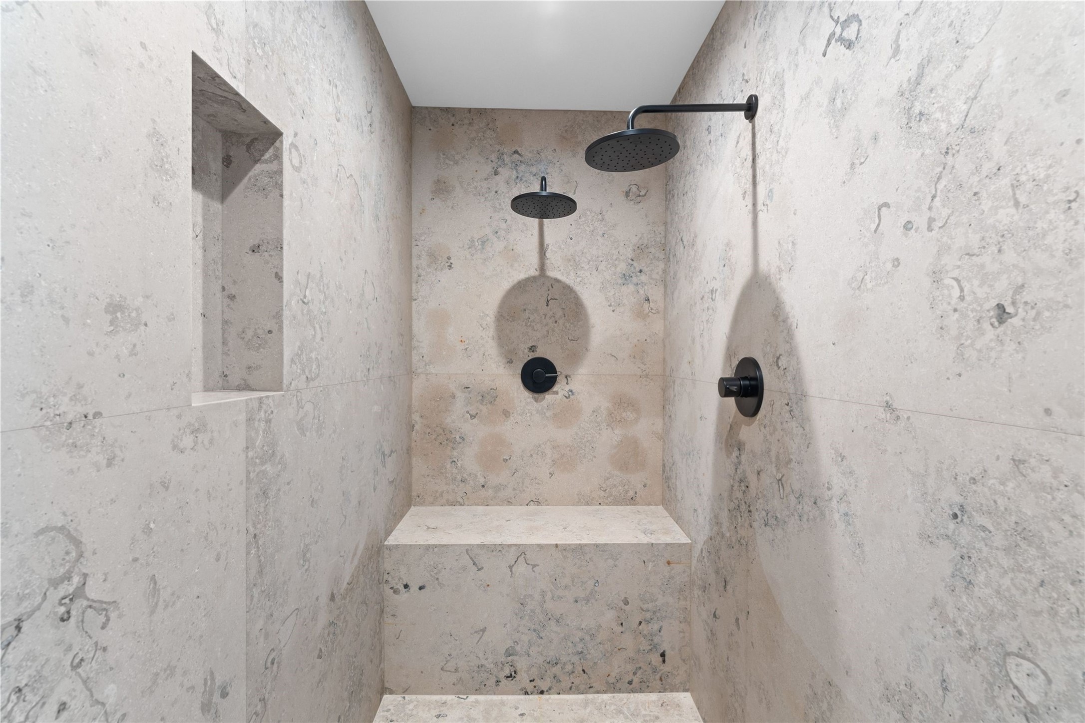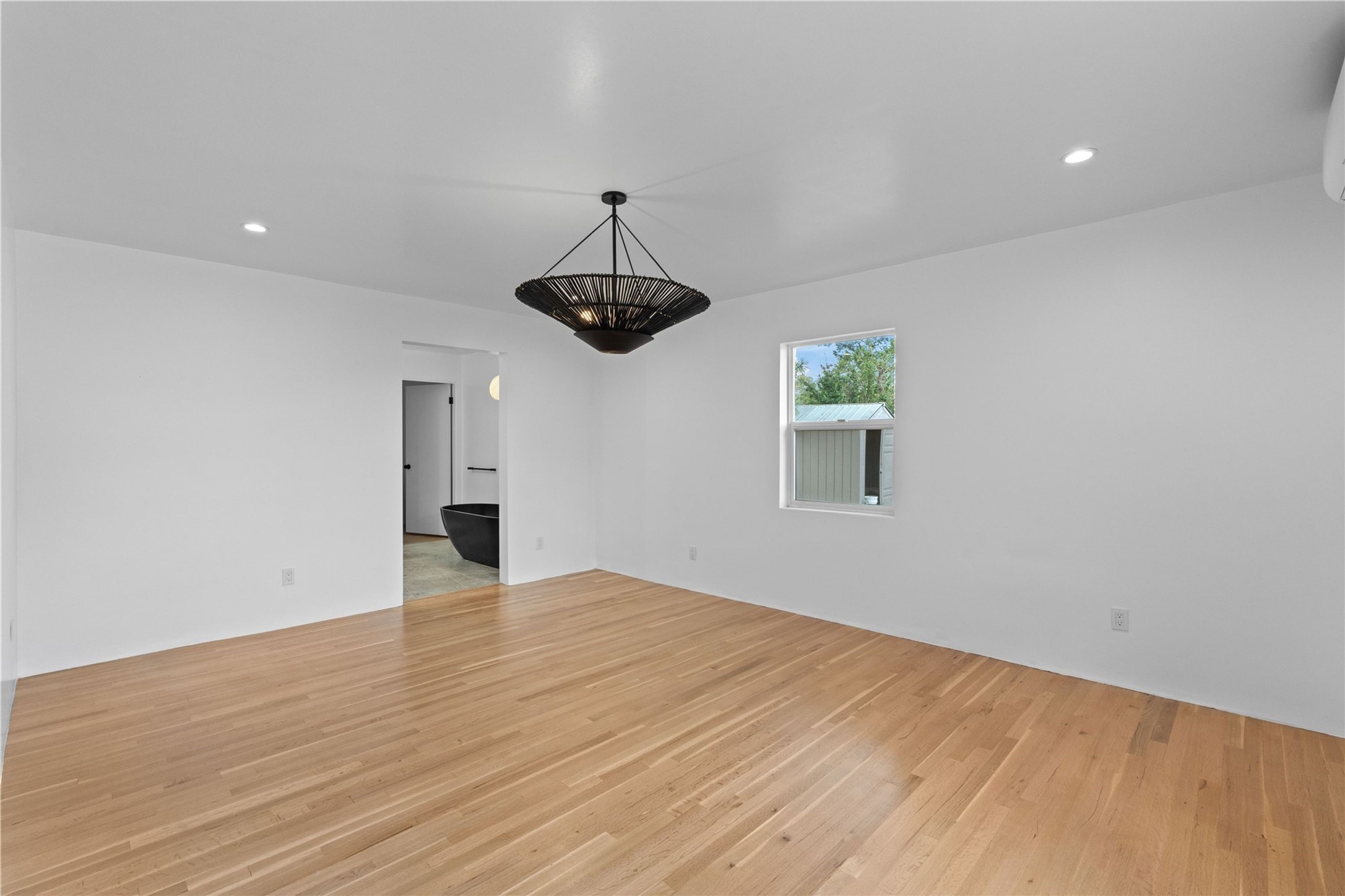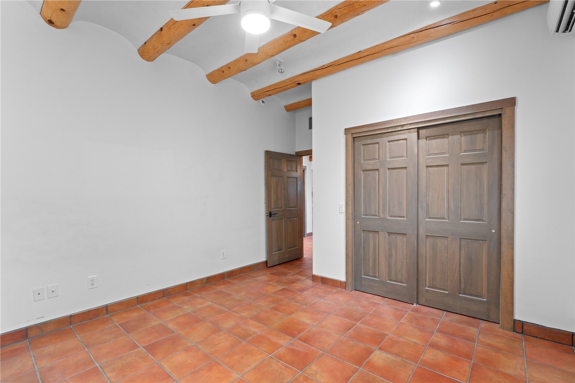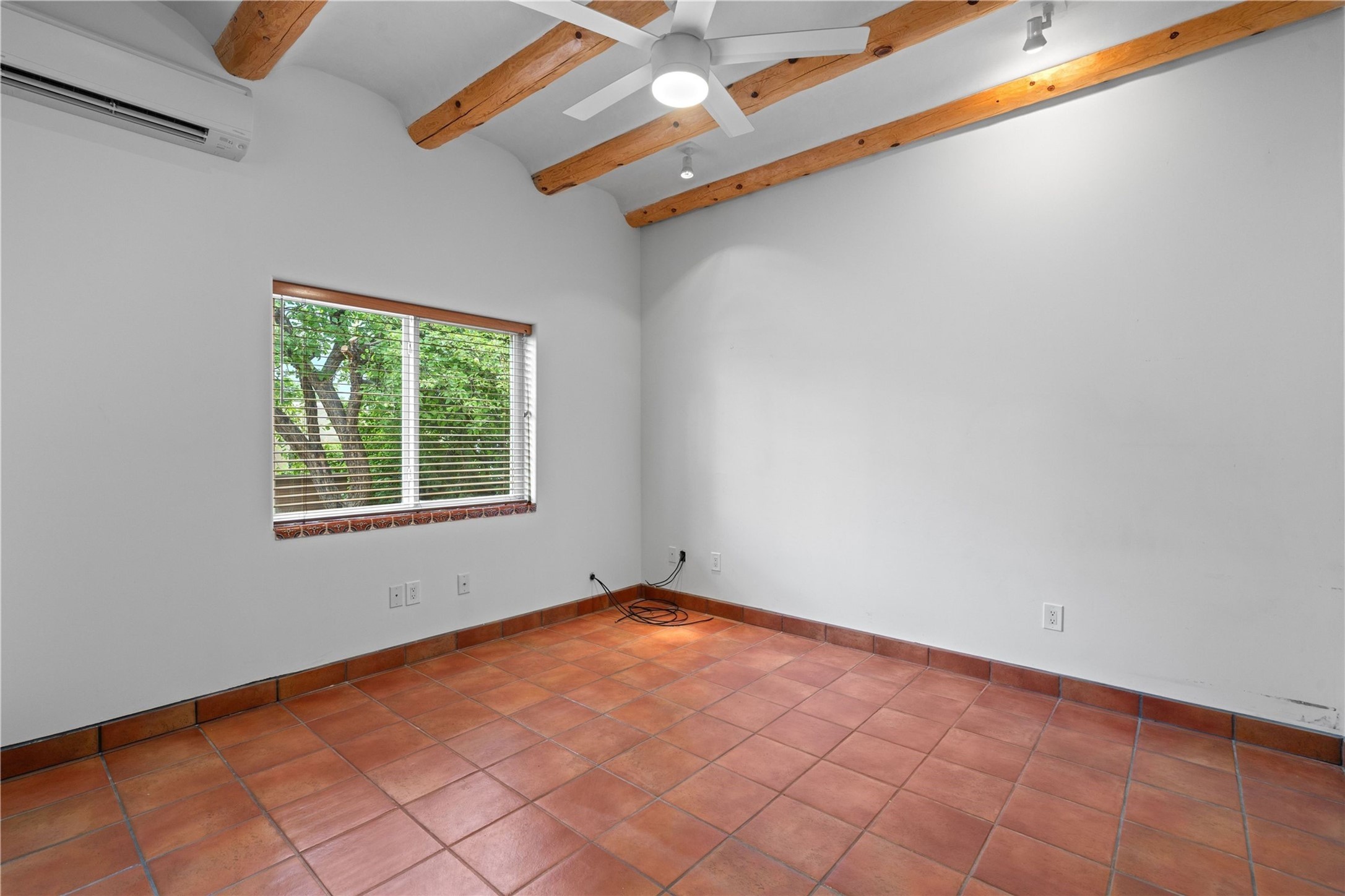 Discover a stunning 3-bedroom, 2.5-bath home paired with a charming 1-bedroom, 1-bath casita all located in the desirable San Mateo neighborhood. This residence has undergone a high-end complete renovation showcasing exquisite designer finishes throughout. Step inside to find blue Bateig honed limestone tile floors and original refinished wood floors that create a seamless flow across the spacious living areas. The gourmet kitchen features carbon grey honed granite counters, and a striking island topped with Nuage honed quartzite. Equipped with top-of-the-line appliances, including a Viking range and double oven and Forno Maderno French door refrigerator/freezer, this kitchen is designed for both functionality and style. Custom wood cabinets, a stylish bar area with a stainless-steel wine fridge and an elegant built-in wine rack complete the space. Primary bedroom includes a soaking tub, limestone shower, a freestanding double vanity, and dual custom-built closets, providing ample storage. Guest bedroom features an en-suite bath and wood burning fireplace. A third bedroom serves as versatile flex space, ideal for an office or studio. Half bath features authentic Terrazzo floor tile and custom-made concrete floating sink. New boiler, tankless water heater and 9 new ductless AC/heating units. 1/2-acre lot with a large backyard with custom fire pit, designated garden area, storage shed, mature fruit trees and a partially covered large brick patio. 2-car garage. Conveniently located close to the Santa Fe Plaza, Museum Hill, and the Railyard.