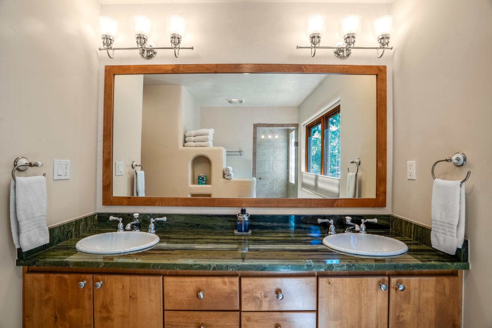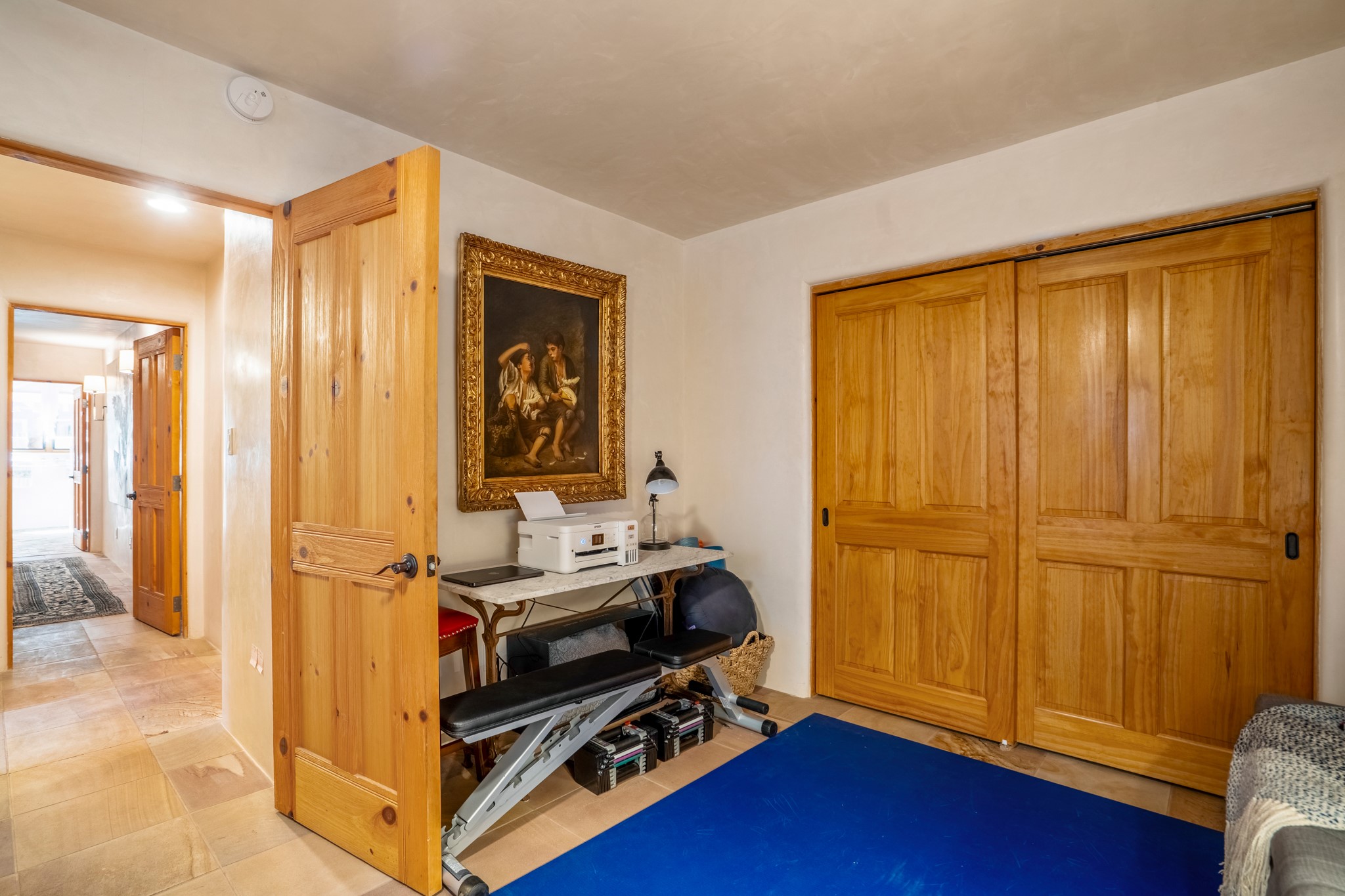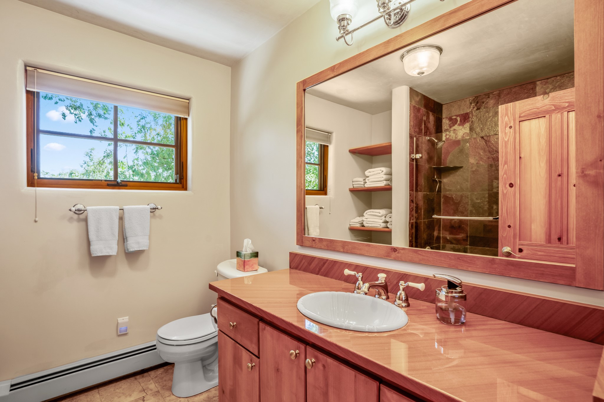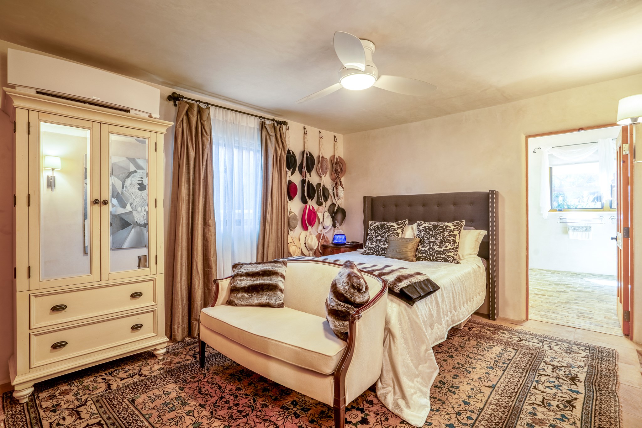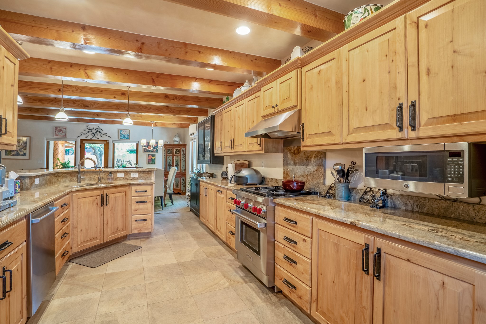 Beautifully maintained and updated, these 2 separate condominium units being sold together comprise the full Homeowners Association. Each unit features two bedrooms and two bathrooms (one full and one three-quarter bathroom), separate on-demand water heaters, and mini-splits. Plaster walls, upscale countertops, sandstone, and upscale flooring complement each unit. En-suite bathrooms are in the primary bedrooms, along with ample closet space. The backyard has a fabulous covered patio with a kiva fireplace. Fully landscaped and gated, the property has been impeccably maintained by its current owner. Walk to the Plaza, countless retail stores and restaurants, and to Ft Marcy complex.