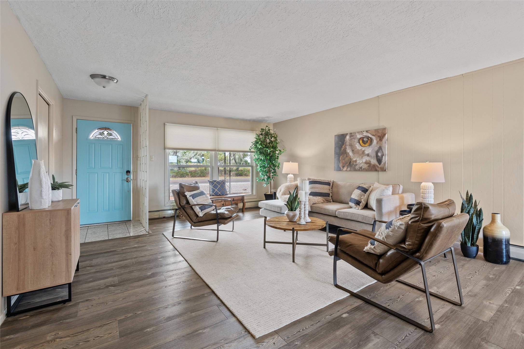 Barranca Mesa, Updated & Move-In Ready, 5 Bedrooms + Office, Mini-Split Air Conditioning, Views, Large 0.488+ Acre Lot, Multiple Living Areas, 2 Car Garage, RV Parking, and More! Welcome to 1091 Barranca!This updated five-bedroom home sits on almost a half-acre lot with beautiful views down the canyon and lots of amenities for you to enjoy life in Los Alamos. The main floor features the living room, dining room, kitchen (with stainless steel appliances, gas cooking, and pantry), observation deck, primary bedroom (with en suite bathroom), two guest bedrooms, and a guest bathroom. With direct garage access, you can enjoy single-level living with the benefit of having additional space below!The downstairs area can be separately locked off from upstairs for potential rental income, if desired. Here, you'll find a kitchenette, dining room, a second living room, two guest bedrooms, an office, a bathroom, and a large (unfinished) storage room. There is direct, walk-out access to the back yard.Addition amenities include mini-split cooling, a tankless hot water heater / boiler combo unit, newer stainless steel kitchen appliances, a radon mitigation system, wildfire-conscious landscaping with defensible space for insurability, a two-car garage, and RV parking with additional off-street parking.Schedule your showing today before this one is gone!