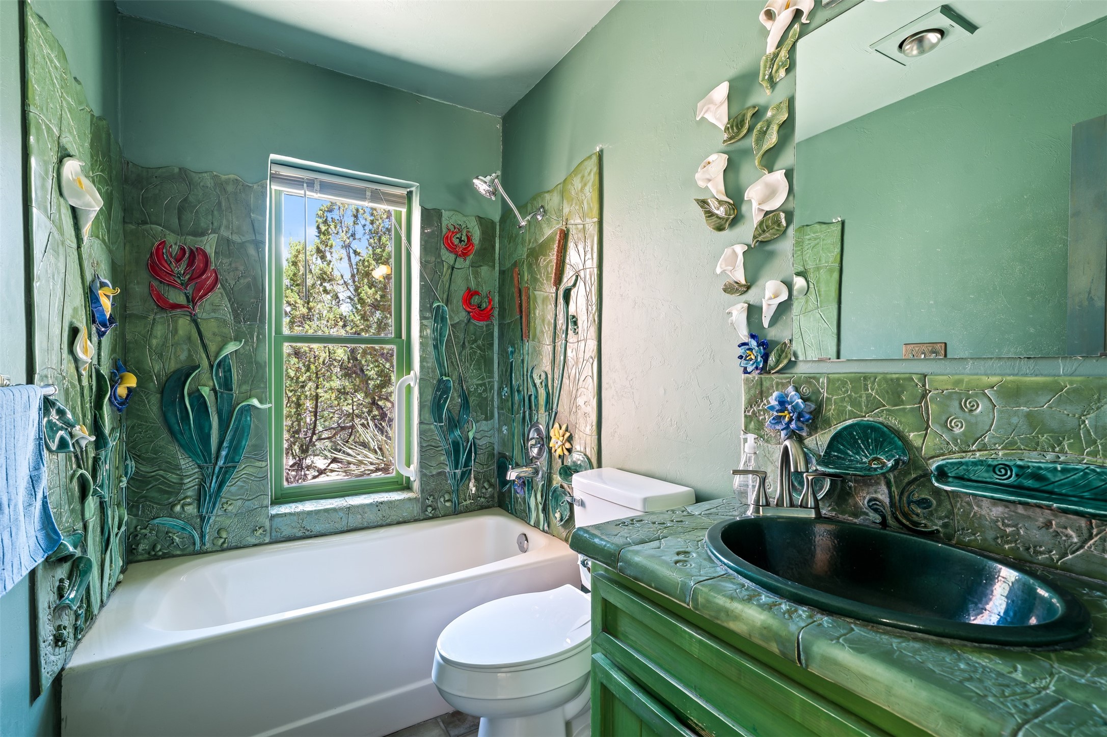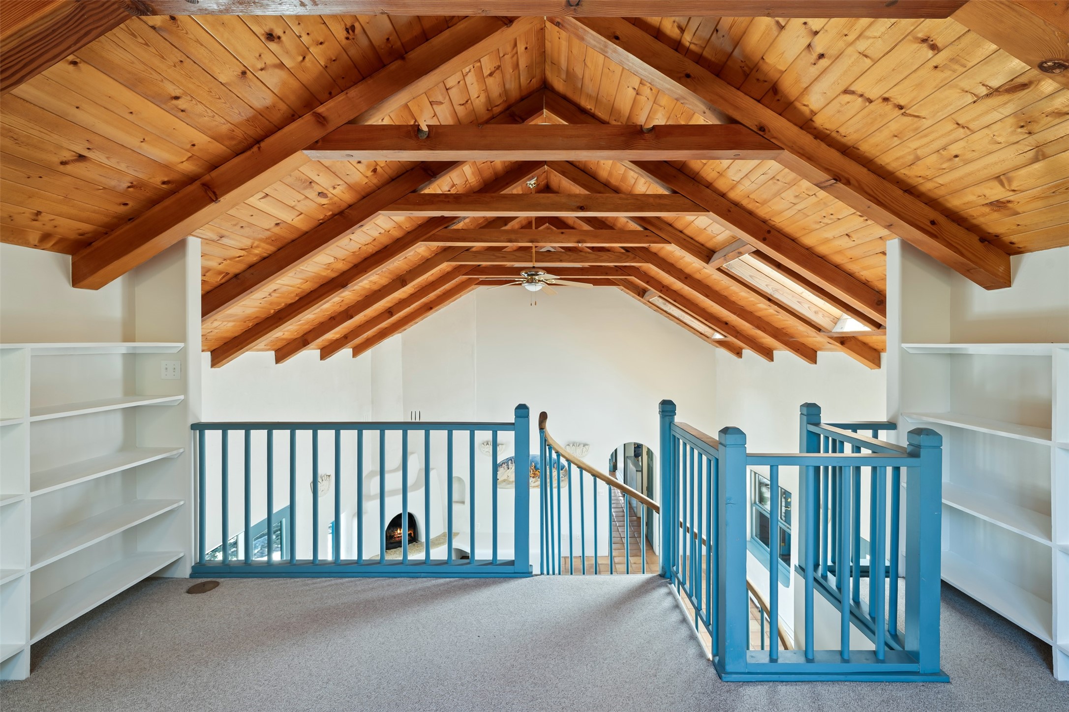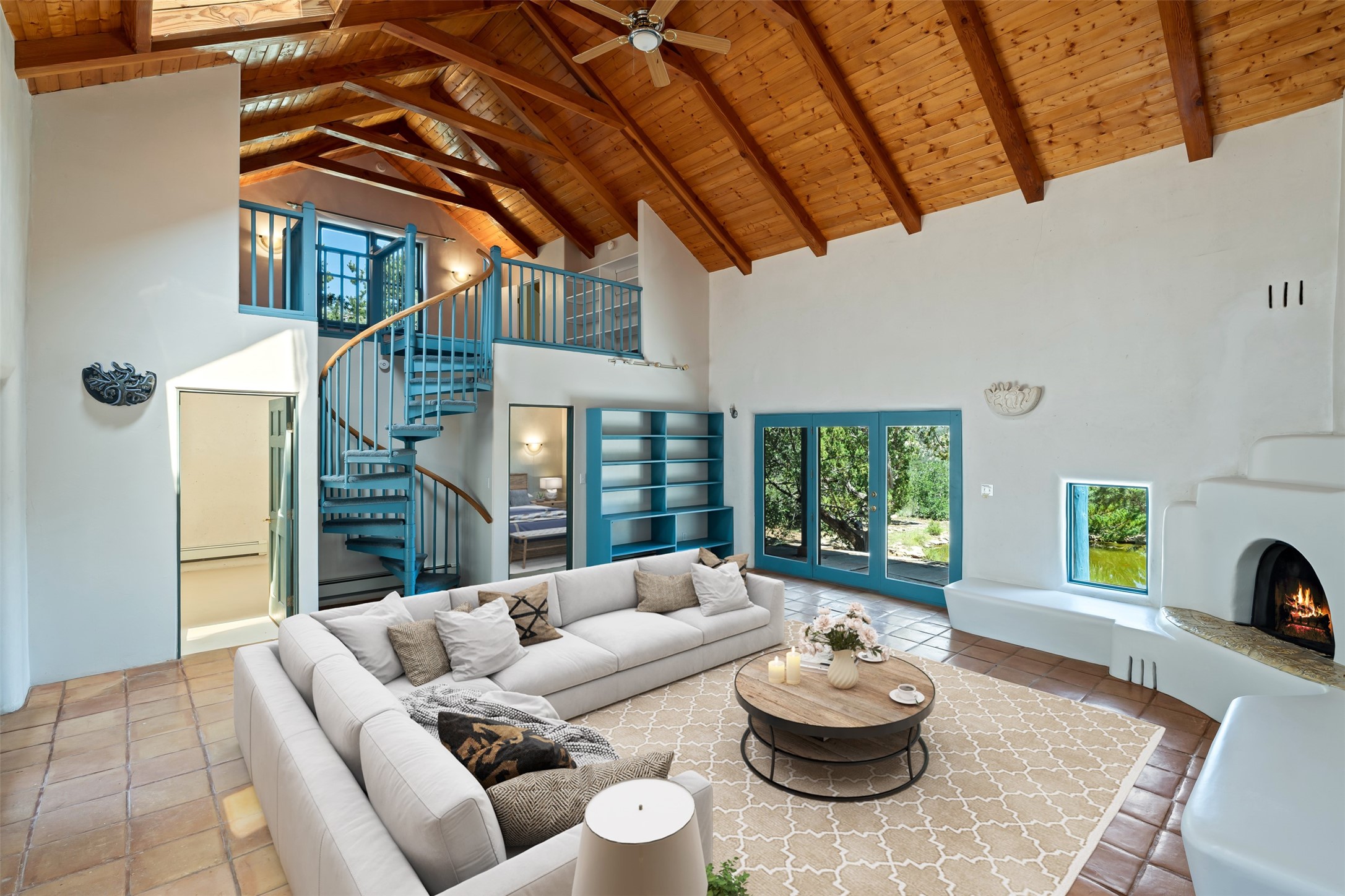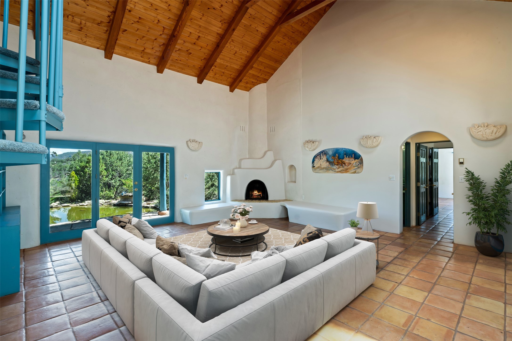 Nestled in the serene hills of Caoncito, this 3-bed, 2-bath Rastra home sits on 5.99 private wooded acres with a thriving koi pond, private well, and sweeping Sangre de Cristo views -- offering a rare value-add opportunity.Owner-built and on the market for the first time since 1998, this home blends craftsmanship and artistic detail throughout. Soaring ceilings, a striking fireplace, and expansive windows define the main living space, while a lofted study/library offers a quiet retreat. The home was intentionally designed to be divided into two living areas, with pre-installed utility connections ready to support the setup.A workroom with slop sink, two storage sheds -- including one with an electrical backup generator -- add functionality. With a new septic system recently installed and an updated well system, this property offers a strong infrastructure base to build upon.Just 10 minutes to Eldorado and 25 to downtown Santa Fe, with nearby trails and 100 mbps internet available. A peaceful retreat and a rare chance to add real value.