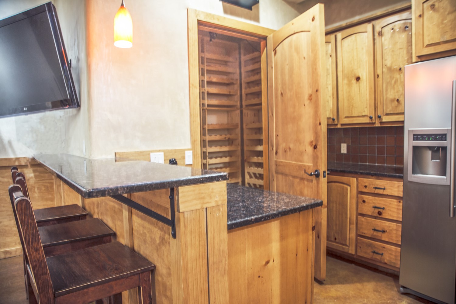 • Interior FeaturesBeamed Ceilings, Wet Bar, Interior Steps, Wine Cellar