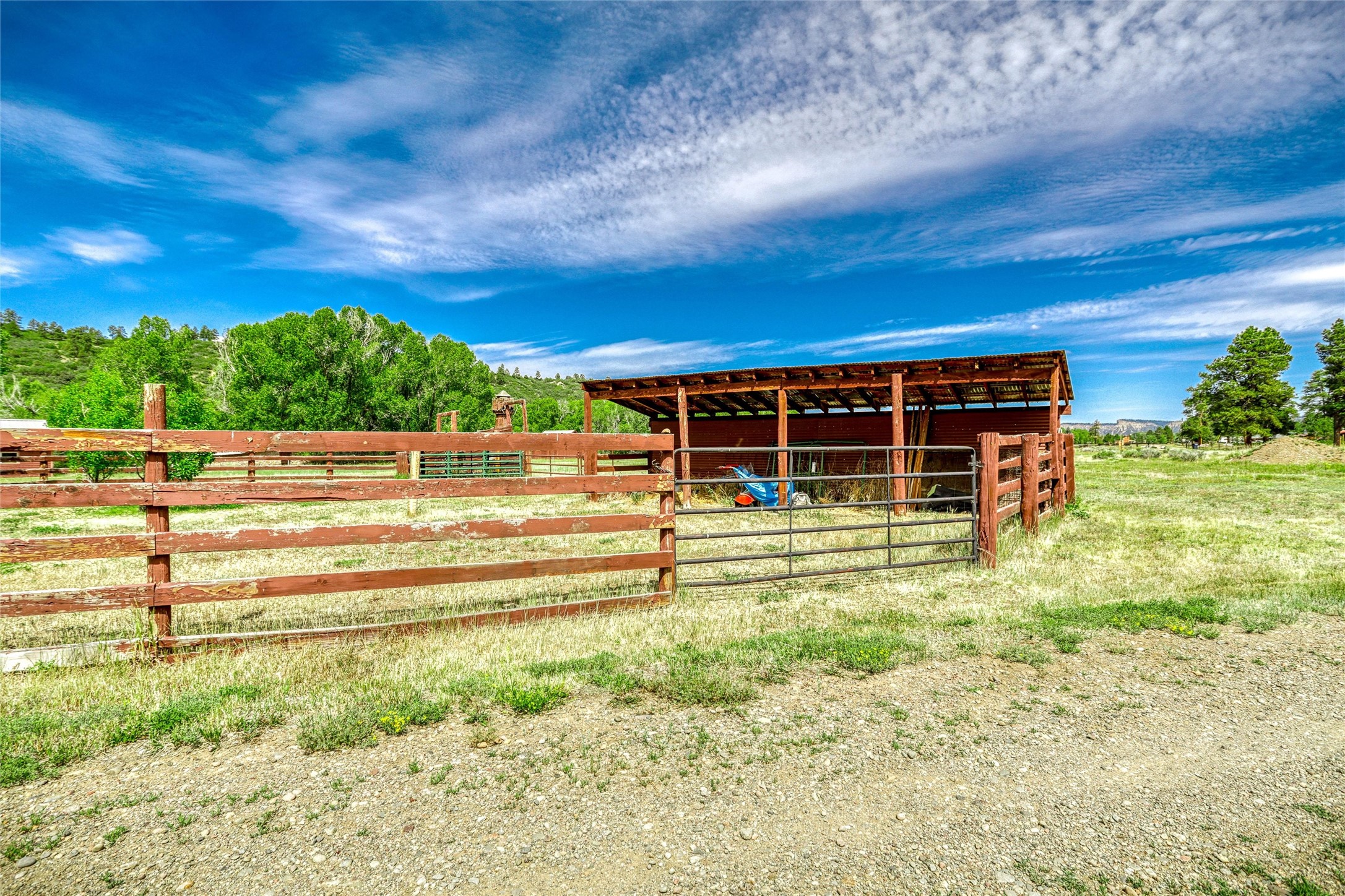 This is a true homestead from the 1930's with a ton of history. Once run as a dairy cattle operation, this property has remnants of the days of old and some are in use today. Enjoy 14.16 acres nestled along the banks of the Chama River with approximately 700 feet of frontage and two spring fed ponds. The custom home was built in 2009 and has a well designed layout with 2 bedrooms, 2 baths and a custom kitchen, complete with handcrafted, rare burled redwood cabinetry, granite counter tops and high end appliances. Each bedroom features large walk in closets with custom closet systems and great lighting. Douglas fir flooring, alder wood trim/doors and T&G 9 foot ceilings are standard throughout the house, as well as custom tile work in the bathroom. The attached garage is setup for overflow company and storage with ample room to park a car inside and there is plenty of room for another vehicle or ATVs. If sustainability is a concern, look no further. This property comes with an operating greenhouse, orchard & there is room for chickens / livestock in one of the many accessory buildings located on the property. Horses are welcome and there is a 40 x 40 barn, 100 x 150 riding arena and more. This is a unique offering for Northern NM along the Chama River with year round access along county road 343. Owner is currently getting 1 elk permit annually. With plenty of room for expansion, this property could be your masterpiece.