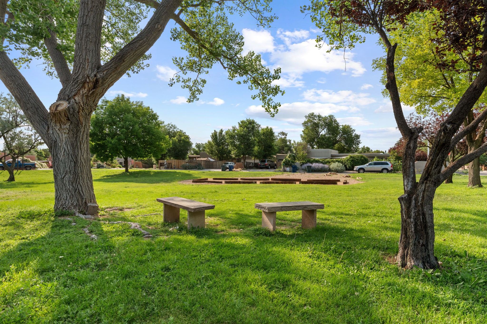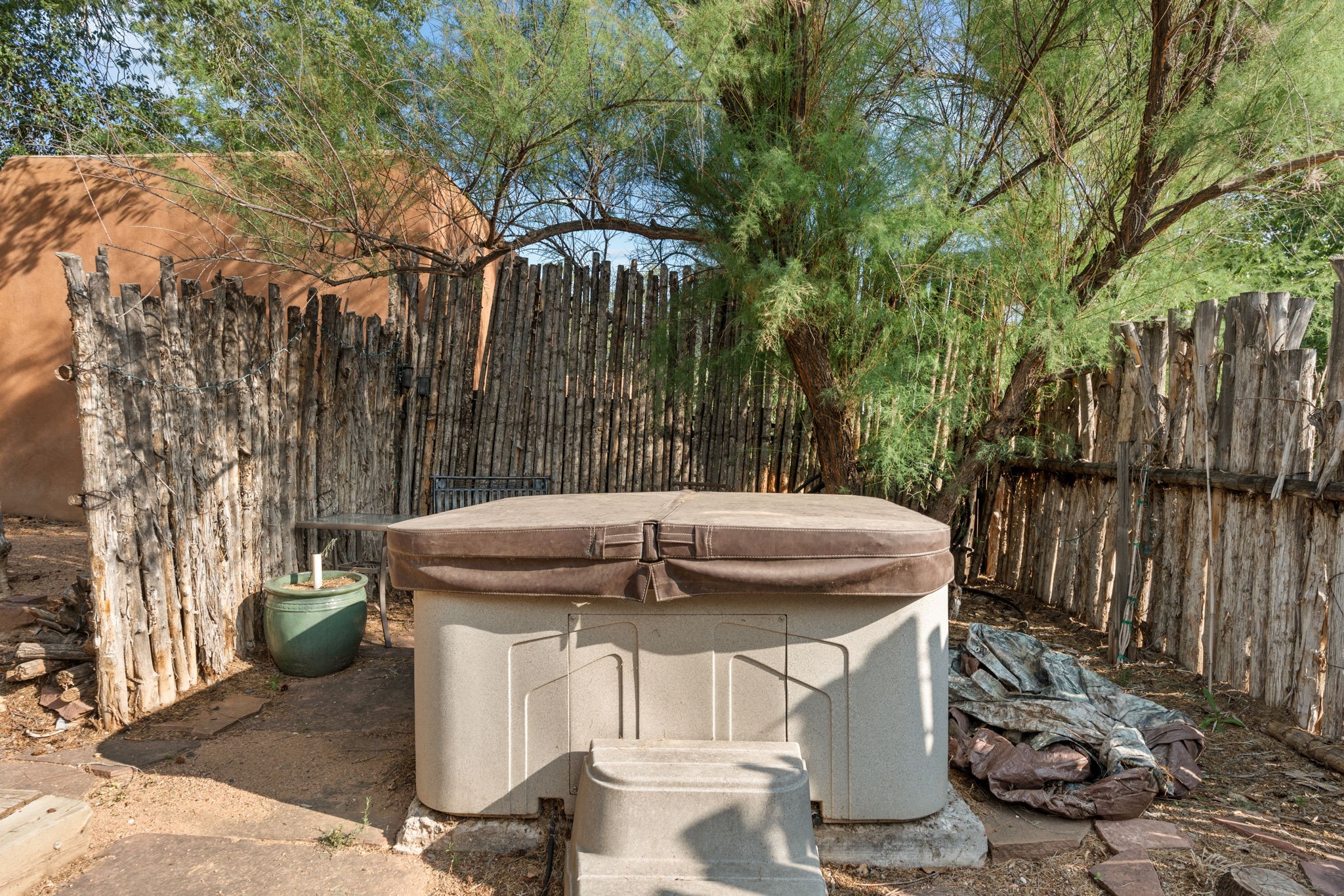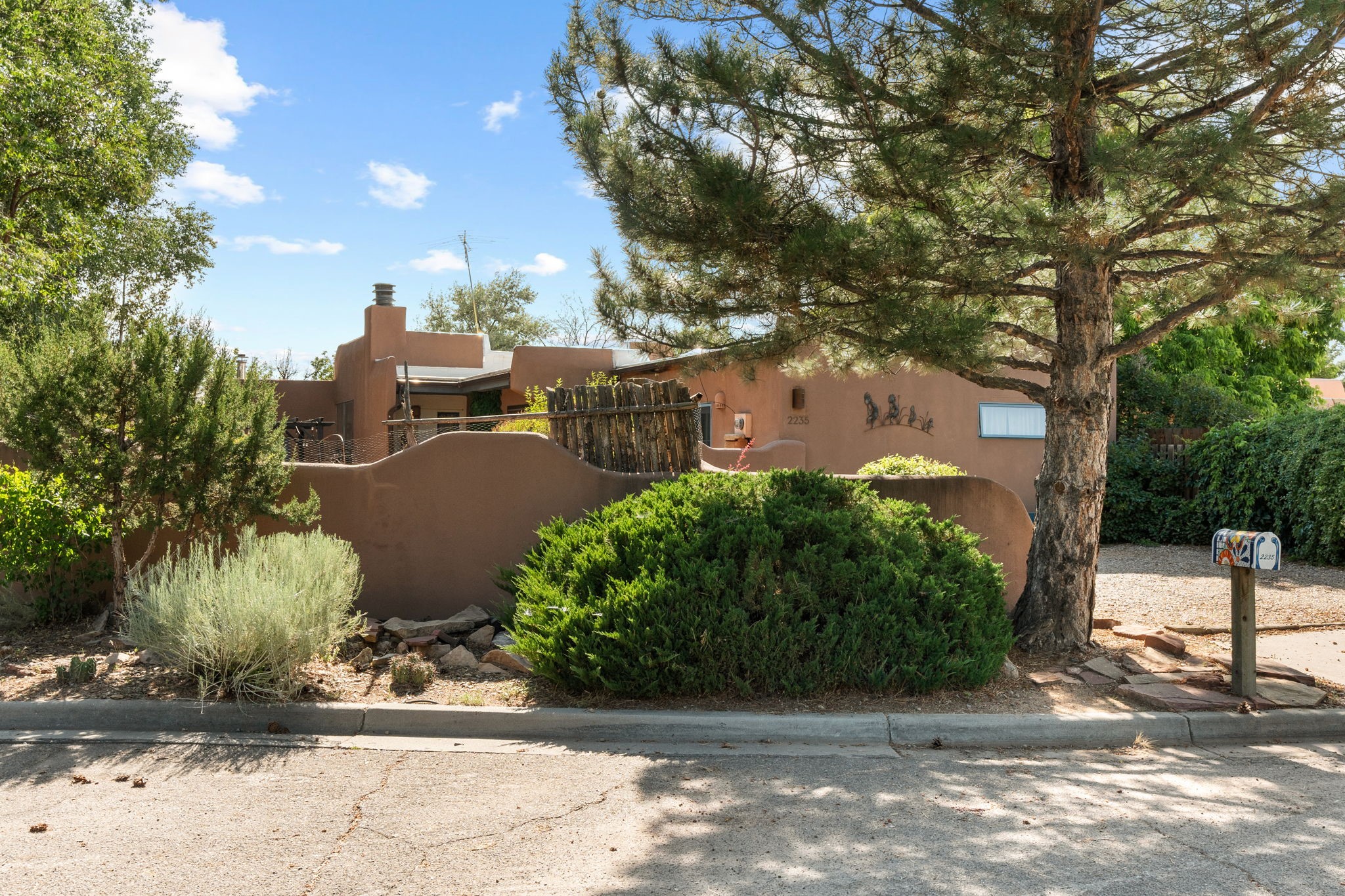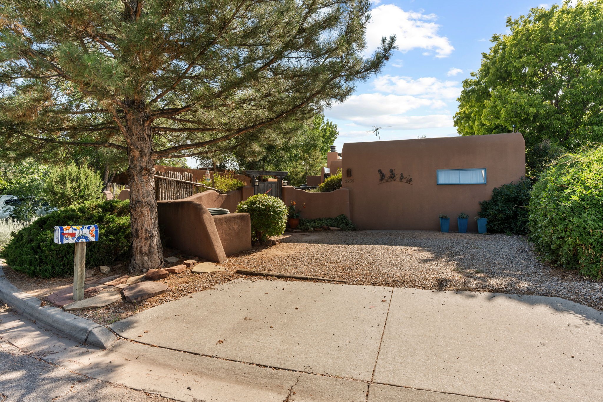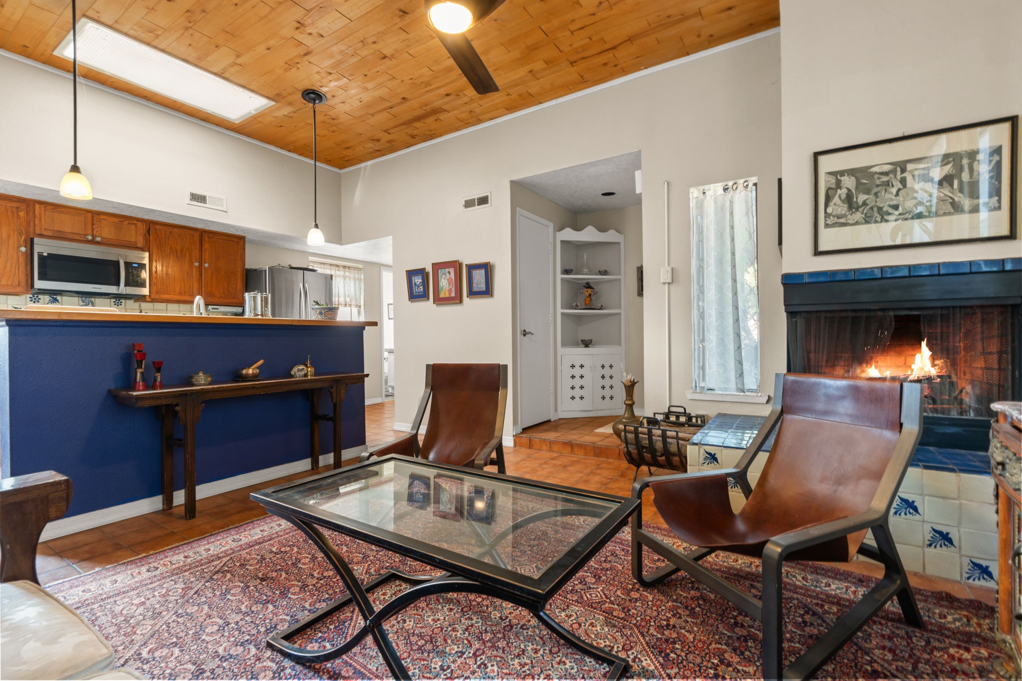 Welcome to your private retreat in the heart of the coveted Pueblo Alegre neighborhood! This quintessential Santa Fe-style home is a true gem, offering timeless charm, abundant outdoor living, and an unbeatable location directly across from one of the community's lush green parks.Tucked behind a lovely gated entry, this fully fenced property offers a peaceful sense of seclusion surrounded by mature trees, meandering garden paths, a serene lily pond, with a trickling fountain. Almost every room in the home opens to the outdoors, creating a seamless connection with nature and inviting light into every corner.Inside, you'll find a unique layout featuring three bedrooms and three full bathrooms, arranged in a split floor plan for maximum privacy. The home boasts two distinct living rooms--one an inviting adobe space with a cozy wood stove, the other near the kitchen and dining area with a classic wood-burning corner fireplace, perfect for gathering on cool evenings.The galley kitchen is charming and functional, featuring a vibrant Talavera-tiled bar, newer stainless steel appliances, and a gas stove--ideal for home chefs and entertainers alike. Step outside to multiple sitting areas that beckon for morning coffee, al fresco dining, or quiet moments with a book.Two ensuite primary bedrooms offer flexibility and comfort, while a third guest bedroom provides space for visitors, a studio, or an office. Brick, tile and soft carpet flooring add to the home's warmth and character.Peaceful and private, yet just minutes to shopping, dining, and all the best of Santa Fe, this is a rare opportunity to own a soulful haven in a highly desirable neighborhood.Don't miss this true Santa Fe treasure--schedule your private showing today!
