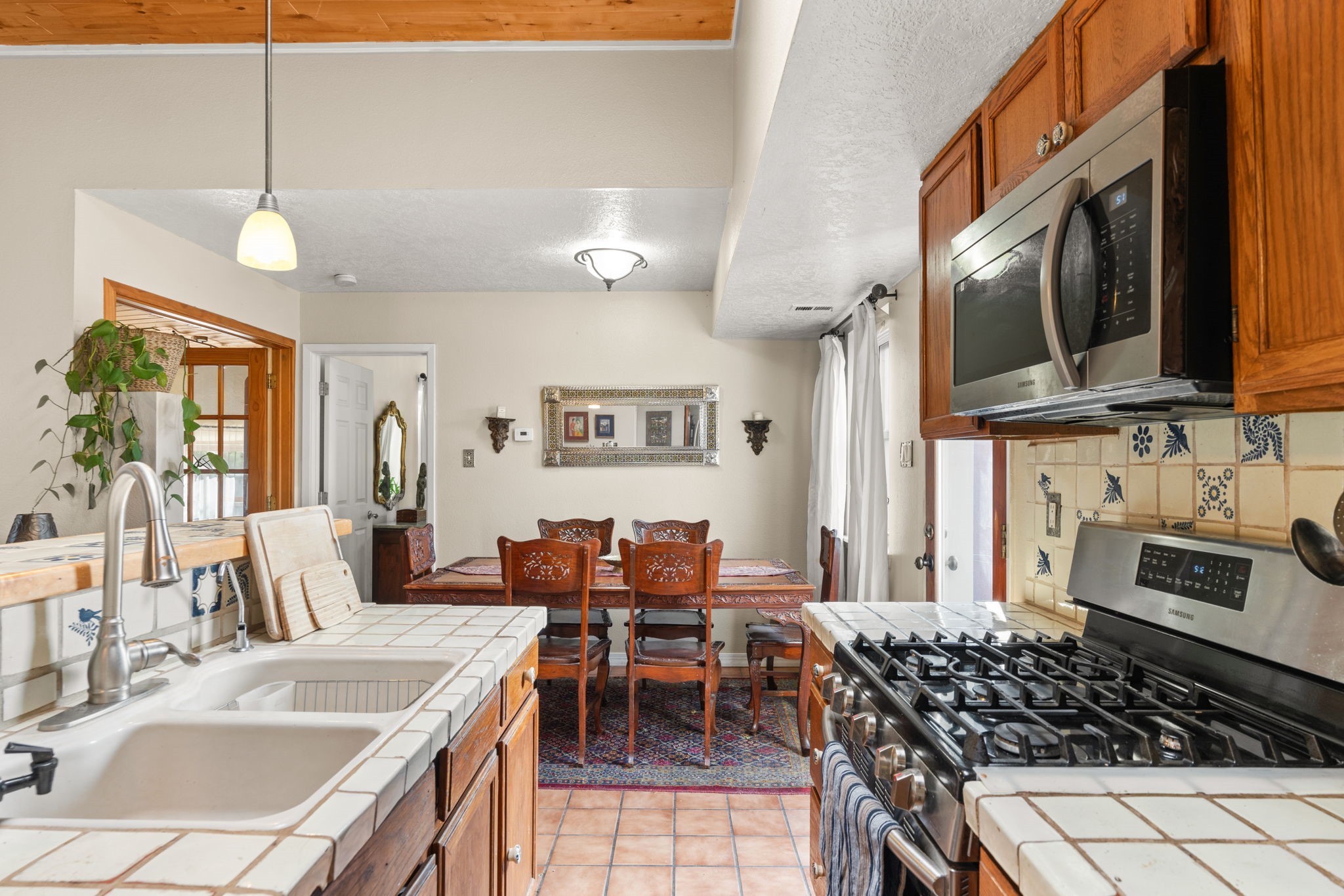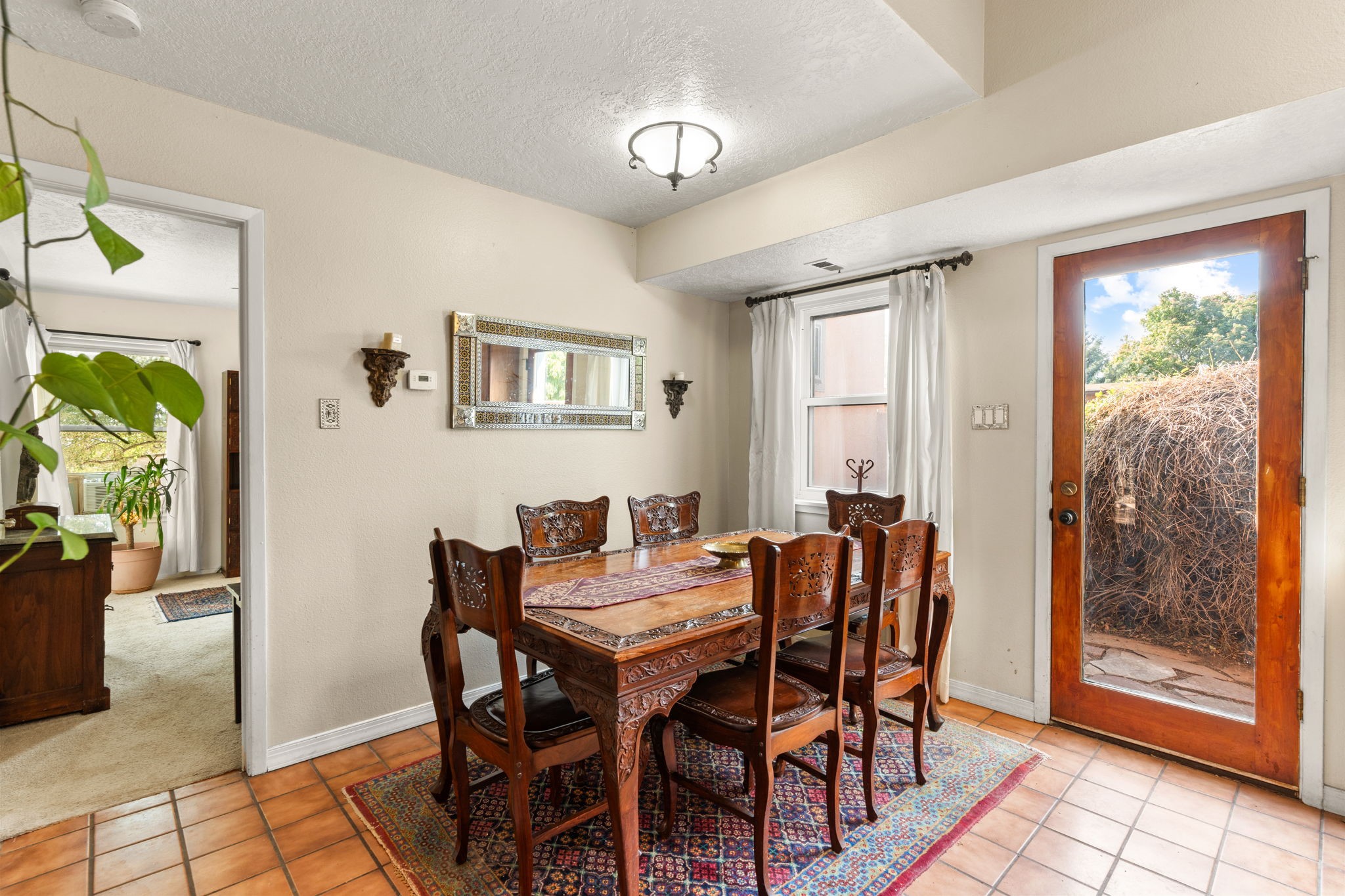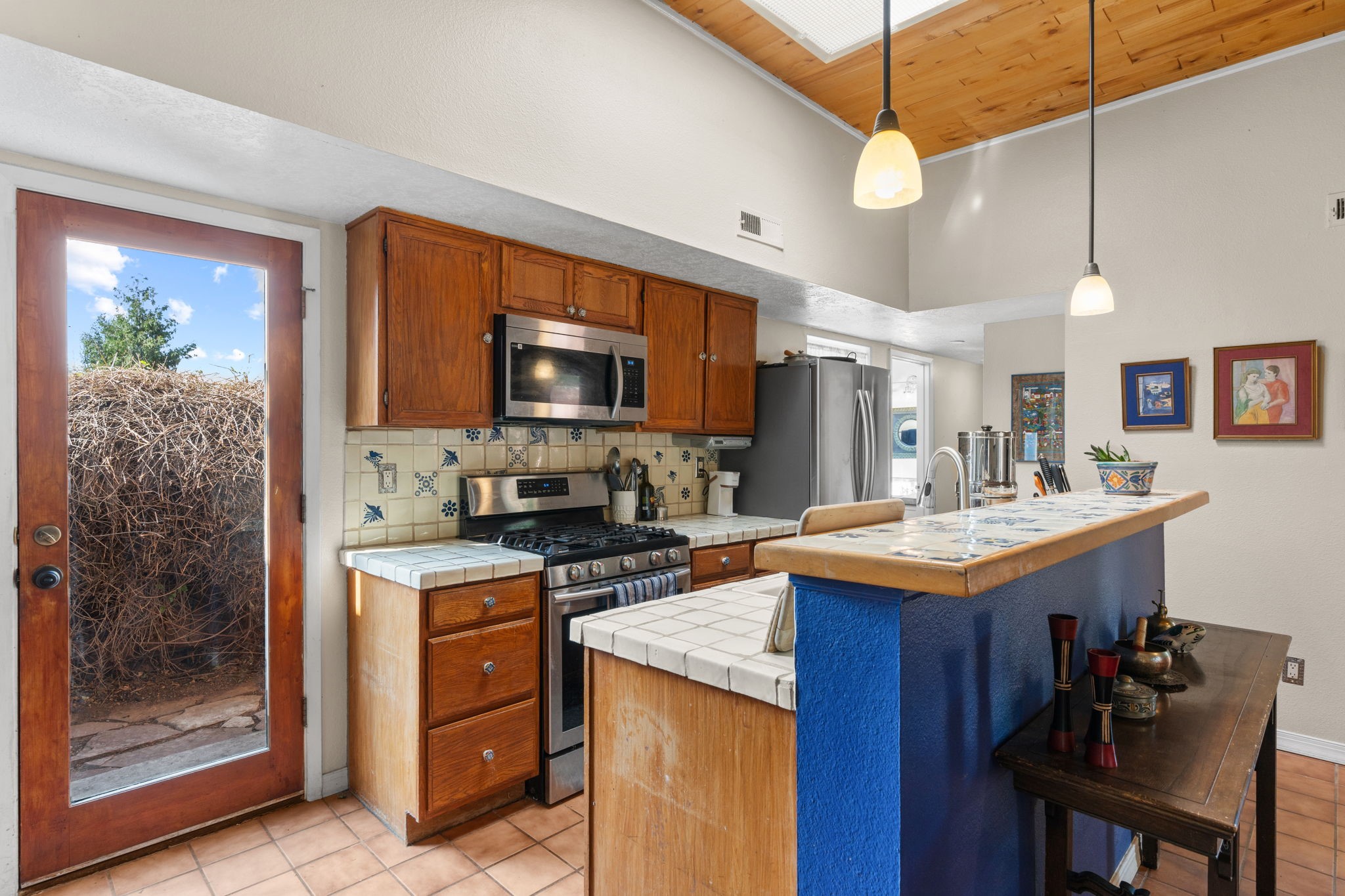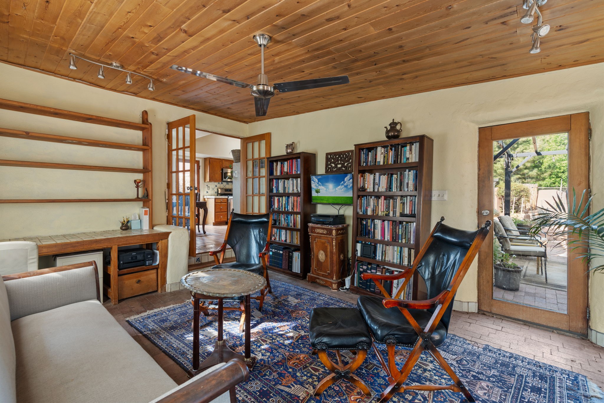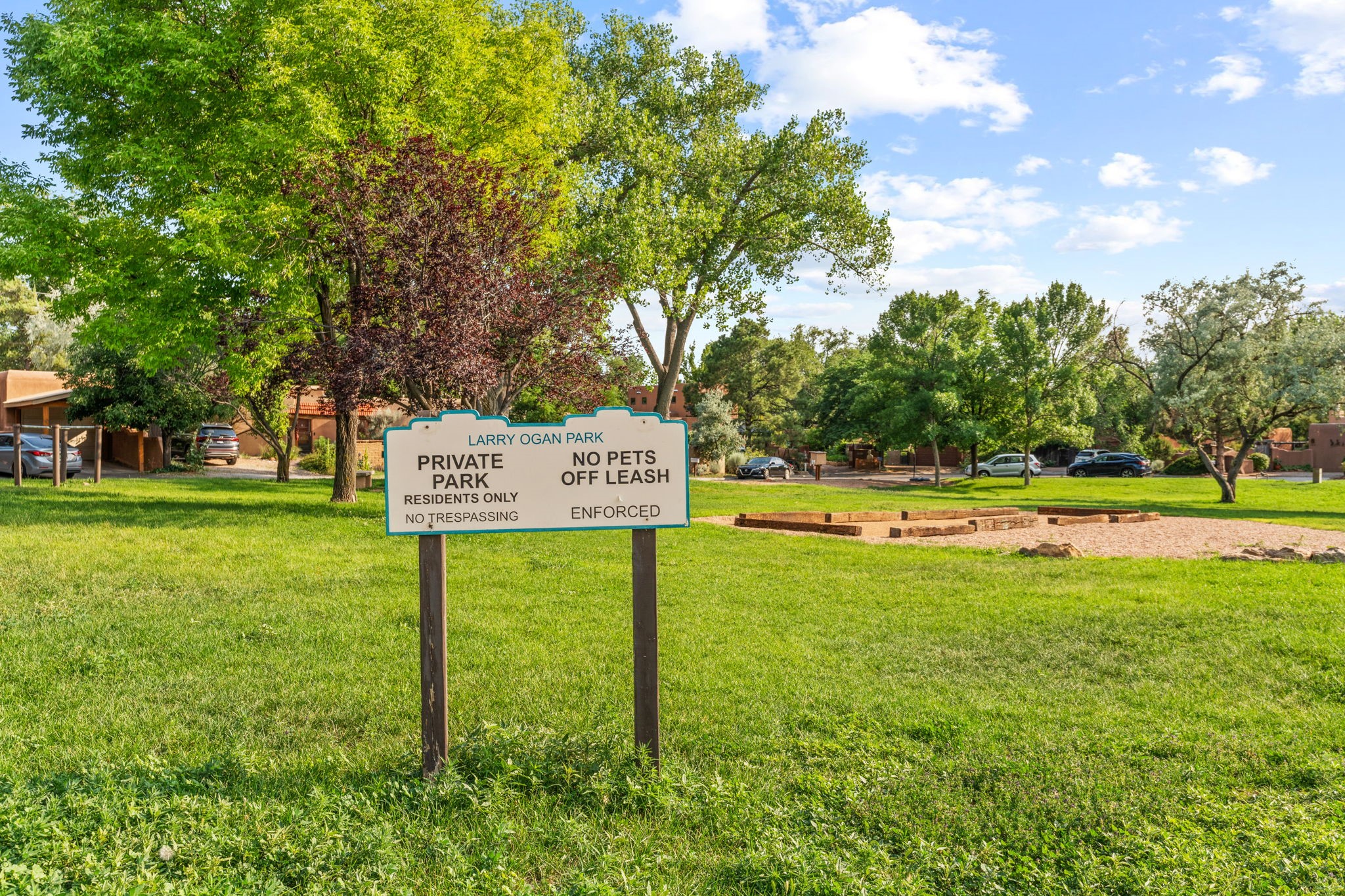 Welcome to your private retreat in the heart of the coveted Pueblo Alegre neighborhood! This quintessential Santa Fe-style home is a true gem, offering timeless charm, abundant outdoor living, and an unbeatable location directly across from one of the community's lush green parks.Tucked behind a lovely gated entry, this fully fenced property offers a peaceful sense of seclusion surrounded by mature trees, meandering garden paths, a serene lily pond, with a trickling fountain. Almost every room in the home opens to the outdoors, creating a seamless connection with nature and inviting light into every corner.Inside, you'll find a unique layout featuring three bedrooms and three full bathrooms, arranged in a split floor plan for maximum privacy. The home boasts two distinct living rooms--one an inviting adobe space with a cozy wood stove, the other near the kitchen and dining area with a classic wood-burning corner fireplace, perfect for gathering on cool evenings.The galley kitchen is charming and functional, featuring a vibrant Talavera-tiled bar, newer stainless steel appliances, and a gas stove--ideal for home chefs and entertainers alike. Step outside to multiple sitting areas that beckon for morning coffee, al fresco dining, or quiet moments with a book.Two ensuite primary bedrooms offer flexibility and comfort, while a third guest bedroom provides space for visitors, a studio, or an office. Brick, tile and soft carpet flooring add to the home's warmth and character.Peaceful and private, yet just minutes to shopping, dining, and all the best of Santa Fe, this is a rare opportunity to own a soulful haven in a highly desirable neighborhood.Don't miss this true Santa Fe treasure--schedule your private showing today!
