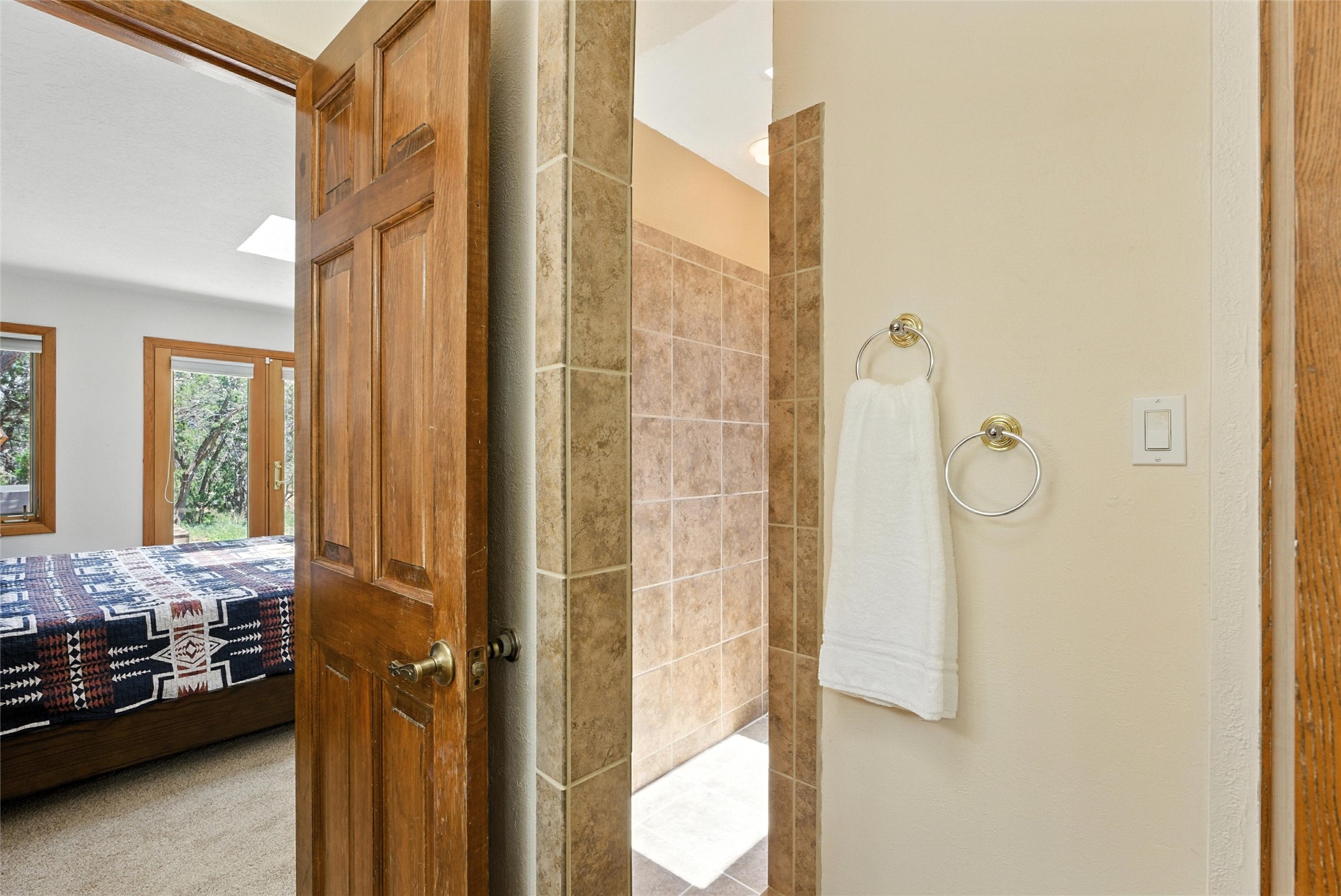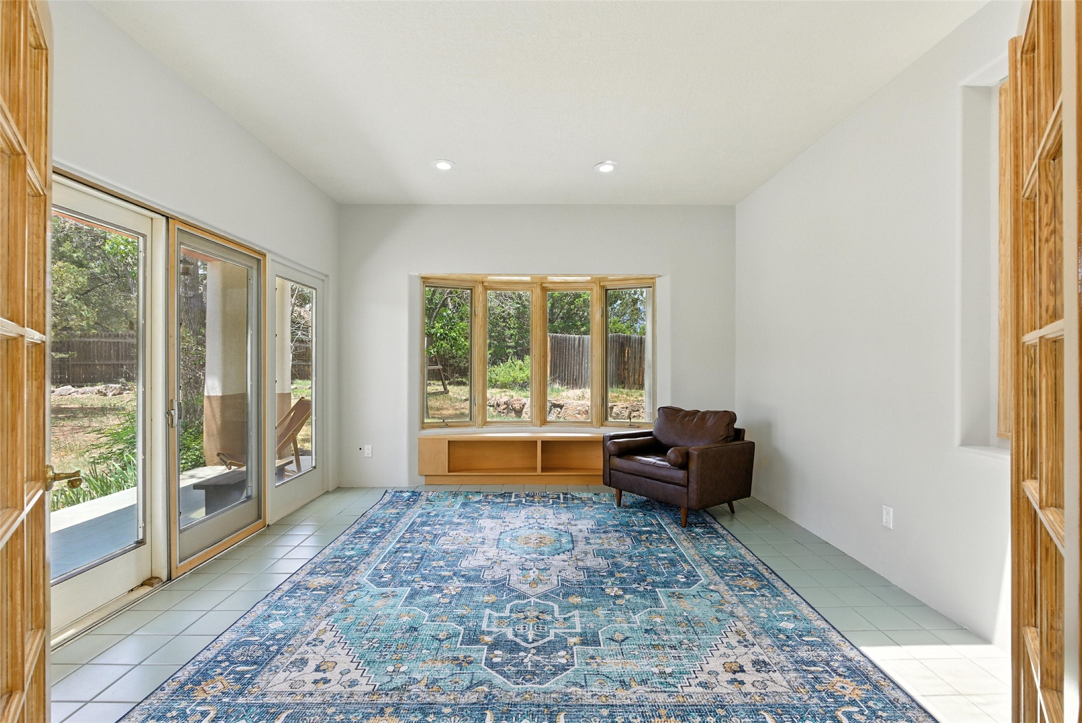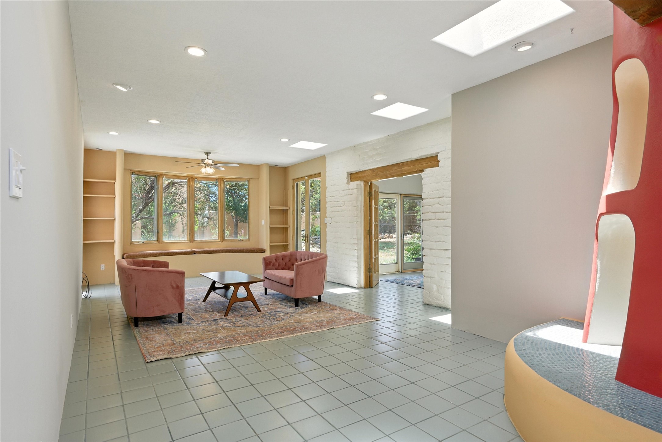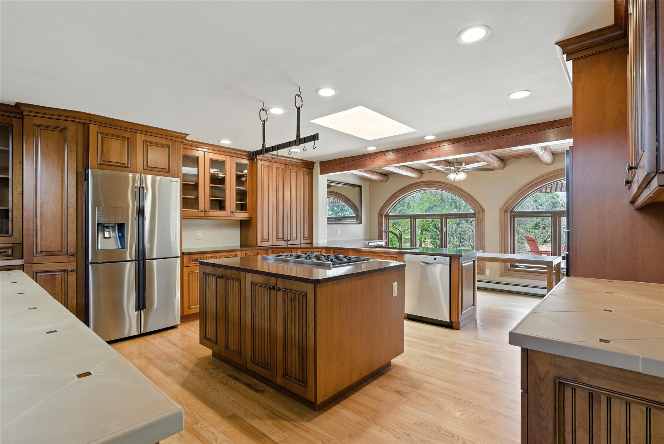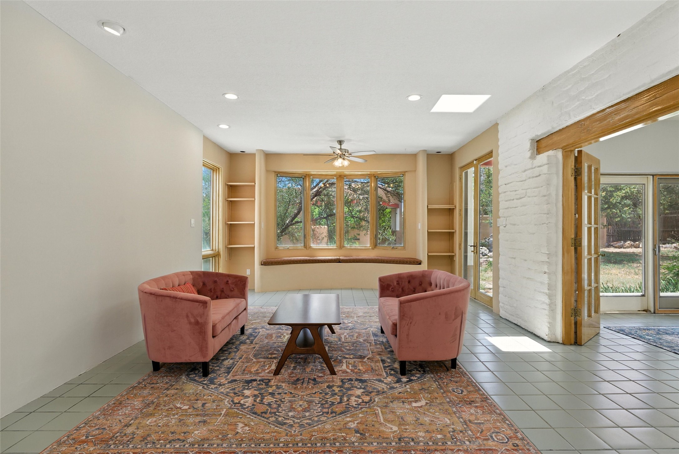 Tucked away on 2.18 peaceful, horse-zoned acres in the heart of White Rock, 123 La Senda is more than a home--it's a private retreat designed for those who value beauty, space, and connection to the land. With graceful portals wrapping three sides, lush gardens, and a tranquil backyard pond, this residence invites you to slow down and savor every season. Beyond the adobe-walled yard, native pion and juniper trees stretch across the landscape, and equine trails wind through the neighborhood--perfect for morning rides, afternoon hikes, or sunset strolls under open skies.A composite-decked pergola creates a shaded outdoor lounge ideal for entertaining or unwinding in the fresh air. Whether dining alfresco or soaking in the hot tub, the outdoor living experience is both refined and serene.Inside, over 3,200 square feet of thoughtfully designed space showcases vaulted rough-hewn viga ceilings , 12 skylights, a classic kiva fireplace, and handcrafted bancos and nichos. Fresh paint in the common areas, new carpet, tile floors, and wood-framed windows enhance the sense of comfort and quality throughout.The custom kitchen features Brookhaven cabinetry, Bosch wall oven and microwave, Wolf 6-burner range, beverage fridge, dual pantries, two islands, and a matching tiled table. A bright sunroom offers additional space to relax year-round and a great greenhouse.The spacious primary suite includes private portal access, generous closet space, and a five-piece bath with jetted tub and dual-head walk-in shower beneath a skylight. Built-ins throughout the home include window seats and a curved living room couch that stays with the home--along with the spa-style hot tub.Additional highlights include a newer septic tank (installed in 2021), a two-car garage, detached RV carport, and direct access to neighborhood trails. Blending timeless style with modern comfort, 123 La Senda is a rare offering in one of White Rock's most peaceful and sought-after settings.