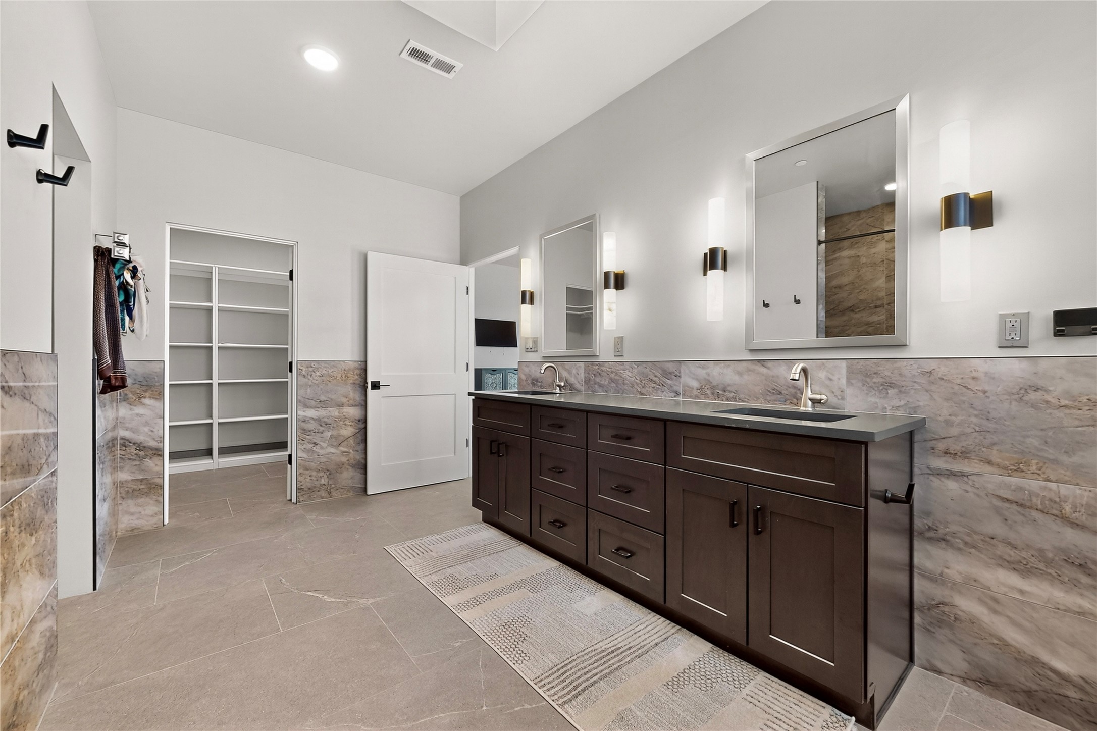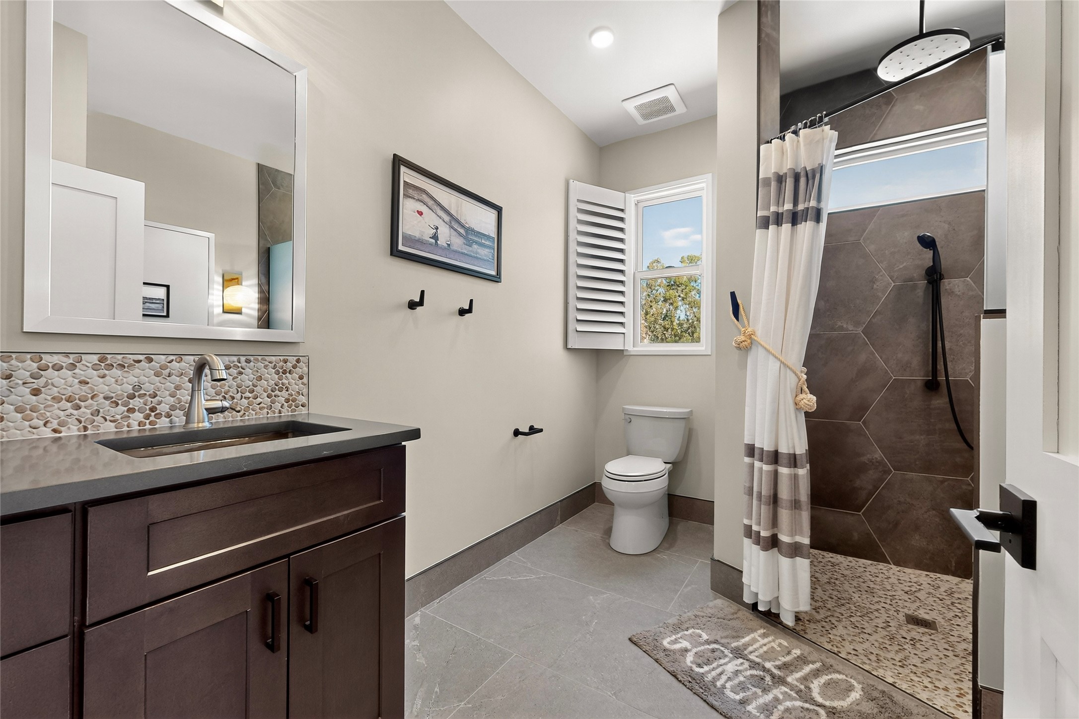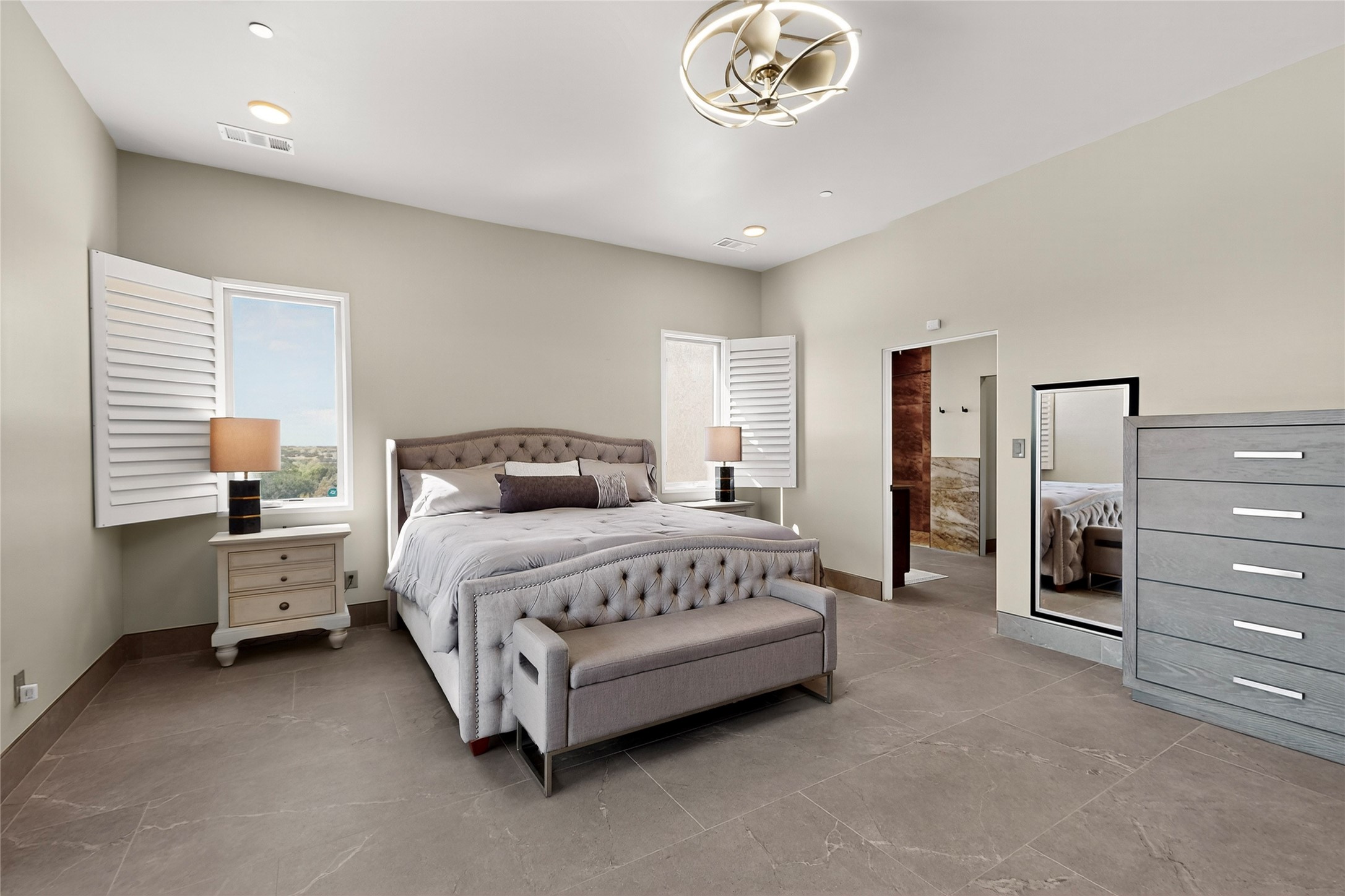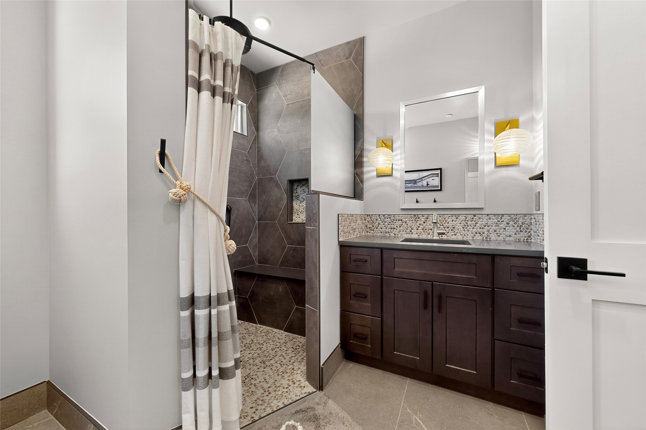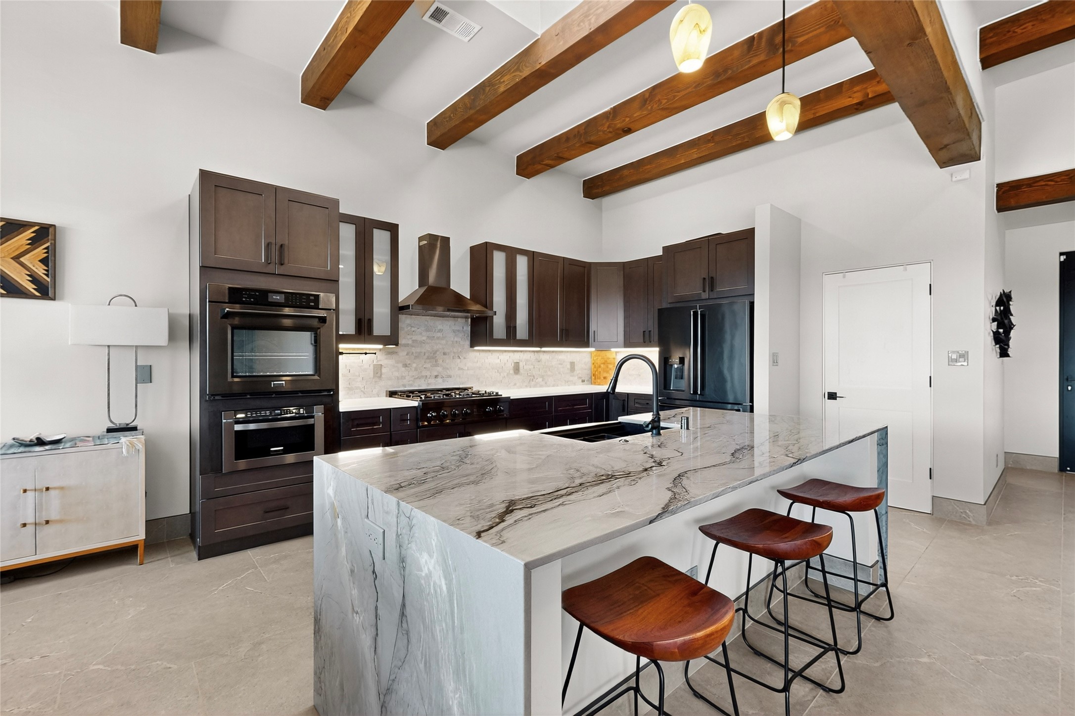 Nestled within the gated subdivision of Rancho de los Nios, this extraordinary residence offers a seamless fusion of modern elegance and timeless Southwestern charm. Resting peacefully on 4.86 acres of serene high desert landscape, the home captures breathtaking views of the Santa Fe mountains and is designed to inspire comfort, sophistication, and effortless entertaining. Inside, the home welcomes you with an atmosphere of calm luxury. A palette of beautiful gray tile, beams and fine trimmings sets a refined tone, complemented by recessed lighting, contemporary skylights, and exquisite light fixtures throughout. The spacious great room, with its tile-clad gas fireplace, invites quiet evenings or lively gatherings and flows gracefully through oversized sliding glass doors onto a covered patio and courtyard, where yet another outdoor fireplace awaits under the Santa Fe sky. The heart of the home is the chef's kitchen, a masterwork featuring ZLINE black stainless steel appliances, quartz countertops, and elegant backsplash tiling--a culinary space as functional as it is stunning. Nearby, a bonus room provides the perfect canvas for a home office, creative studio, or private retreat--whatever your heart desires. The primary suite is a sanctuary unto itself, featuring a spacious master bedroom, remote-controlled blinds, and a luxurious en suite bath with a standalone soaking tub, dual vanity sinks, a walk-in shower, and an expansive walk-in closet. The home offers three bedrooms and three bathrooms in total, all thoughtfully appointed and finished with shutters on the windows to enhance both style and privacy. Comfort and practicality meet with central heating and air conditioning, a three-car garage, and thoughtfully selected fixtures and finishes throughout. This residence is a true gem in one of Santa Fe's most coveted communities--quiet, secure, and remarkably beautiful.Come home to Rancho de los Nios, where sophistication meets serenity.