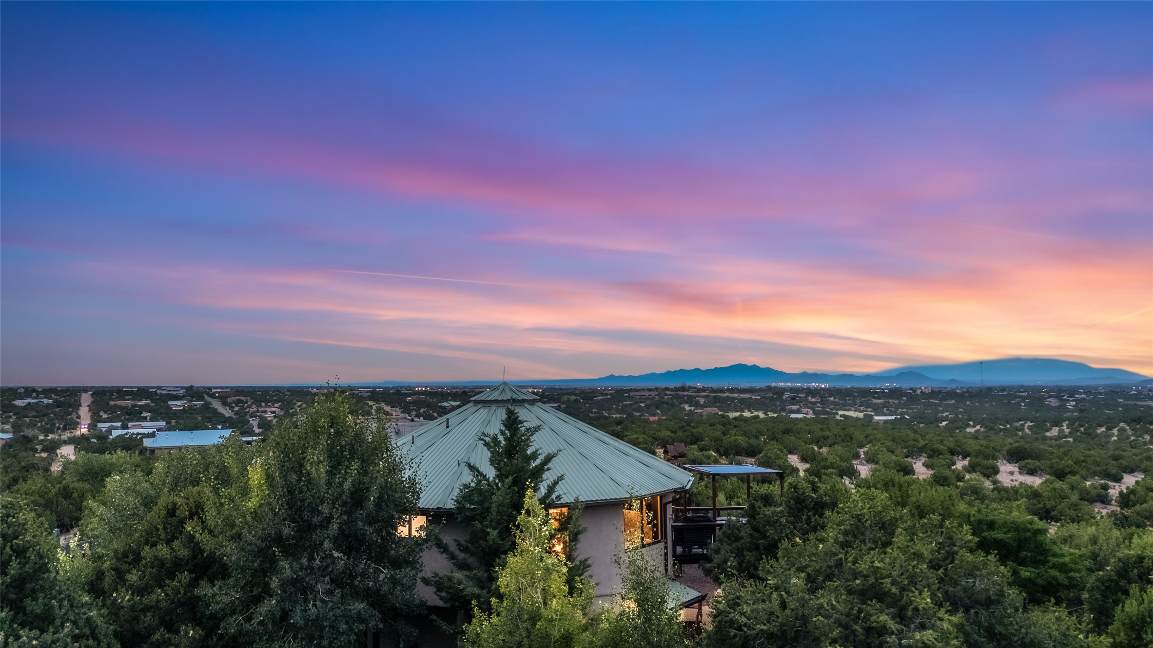 Discover the unparalleled beauty of Santa Fe at 272 Camino Tres Arroyos, a distinctive round home featuring 3 bedrooms, 2 bathrooms, and 2,482 square feet of thoughtfully designed living space. Perfectly positioned on a beautifully landscaped lot, this architecturally unique residence showcases panoramic, unobstructed views that capture the essence of Northern New Mexico's natural beauty. Upon entry, you're welcomed into a warm, light-filled interior that artfully combines modern updates with enduring character. The flowing, circular layout creates inviting spaces ideal for relaxing or entertaining, while recent owner improvements ensure true turnkey comfort. The property also includes a detached 320-square-foot powered studio, perfect for an artist's retreat, home office, or guest space. Enjoy stunning sunsets from the landscaped yard or entertain guests on the private deck surrounded by Santa Fe's iconic vistas. Situated just minutes from town yet feeling worlds away, this extraordinary home offers the best of both convenience and serenity. Don't miss this rare opportunity to own an architecturally distinctive, move-in-ready home with unparalleled views in a coveted Santa Fe location. The home sits 1 mile down a dirt road that is maintained by the neighborhood twice a year.