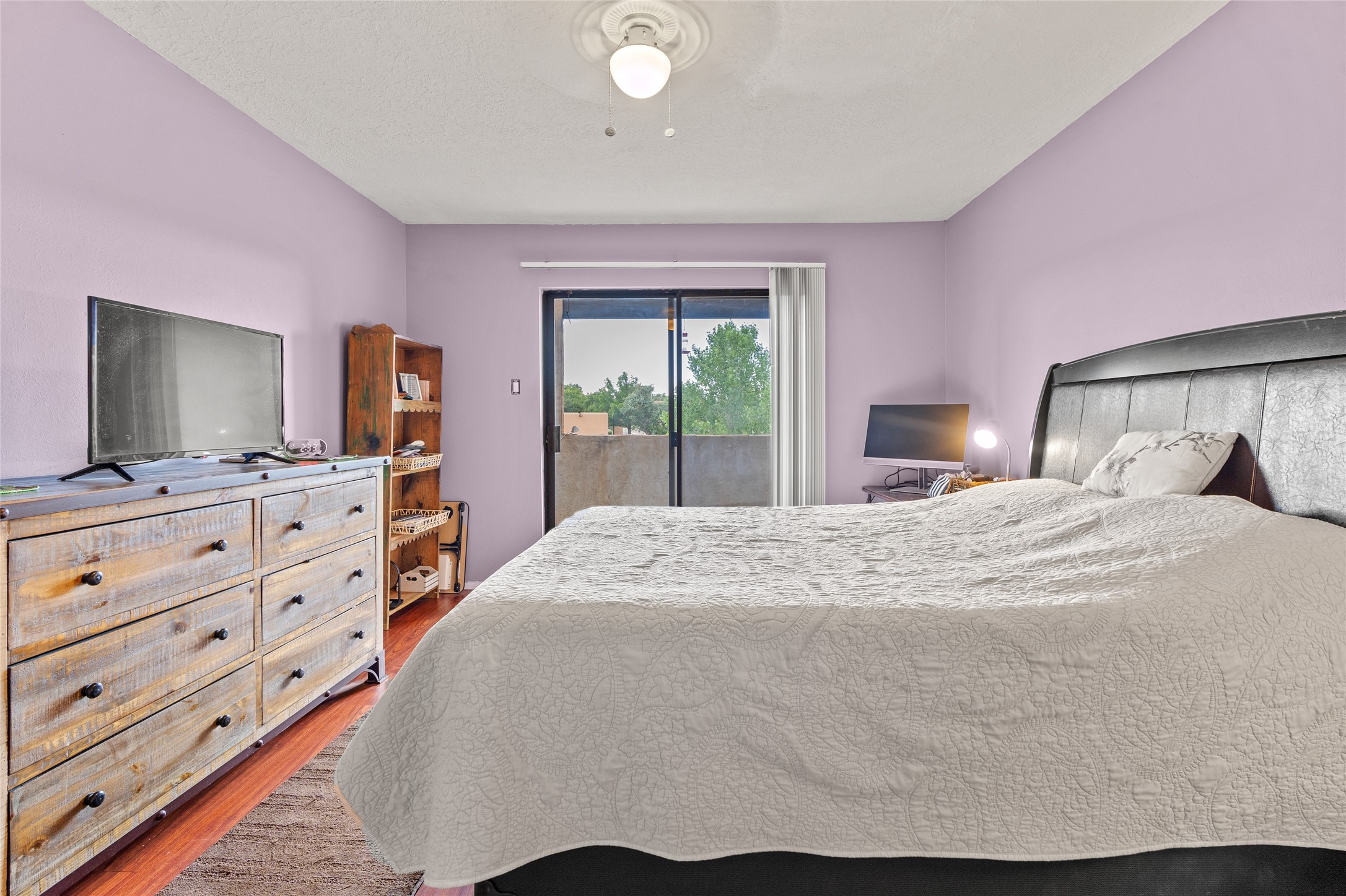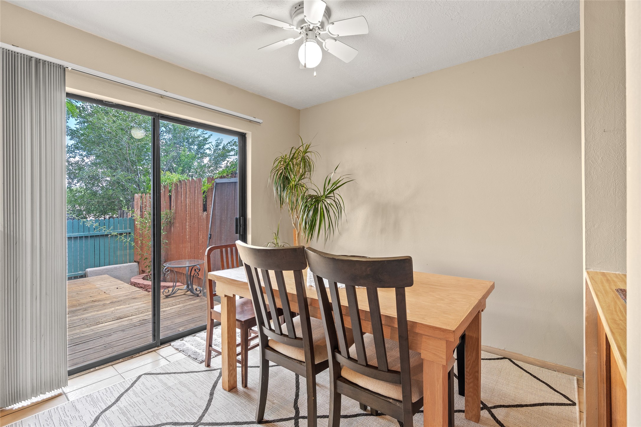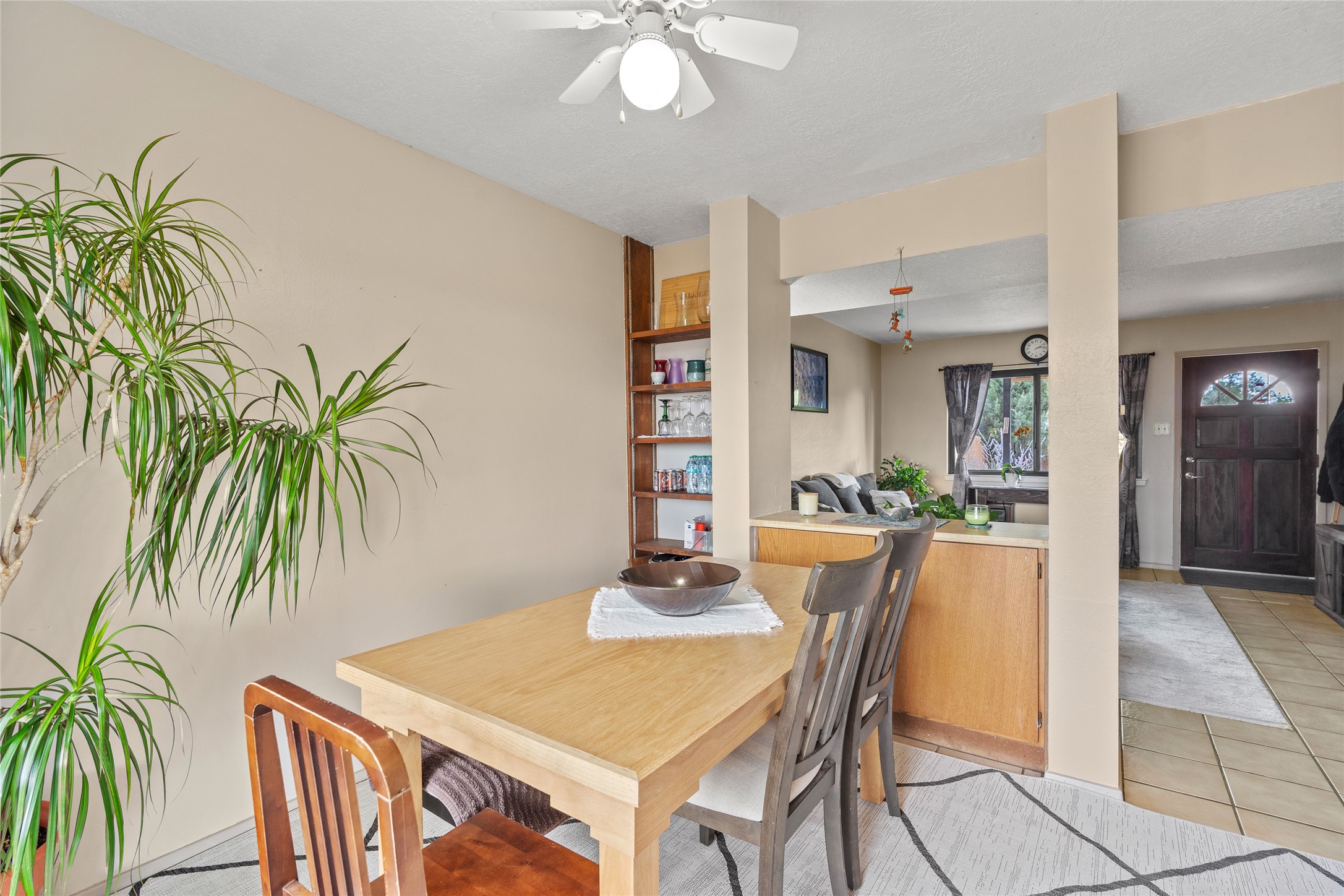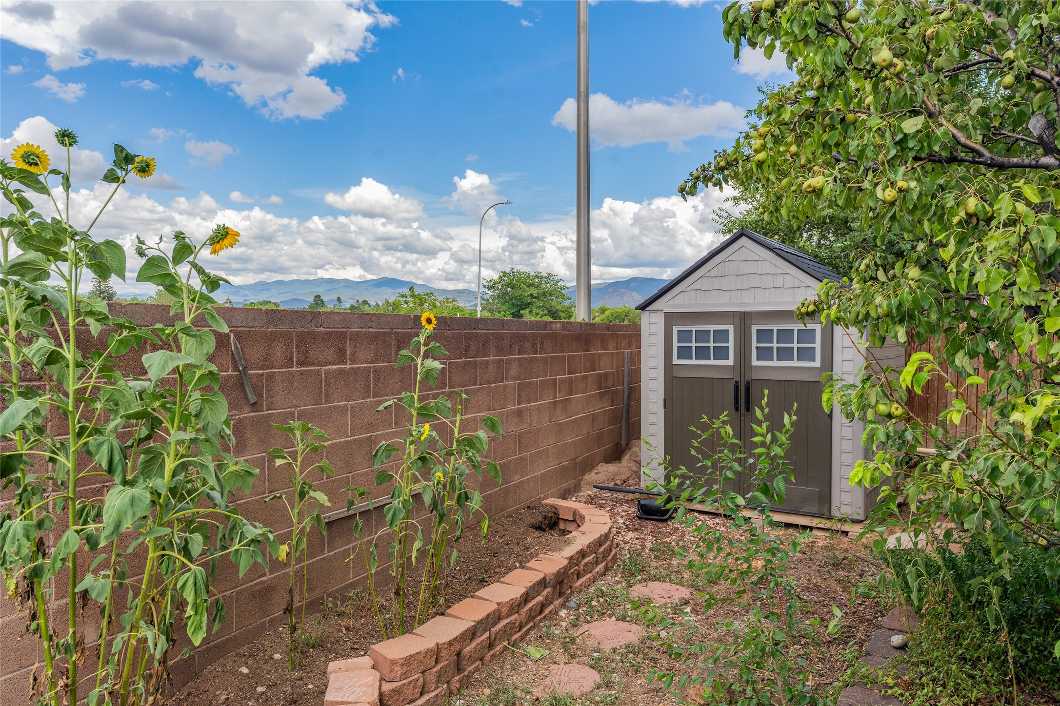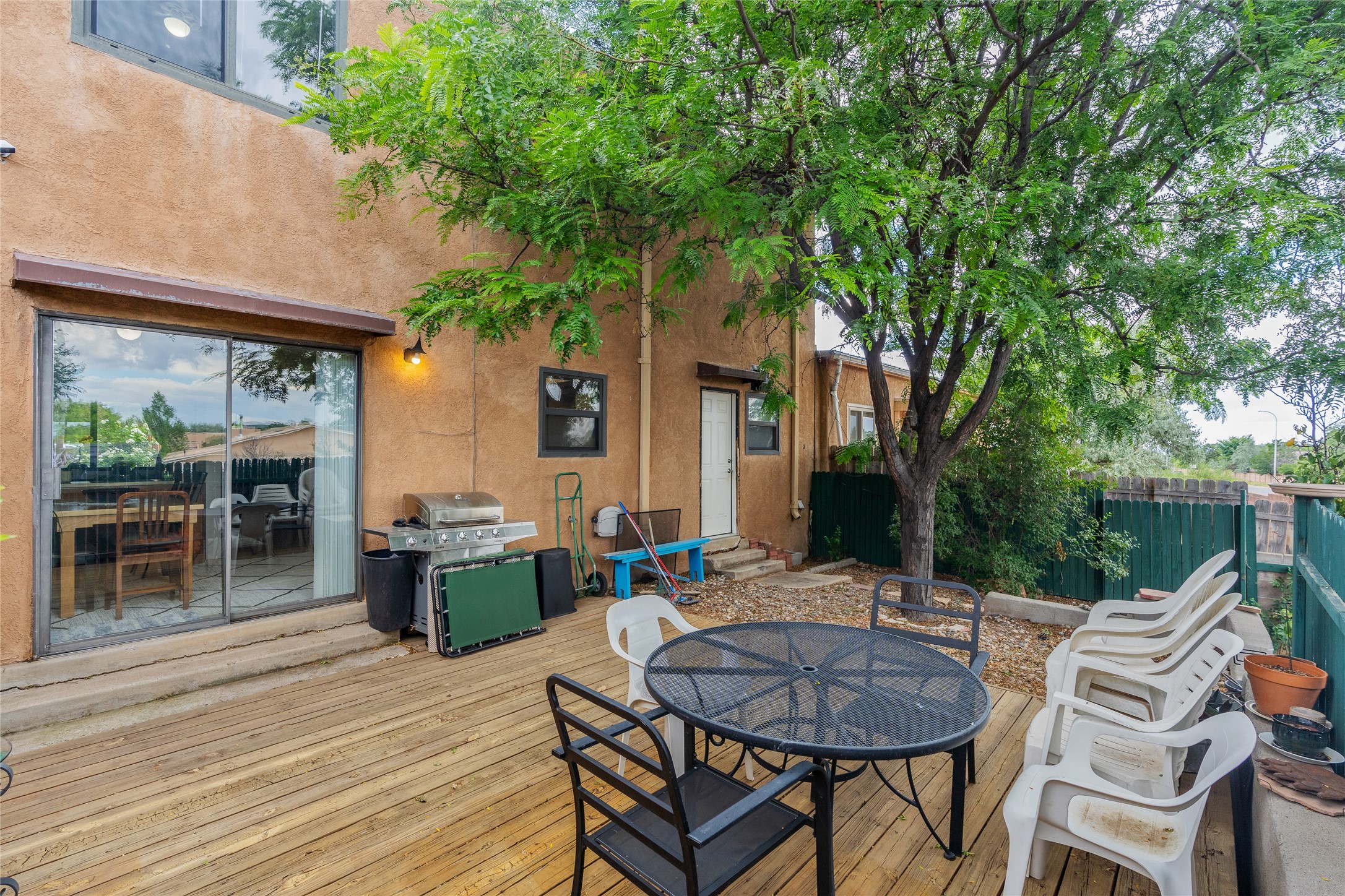 This fabulous 4 bedroom 3 bath townhome off of Rodeo Road makes a great starter home or even a wonderful lock-and-leave second home, with a tranquil gated front courtyard featuring grass, flowers and a water feature. A beautiful backyard showcases mountain views and a deck for entertaining. There is also an eat-in kitchen, a dedicated laundry room, and three bedrooms and two baths upstairs. The convenient location is everything! A 5 min drive to the Plaza, or a short bike ride up to the Zia Railrunner station will have you adventuring into downtown, or even down to Albuquerque in no time! Quick access to nearby parks, shopping, and the Chavez Center is also a huge time saver. As an additional bonus, this property comes with a mother-in-law unit that could be used as a large downstairs primary suite, or could potentially be rented out for extra income. The possibilities are endless. Claim this versatile property before someone else does!
