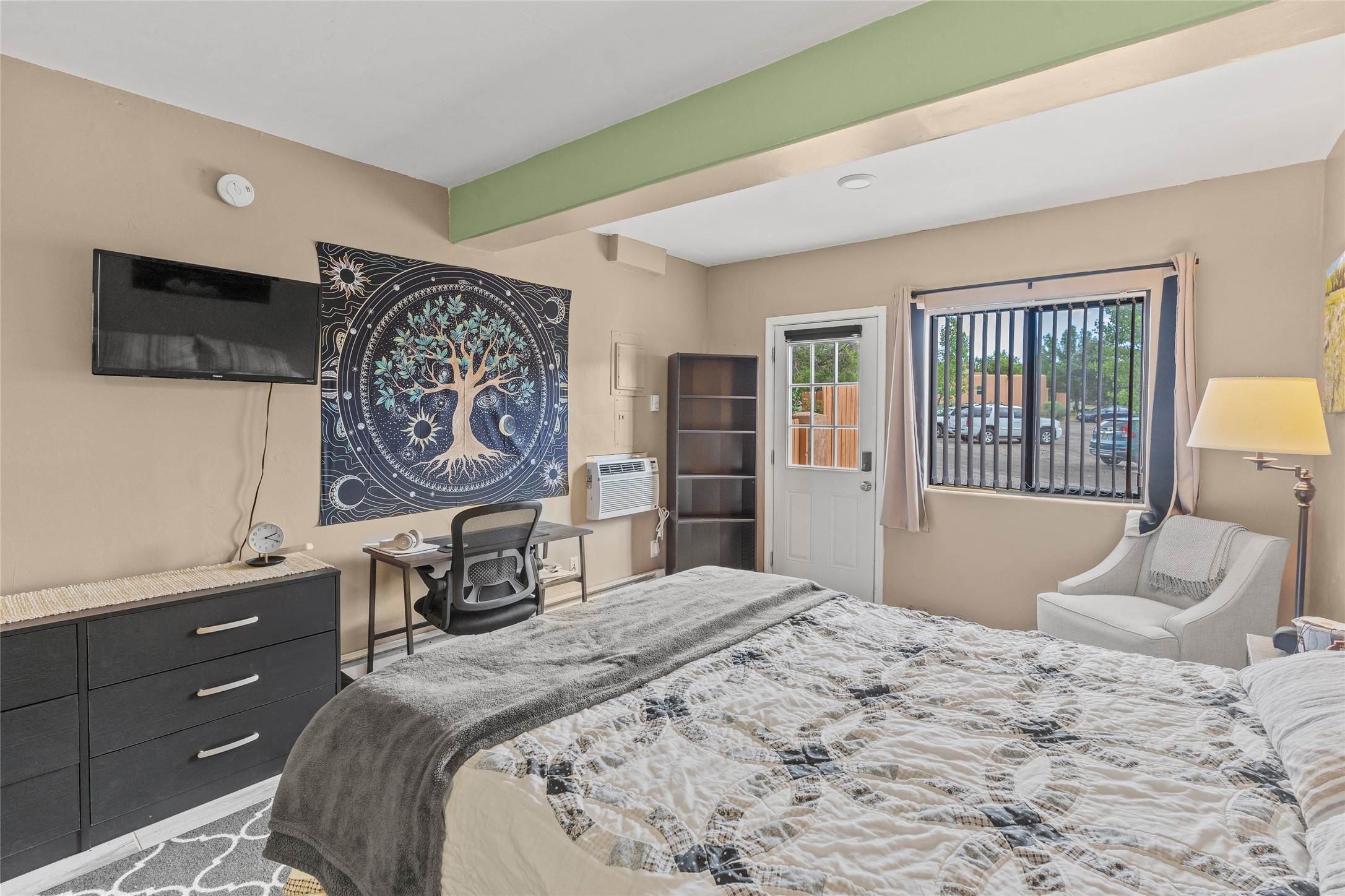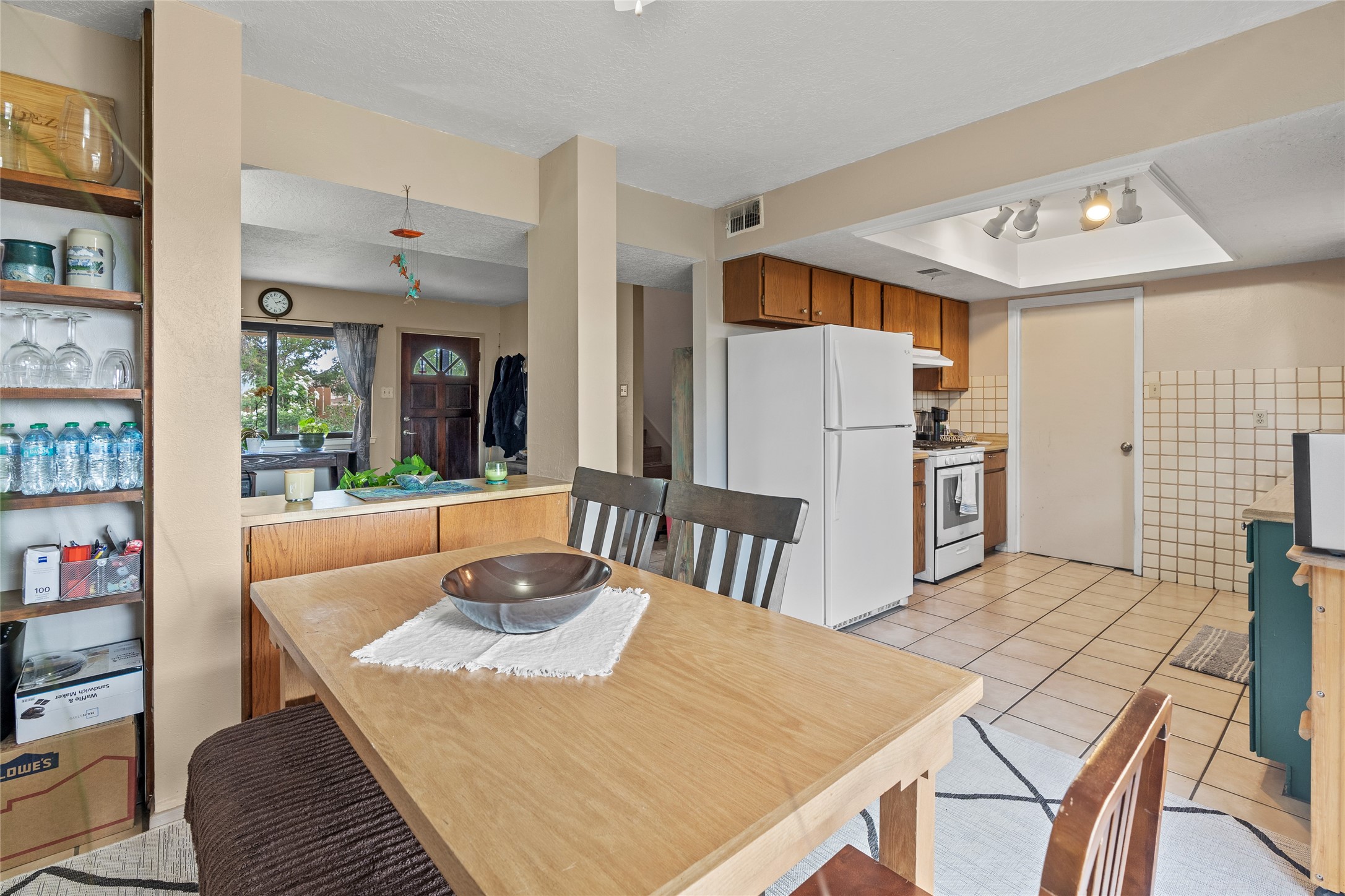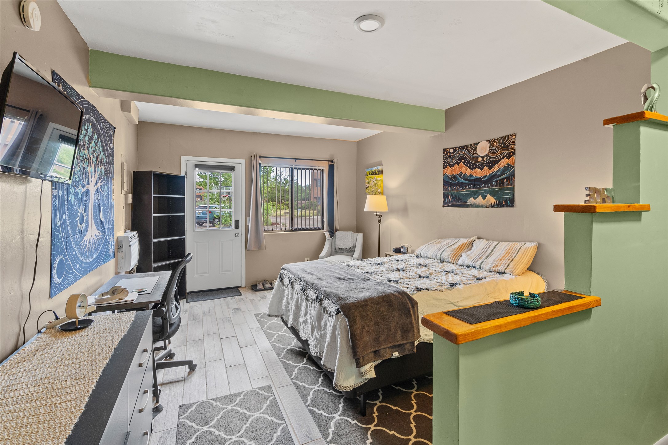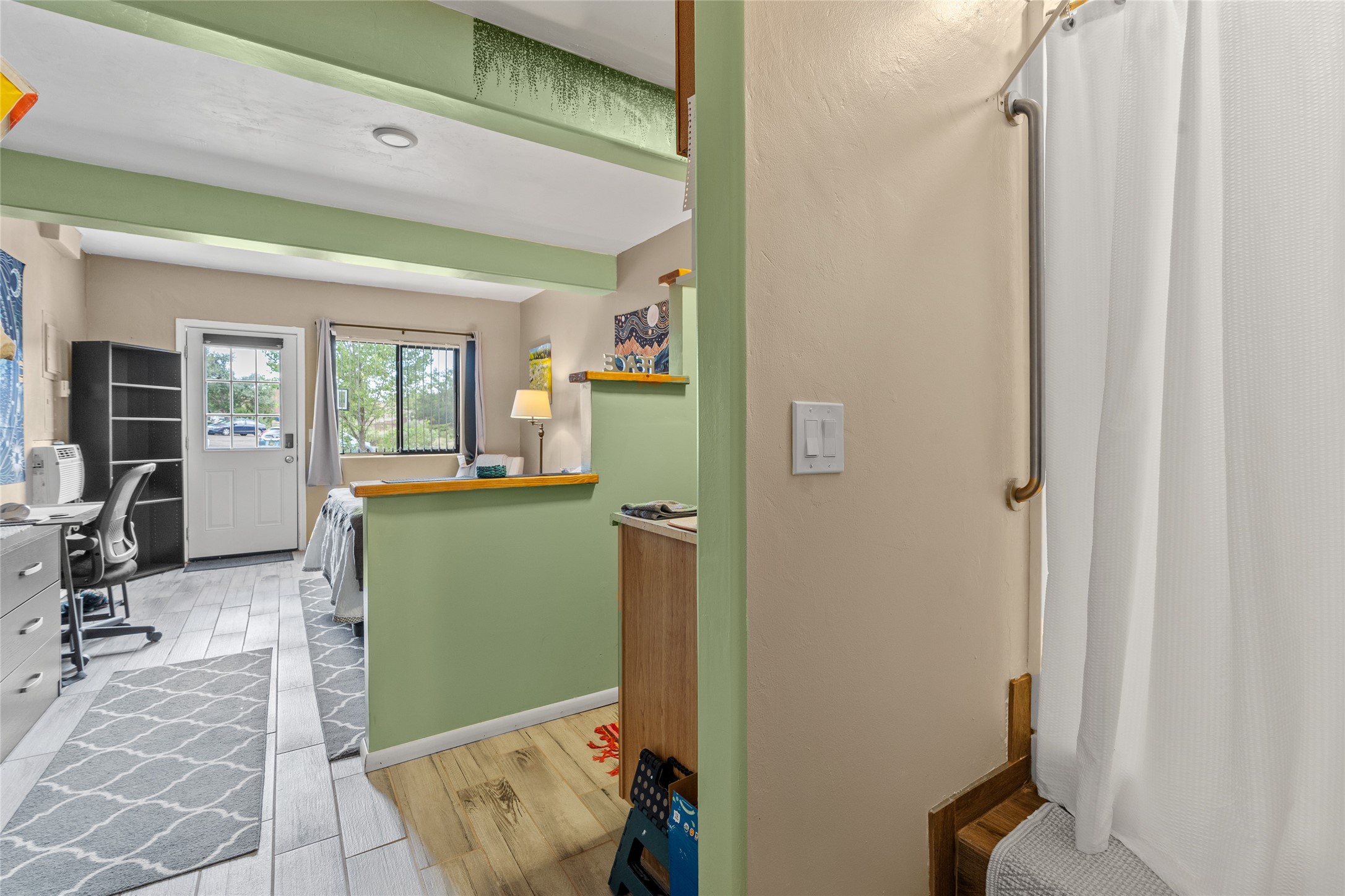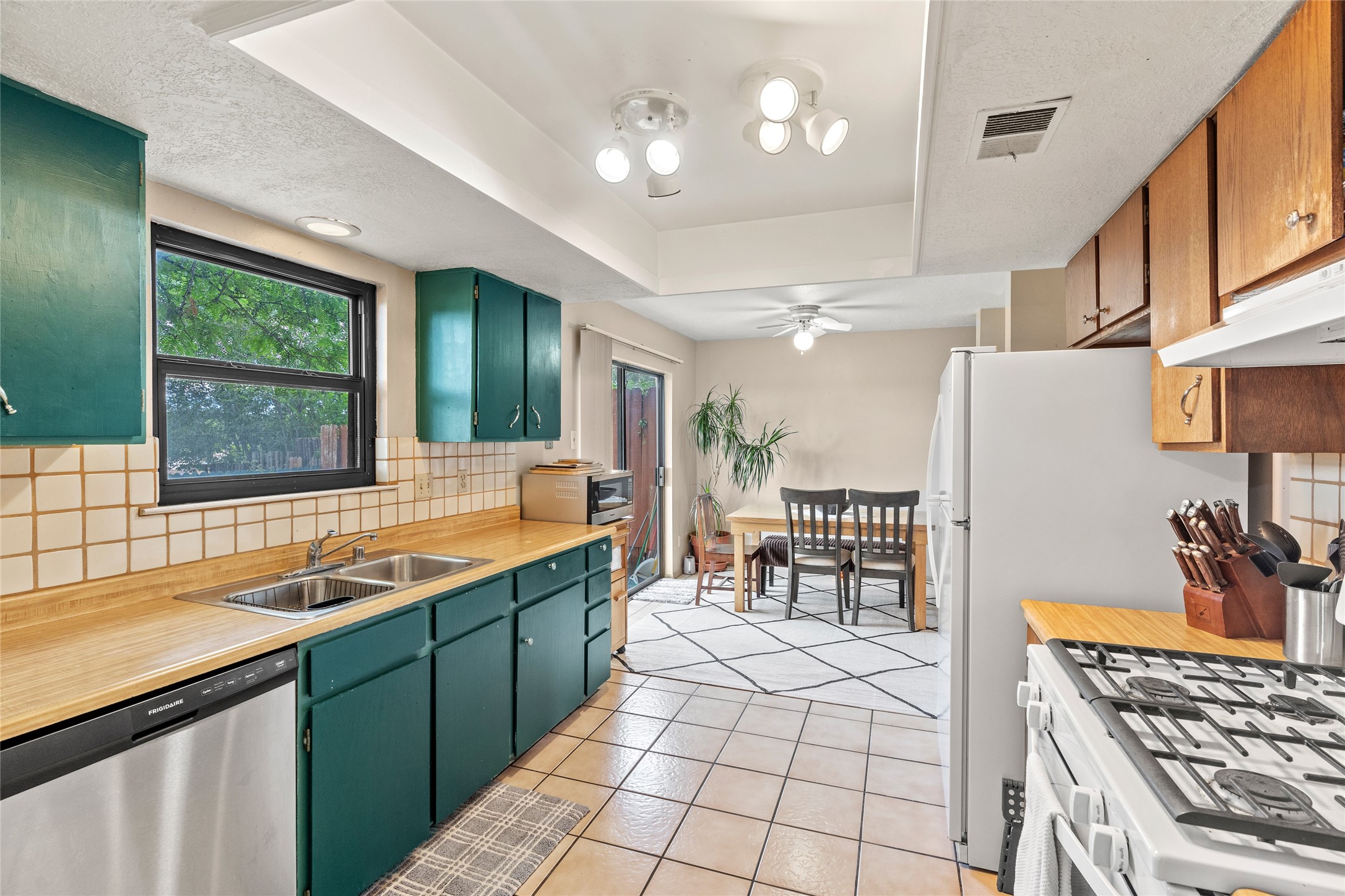 This fabulous 4 bedroom 3 bath townhome off of Rodeo Road makes a great starter home or even a wonderful lock-and-leave second home, with a tranquil gated front courtyard featuring grass, flowers and a water feature. A beautiful backyard showcases mountain views and a deck for entertaining. There is also an eat-in kitchen, a dedicated laundry room, and three bedrooms and two baths upstairs. The convenient location is everything! A 5 min drive to the Plaza, or a short bike ride up to the Zia Railrunner station will have you adventuring into downtown, or even down to Albuquerque in no time! Quick access to nearby parks, shopping, and the Chavez Center is also a huge time saver. As an additional bonus, this property comes with a mother-in-law unit that could be used as a large downstairs primary suite, or could potentially be rented out for extra income. The possibilities are endless. Claim this versatile property before someone else does!