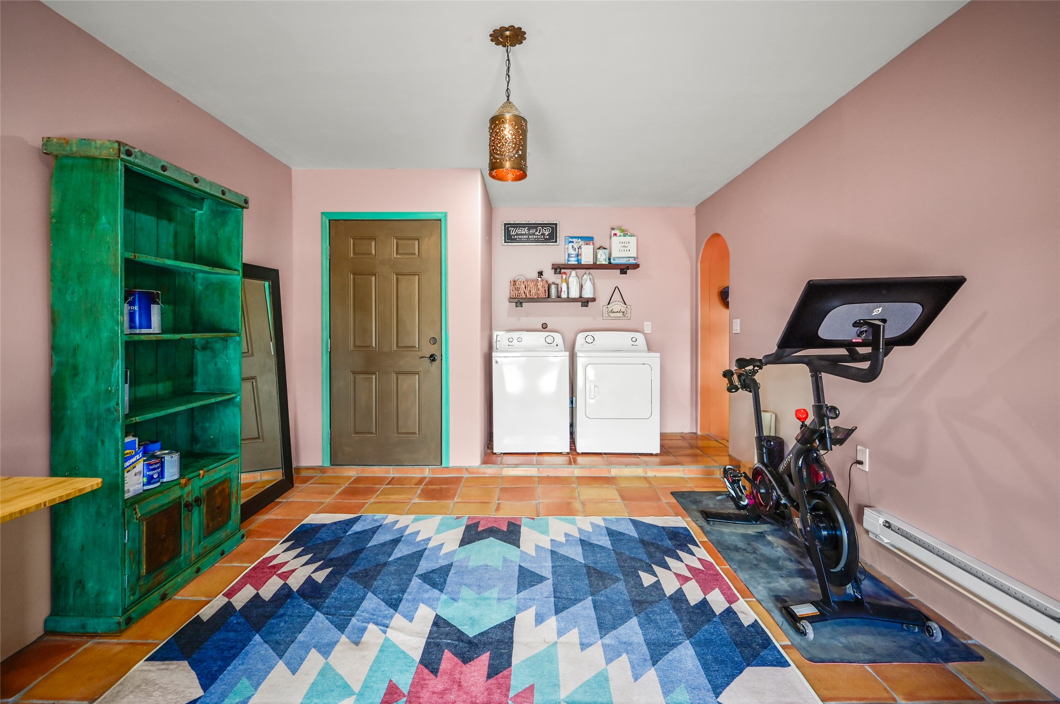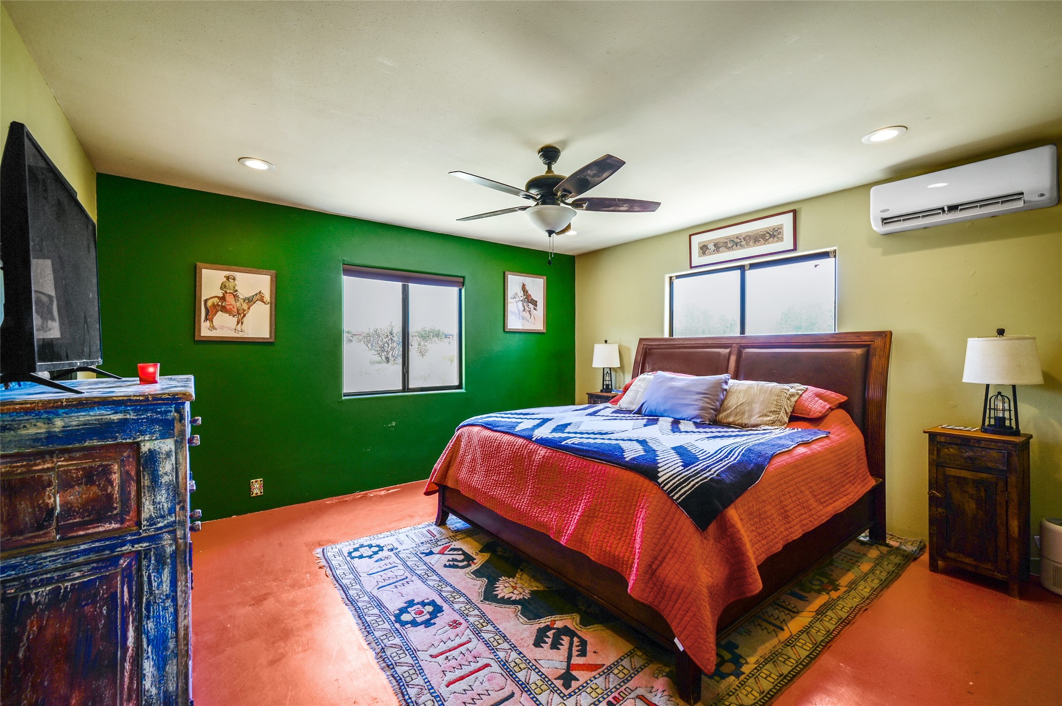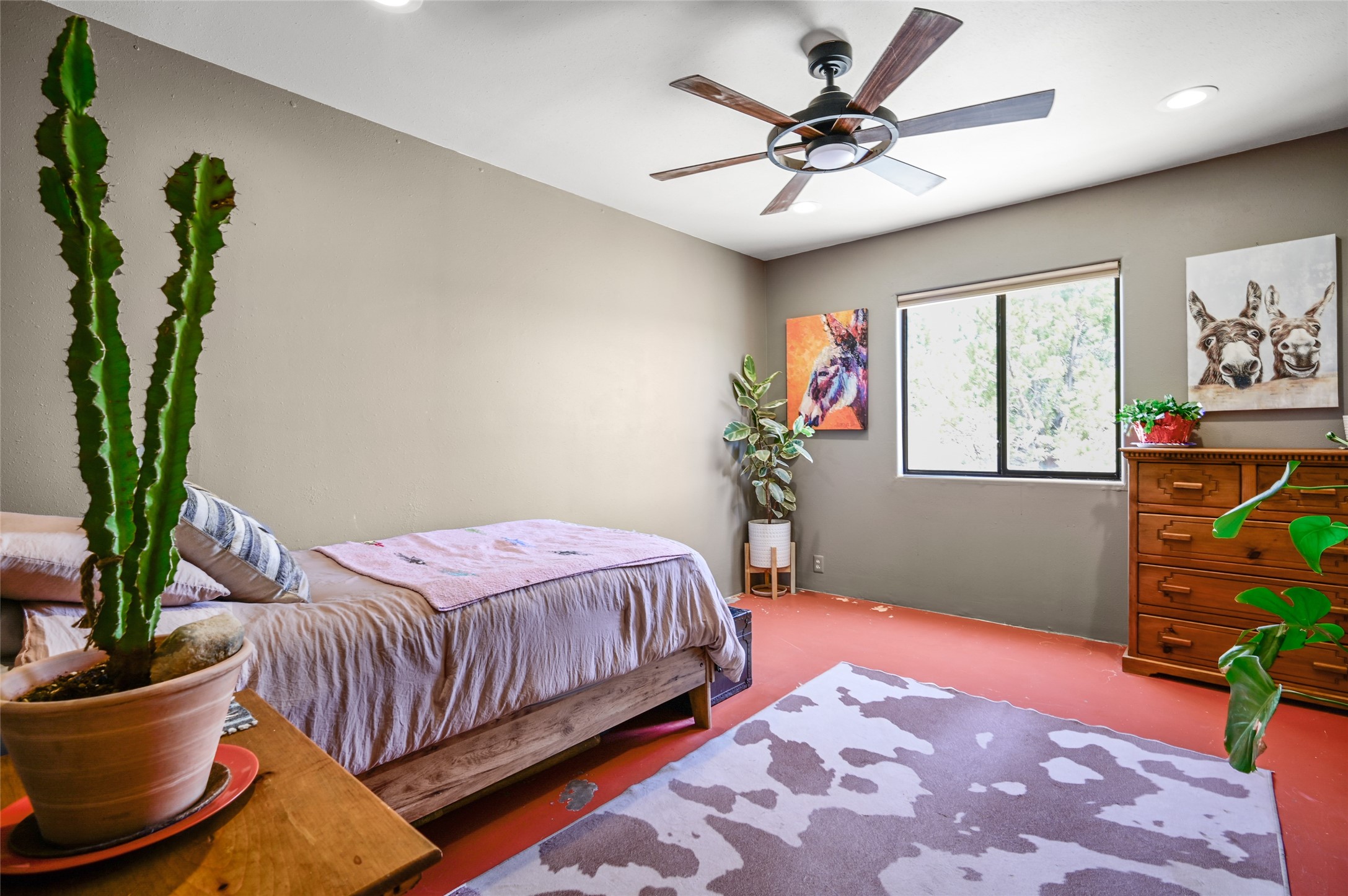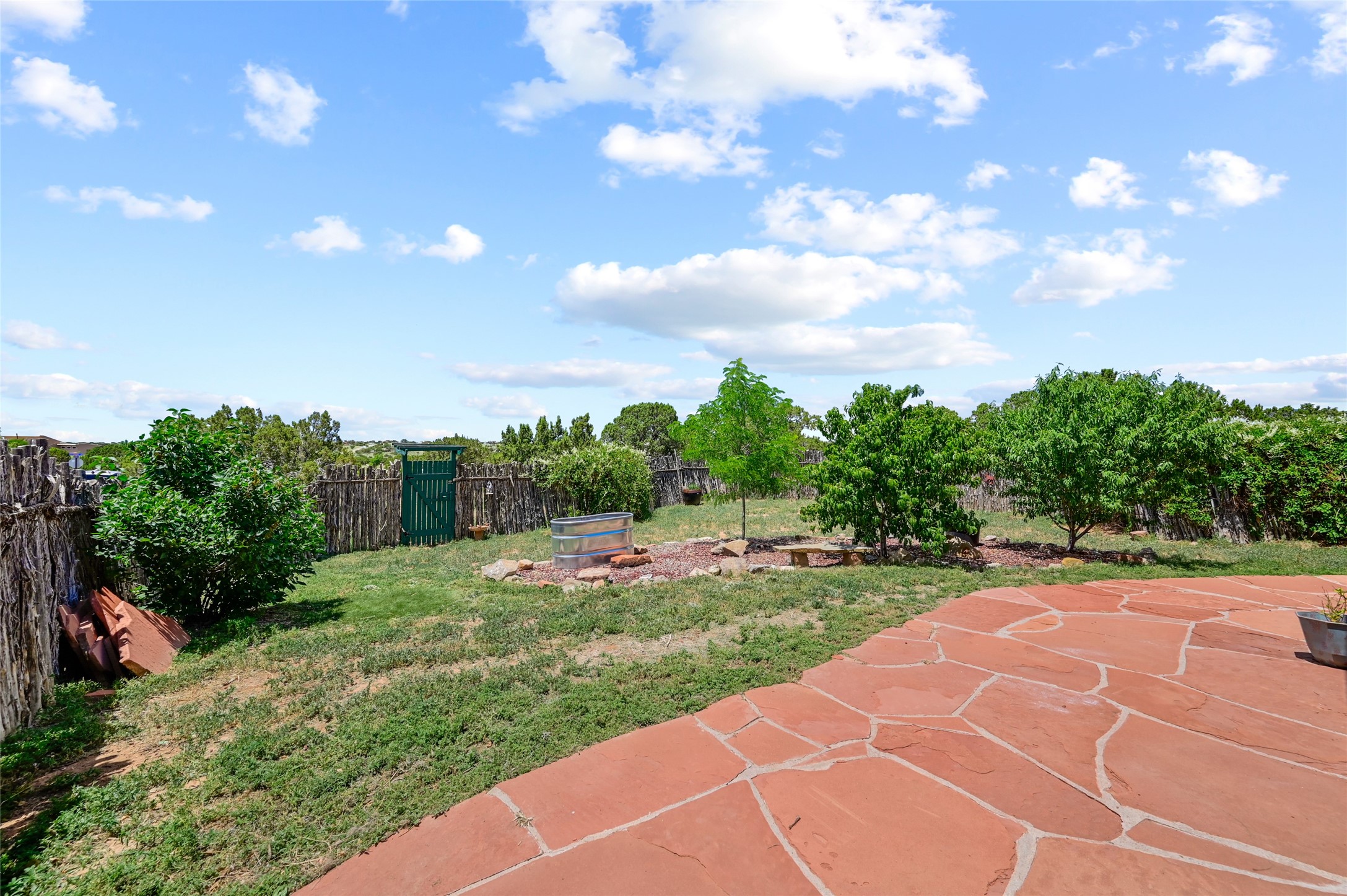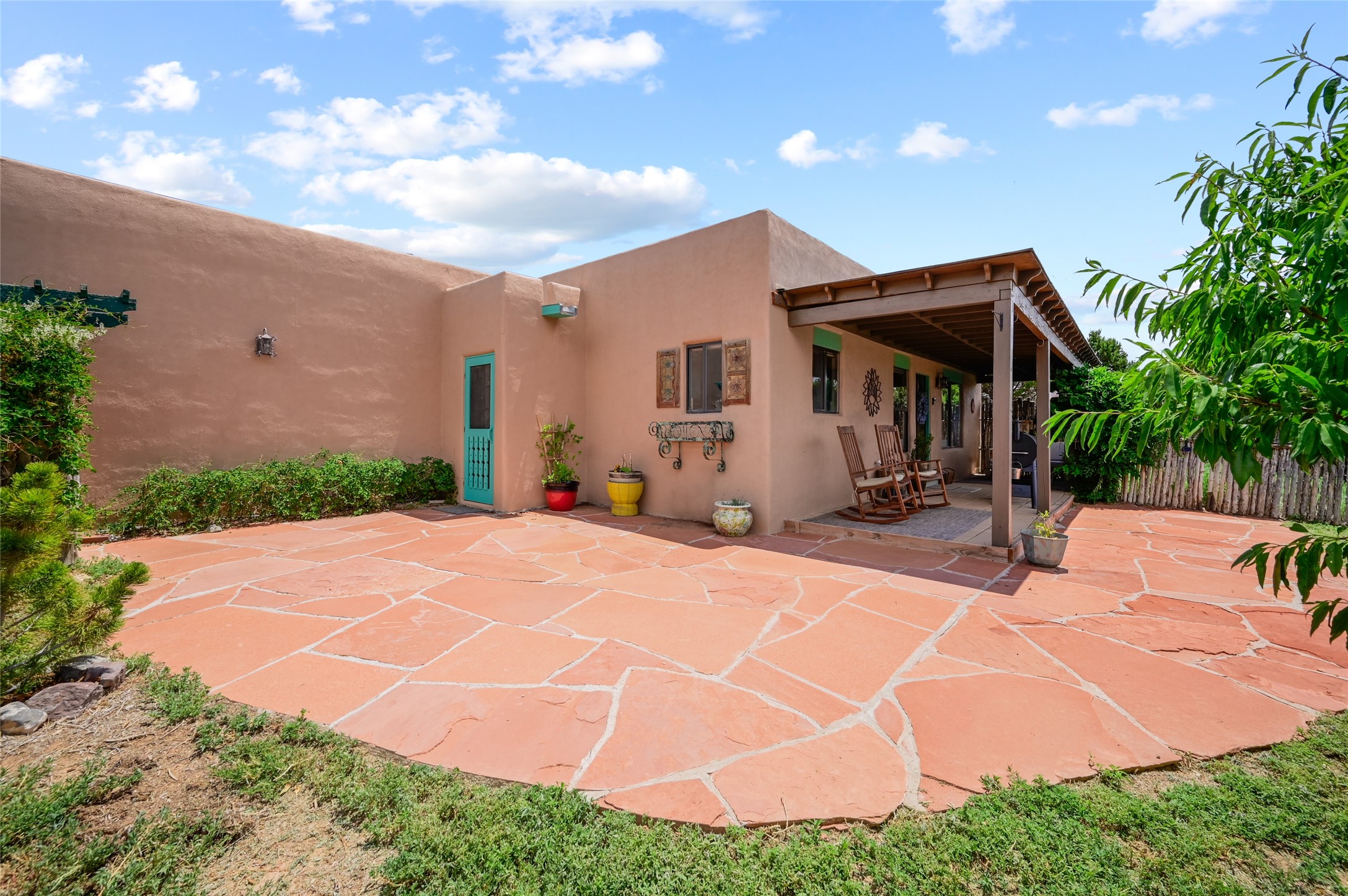 Efficient, Charming, Scenic Views. This delightful Eldorado home is sited on a elevated view lot and features a welcoming front porch and a coyote-fenced courtyard / yard. Inside, the home exudes charm with a cozy kiva fireplace, concrete floors, and a private walled courtyard off the living room. This is an ideal spot for morning coffee or quiet reflection. The main courtyard is fully fenced for dogs or privacy. Comfort meets functionality with efficient in-floor radiant heat and a mini-split unit providing AC and Heat to the primary bedroom. Eldorado offers an array of community amenities including miles of scenic walking trails, greenbelt hiking, a seasonal community pool, community center, tennis and pickleball courts and much more. Don't miss the opportunity to experience this Eldorado charmer for yourself.