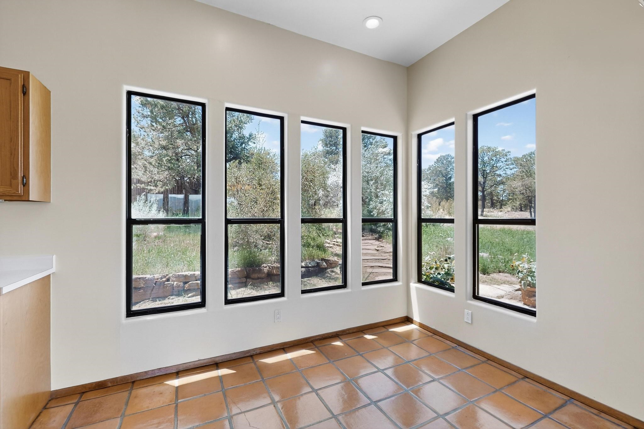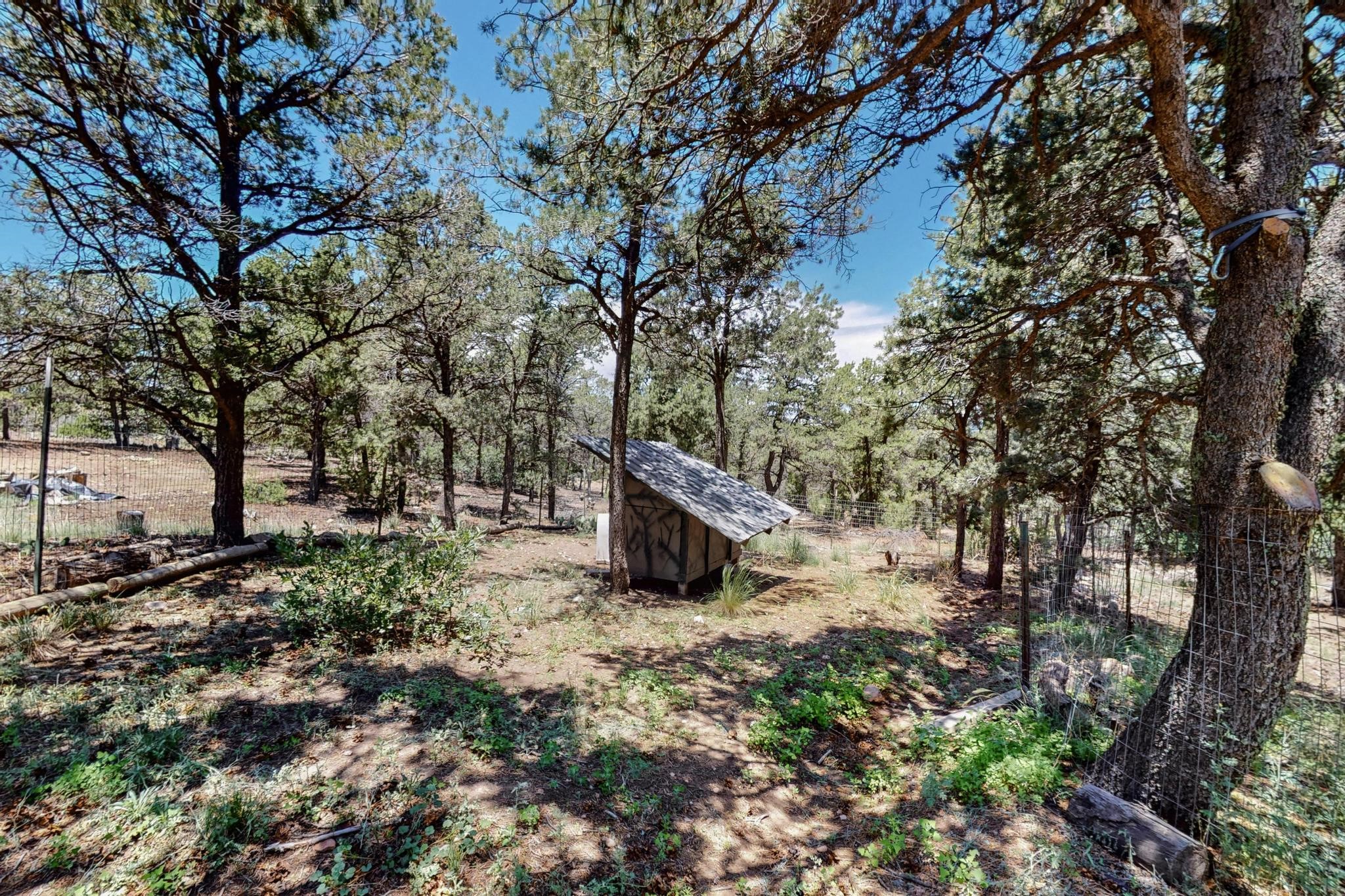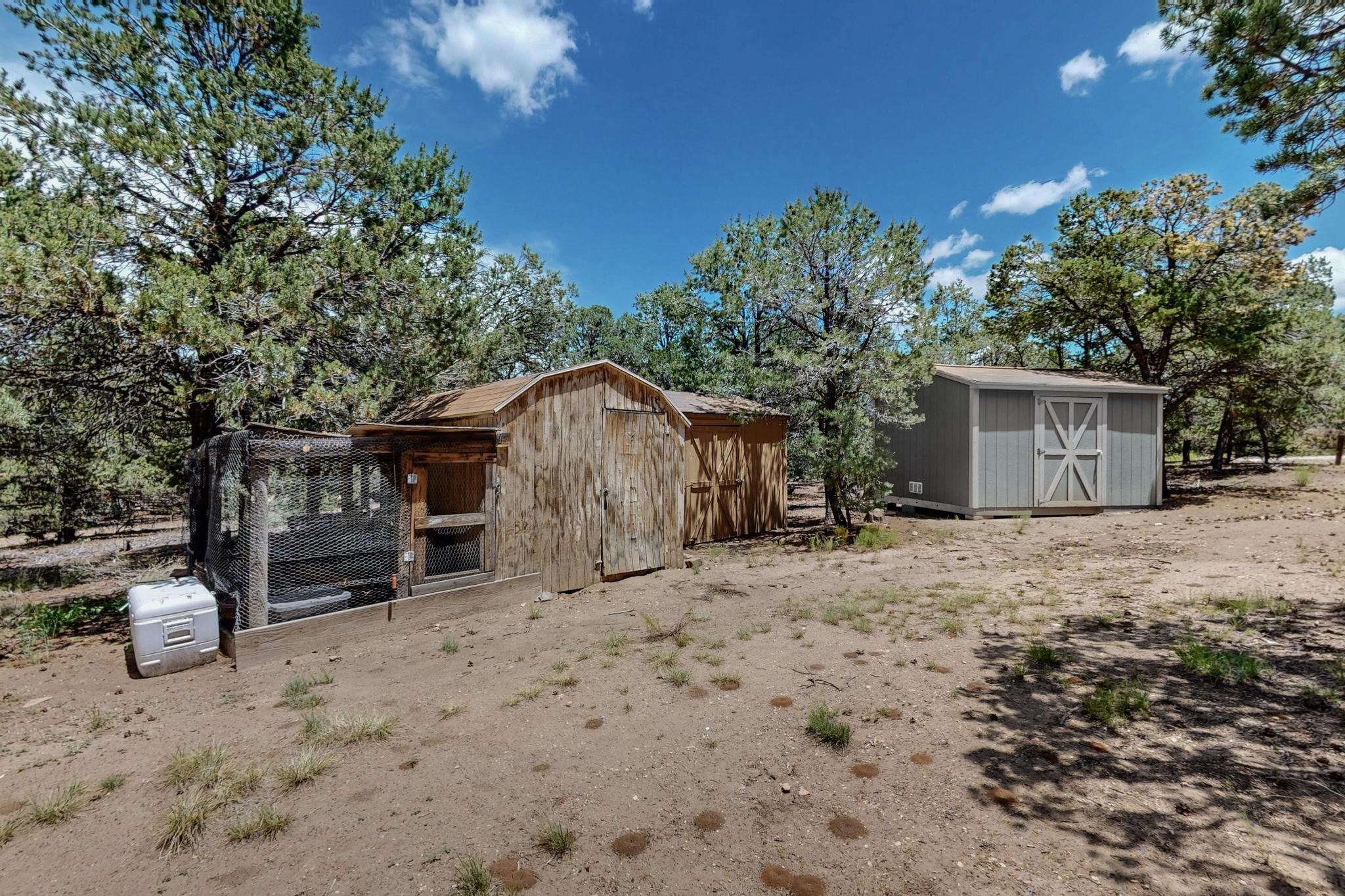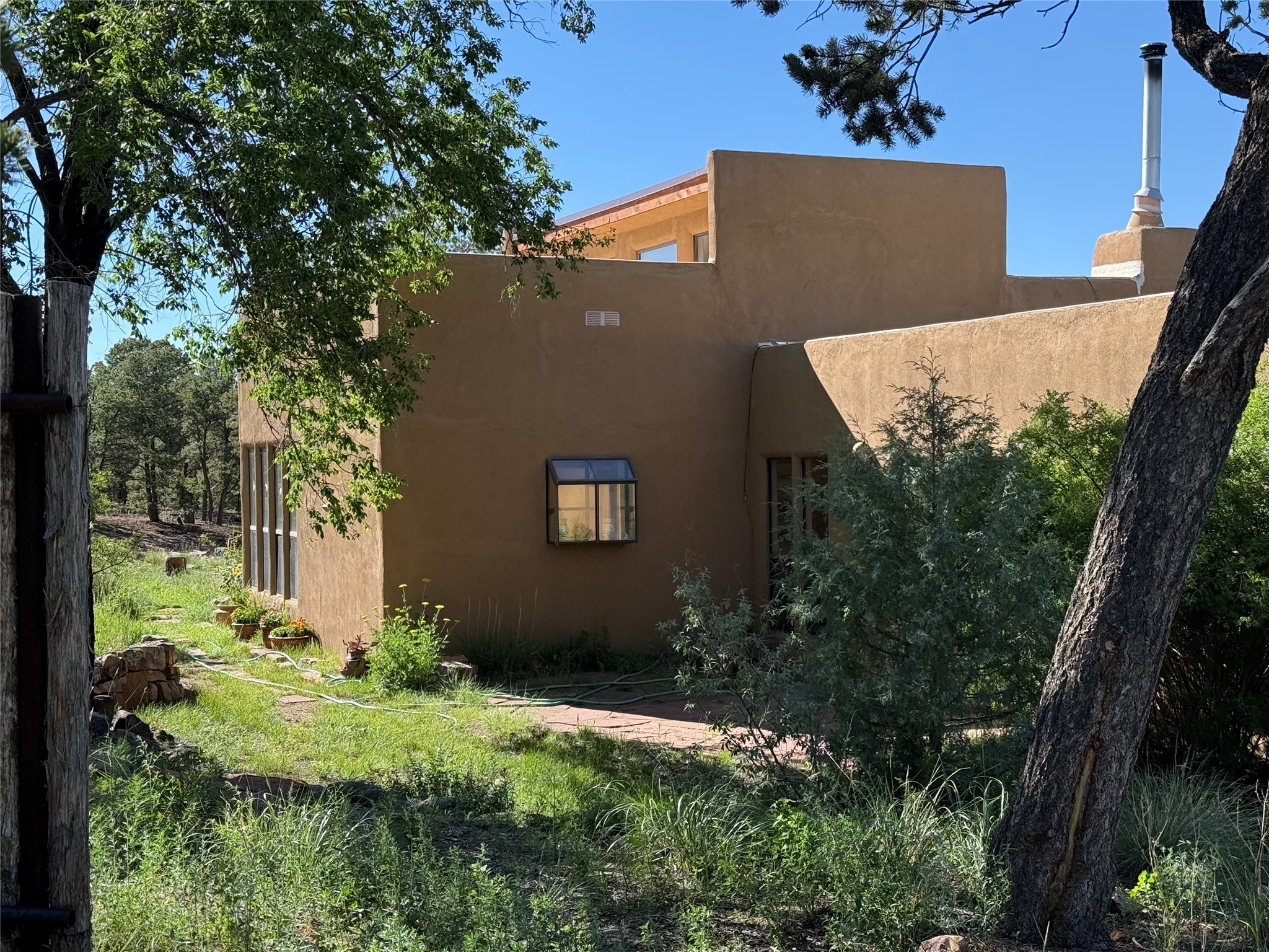 Offering absolutely stunning views of the Southern Rocky Mountains, this home and 5 acre property offers tranquil country living and is only ~15 minutes to the vibrant heart of downtown Santa Fe. This pueblo style two bedroom 2 bath home features exposed vigas, a stunning kiva fireplace, talavera tile accents, clearstory windows , and wonderful outdoor flagstone patio's. Other notable features include a newer TPO roof with transferable warranty, private well, radiant in floor heating, new water heater, and a couple of sheds for your storage needs. This amazing 5 acre property is very usable and can accommodate further development if desired.