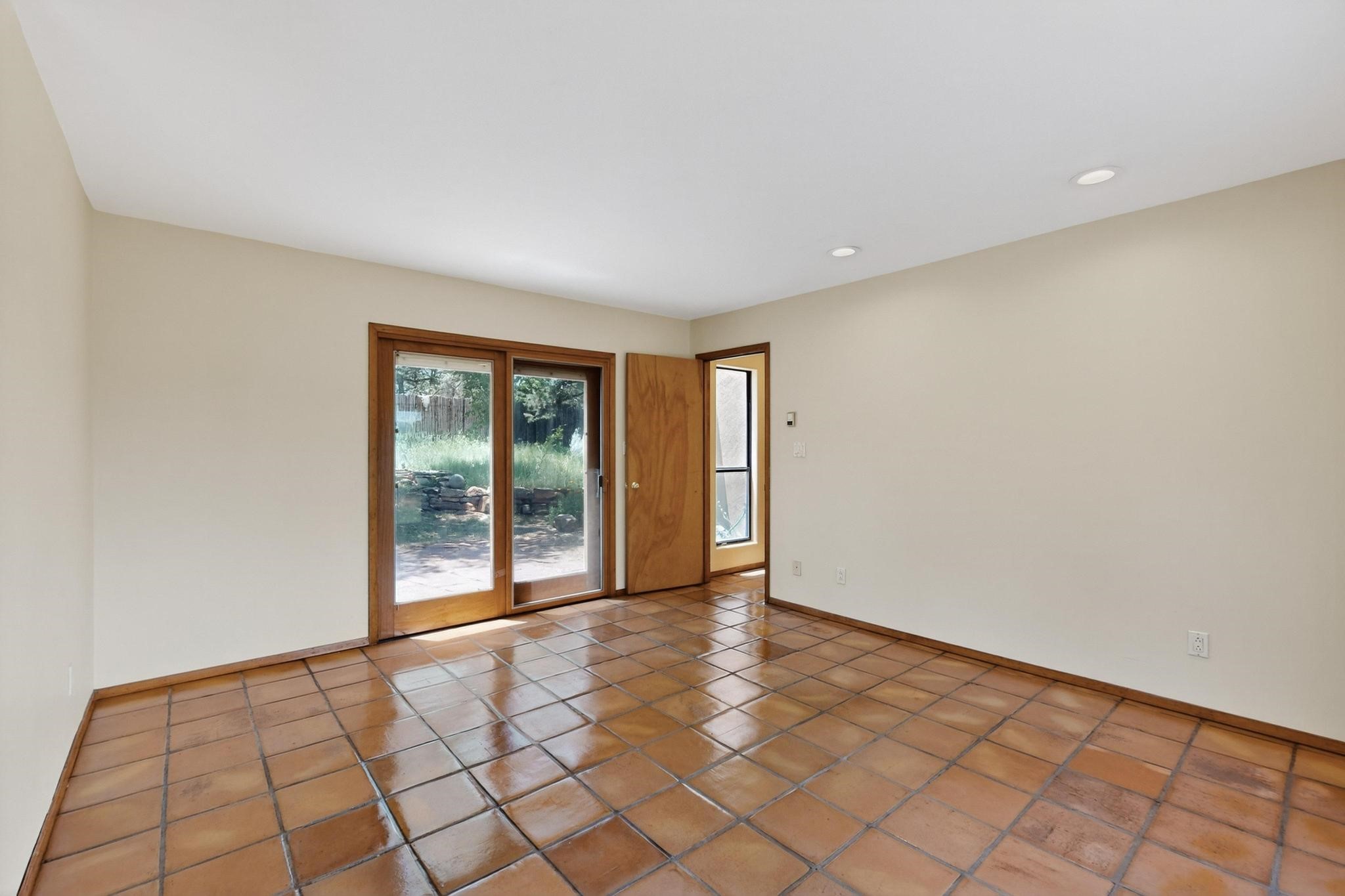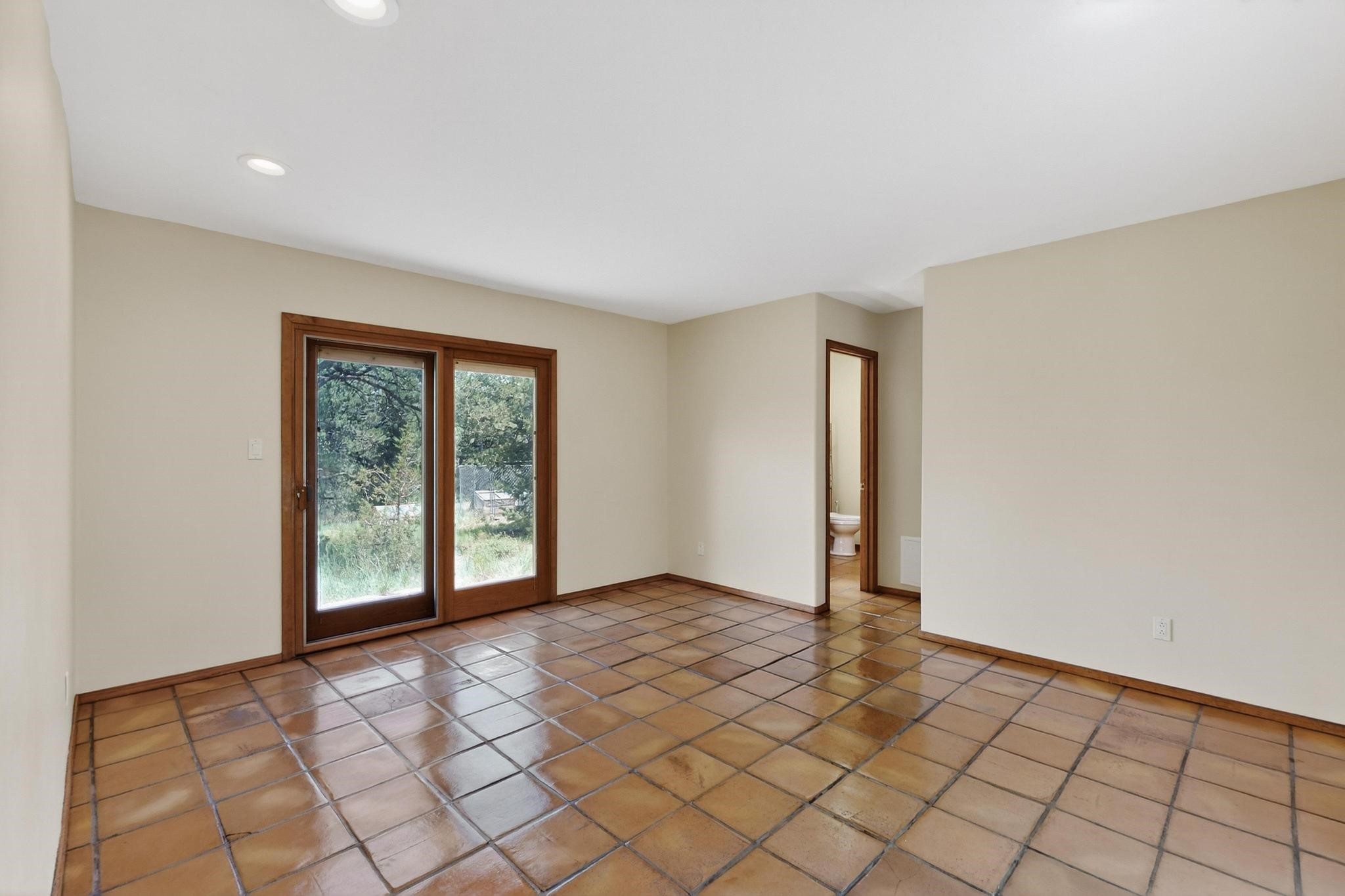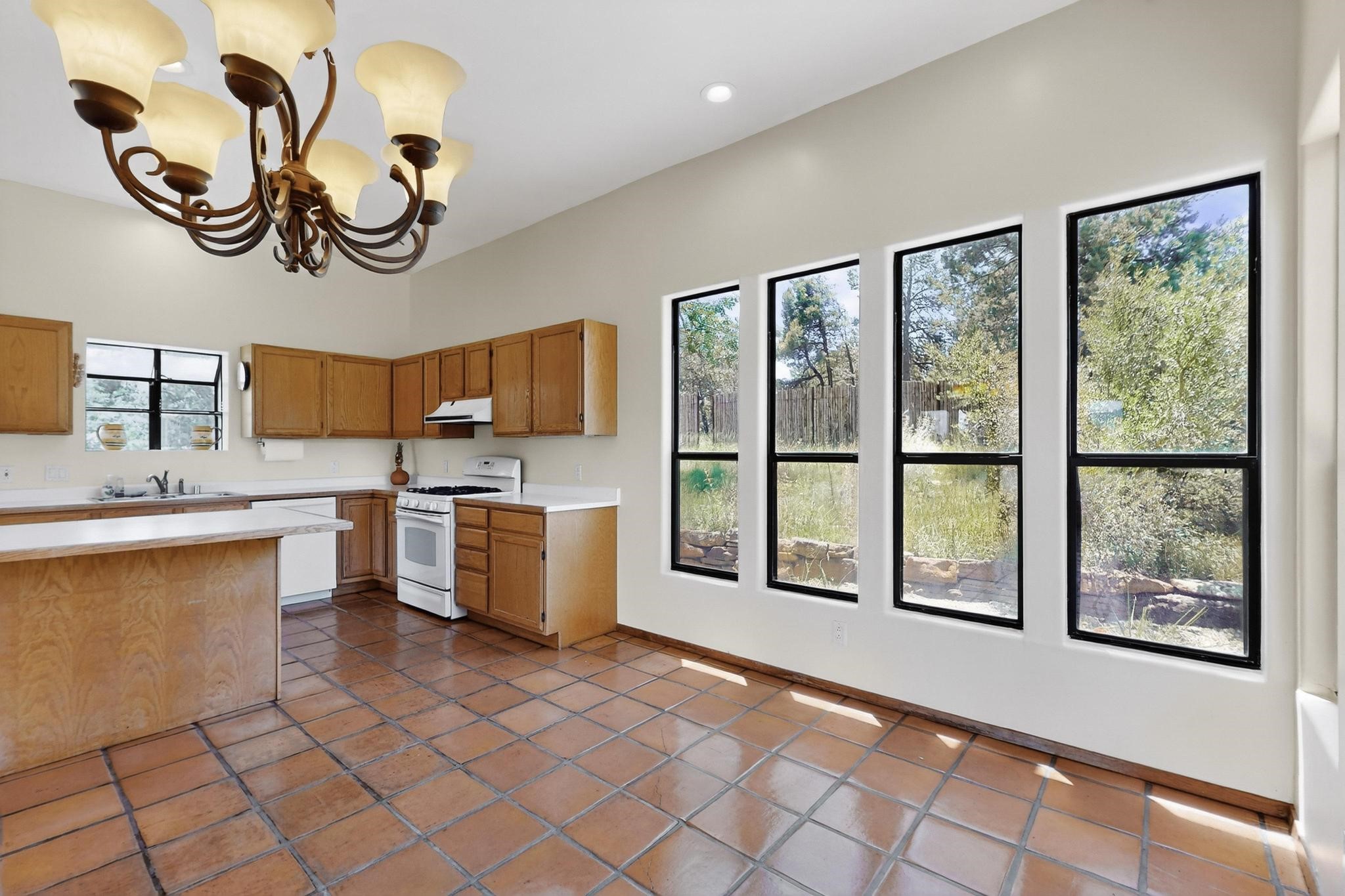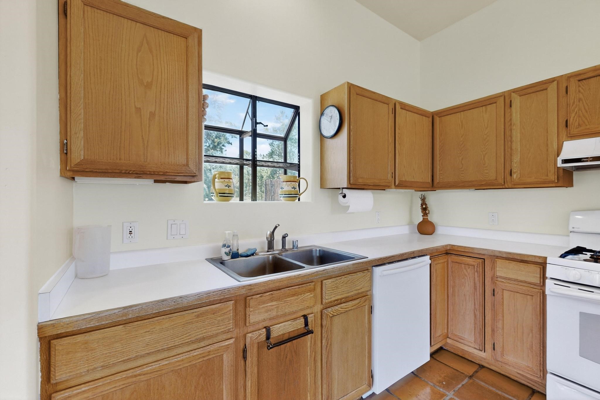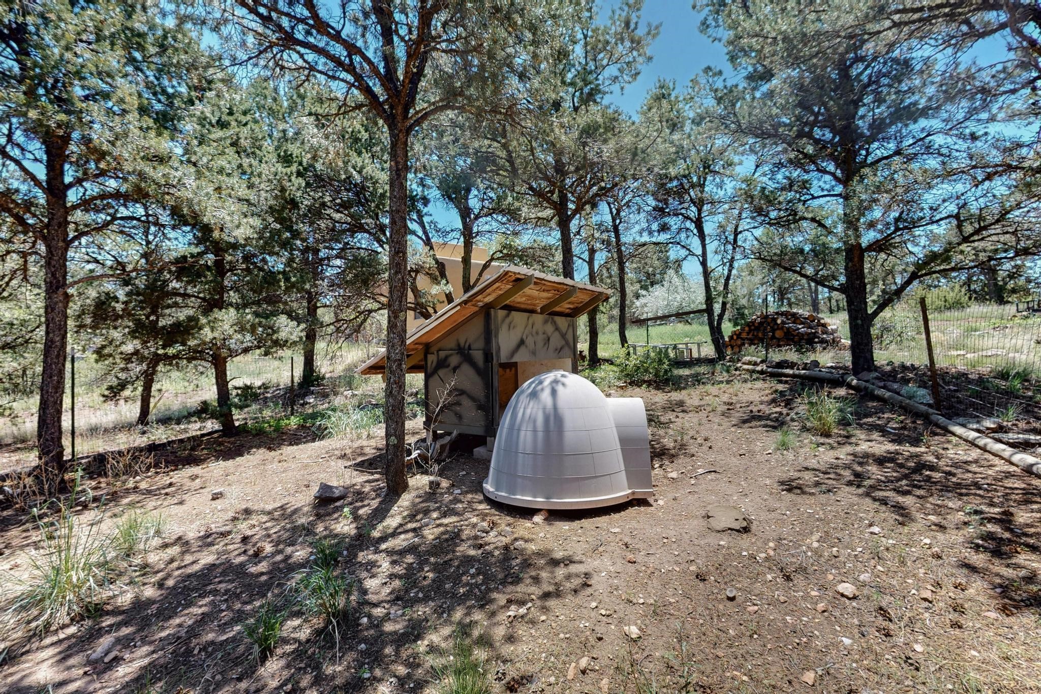 Offering absolutely stunning views of the Southern Rocky Mountains, this home and 5 acre property offers tranquil country living and is only ~15 minutes to the vibrant heart of downtown Santa Fe. This pueblo style two bedroom 2 bath home features exposed vigas, a stunning kiva fireplace, talavera tile accents, clearstory windows , and wonderful outdoor flagstone patio's. Other notable features include a newer TPO roof with transferable warranty, private well, radiant in floor heating, new water heater, and a couple of sheds for your storage needs. This amazing 5 acre property is very usable and can accommodate further development if desired.